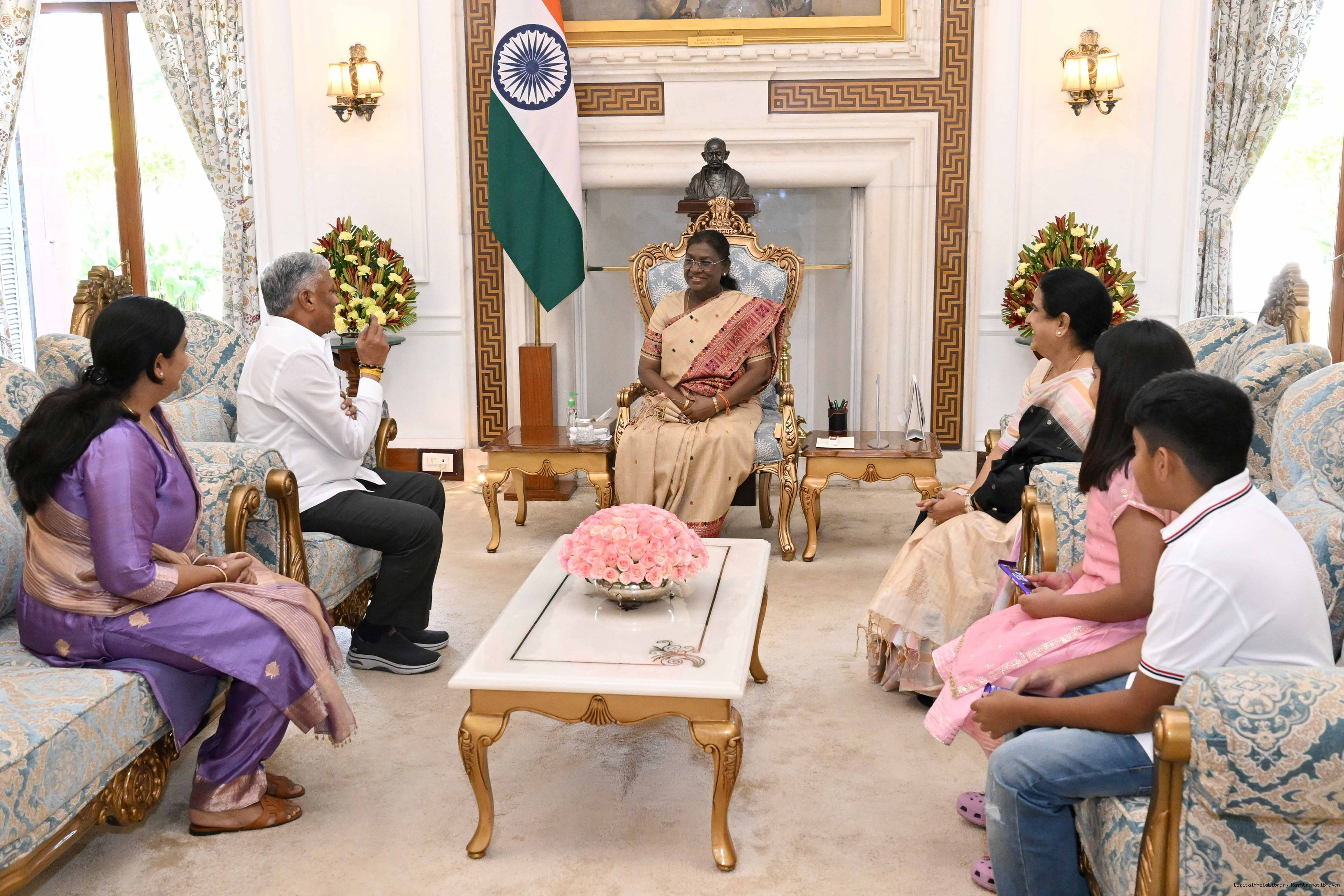 | Caption: | Shri V. Somanna, MoS for Railwaysand Jal Shakti along with spouse Smt. Gangadharaiash Shylaja and others meeting with the President of India, Smt. Droupadi Murmu at Rashtrapati Bhavan on September 26, 2025. |