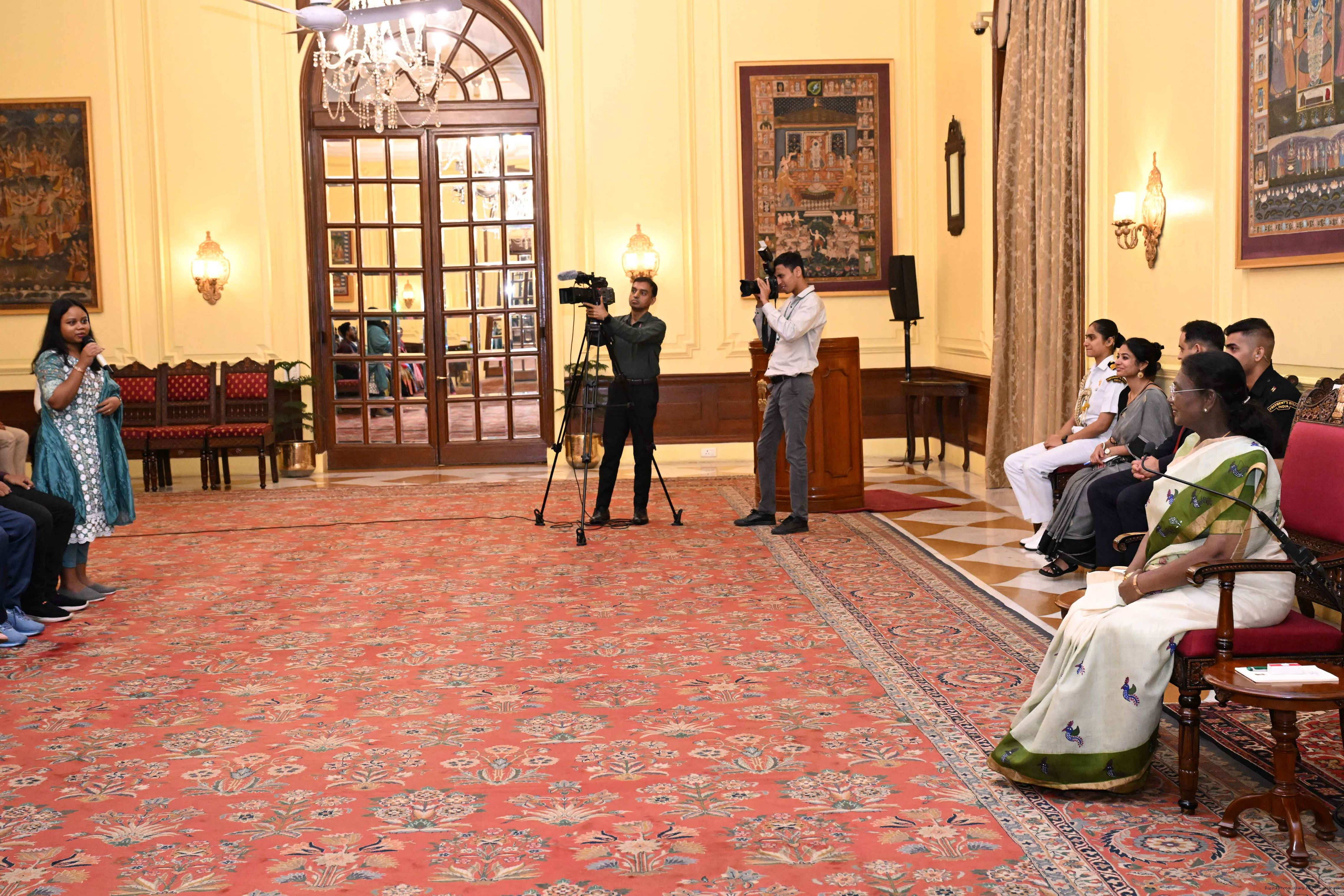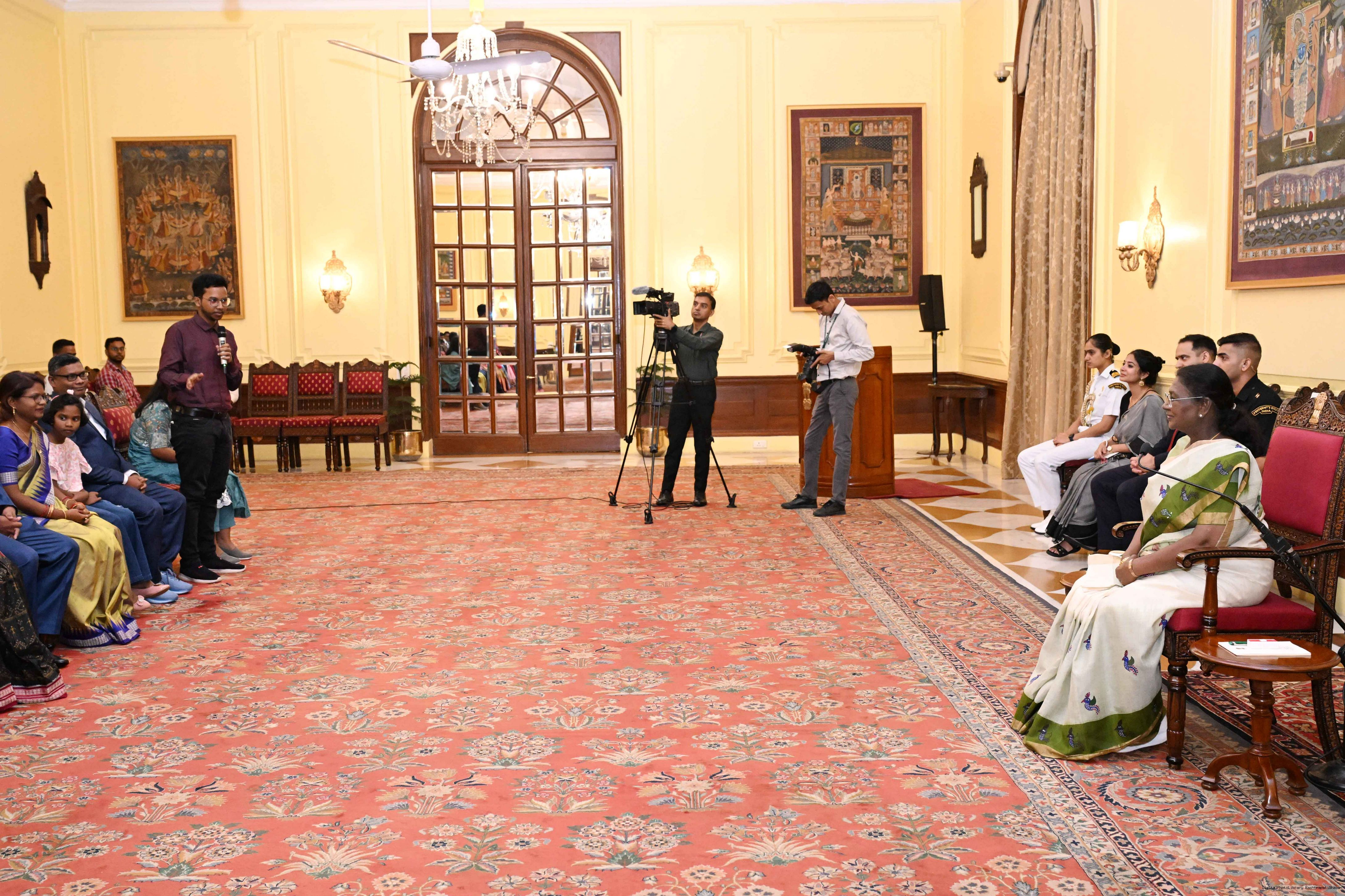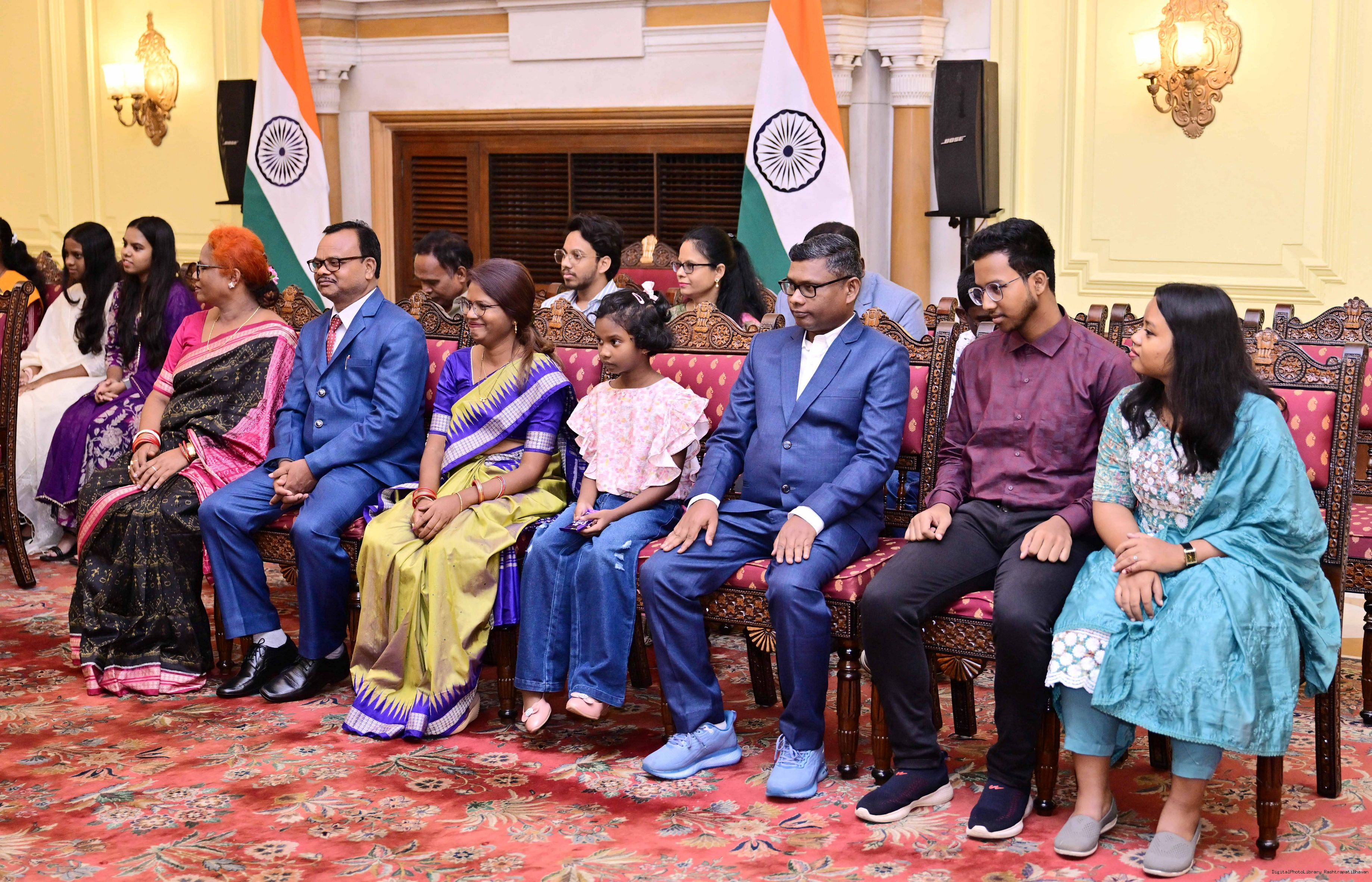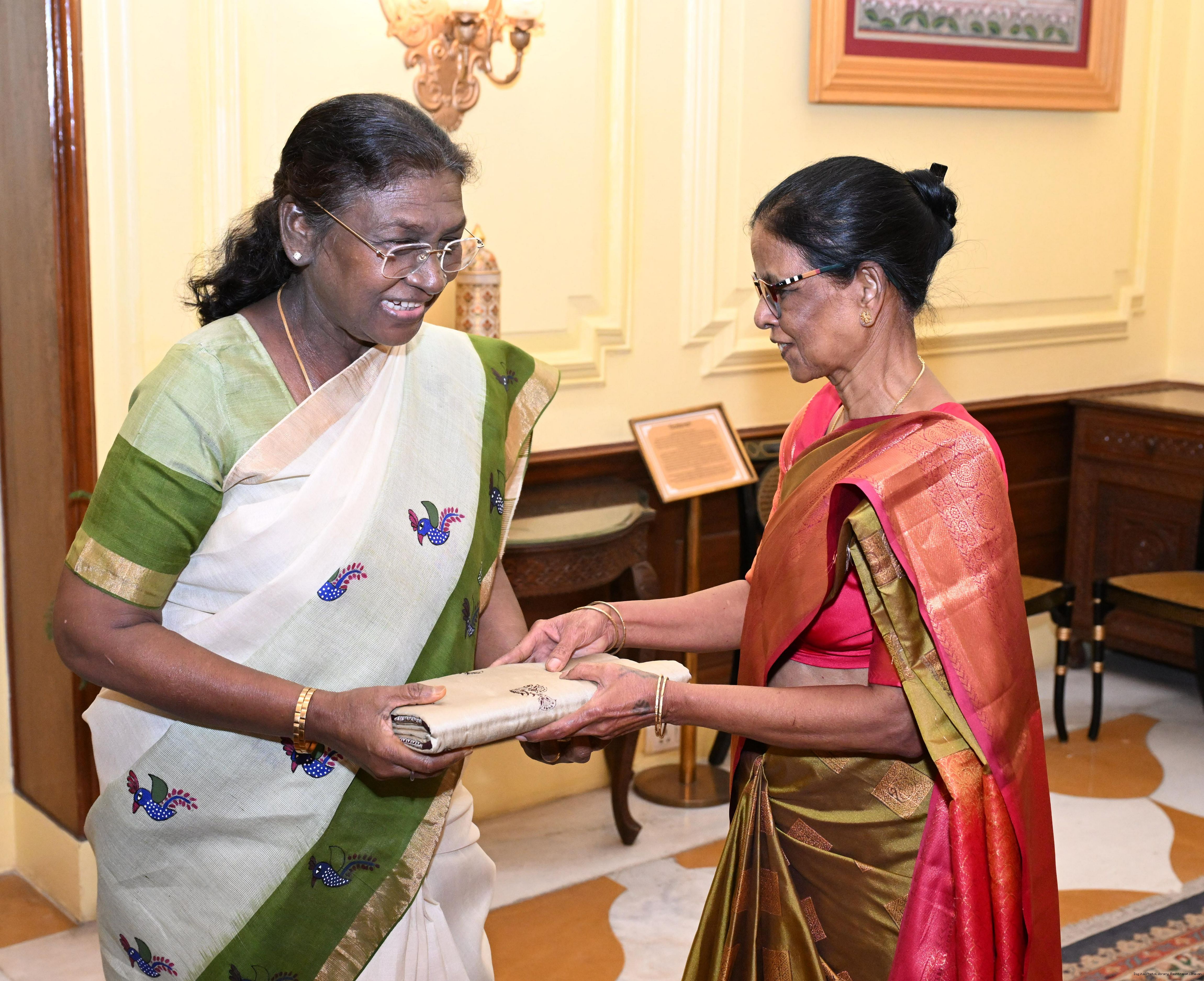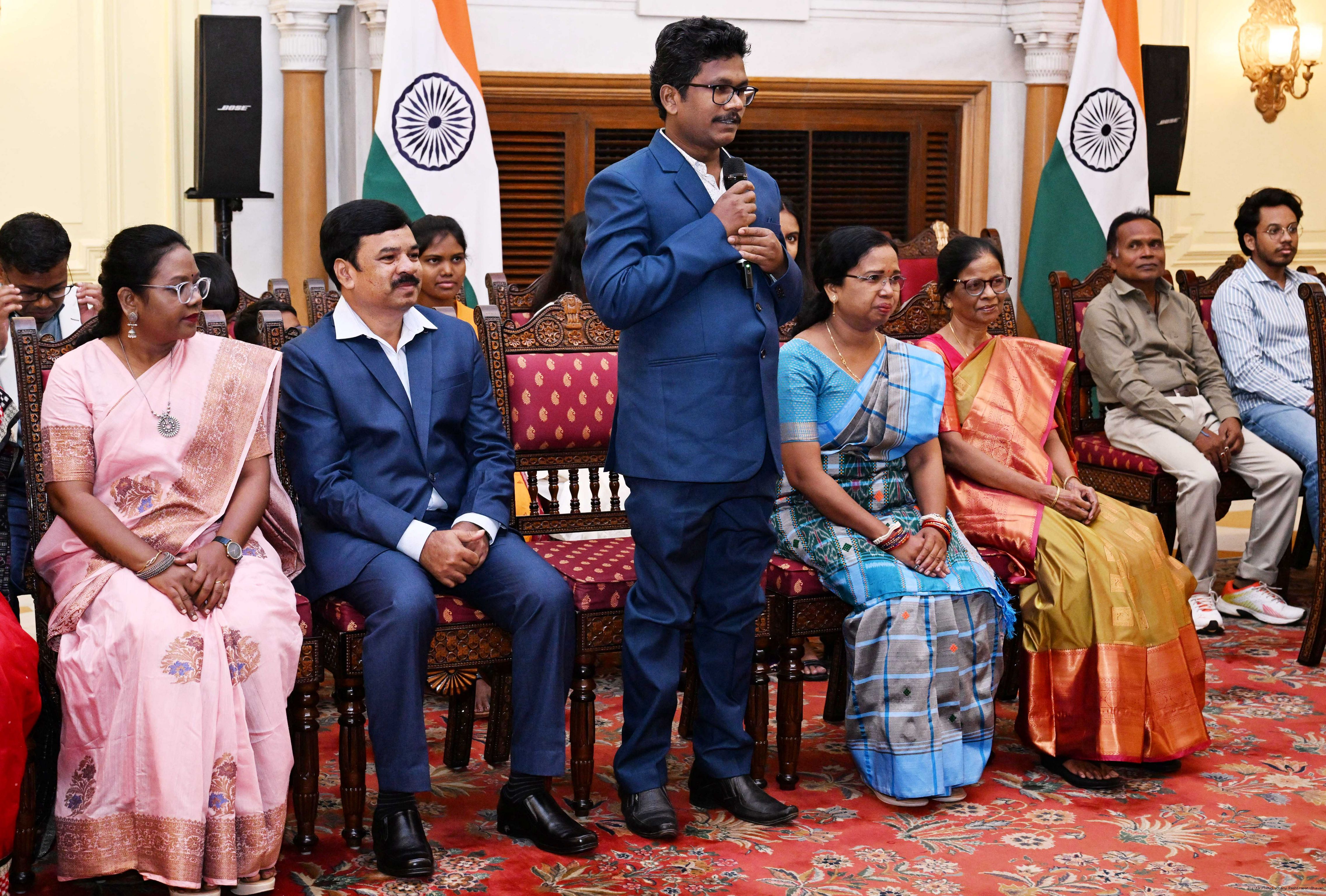 | Caption: | Smt. Saraswati Soren, Gadadharpur, Mayurbhanj along with 26 others meeting with the President of India, Smt. Droupadi Murmu at Rashtrapati Bhavan on September 30, 2025. |