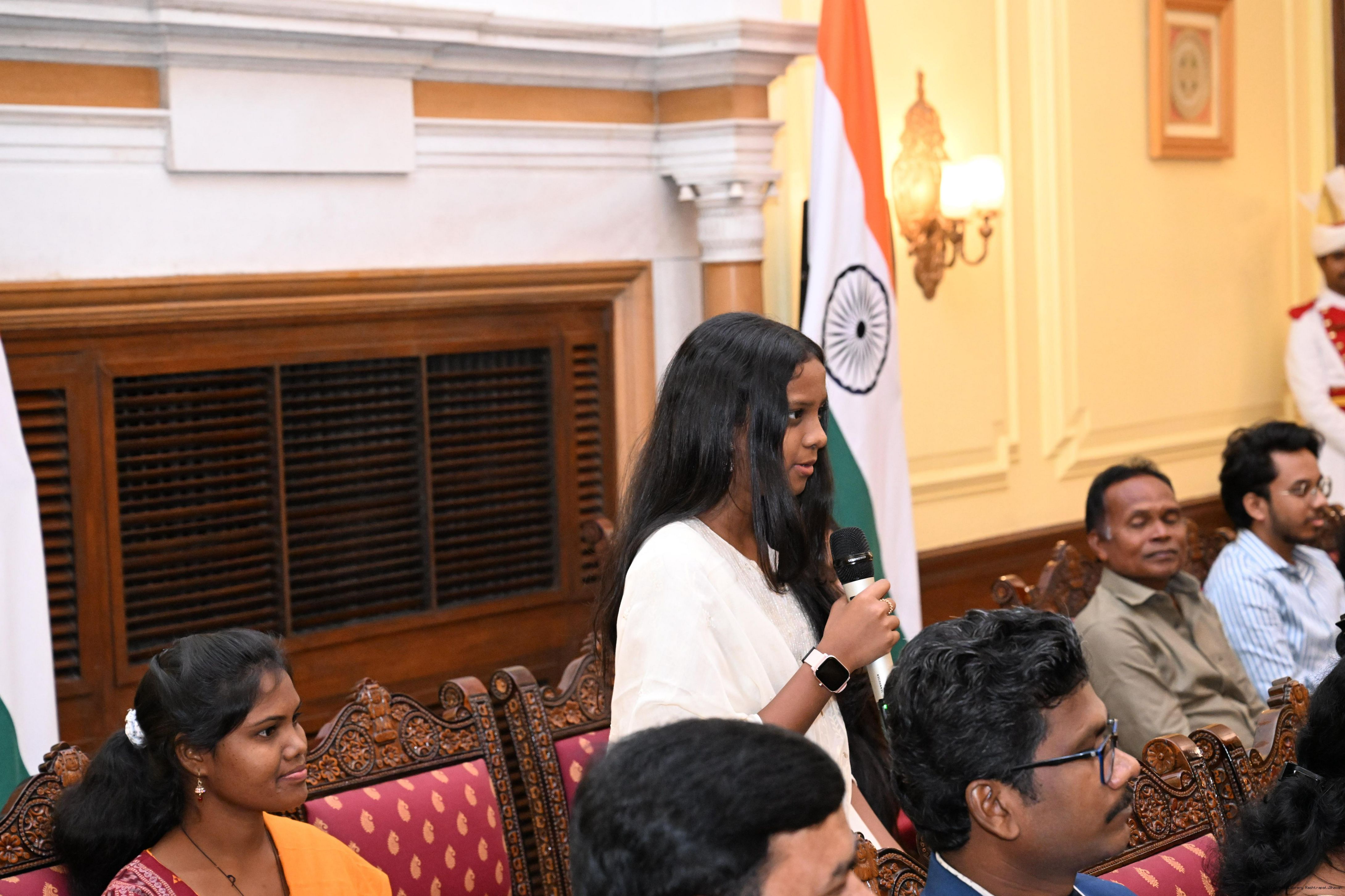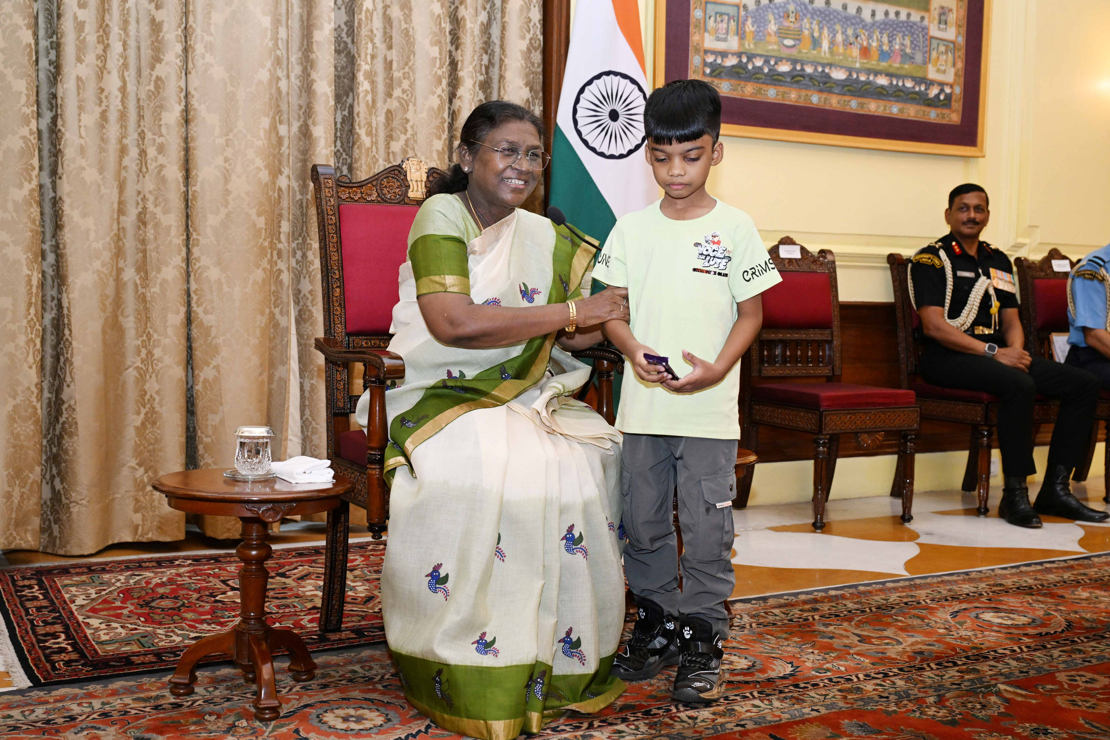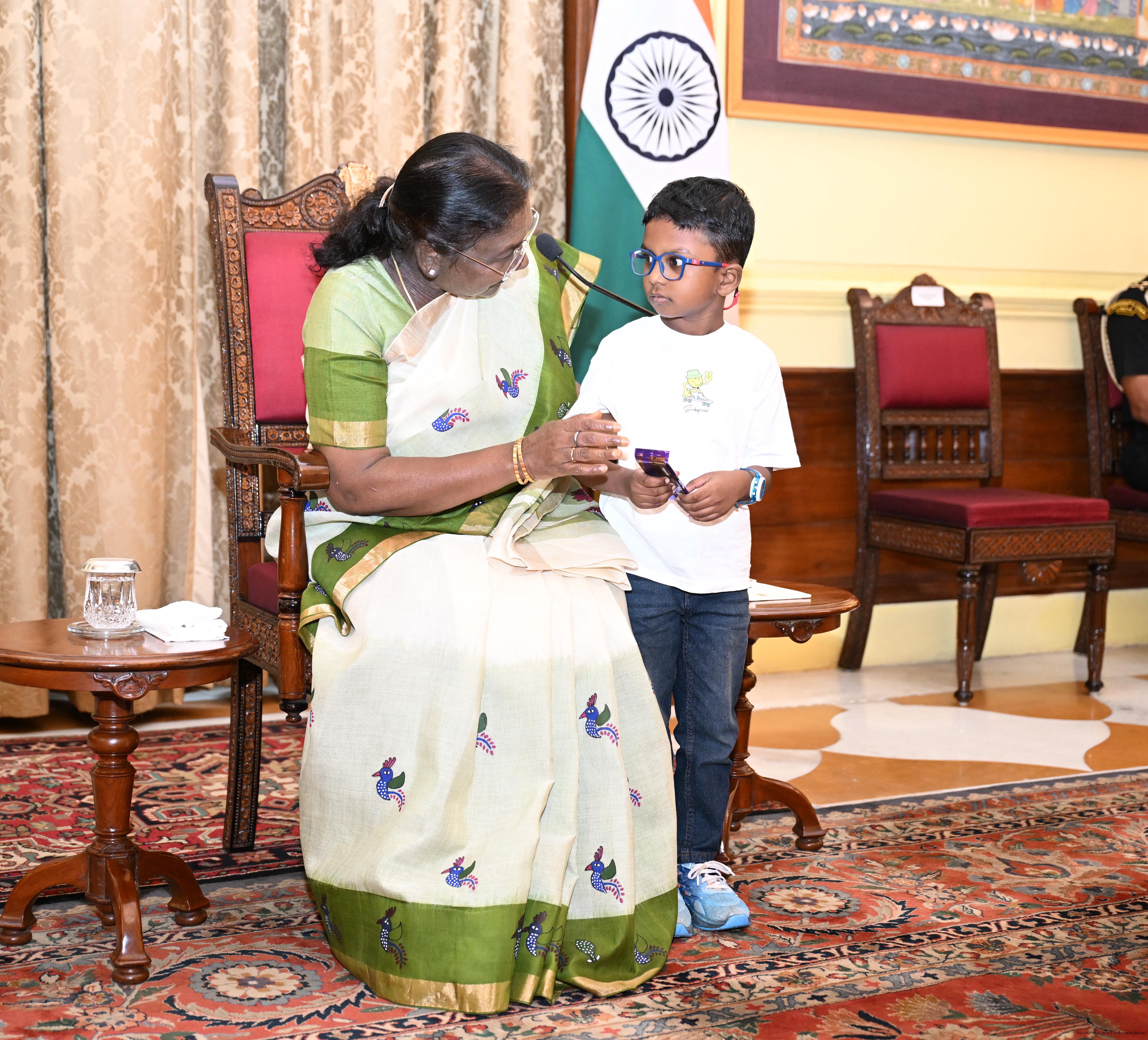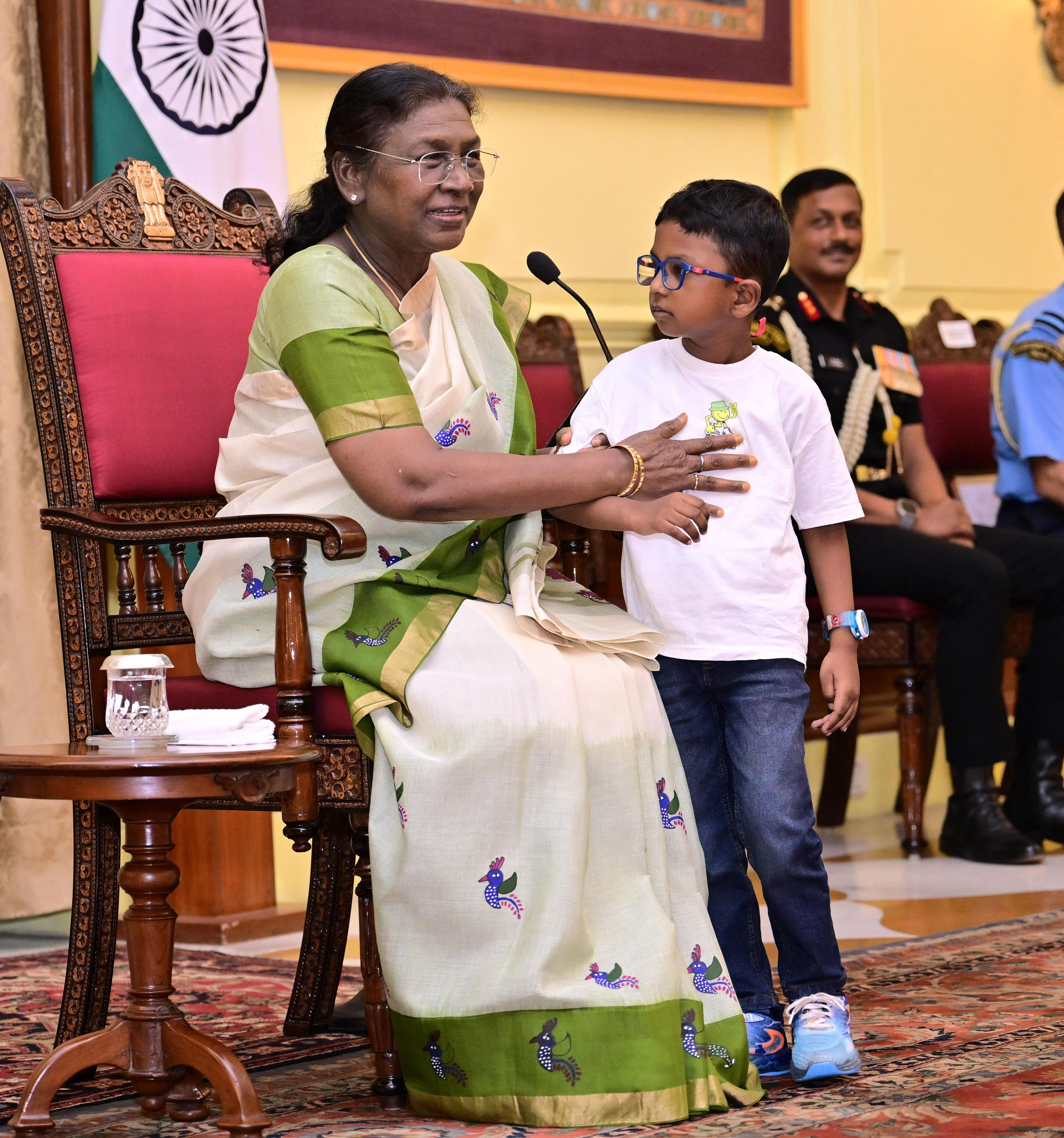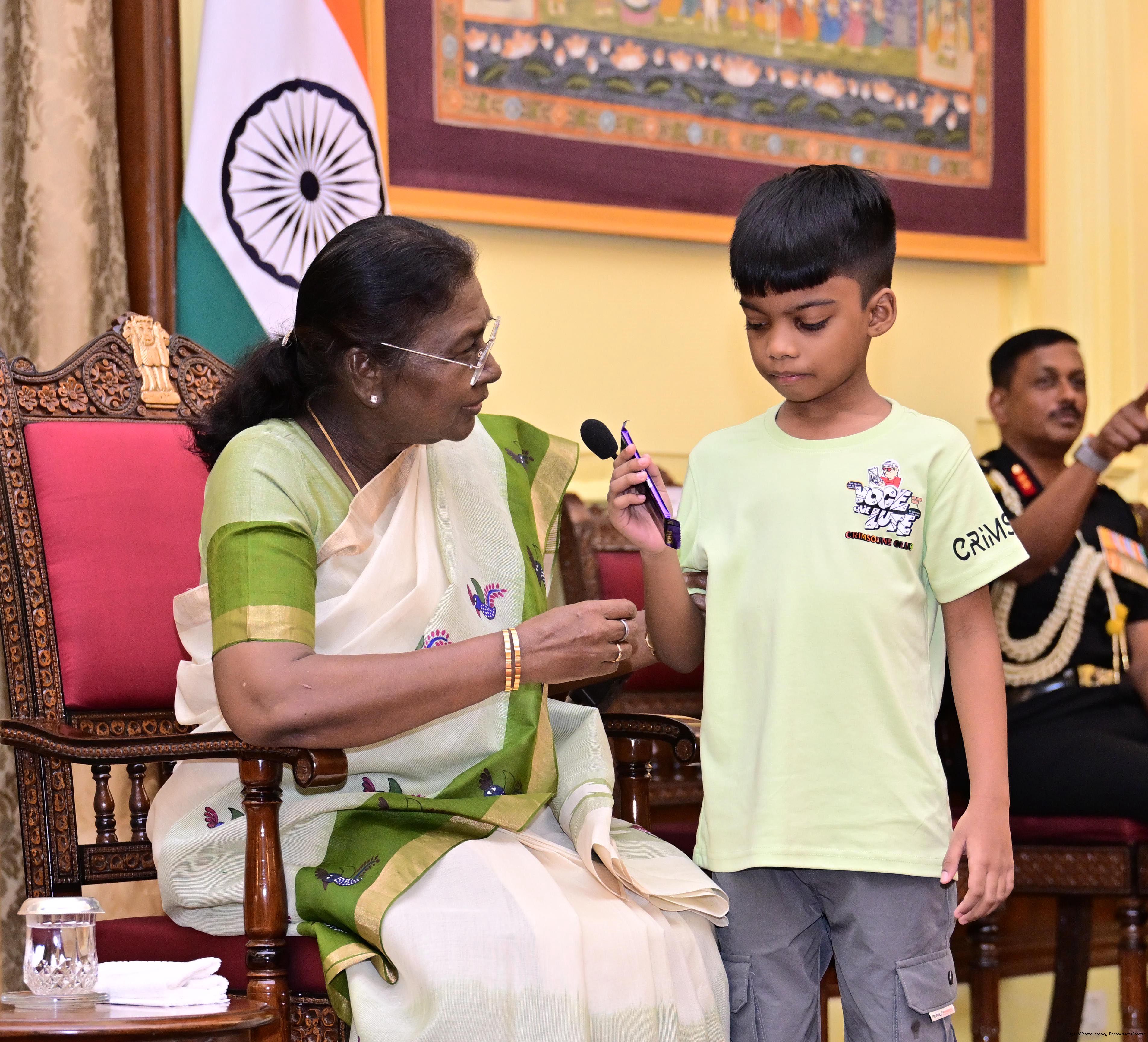 | Caption: | Smt. Saraswati Soren, Gadadharpur, Mayurbhanj along with 26 others meeting with the President of India, Smt. Droupadi Murmu at Rashtrapati Bhavan on September 30, 2025. |