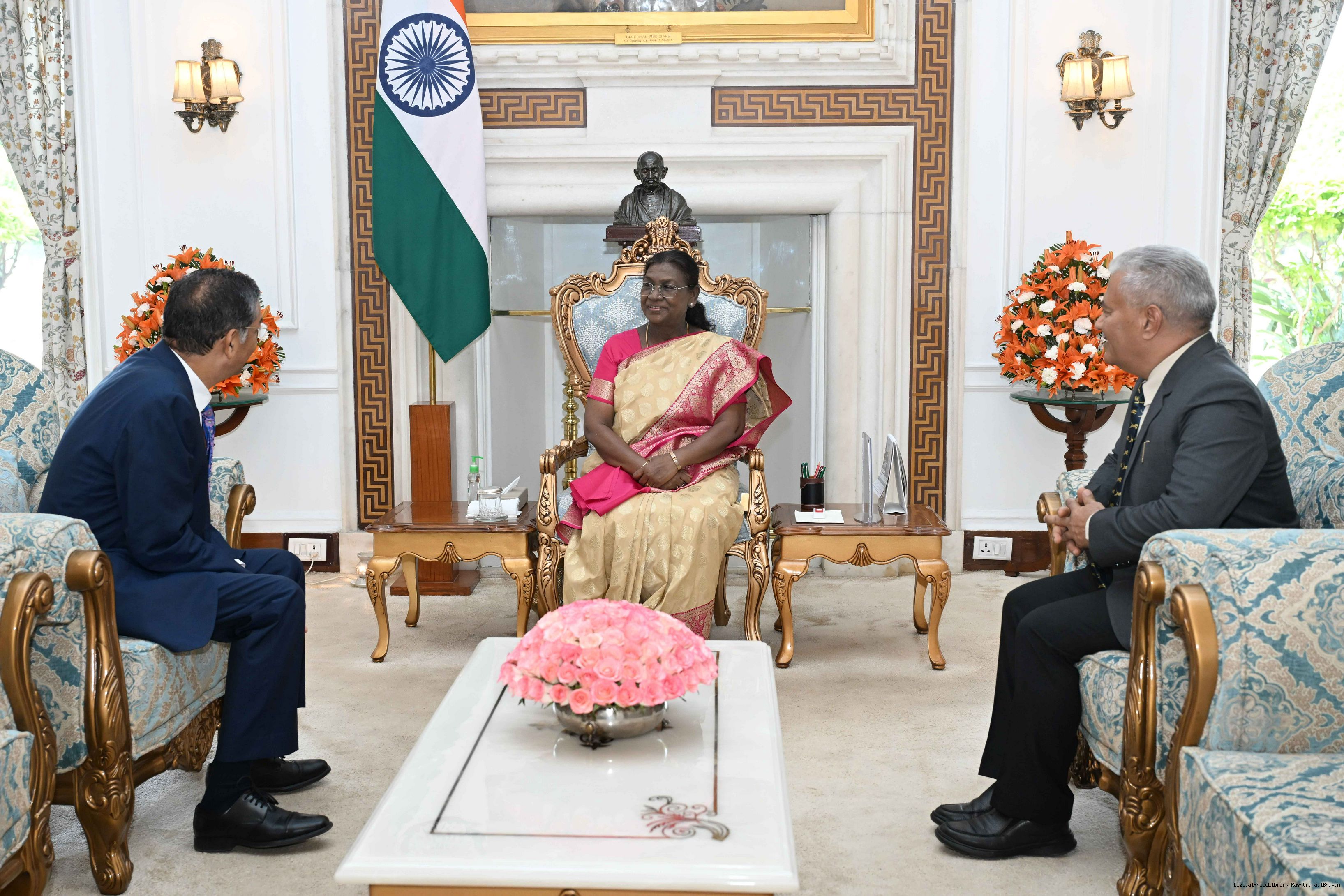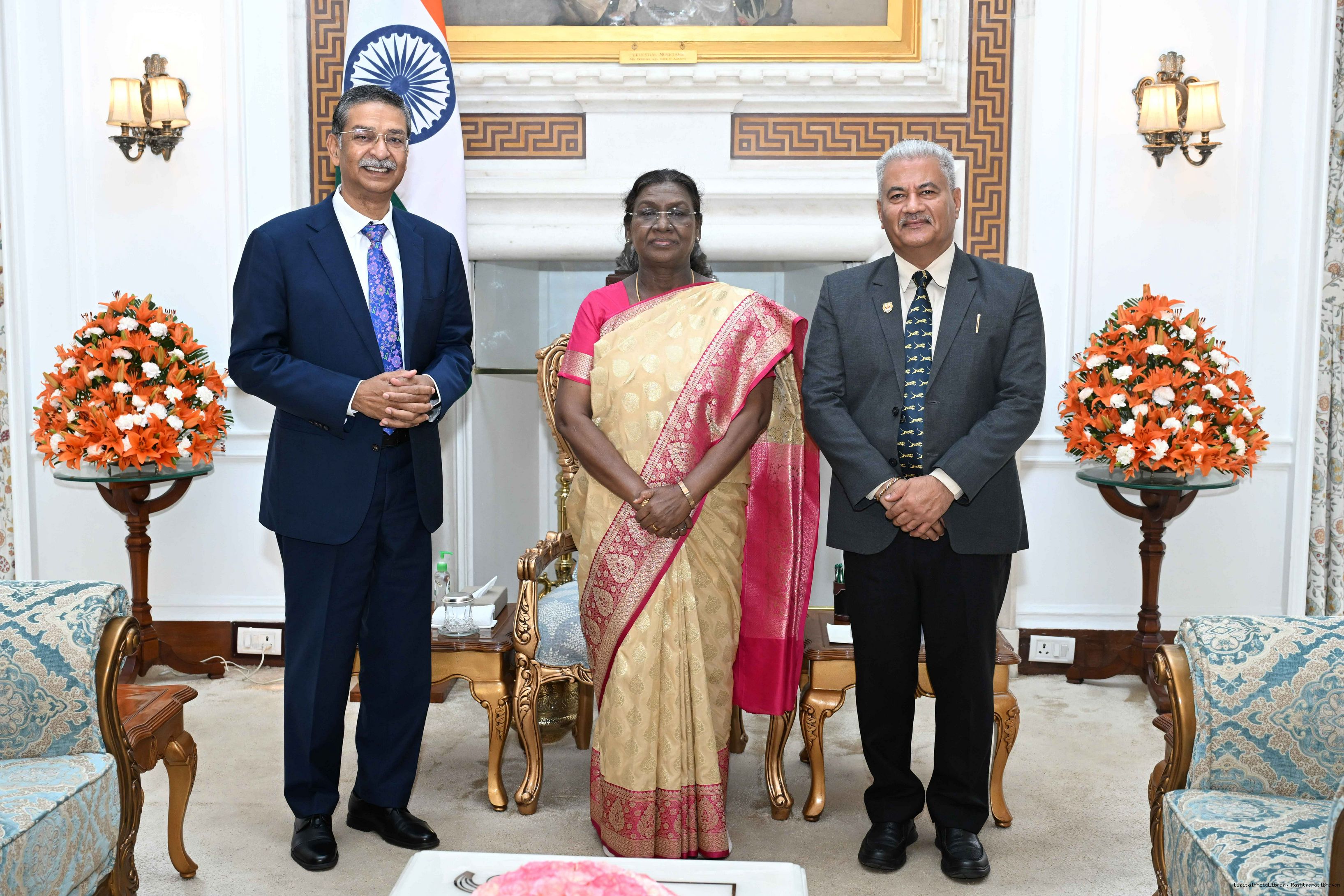 | Caption: | Shri Bharat Lal, Secretary General National Human Rights Commission along with Dr. S.P. Yadav, Director General, International Big Cat Alliance meeting with the President of India, Smt. Droupadi Murmu at Rashtrapati Bhavan on October 1, 2025. |