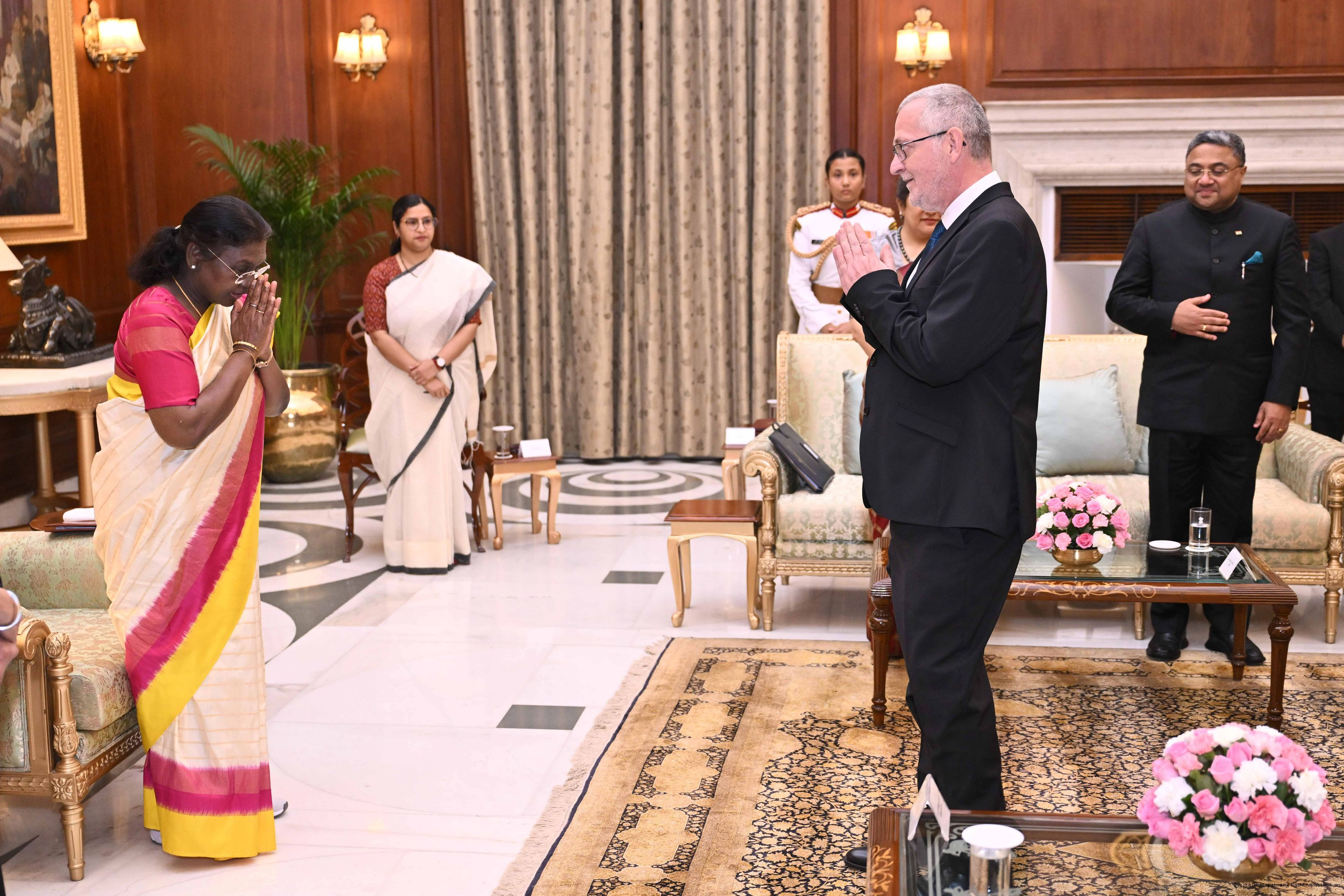 | Caption: | The Ambassador-designate of the Republic of Slovenia, H.E. Mr. Tomaz Mencin presenting his credentials to the President of India, Smt Droupadi Murmu at Ashok Hall of Rashtrapati Bhavan in New Delhi on on October 3, 2025. |