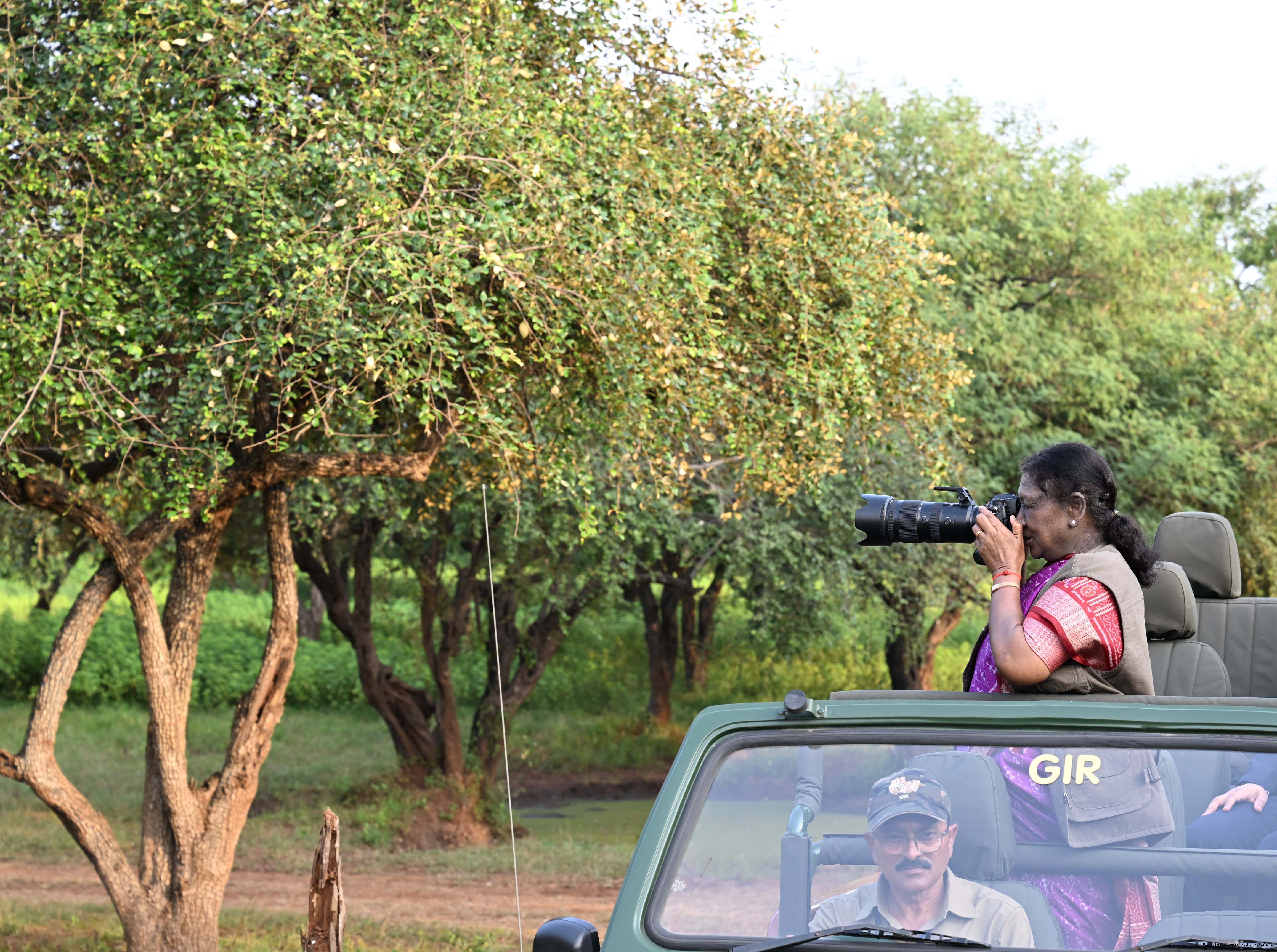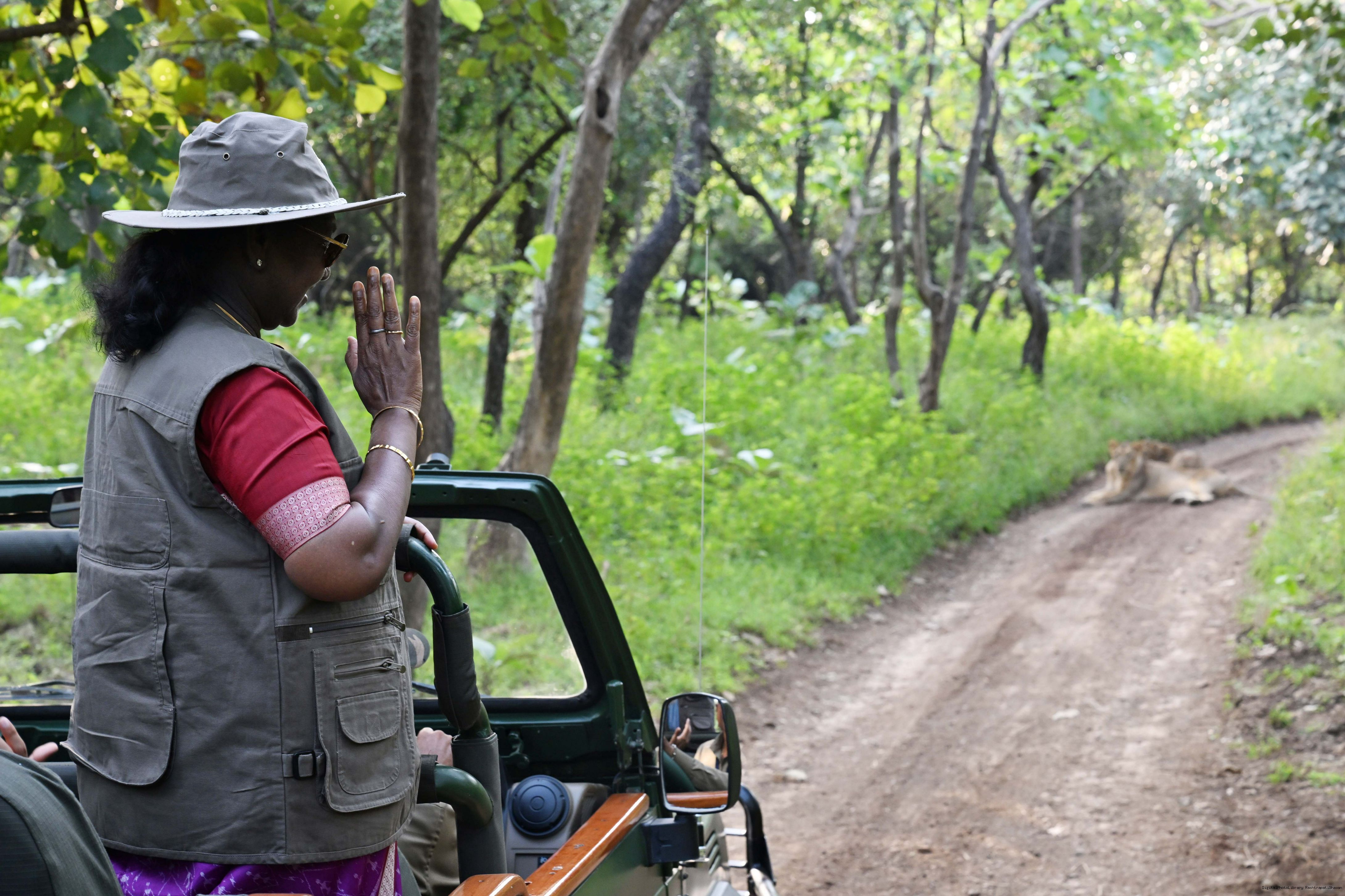 | Caption: | The President of India, Smt. Droupadi Murmu addresses the members of the local tribal community at Sasan Gir, Gujarat on October 10, 2025. |
