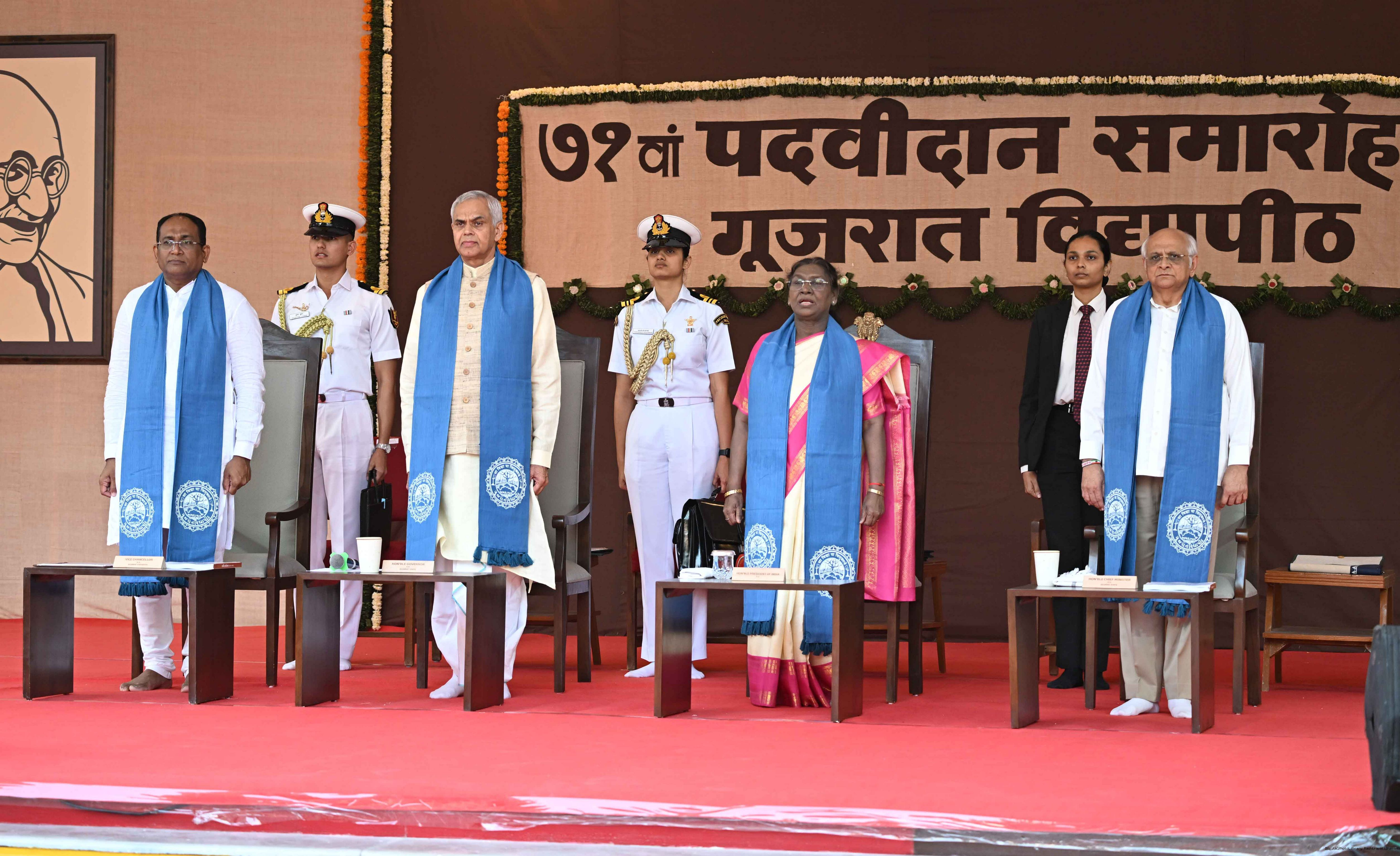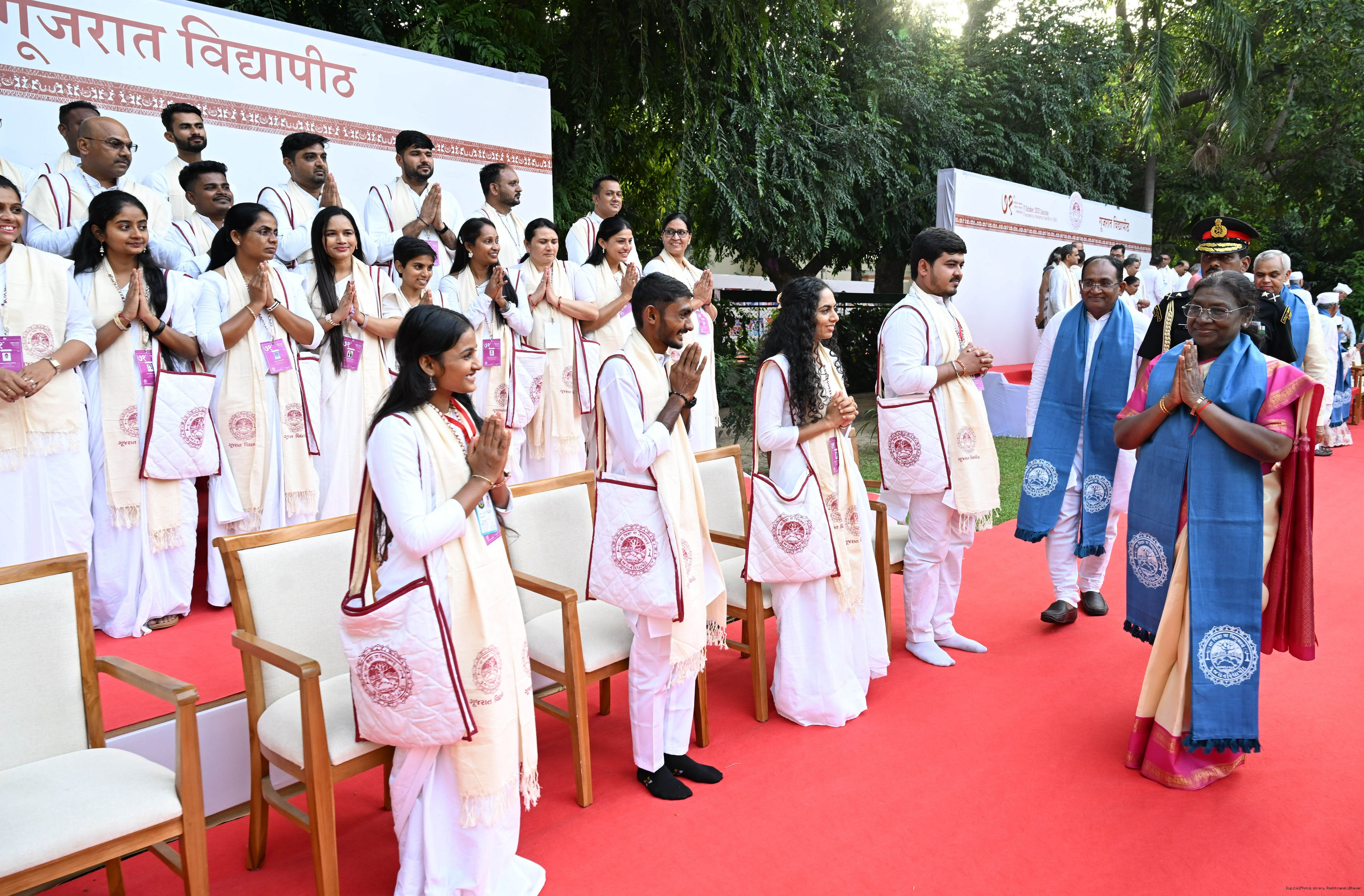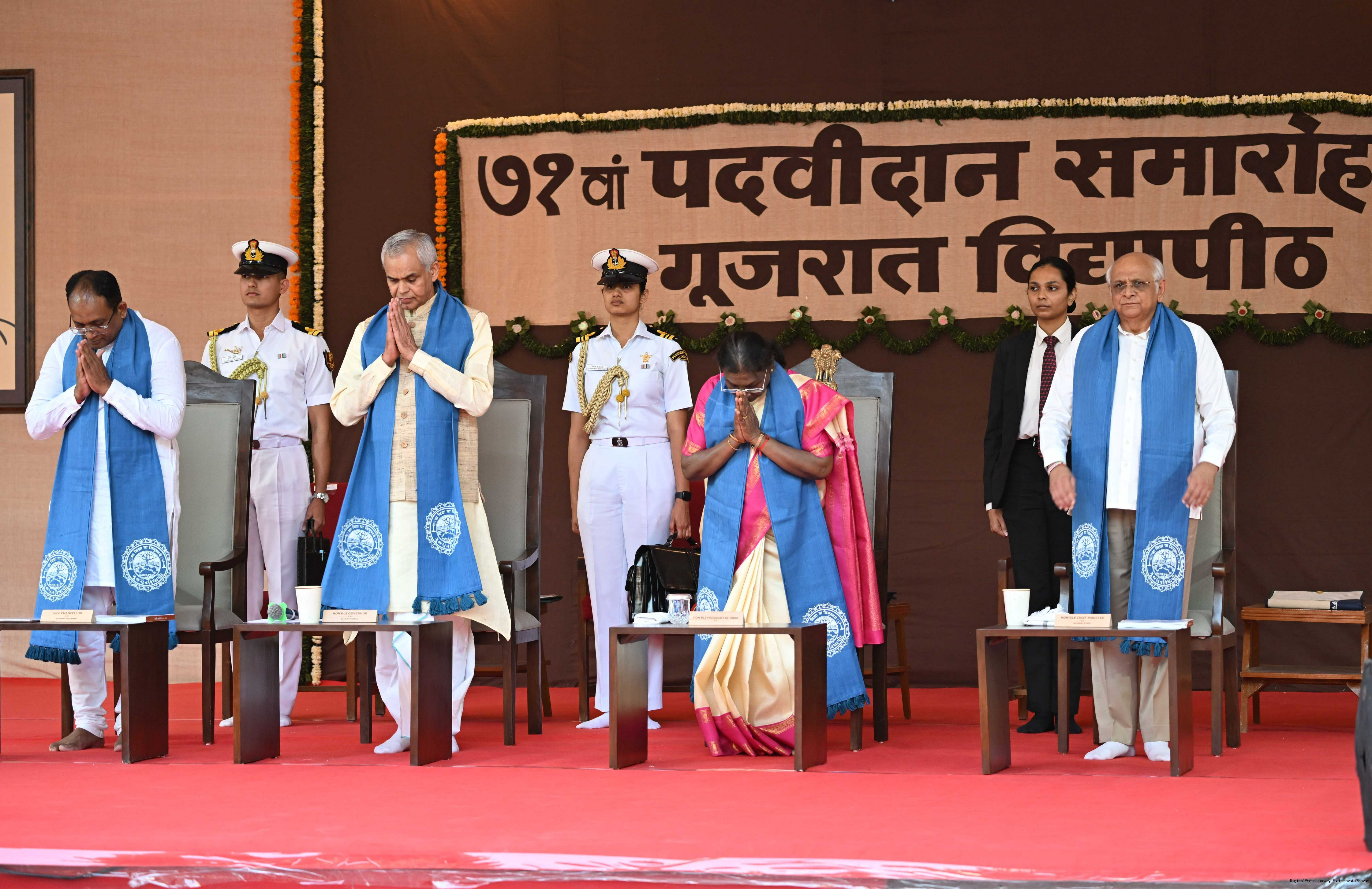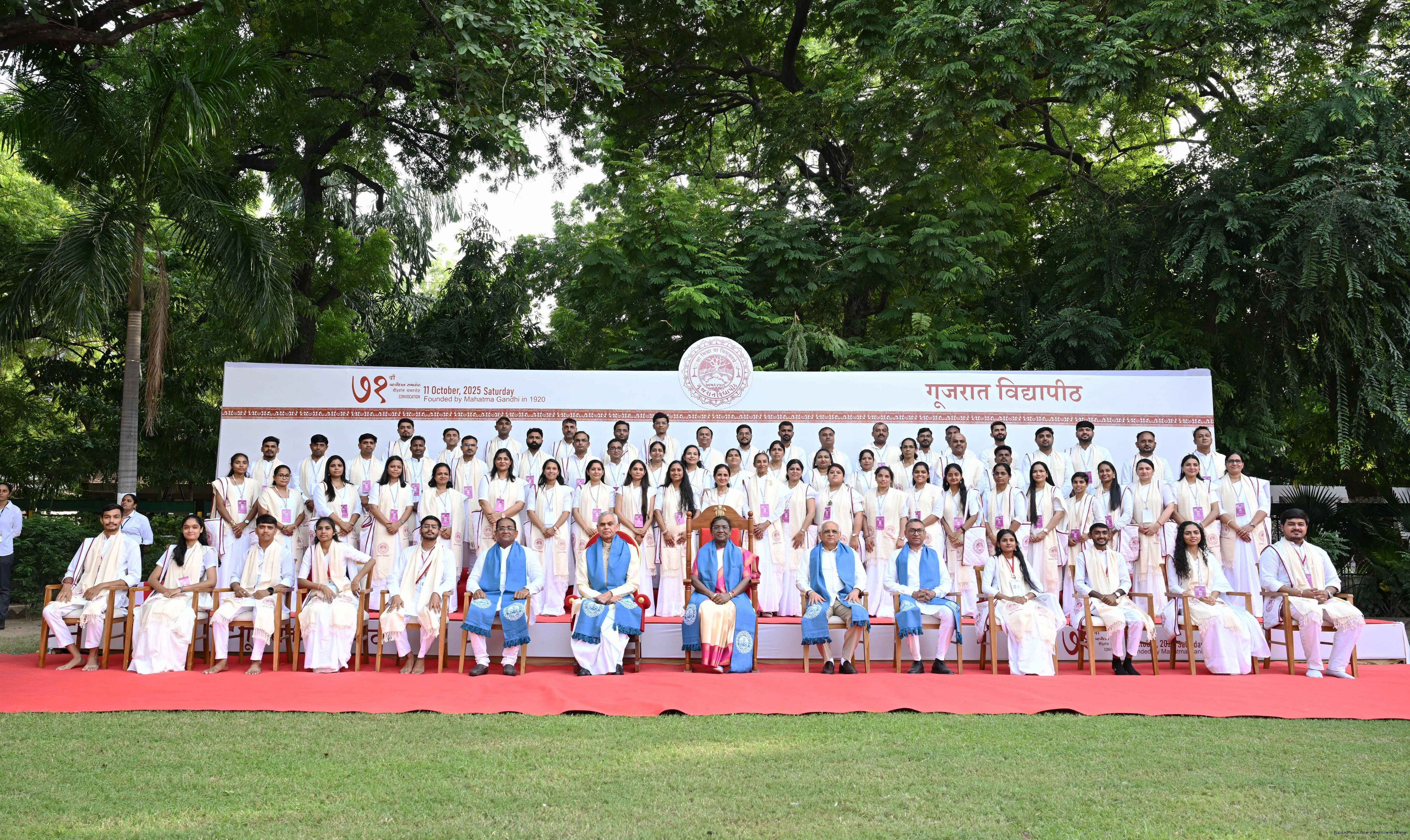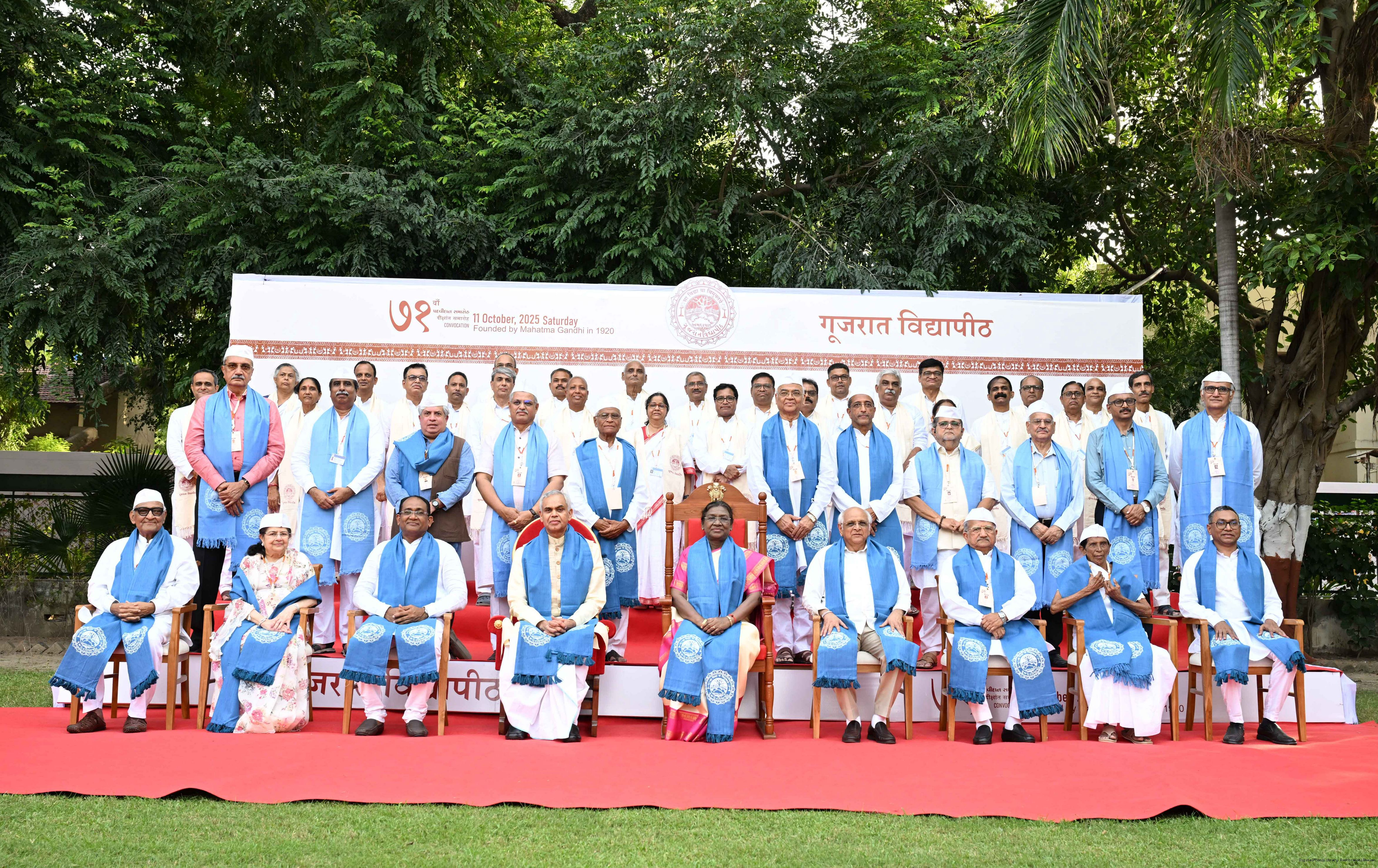 | Caption: | The President of India, Smt Droupadi Murmu, graced the 71st convocation ceremony of Gujarat Vidyapith at Ahmedabad on October 11, 2025. |