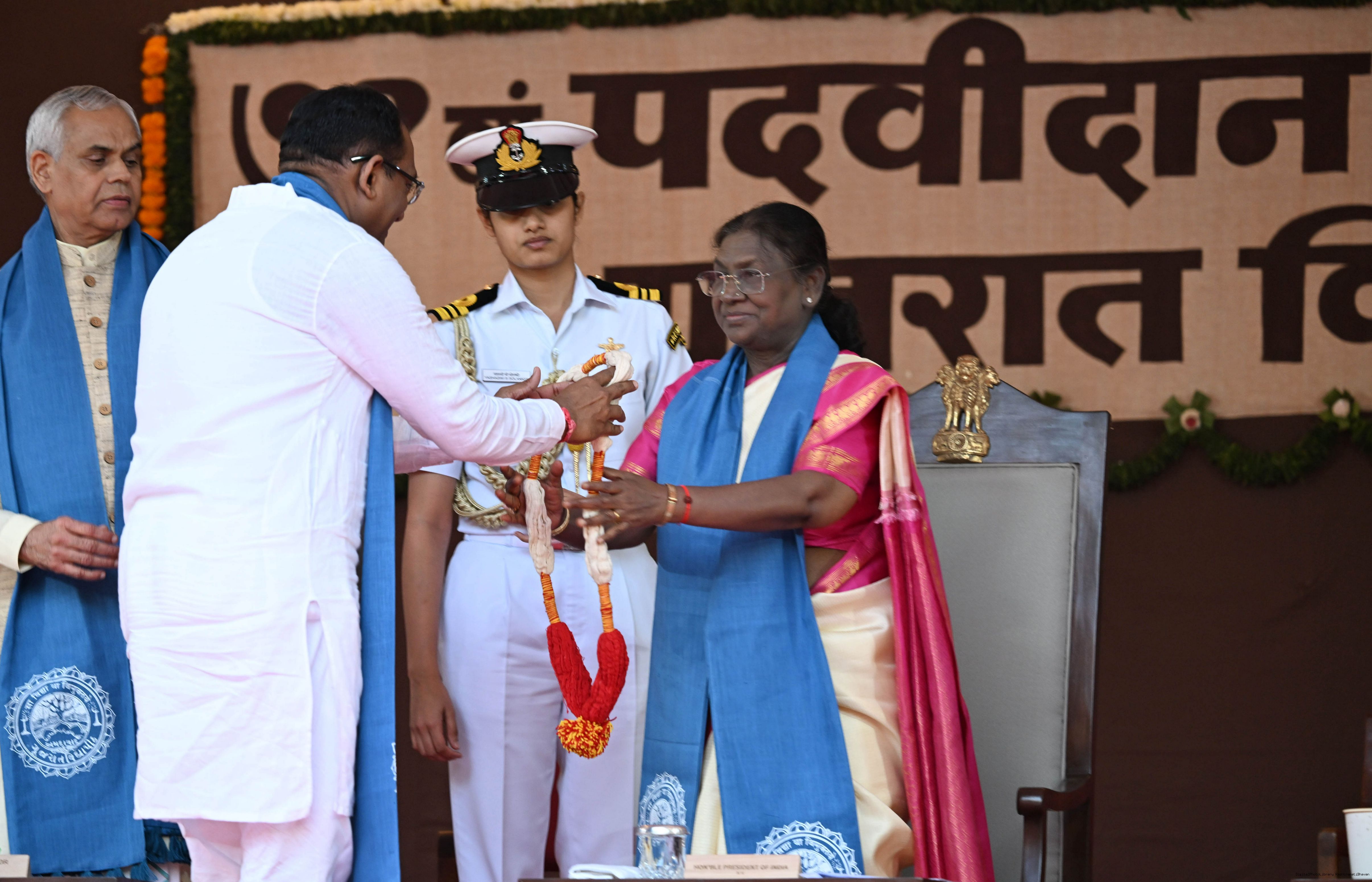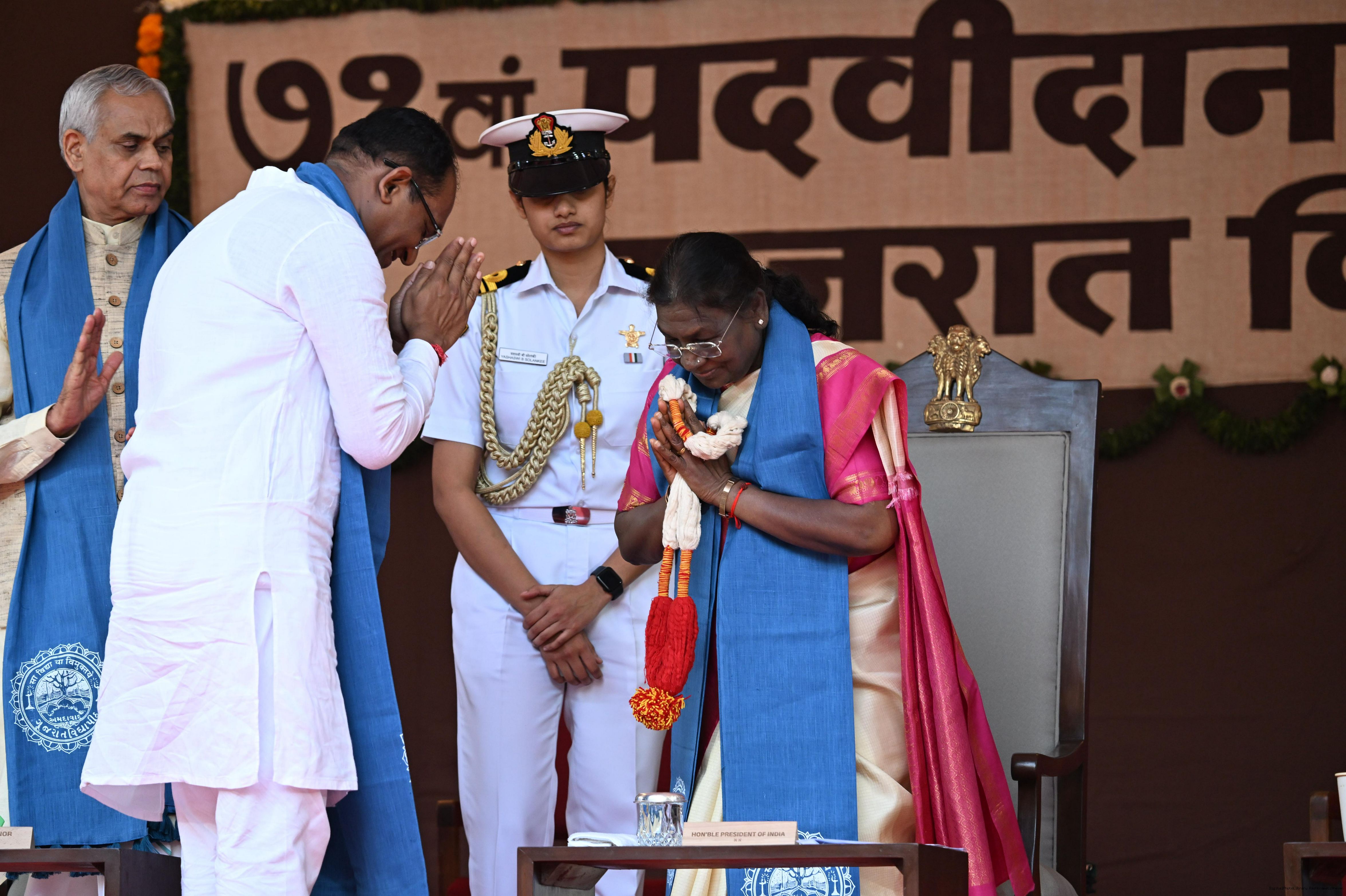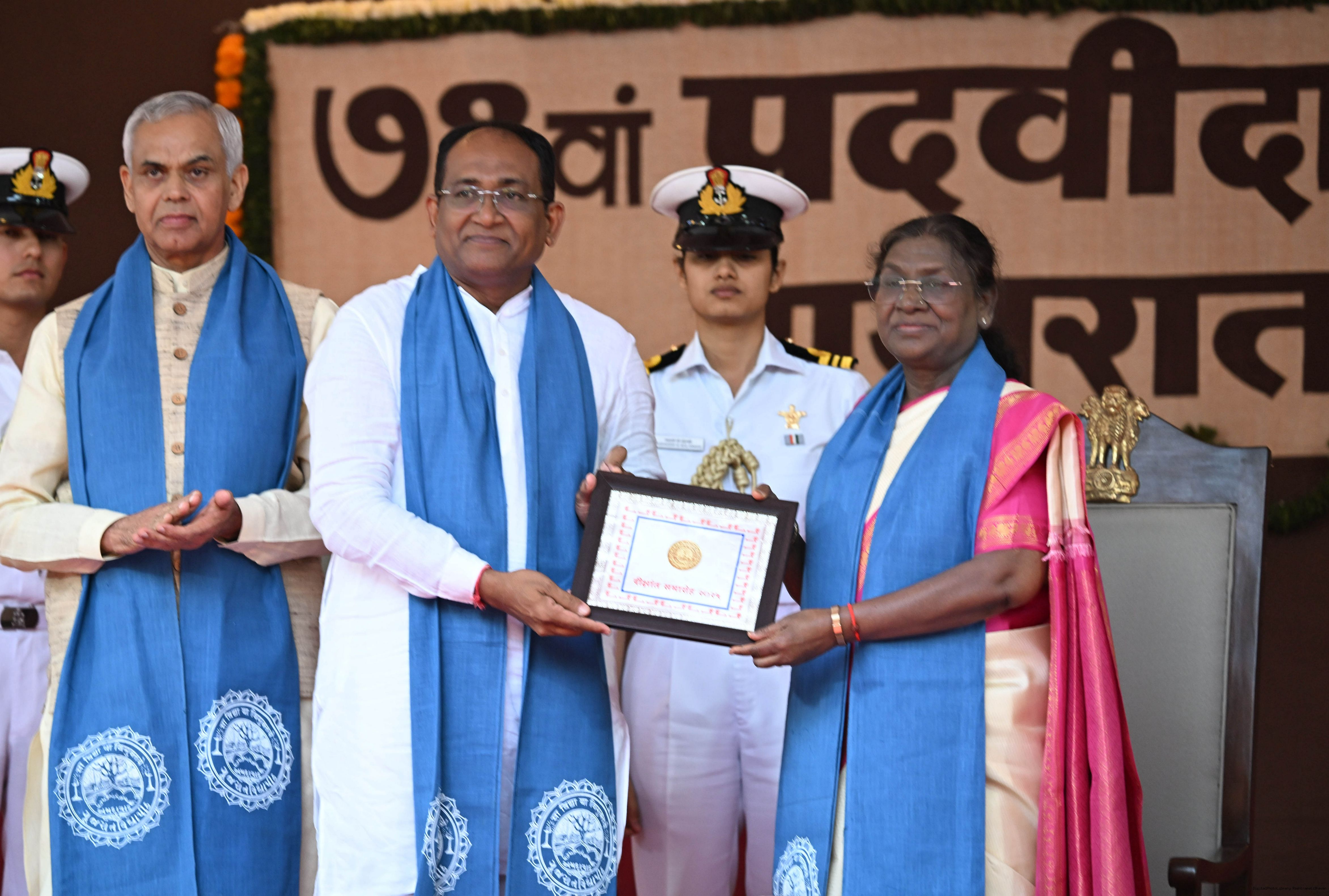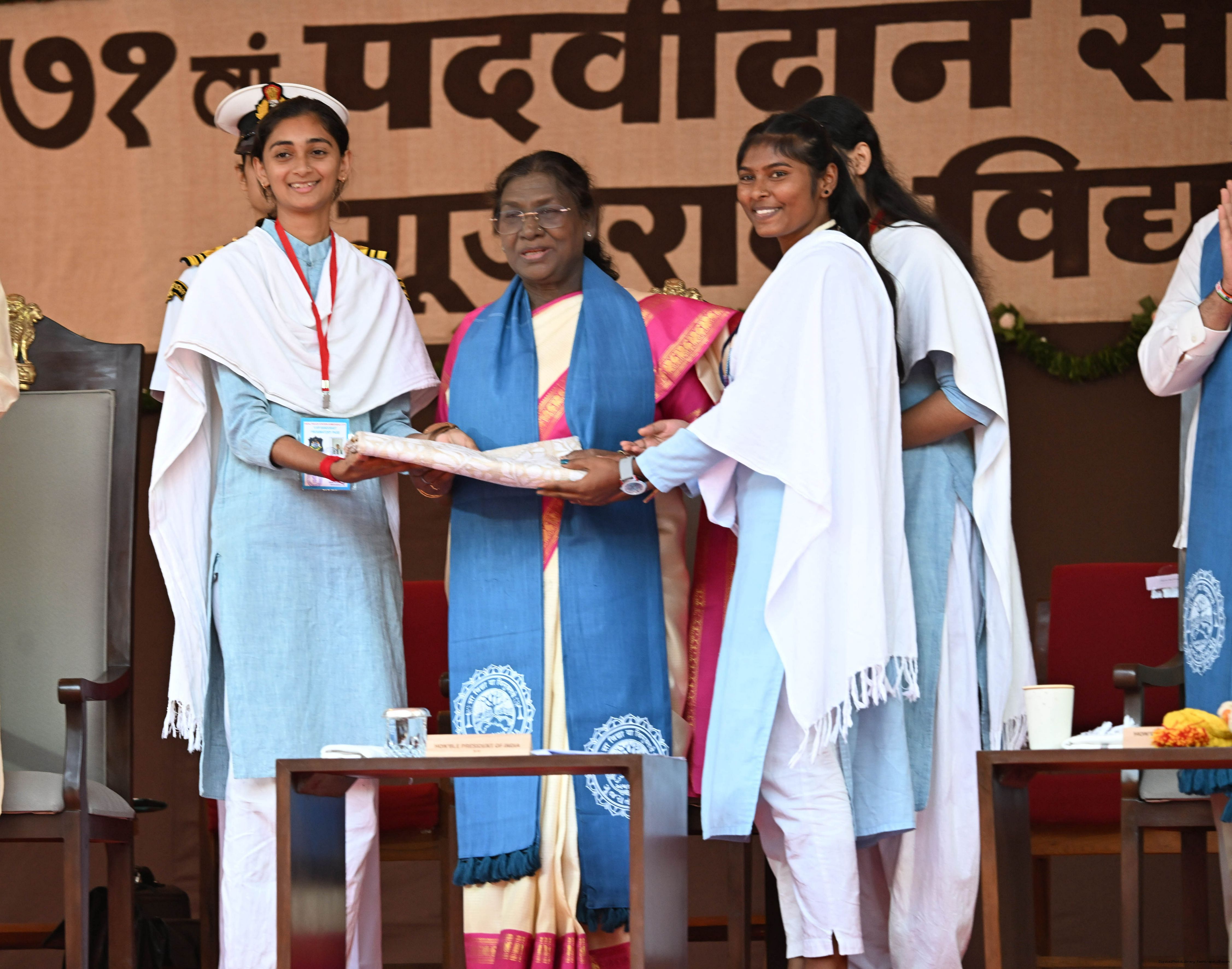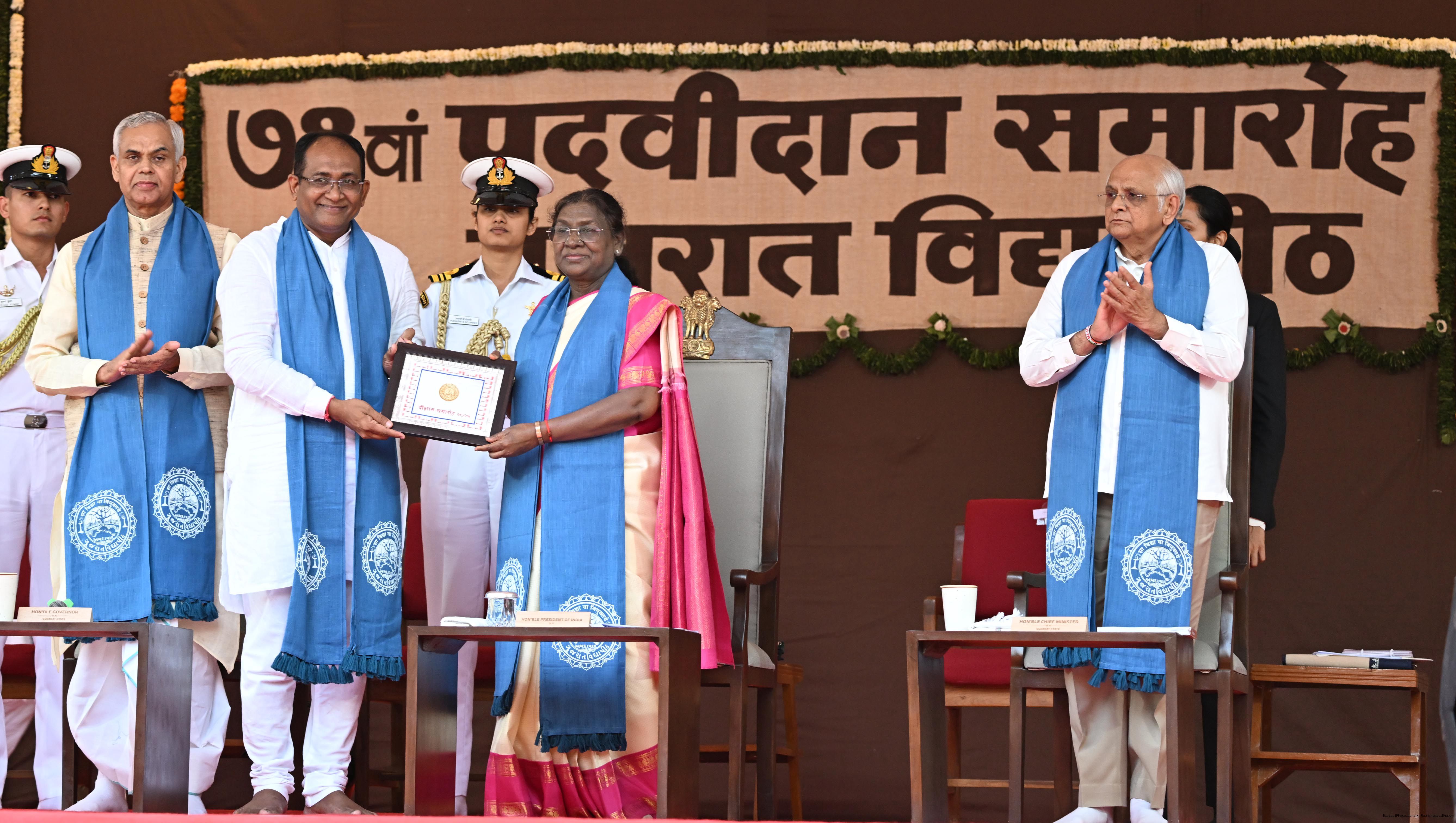 | Caption: | The President of India, Smt Droupadi Murmu, graced the 71st convocation ceremony of Gujarat Vidyapith at Ahmedabad on October 11, 2025. |