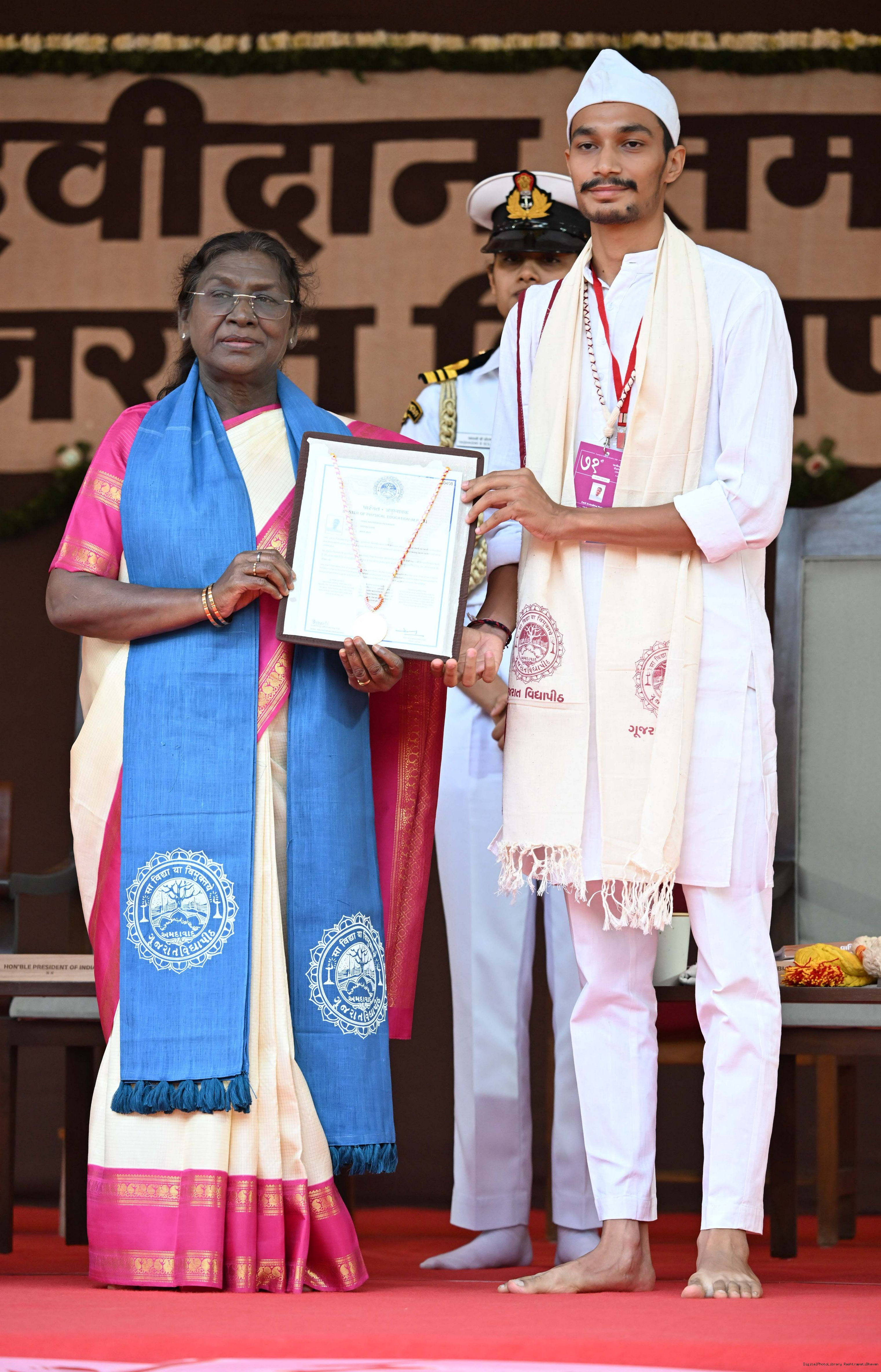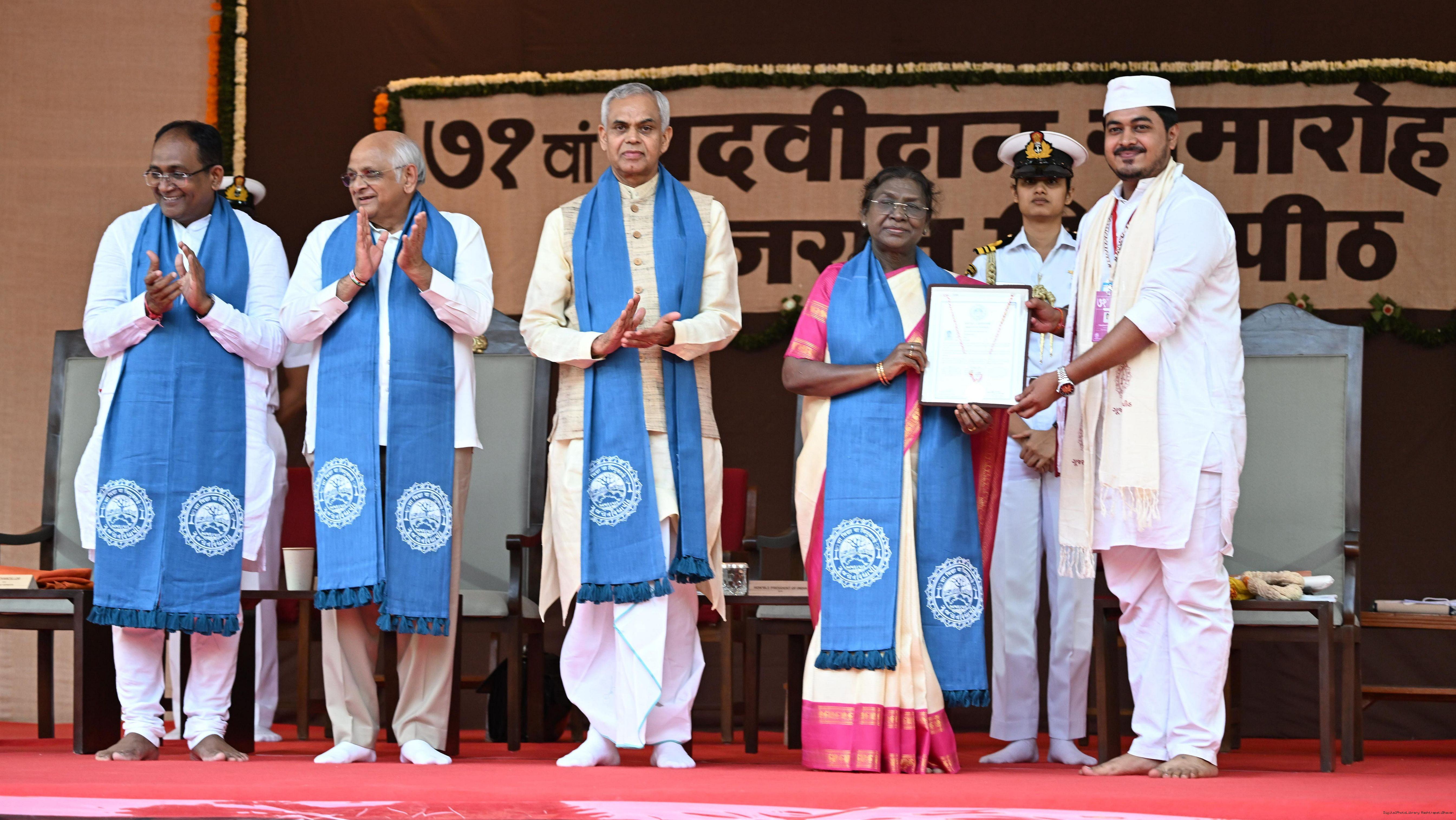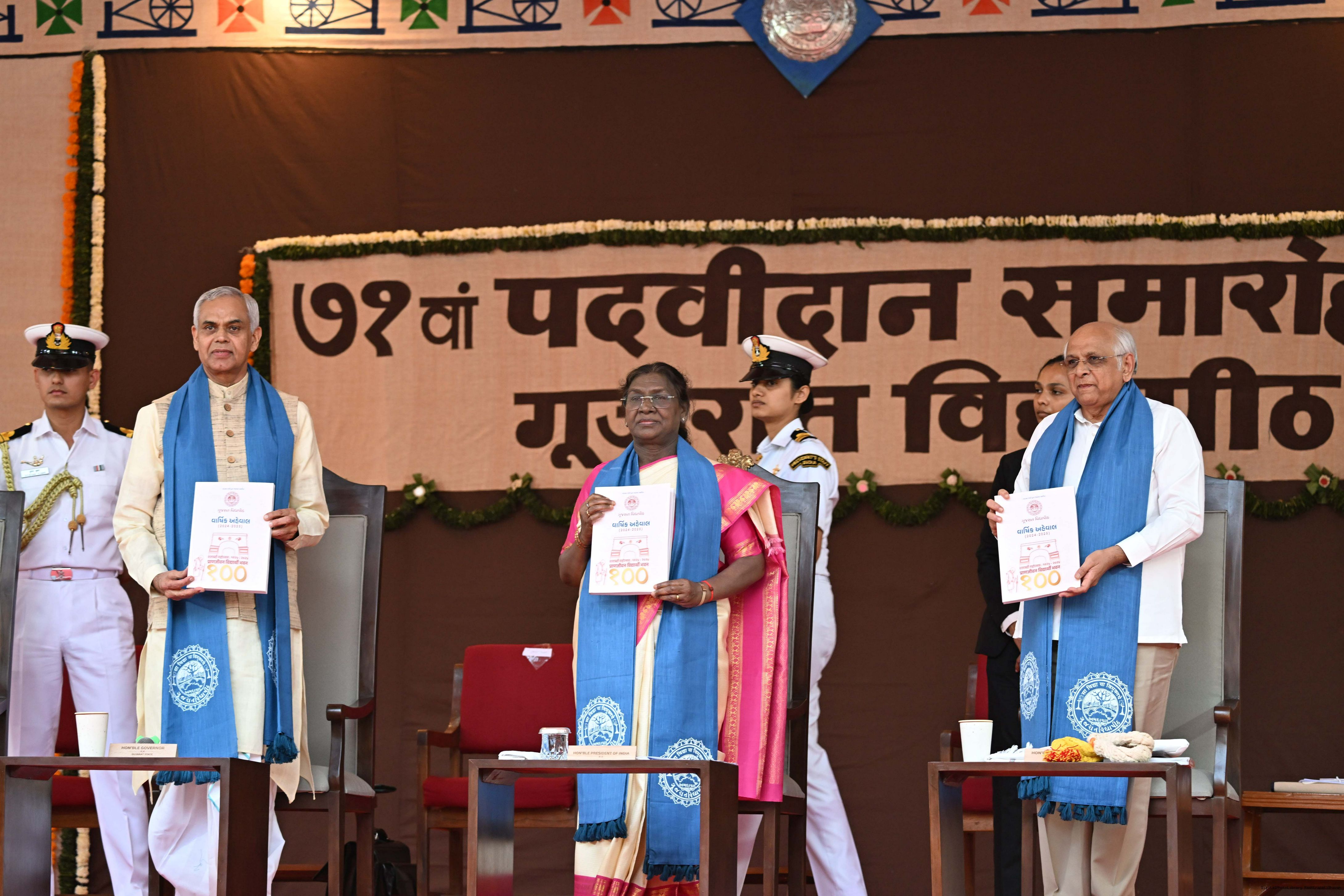 | Caption: | The President of India, Smt Droupadi Murmu, graced the 71st convocation ceremony of Gujarat Vidyapith at Ahmedabad on October 11, 2025. |