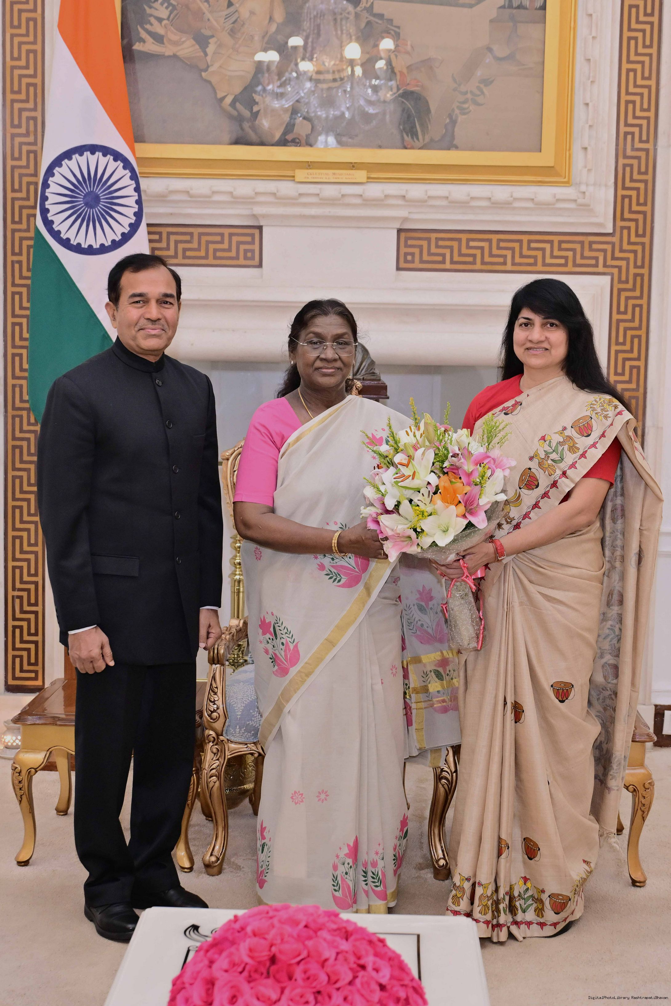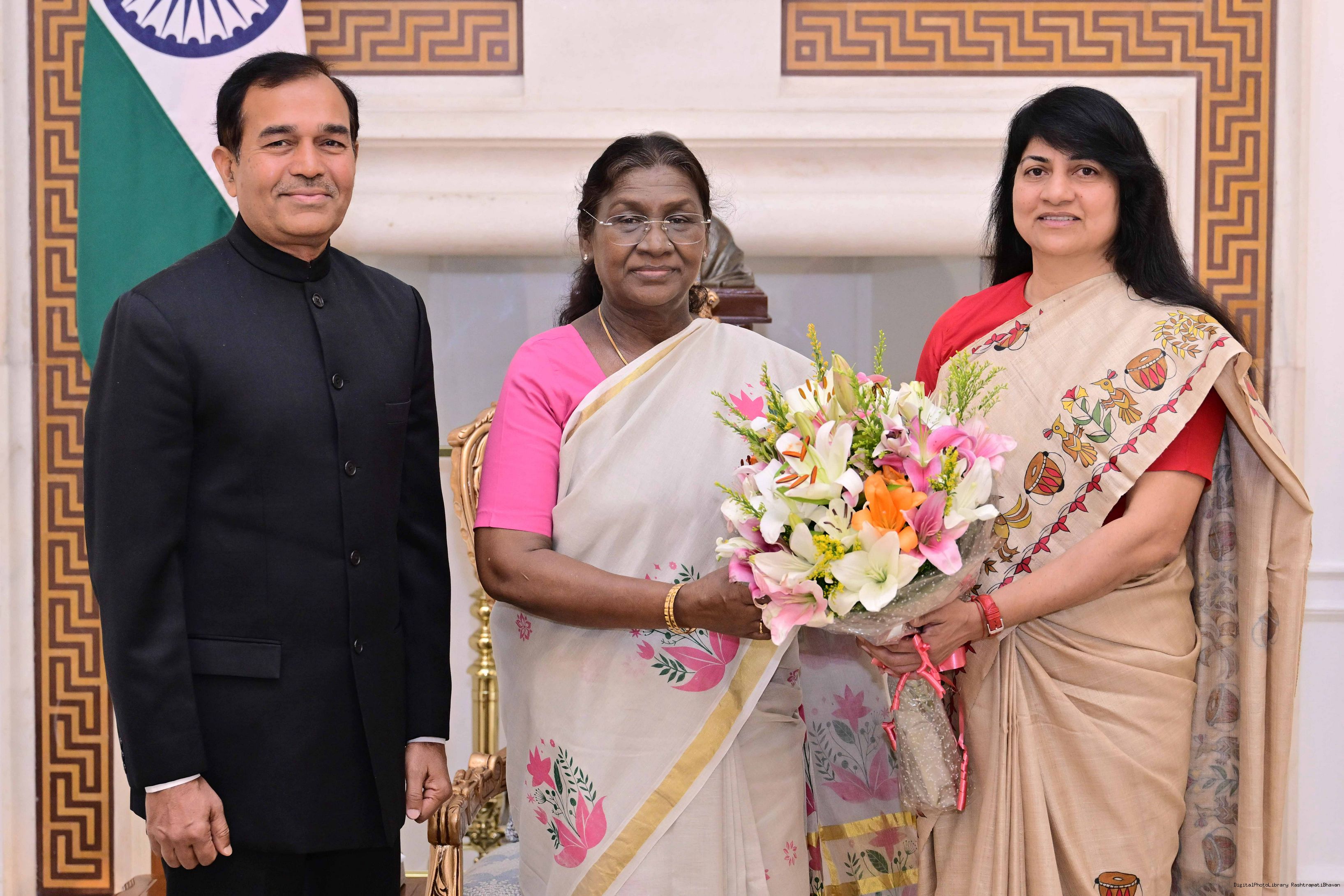 | Caption: | Smt. Sampat Meena, IPS, Sepcial Director, Central Bureau of Investigation (CBI) along with spouse Shri Surendra Singh Meena (IAS) Retd meeting with the President of India, Smt. Droupadi Murmu at Rashtrapati Bhavan on October 15, 2025. |
