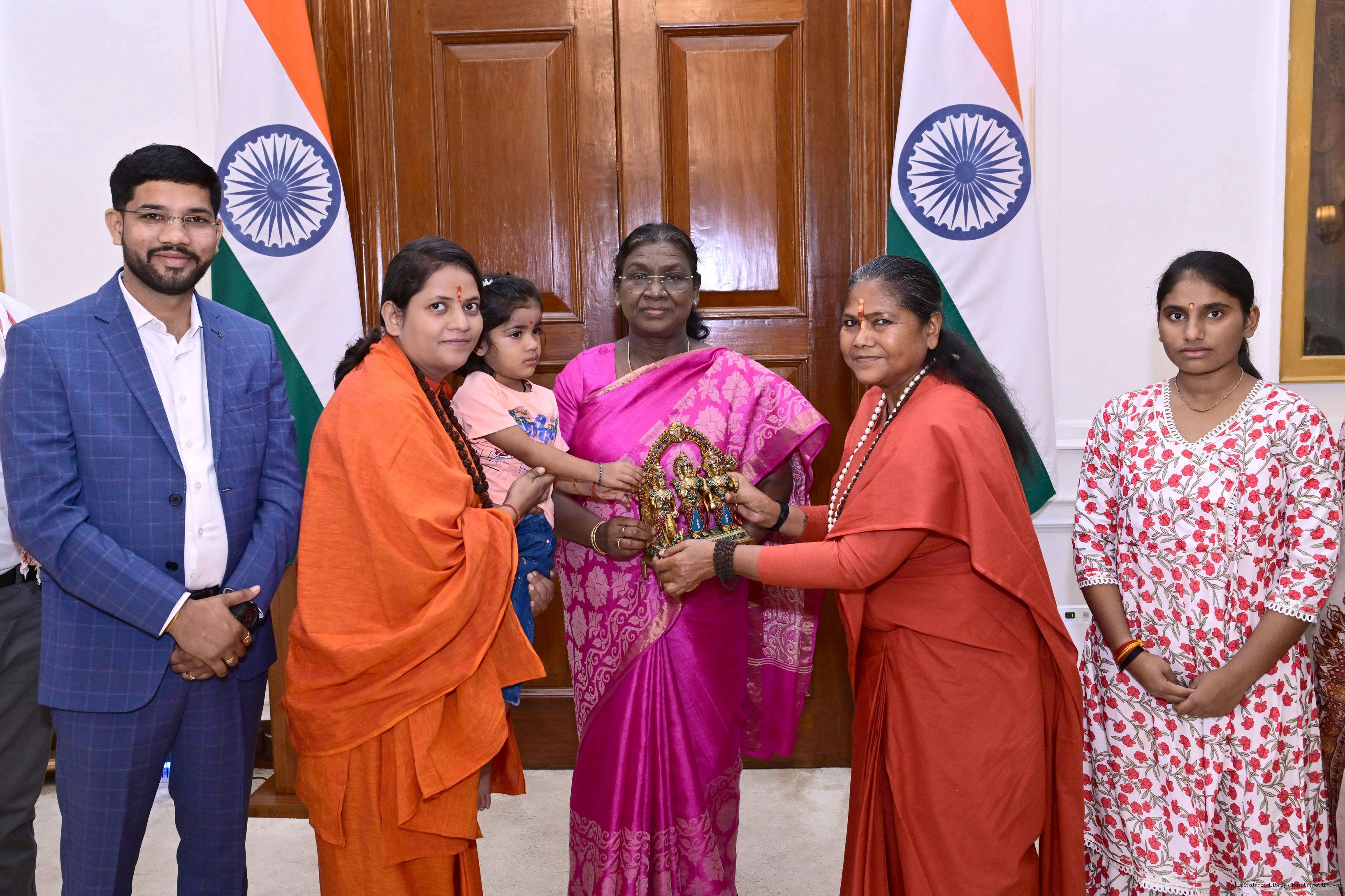 | Caption: | Sadhvi Niranjan Jyoti, Former MoS for Consumer Affairs, Food Public Distribution along with Shri Rajendra Nishad and others meeting with the President of India, Smt. Droupadi Murmu at Rashtrapati Bhavan on October 17, 2025. |