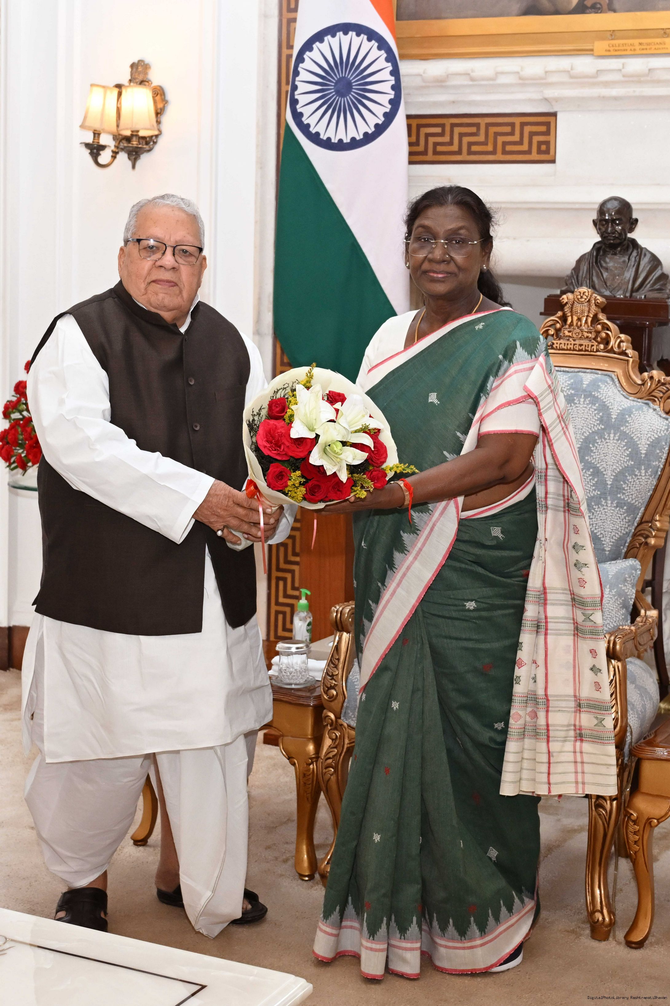 | Caption: | Shri Kalraj Mishra, Former Governor of Rajasthan and Himachal Pradesh called on the President of India, Smt. Droupadi Murmu at Rashtrapati Bhavan on October 18, 2025. |