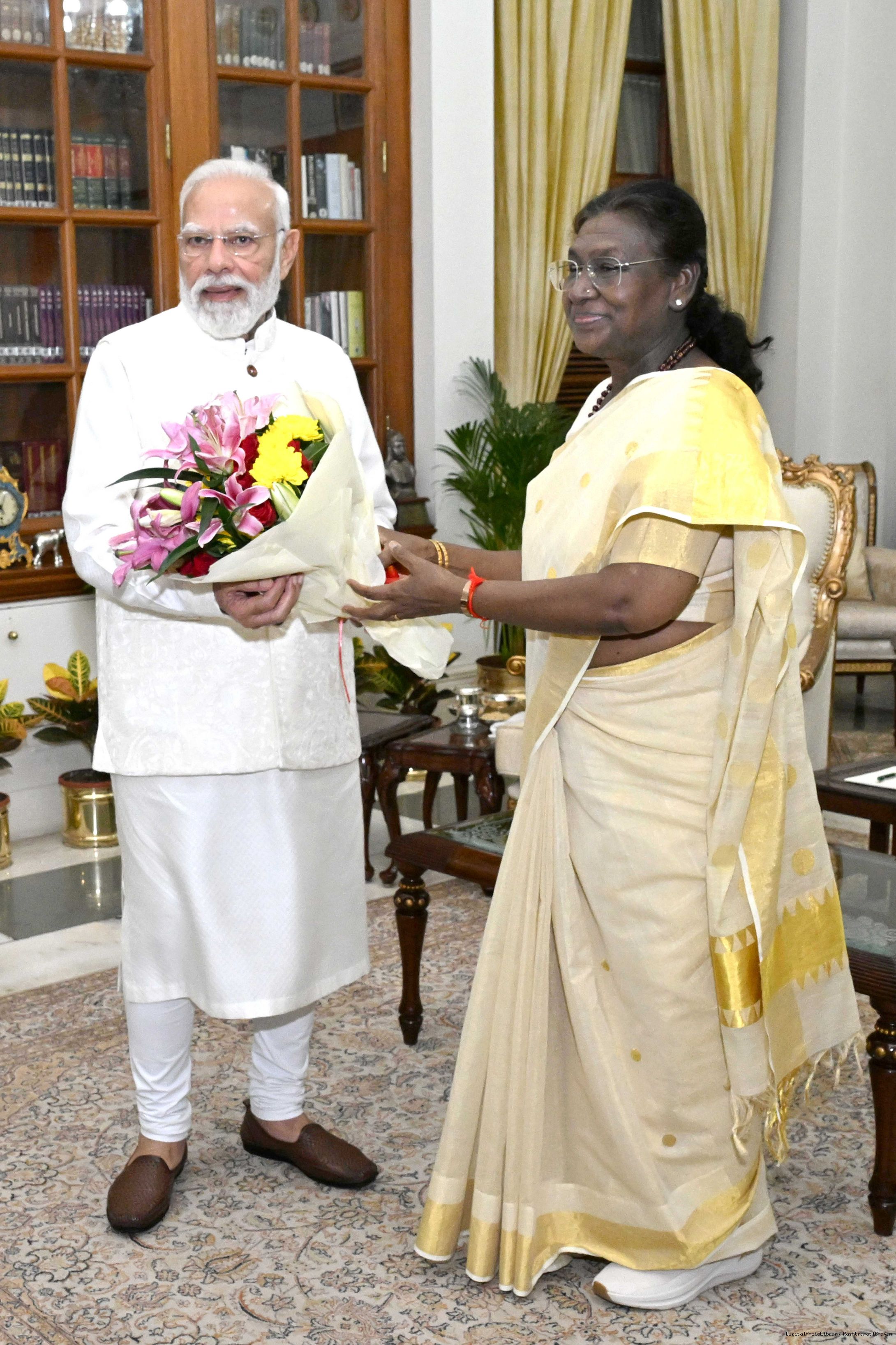 The Prime Minister of India, Shri Narendra Modi called on the President of India, Smt. Droupadi Murmu at Rashtrapati Bhavan on October 20, 2025.