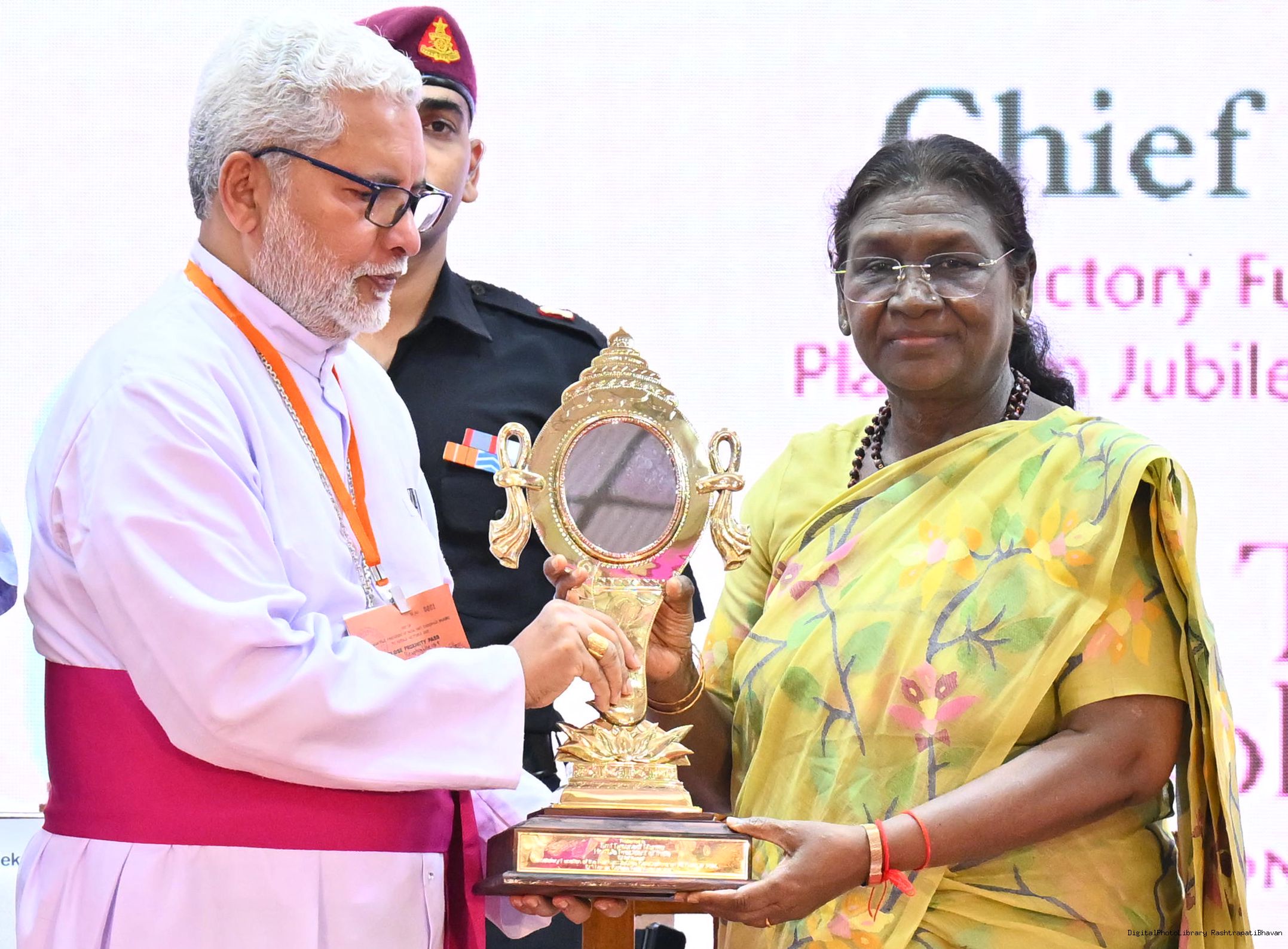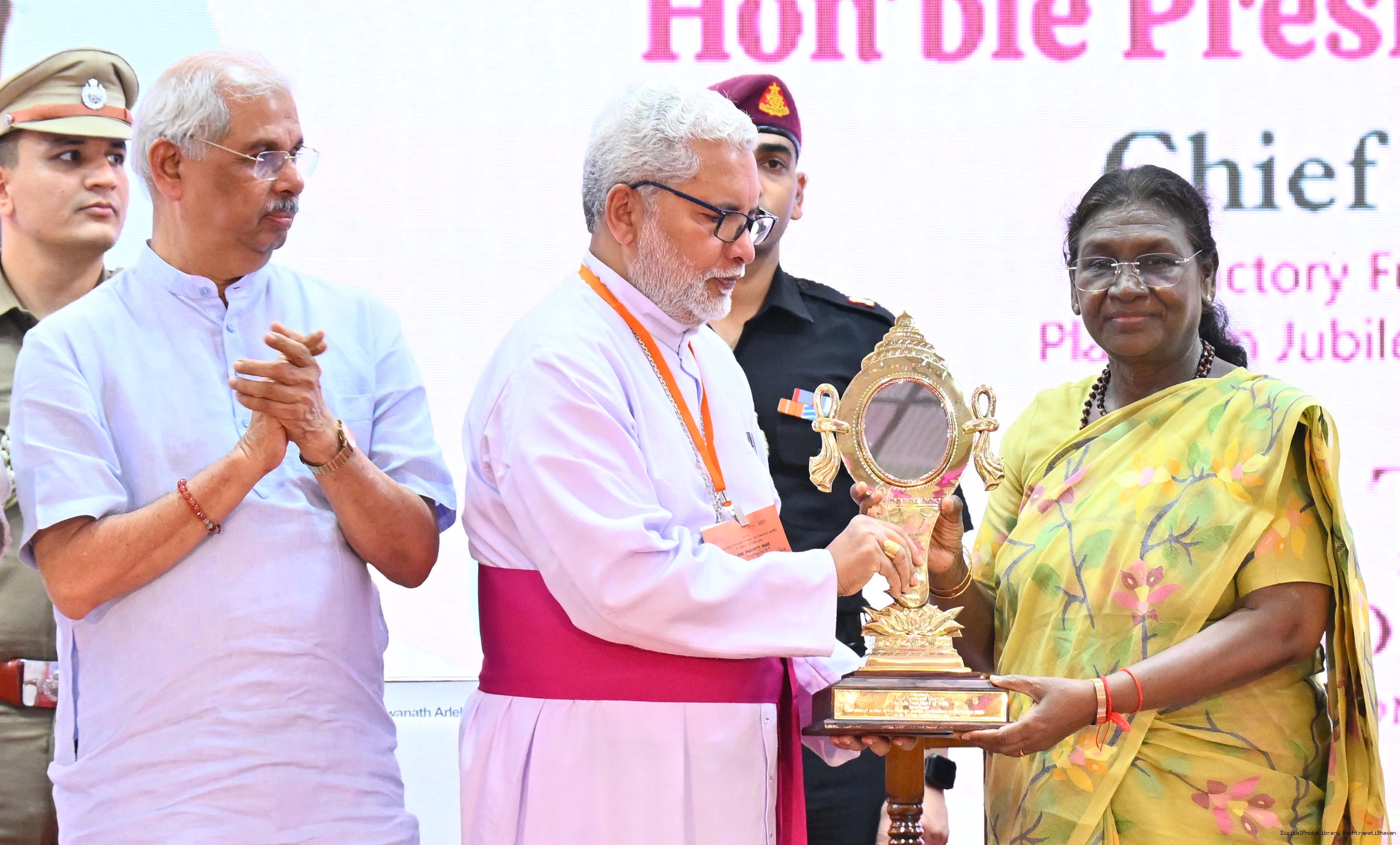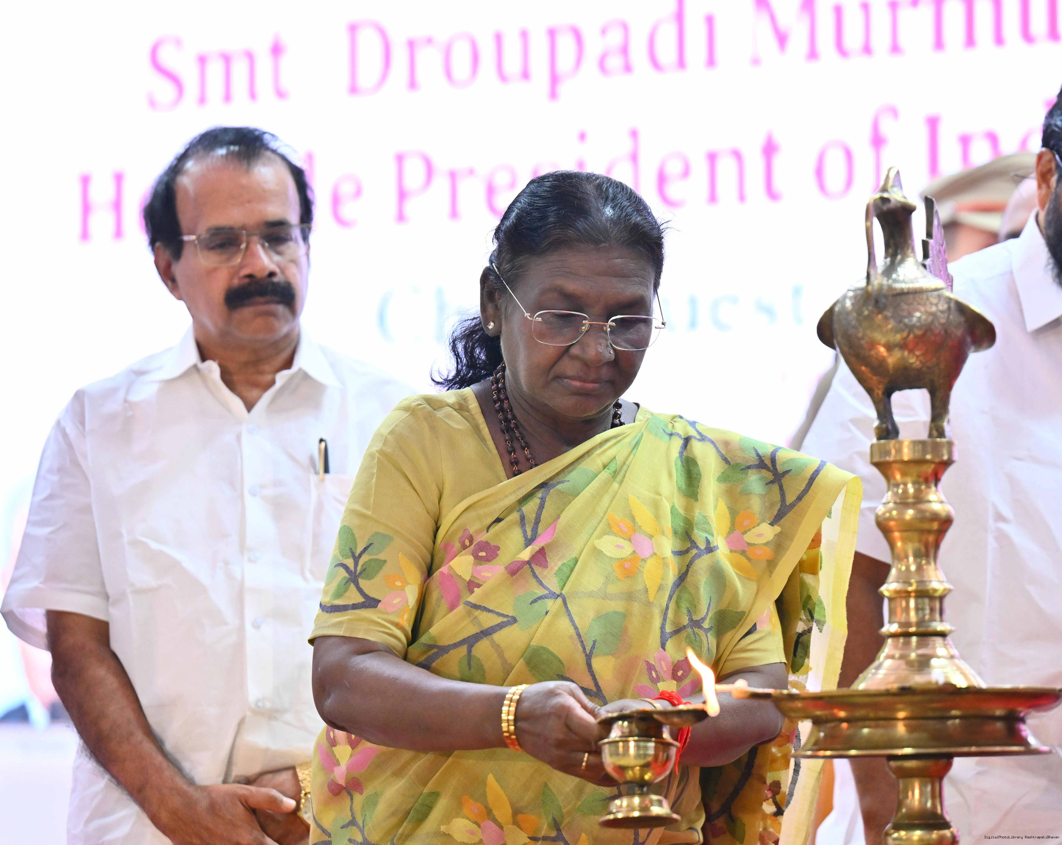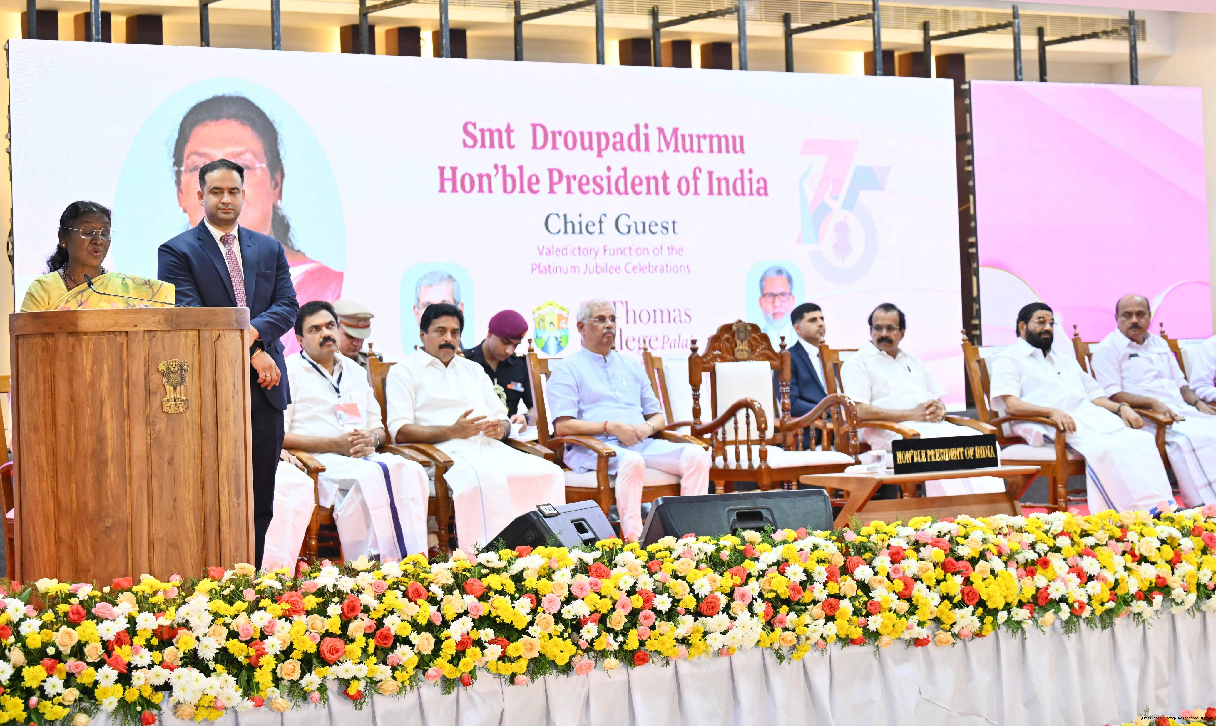 | Caption: | The President of India, Smt Droupadi Murmu graced the valedictory function of the Platinum Jubilee celebrations of St. Thomas College at Palai, Kerala on October 23, 2025. |