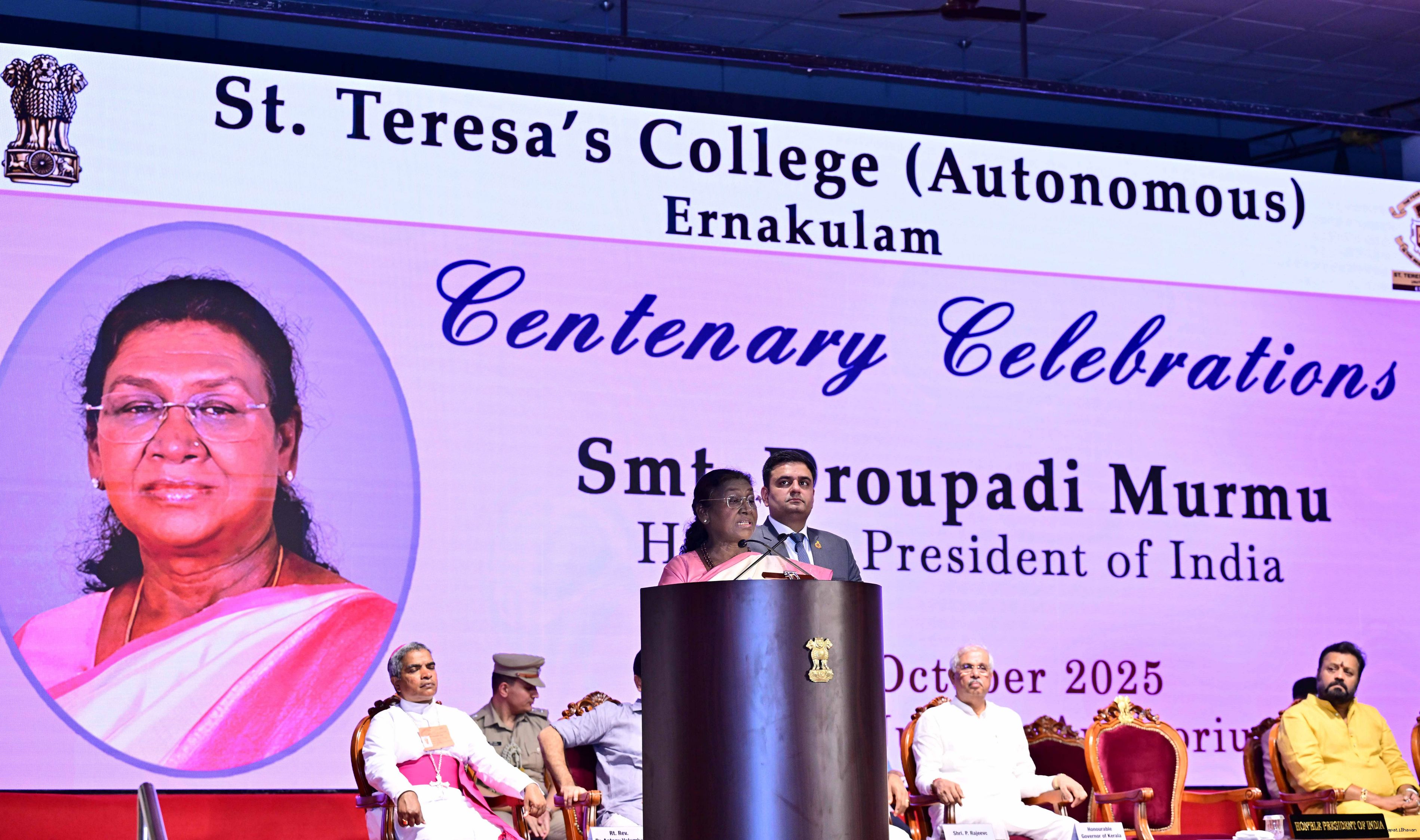 | Caption: | The President of India, Smt Droupadi Murmu graced the centenary celebrations of St. Teresa’s College at Ernakulam, Kerala, on October 24, 2025. |