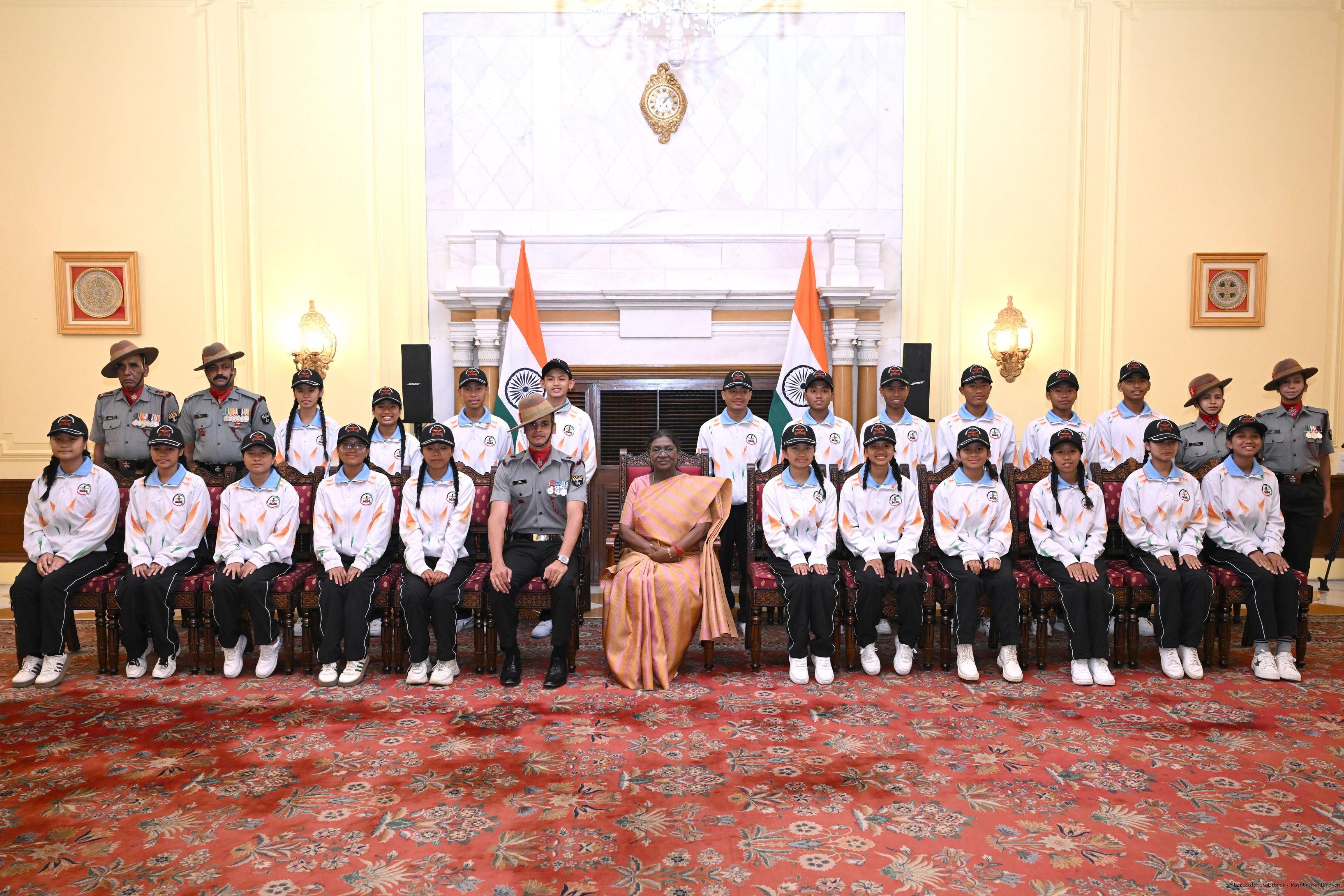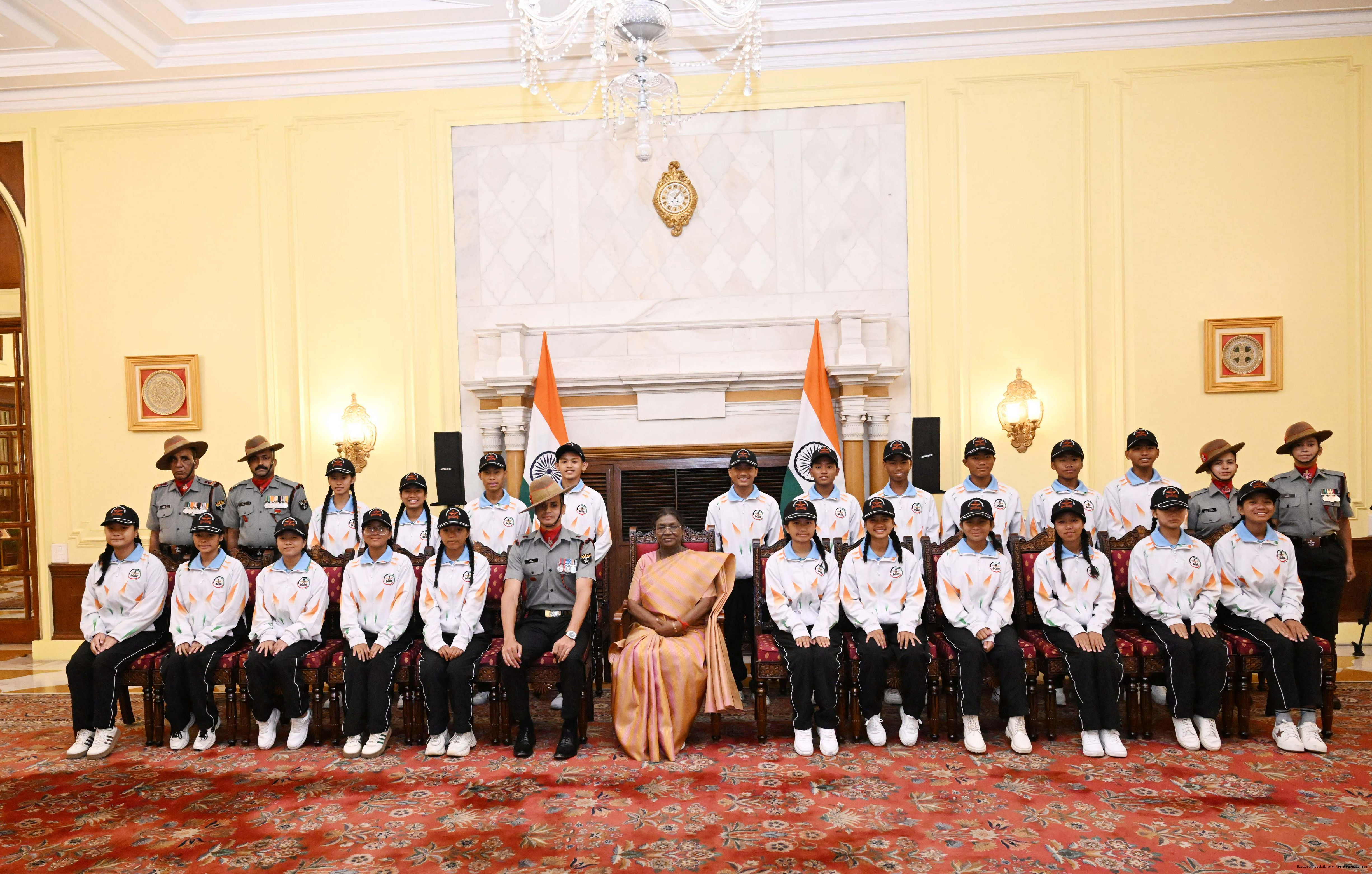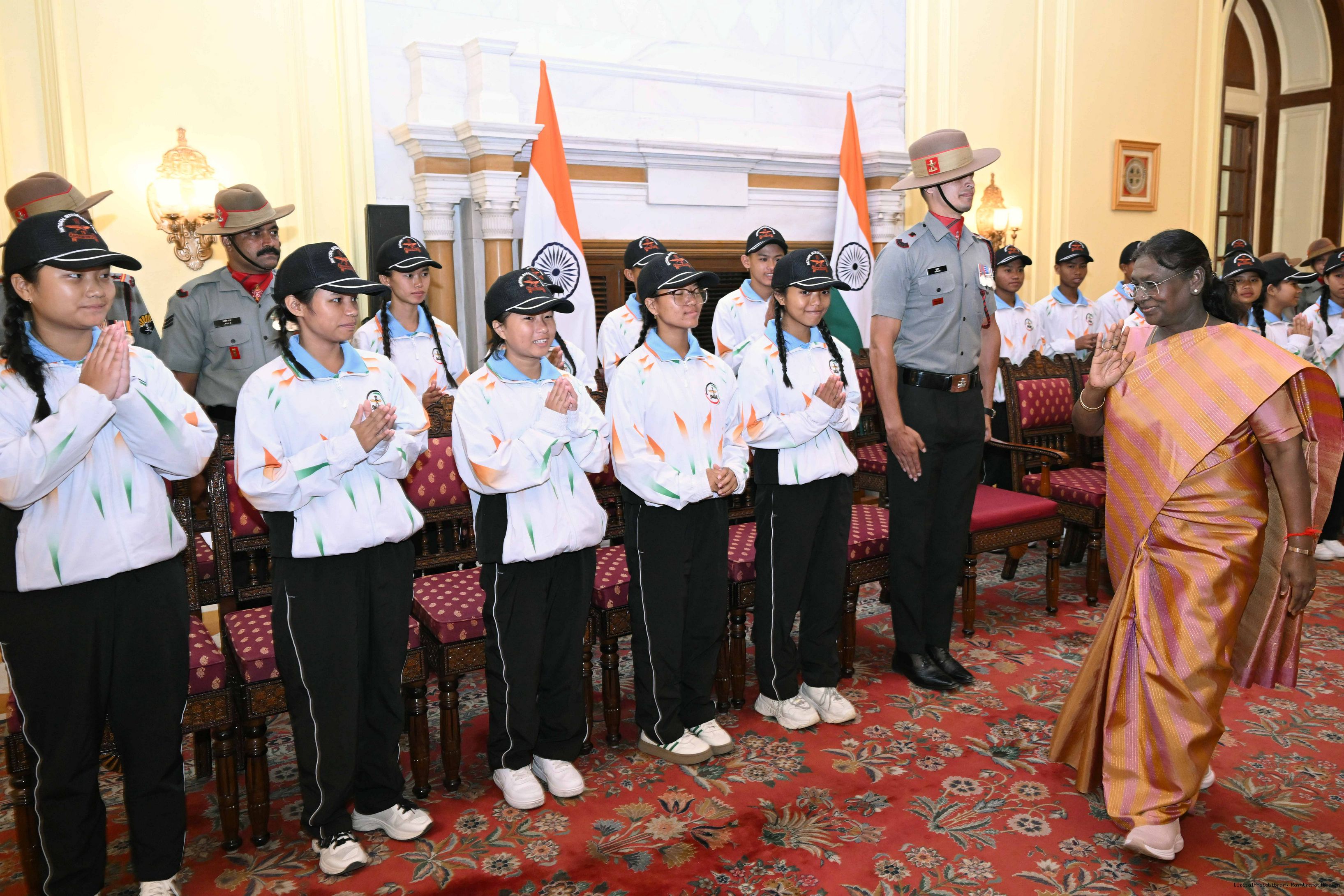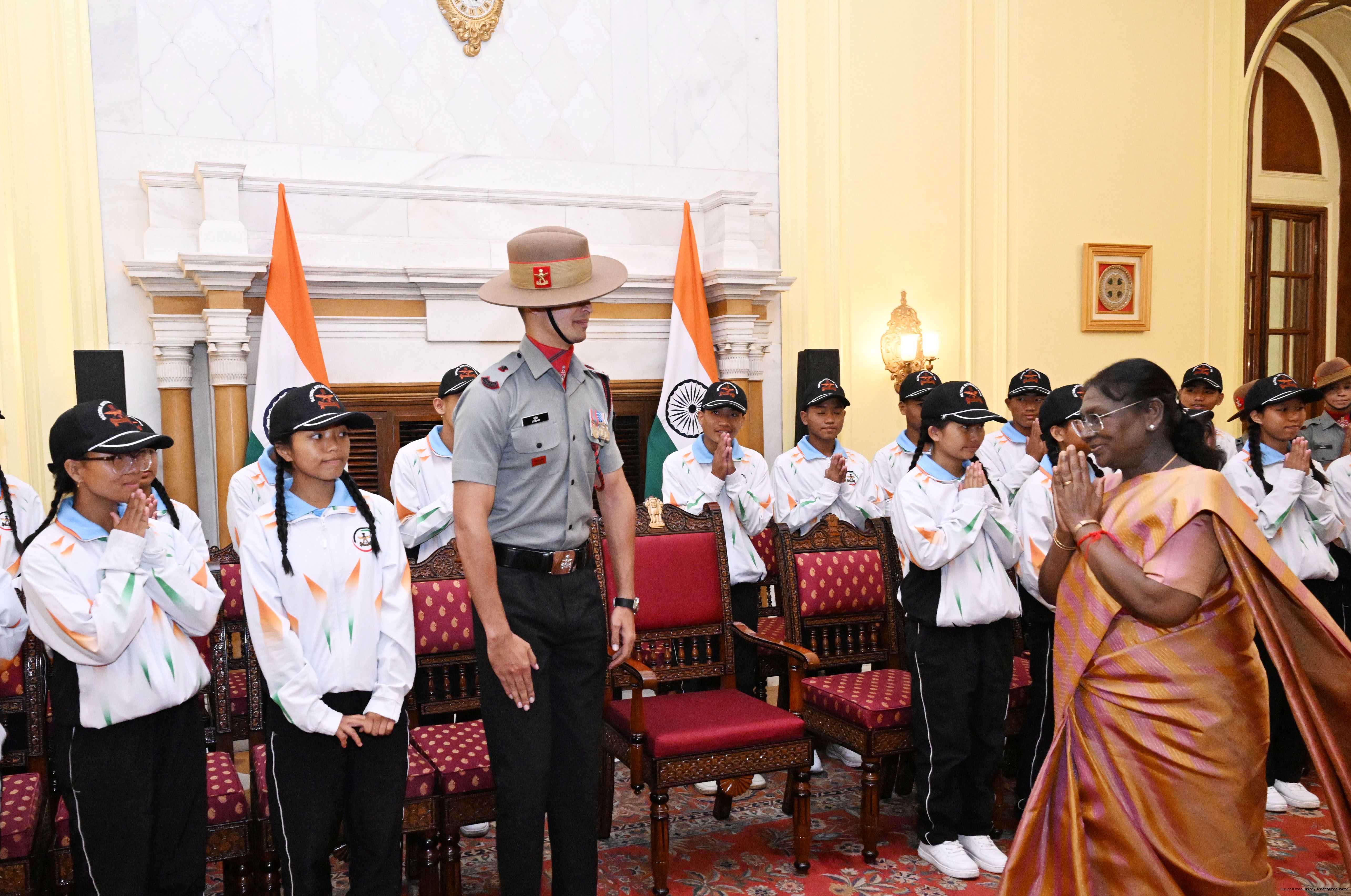 | Caption: | A group of students from Manipur called on the President of India, Smt. Droupadi Murmu. The group visited Rashtrapati Bhavan as part of the National Integration Tour (NIT) on October 26, 2025. |