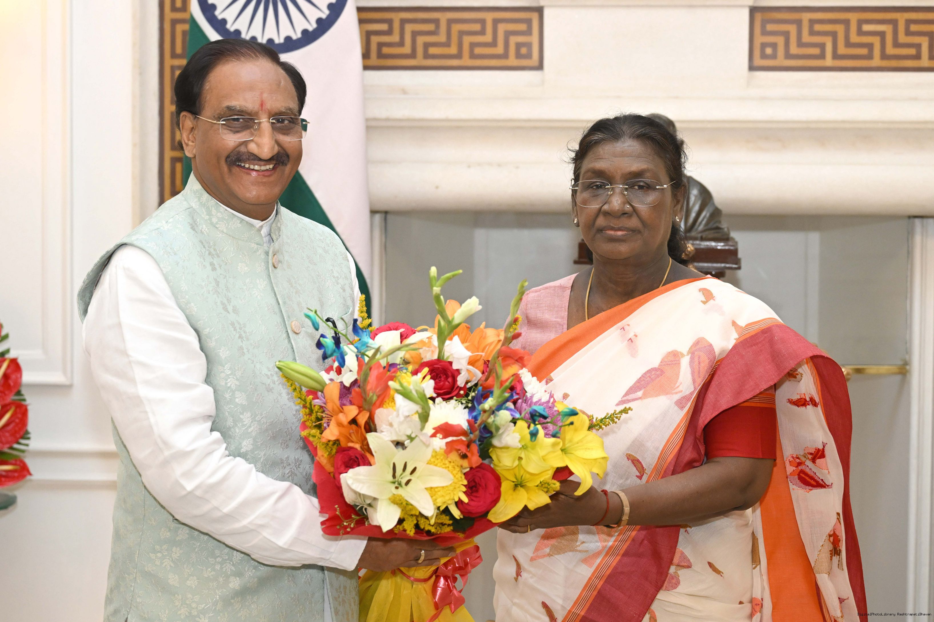 | Caption: | Dr. Ramesh Pokhriyal Nishank, Former CM of Uttarakhand, former Union Minister of Education meeting with the President of India, Smt Droupadi Murmu at Rashtrapati Bhavan on October 30, 2025. |