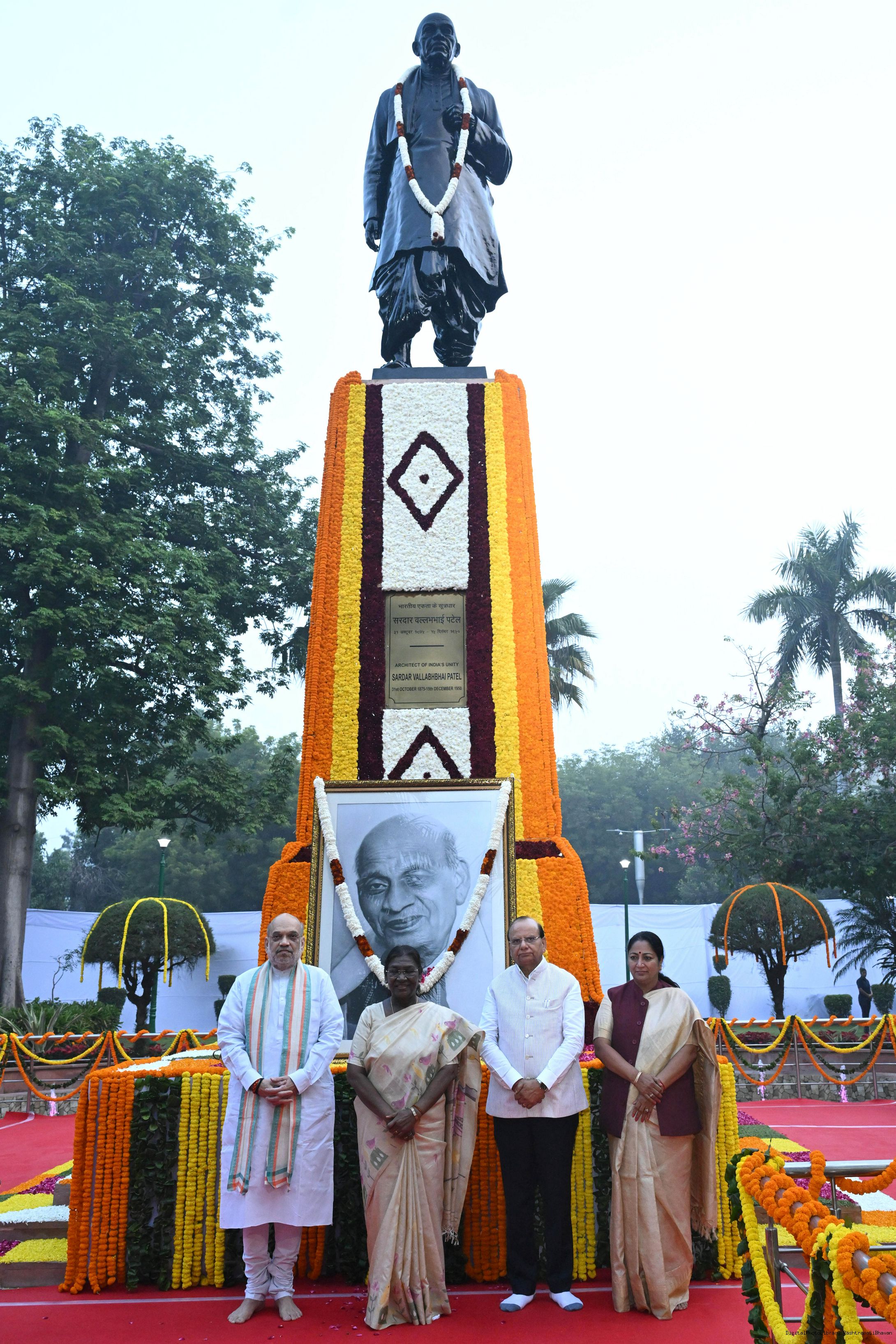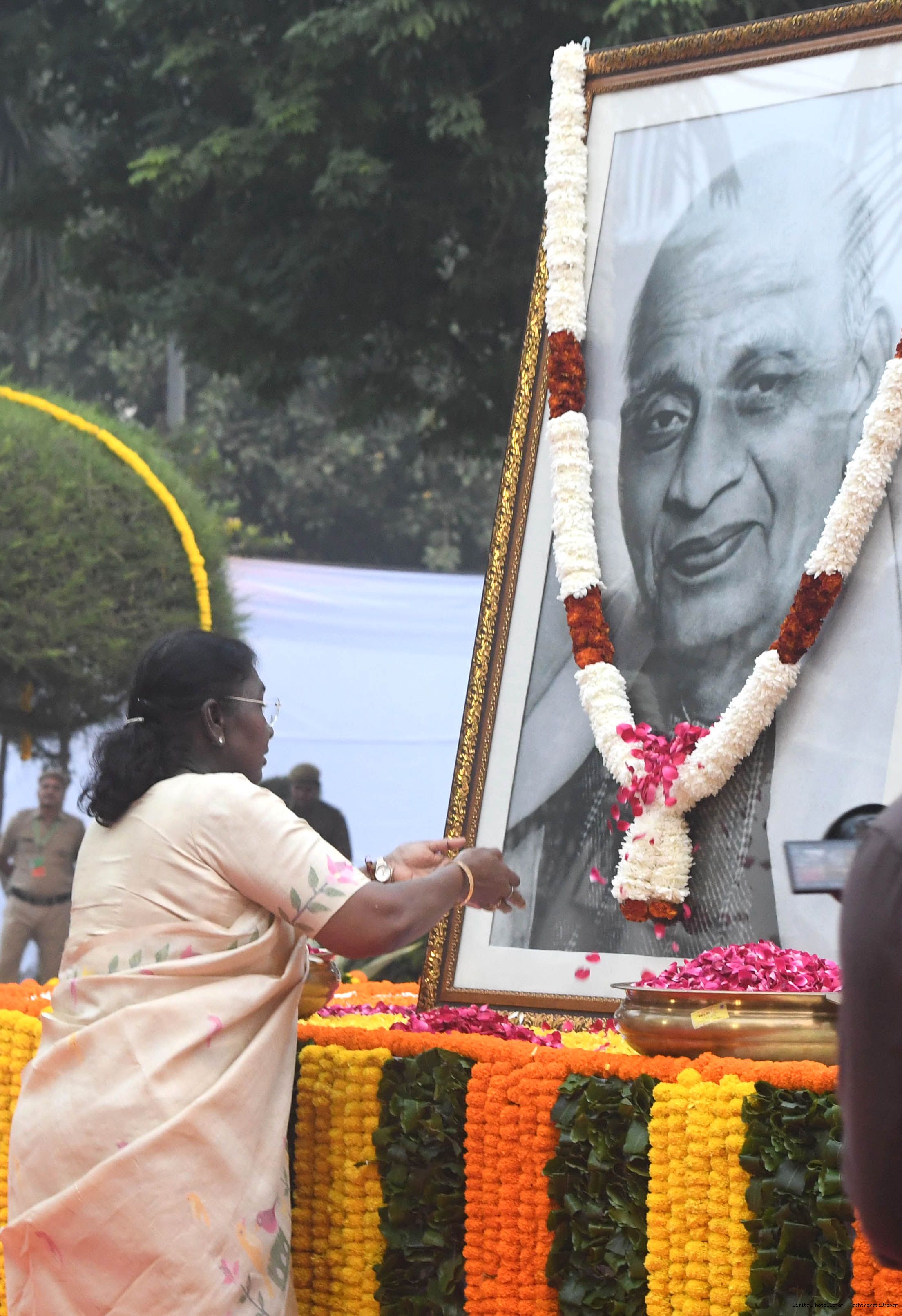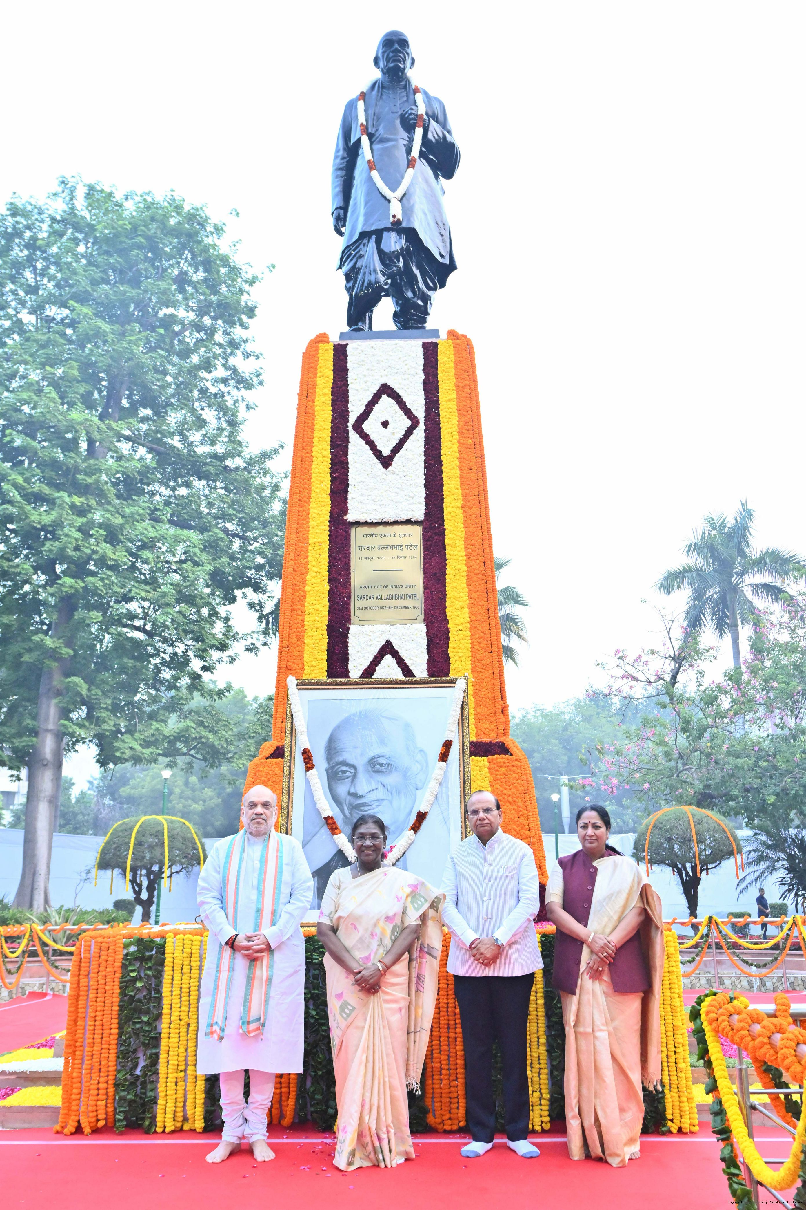 | Caption: | The President of India, Smt Droupadi Murmu paid homage at Patel Chowk in New Delhi and paid floral tributes to Sardar Vallabhbhai Patel on his 150th birth anniversary at Rashtrapati Bhavan on October 31, 2025. |