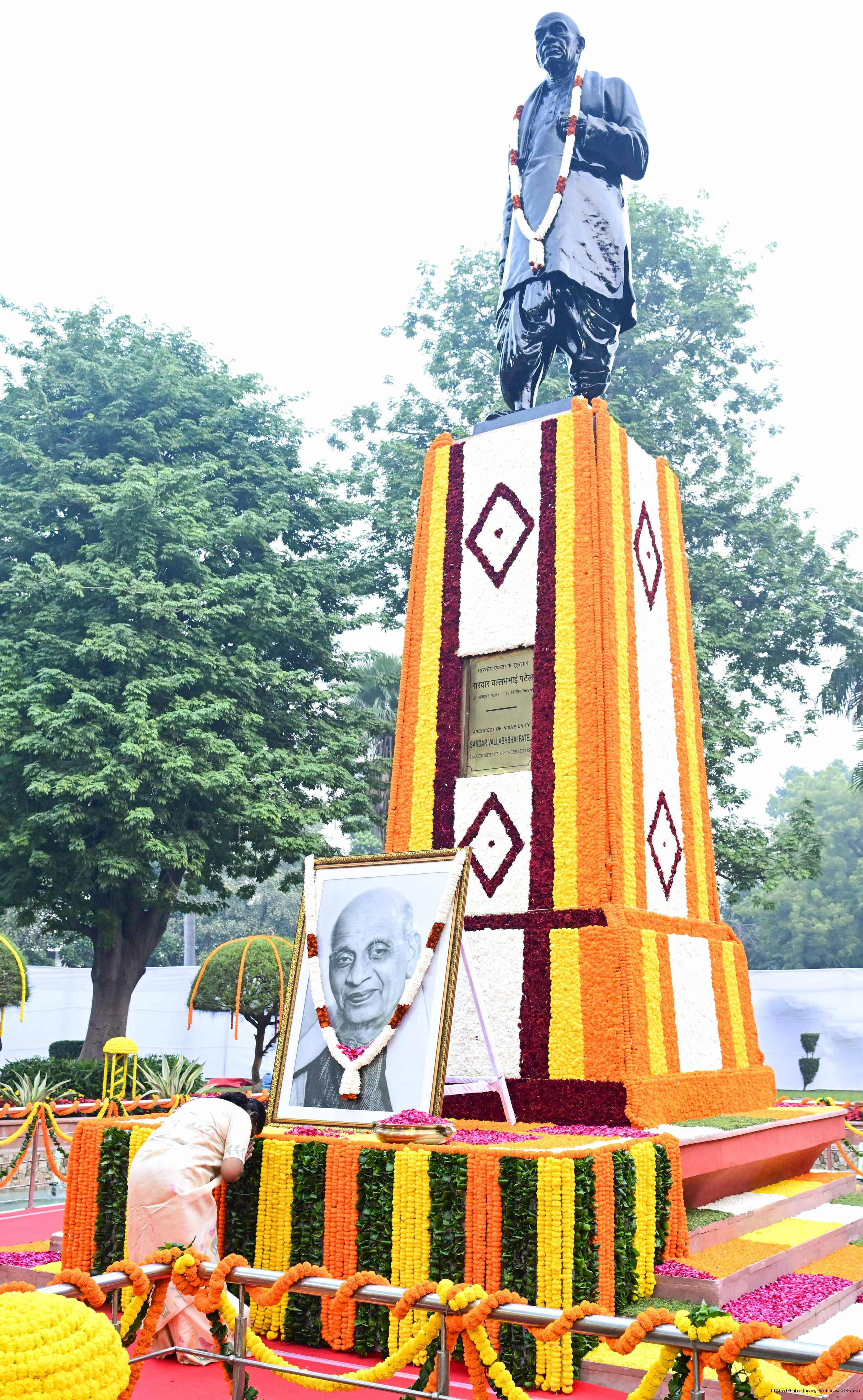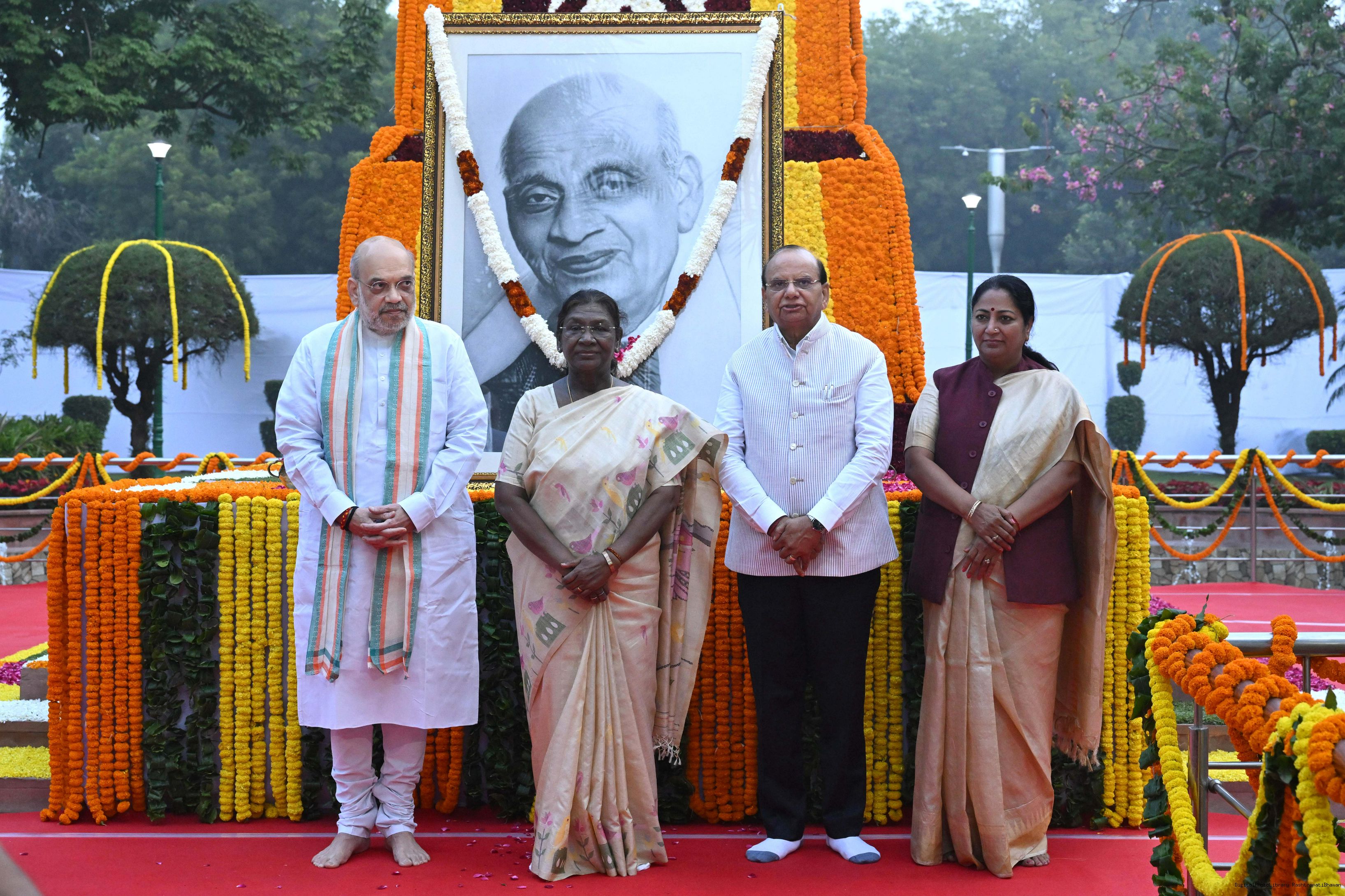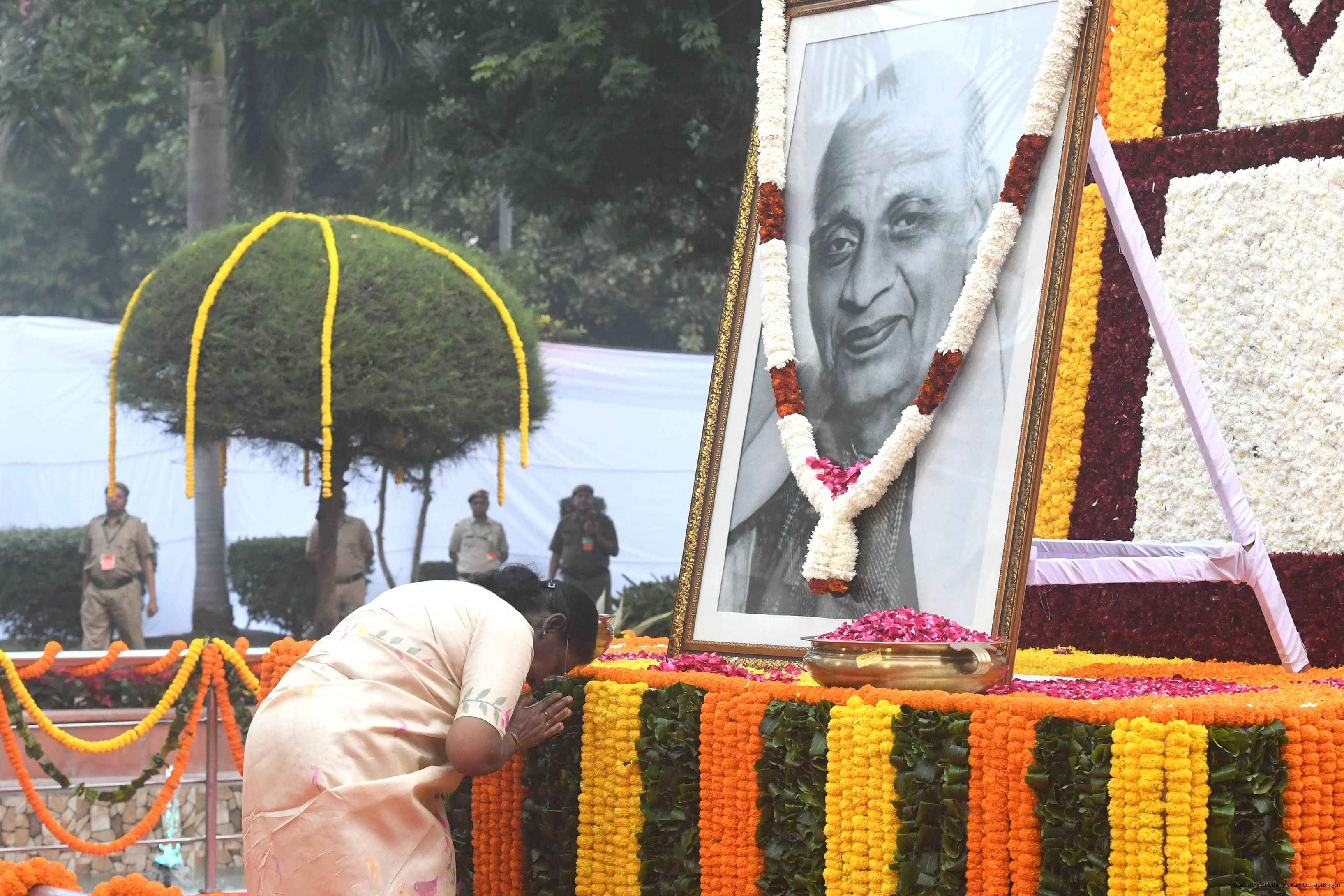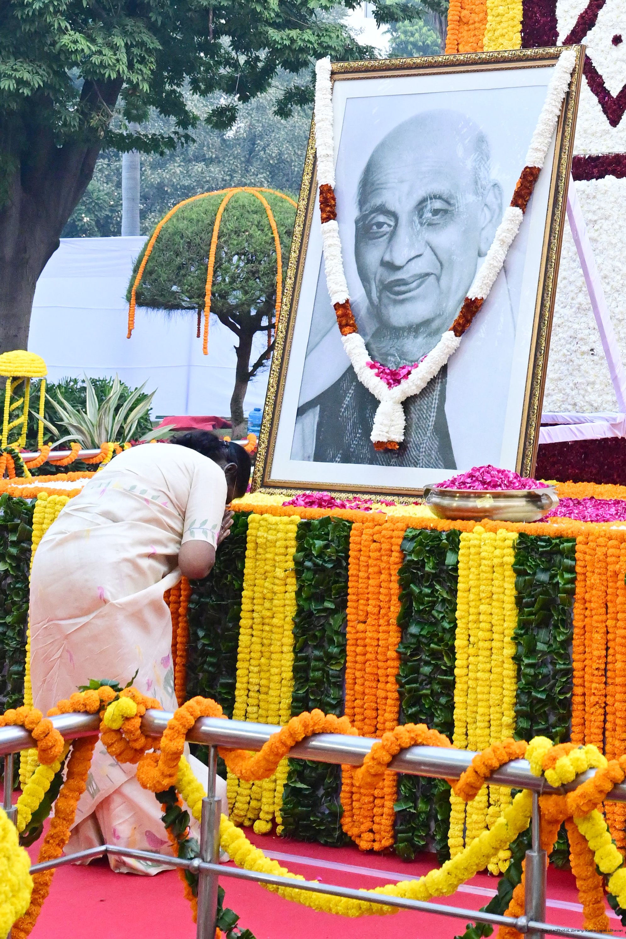 | Caption: | The President of India, Smt Droupadi Murmu paid homage at Patel Chowk in New Delhi and paid floral tributes to Sardar Vallabhbhai Patel on his 150th birth anniversary at Rashtrapati Bhavan on October 31, 2025. |