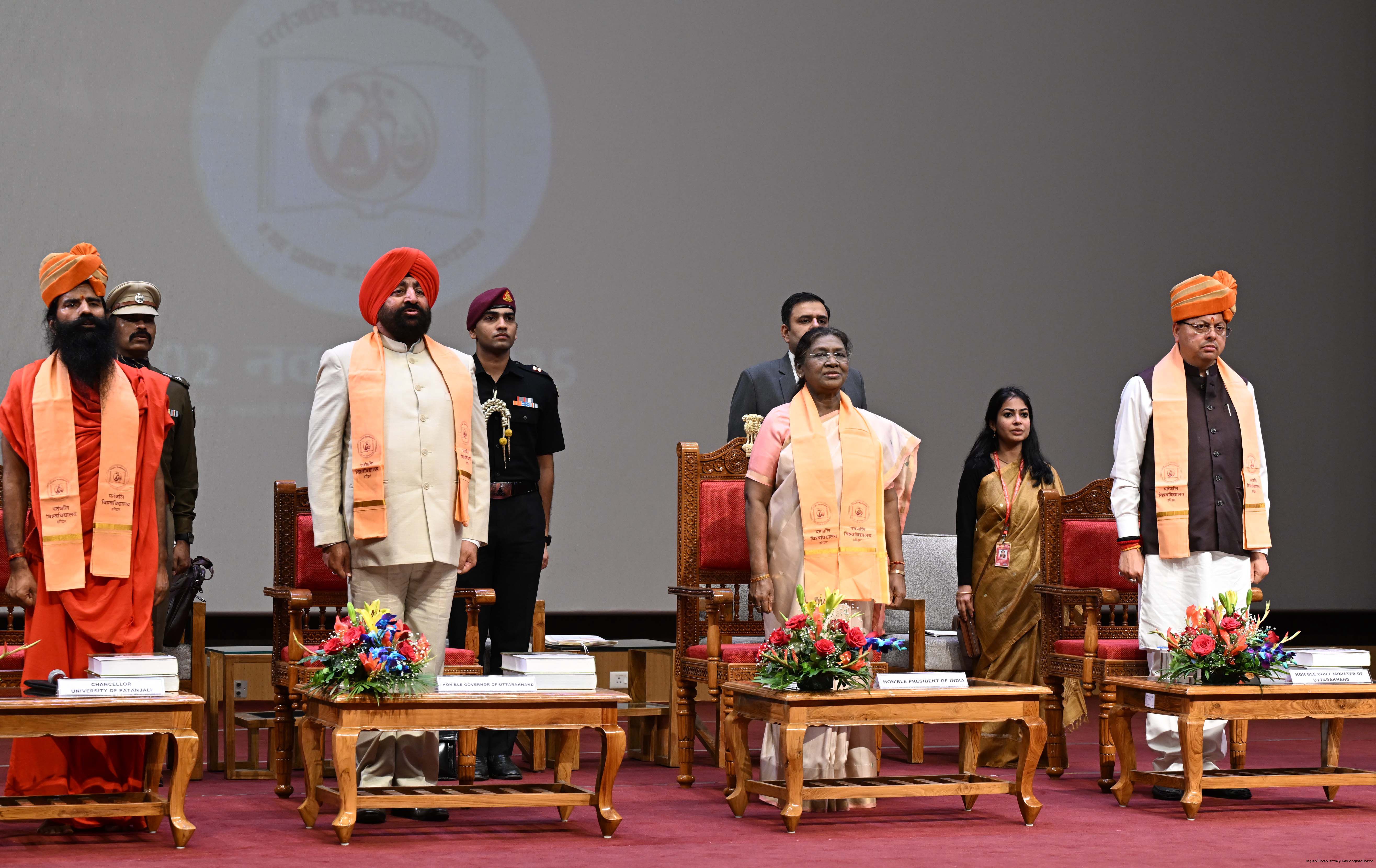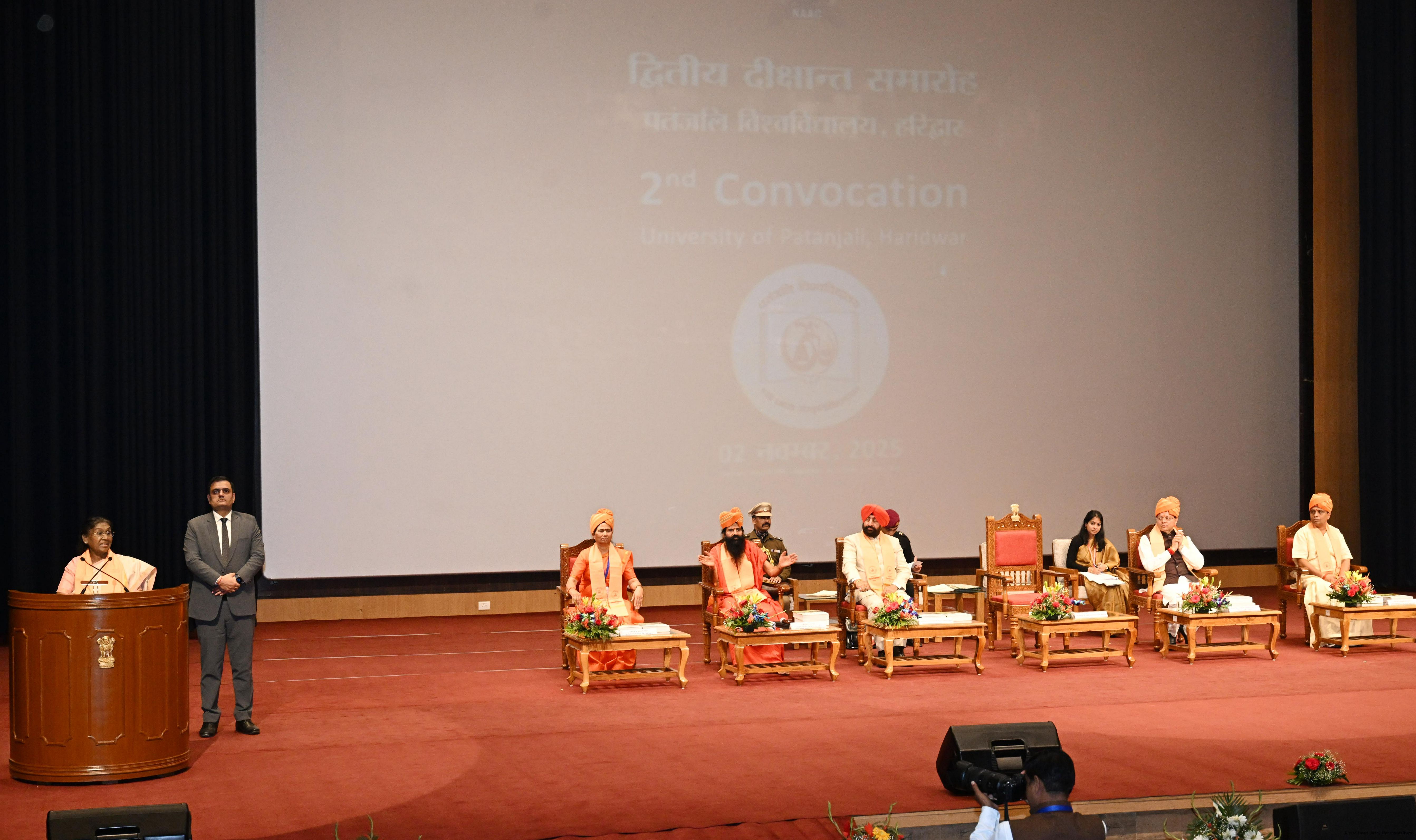 | Caption: | The President of India, Smt Droupadi Murmu, graced the second convocation ceremony of the University of Patanjali at Haridwar, Uttarakhand on November 2, 2025. |