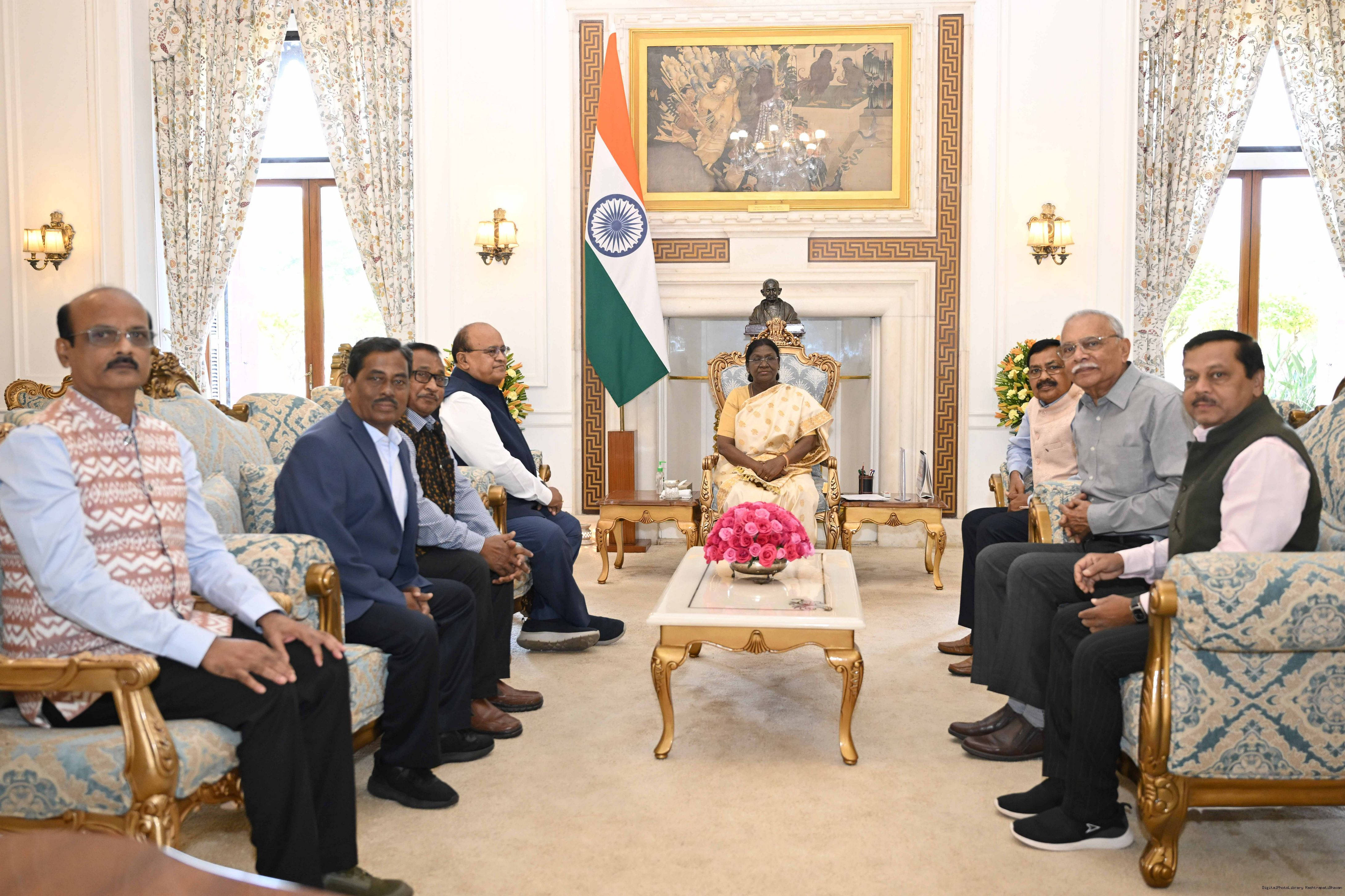 Shri Sundar Mohan Marandi along with others meeting with the President of India Smt. Droupadi Murmu at Rashtrapati Bhavan on March 5, 2026.