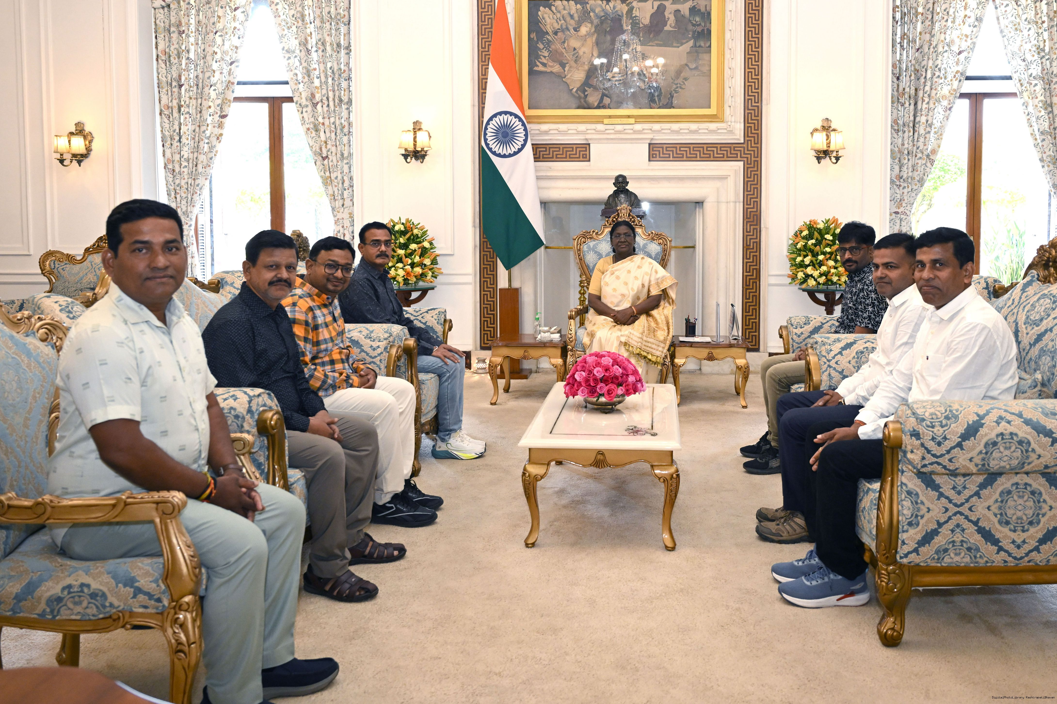 | Caption: | Shri Bikash Chandra Mohanta from Rairangpur along with others meeting with the President of India Smt. Droupadi Murmu at Rashtrapati Bhavan on March 5, 2026. |
