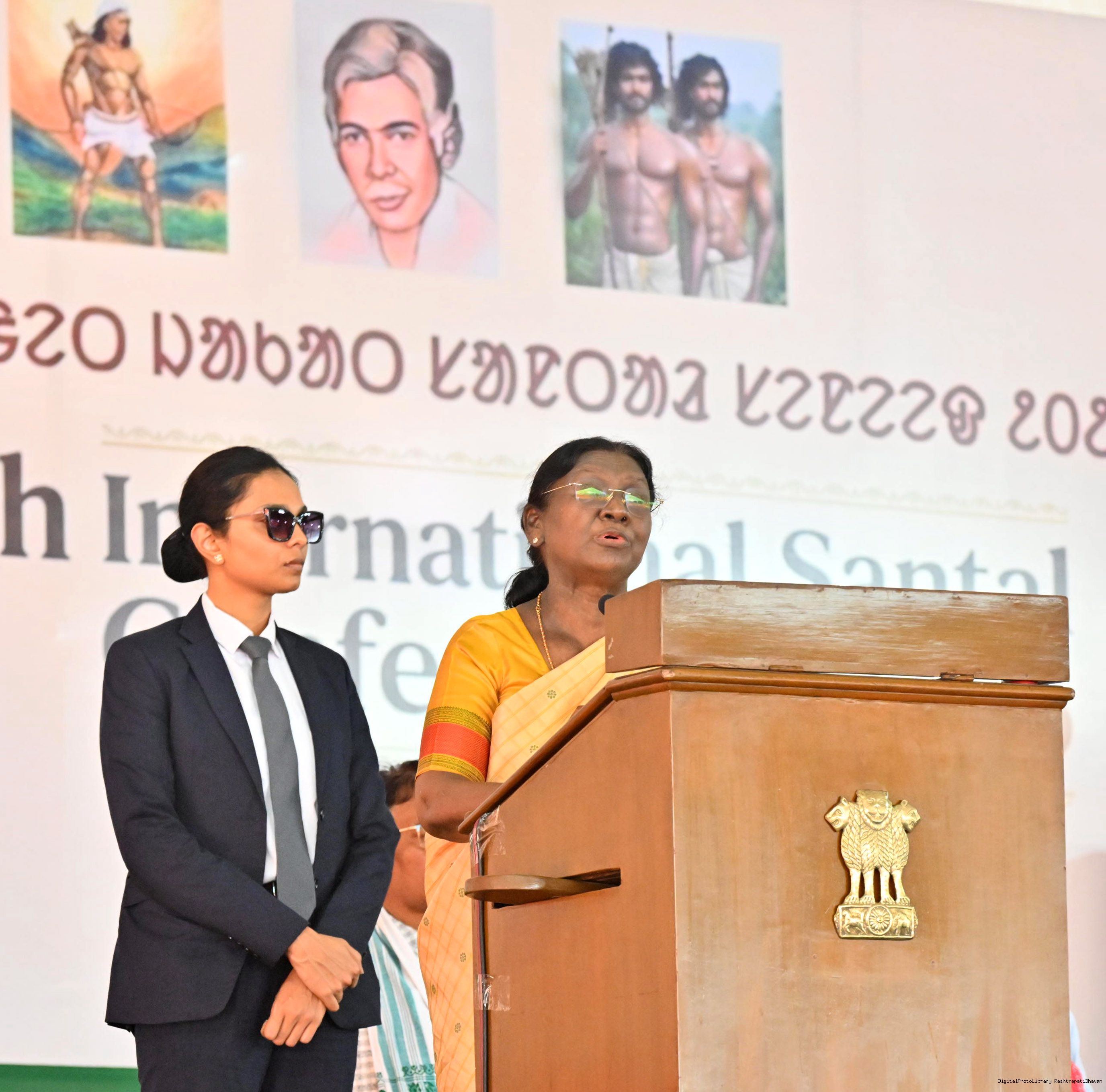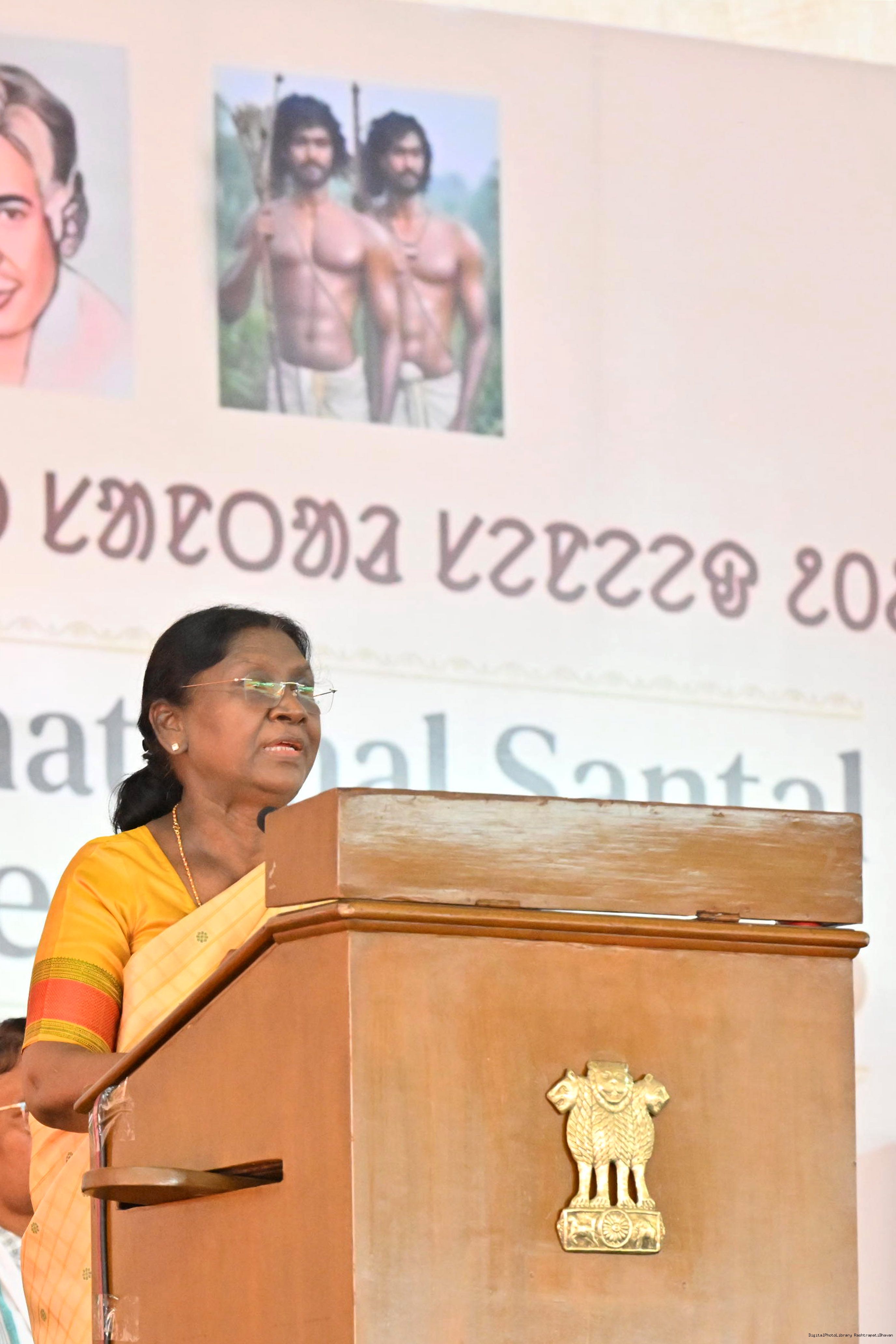 Caption: The President of India Smt Droupadi Murmu graced the 9th International Santal Conference at Darjeeling, West Bengal March 7, 2026.