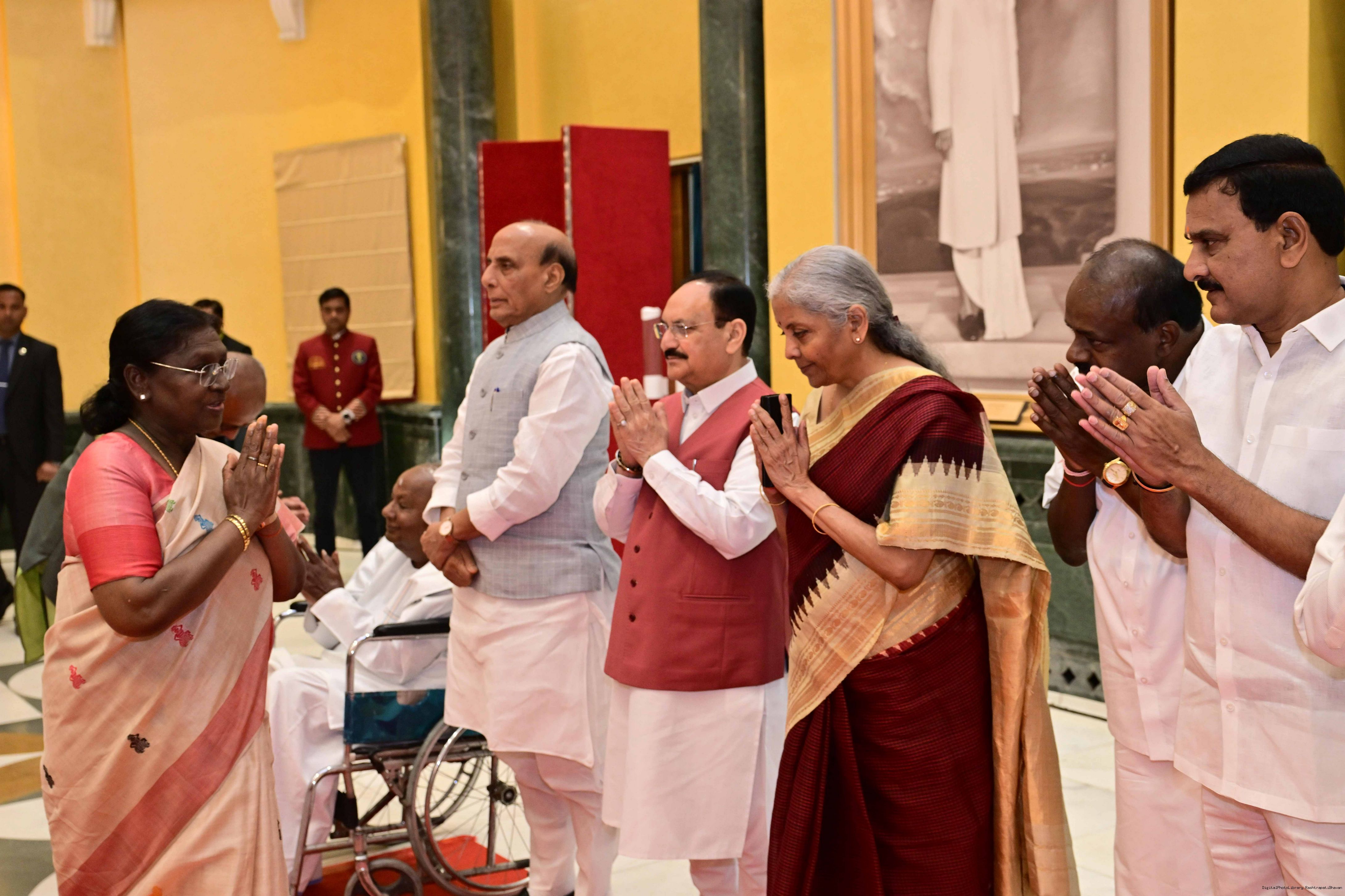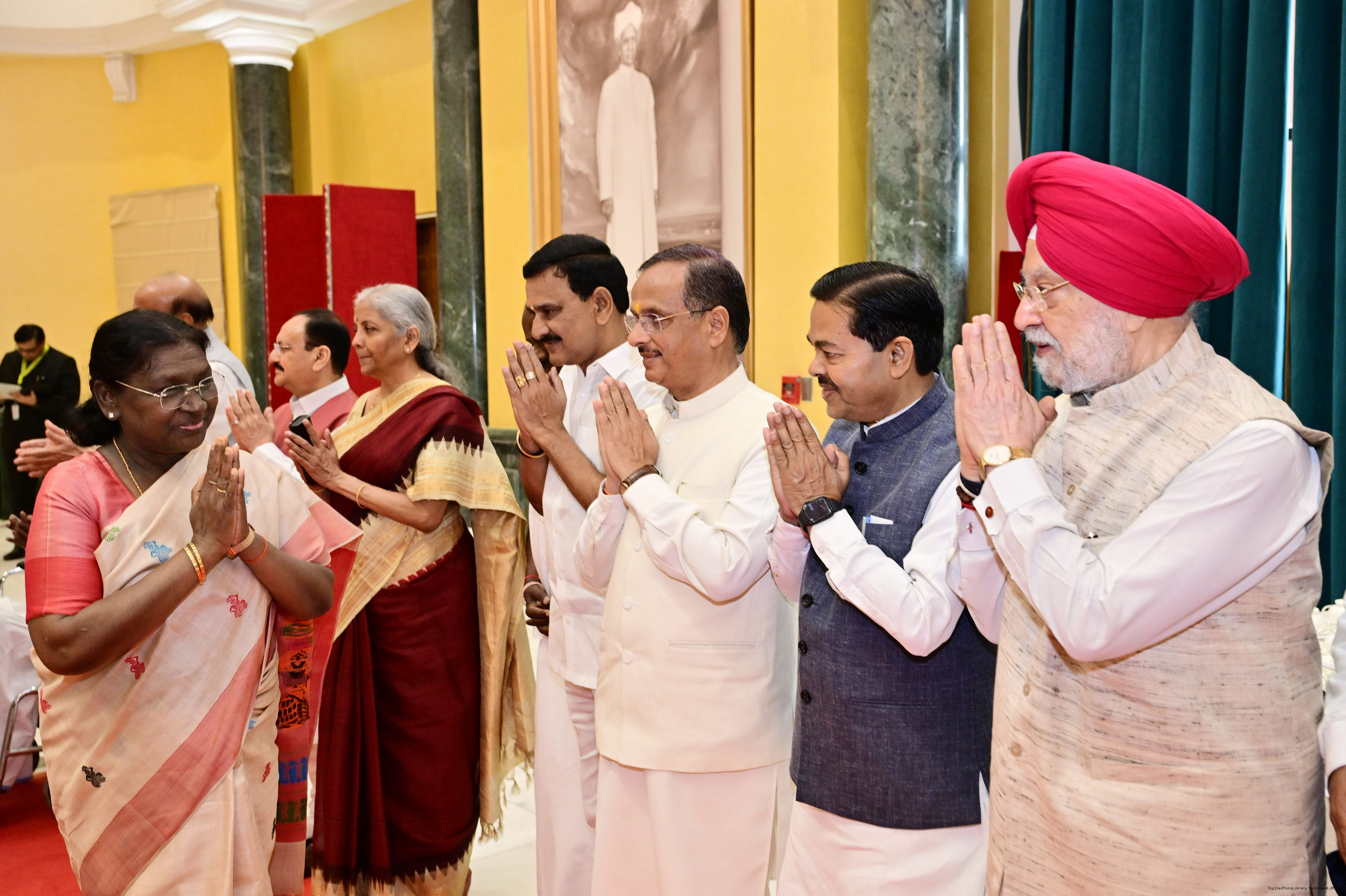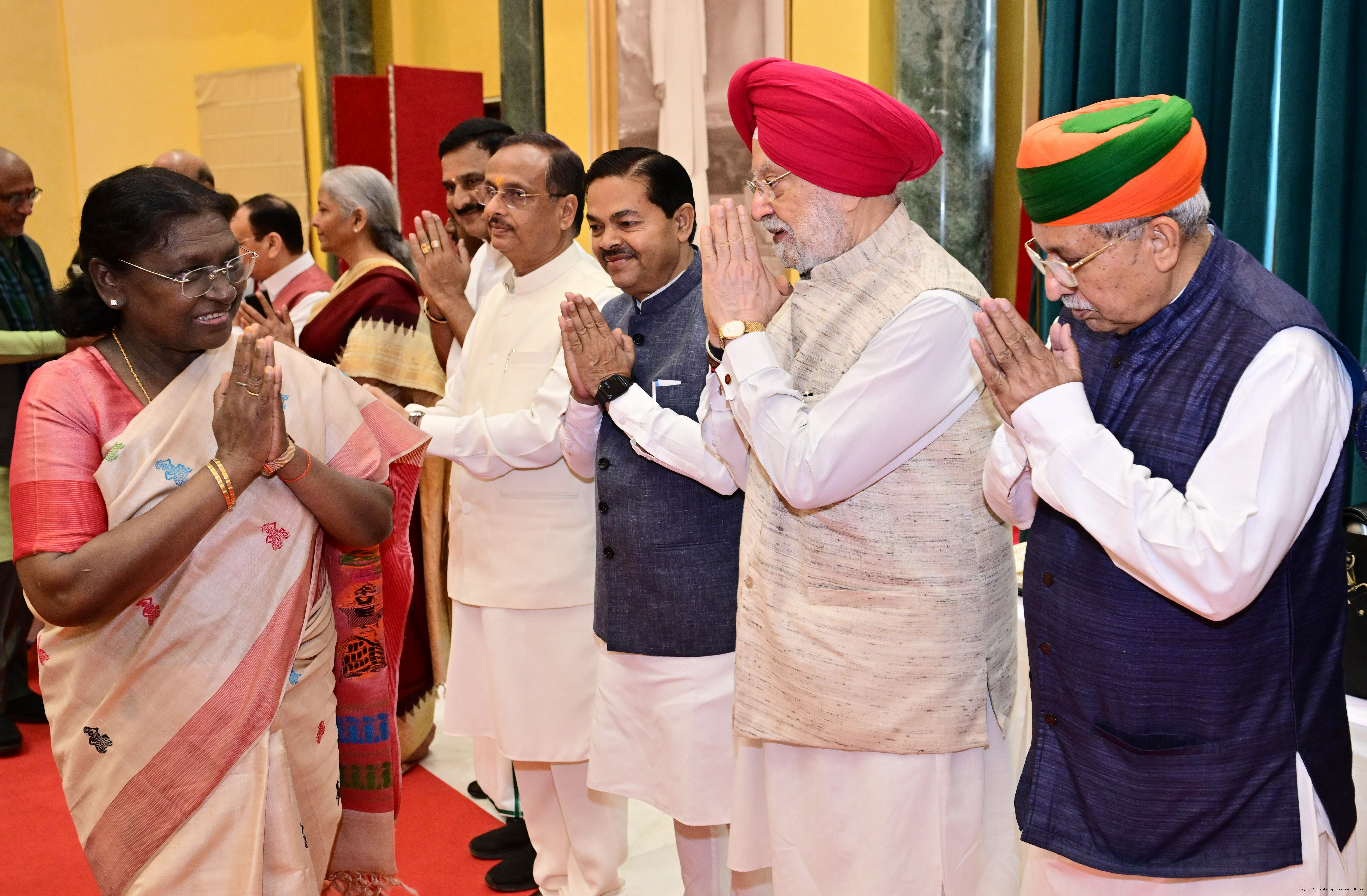Caption: The President of Indis, Smt Droupadi Murmu hosted Members of Parliament from Andhra Pradesh, Karnataka, Kerala, Haryana, Uttar Pradesh and Punjab at Rashtrapati Bhavan Cultural Centre on March 10, 2026.