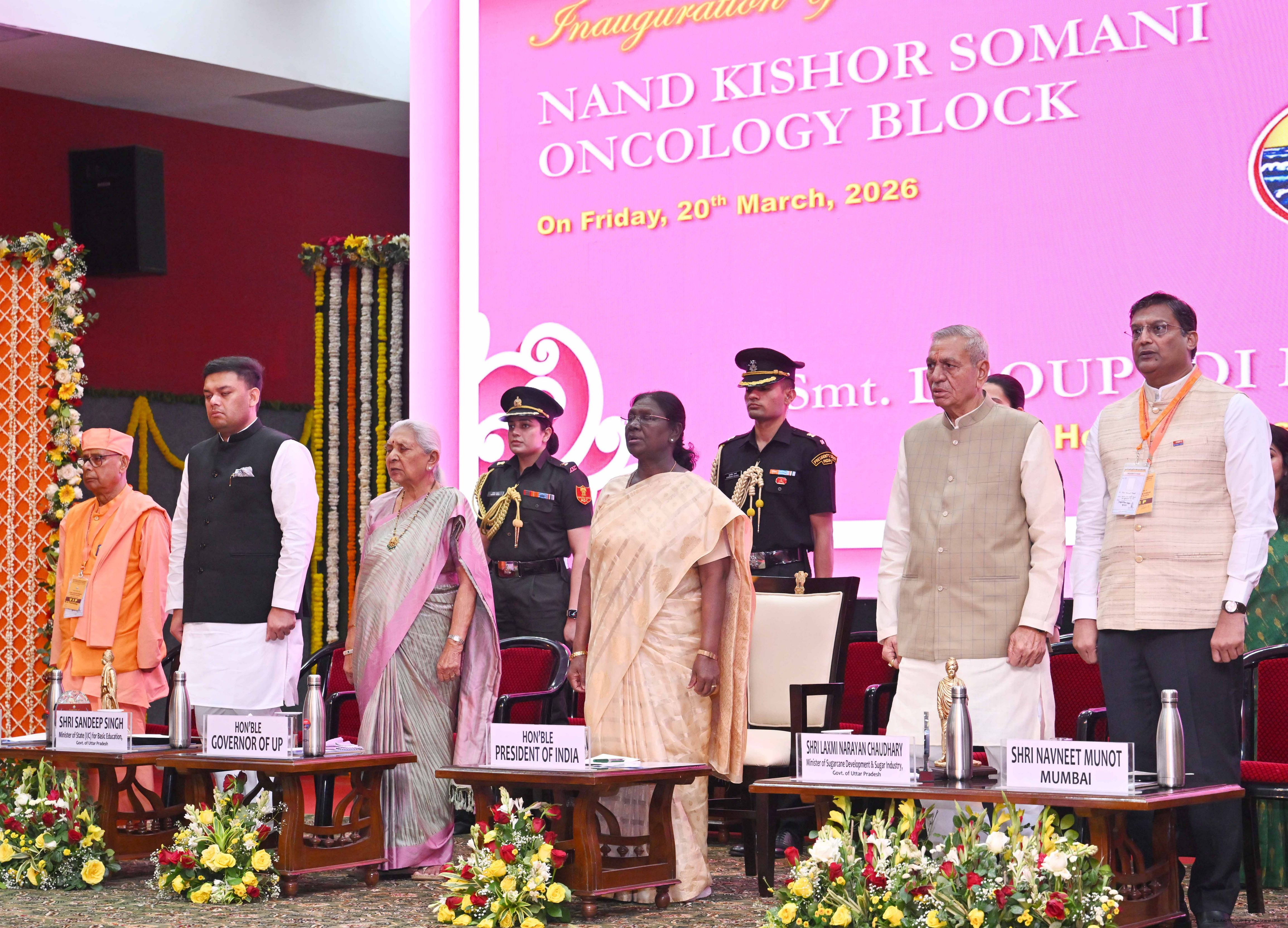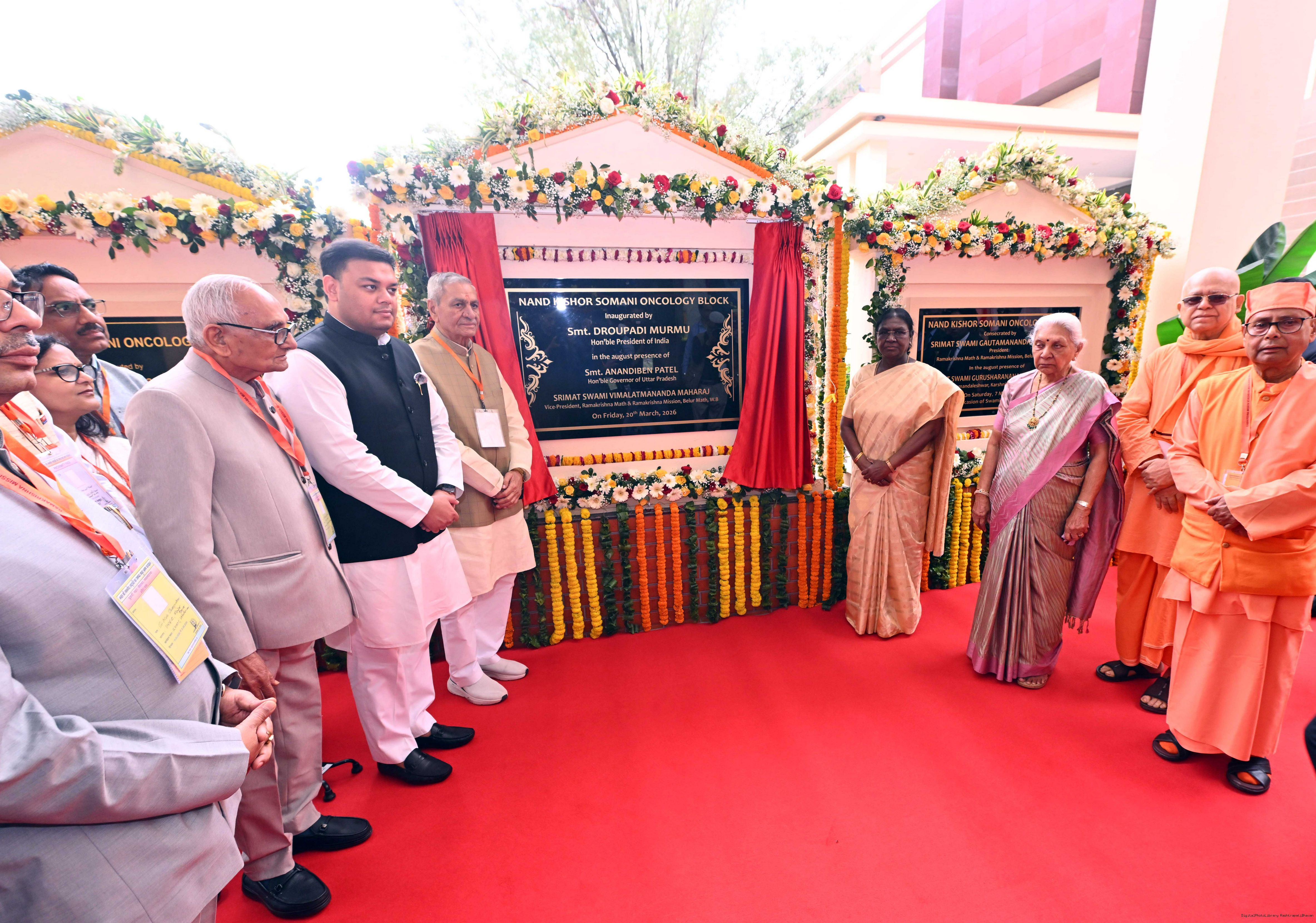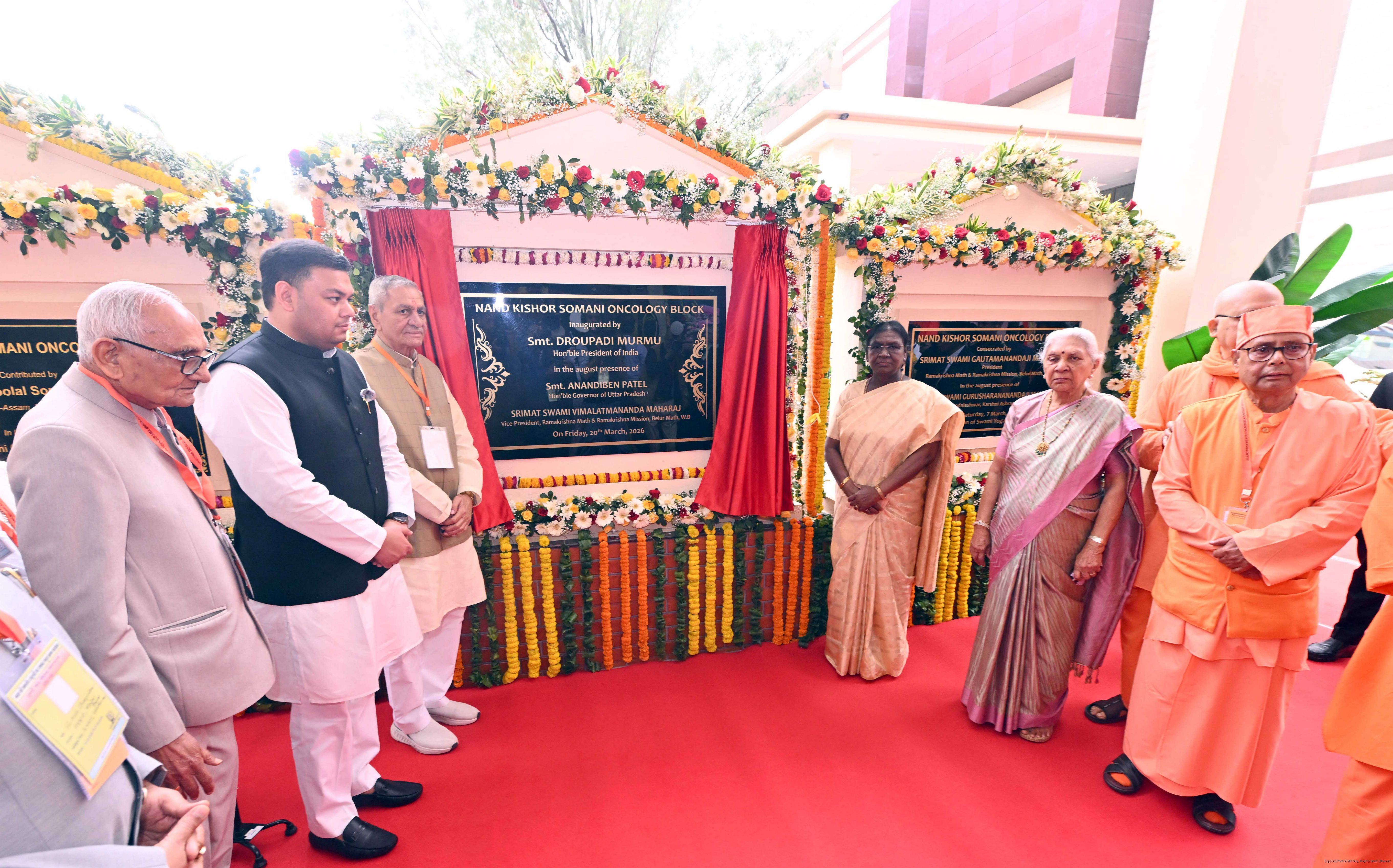 | Caption: | The President of India, Smt Droupadi Murmu inaugurated the Nand Kishor Somani Oncology Block of Ramakrishna Mission Sevashram at Vrindavan, Uttar Pradesh on March 20, 2026. |