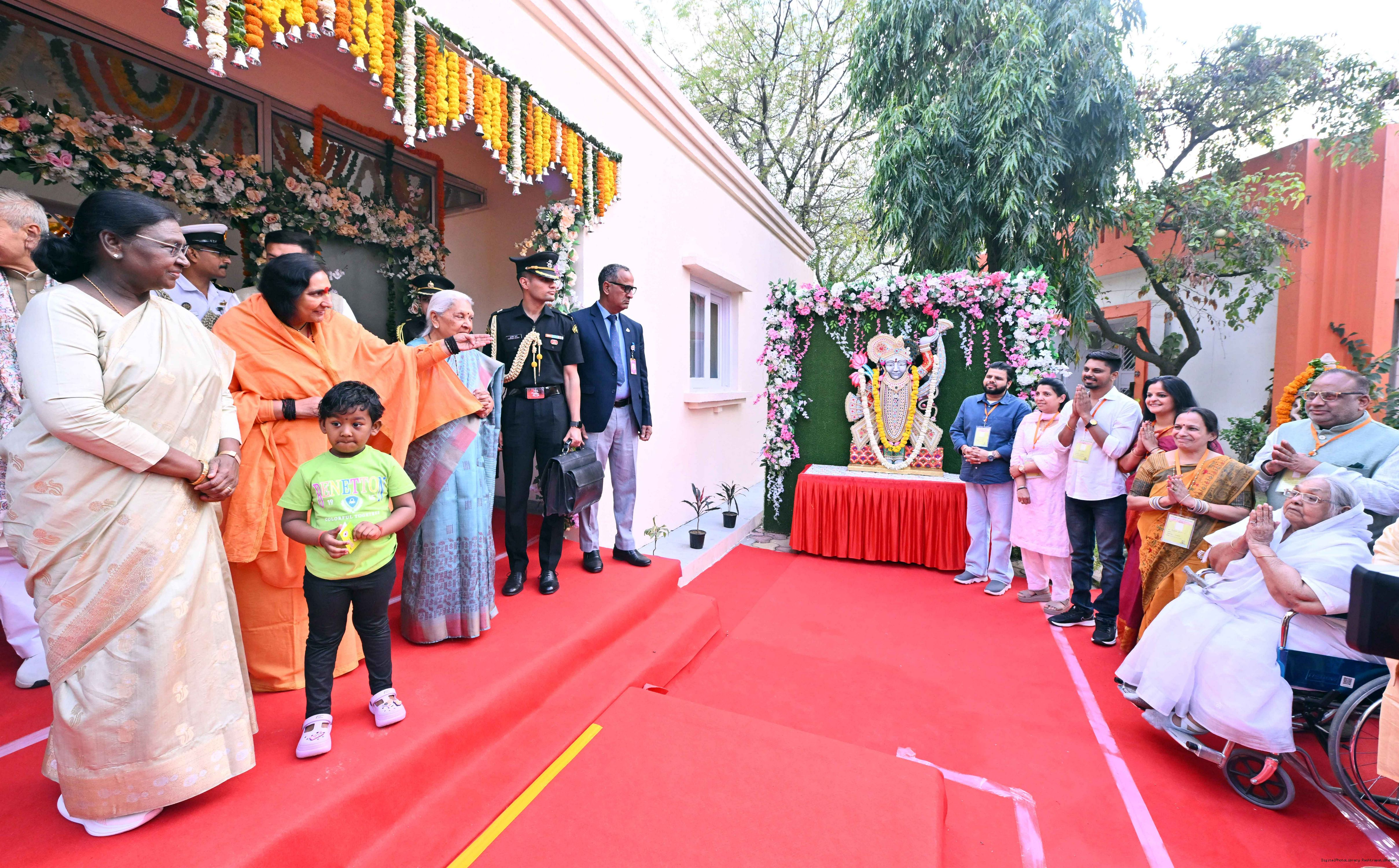 Caption: The President of India, Smt Droupadi Murmu visited vatsalya gram Vrindavan, Uttar Pradesh on March 20, 2026.