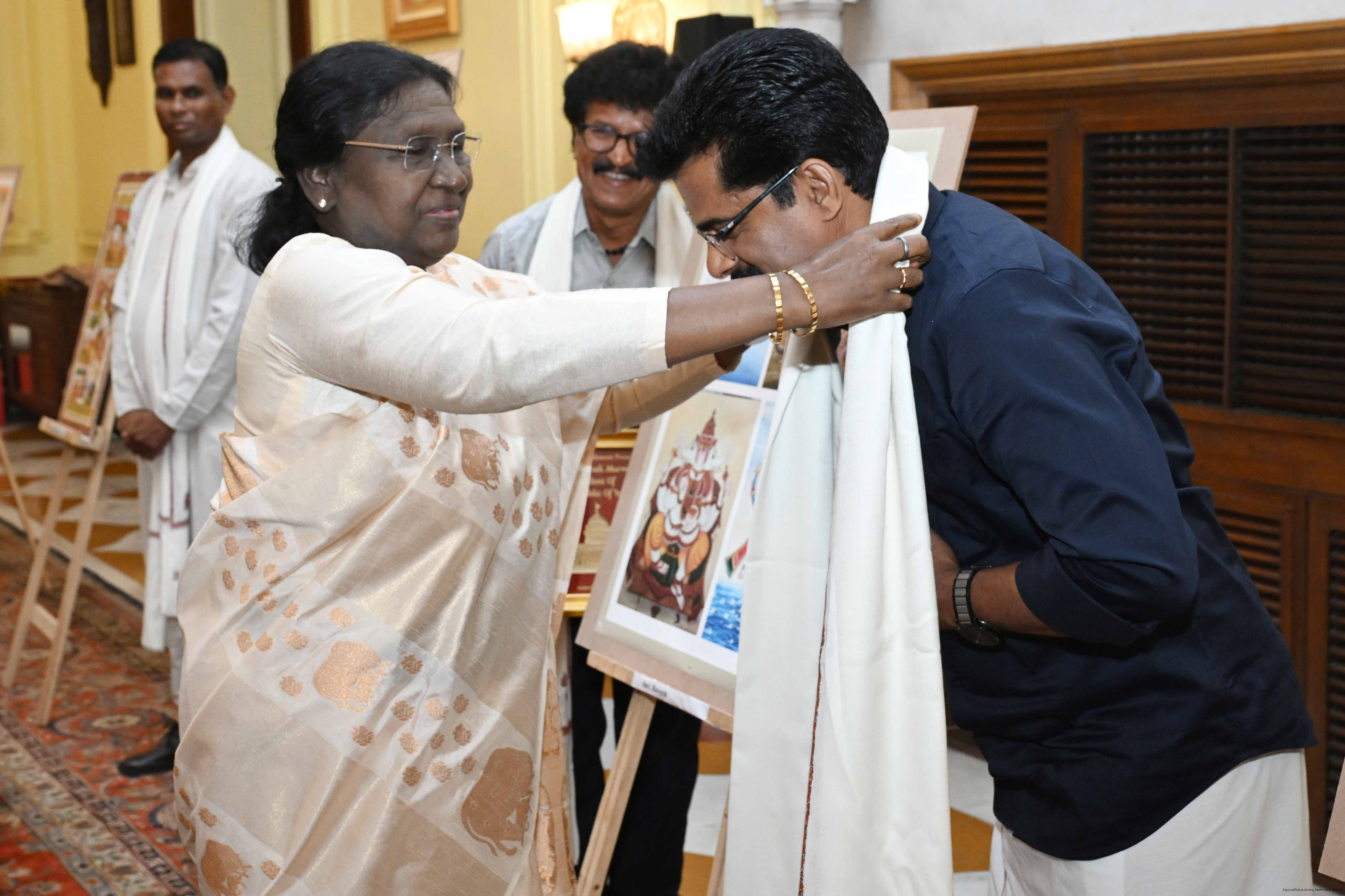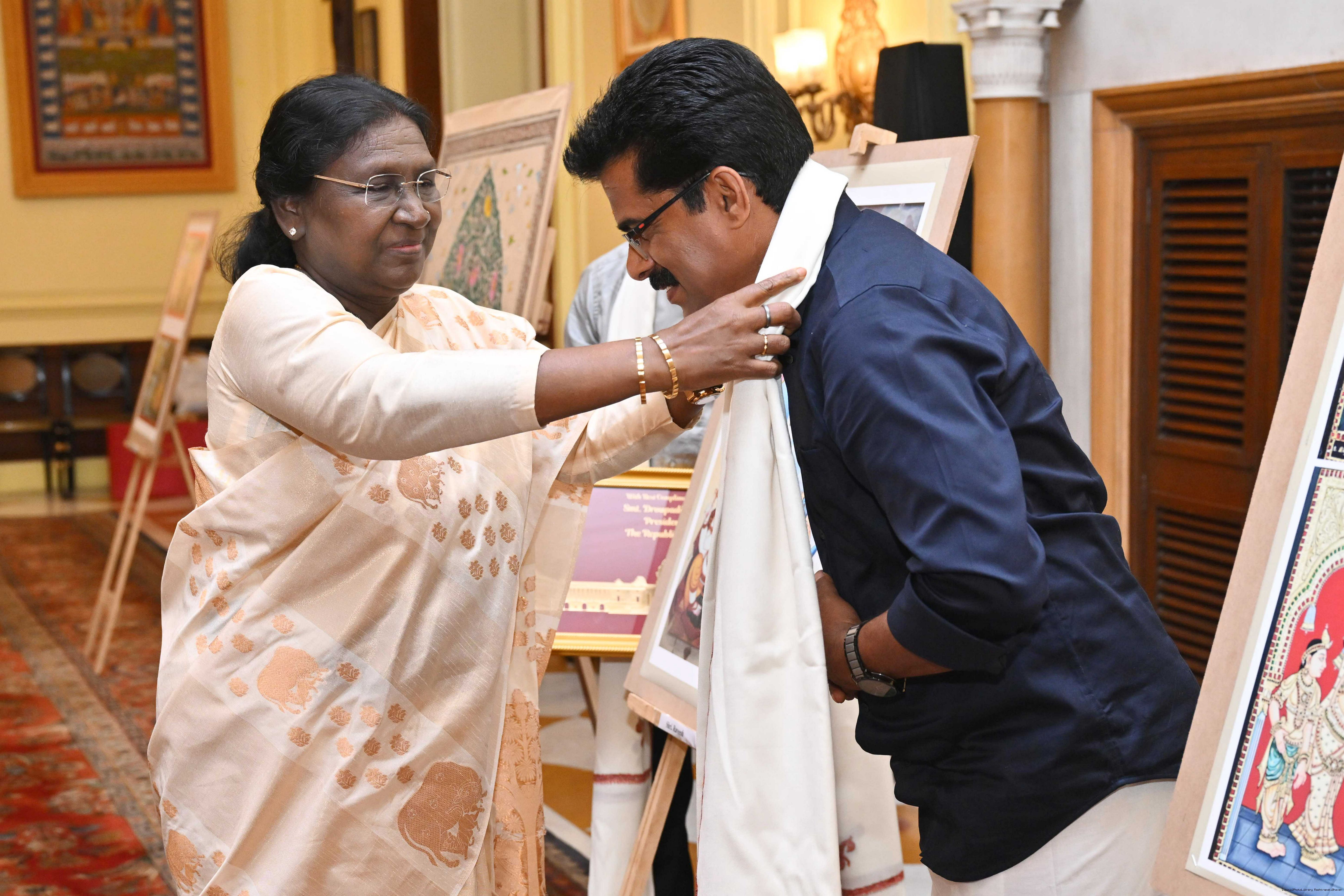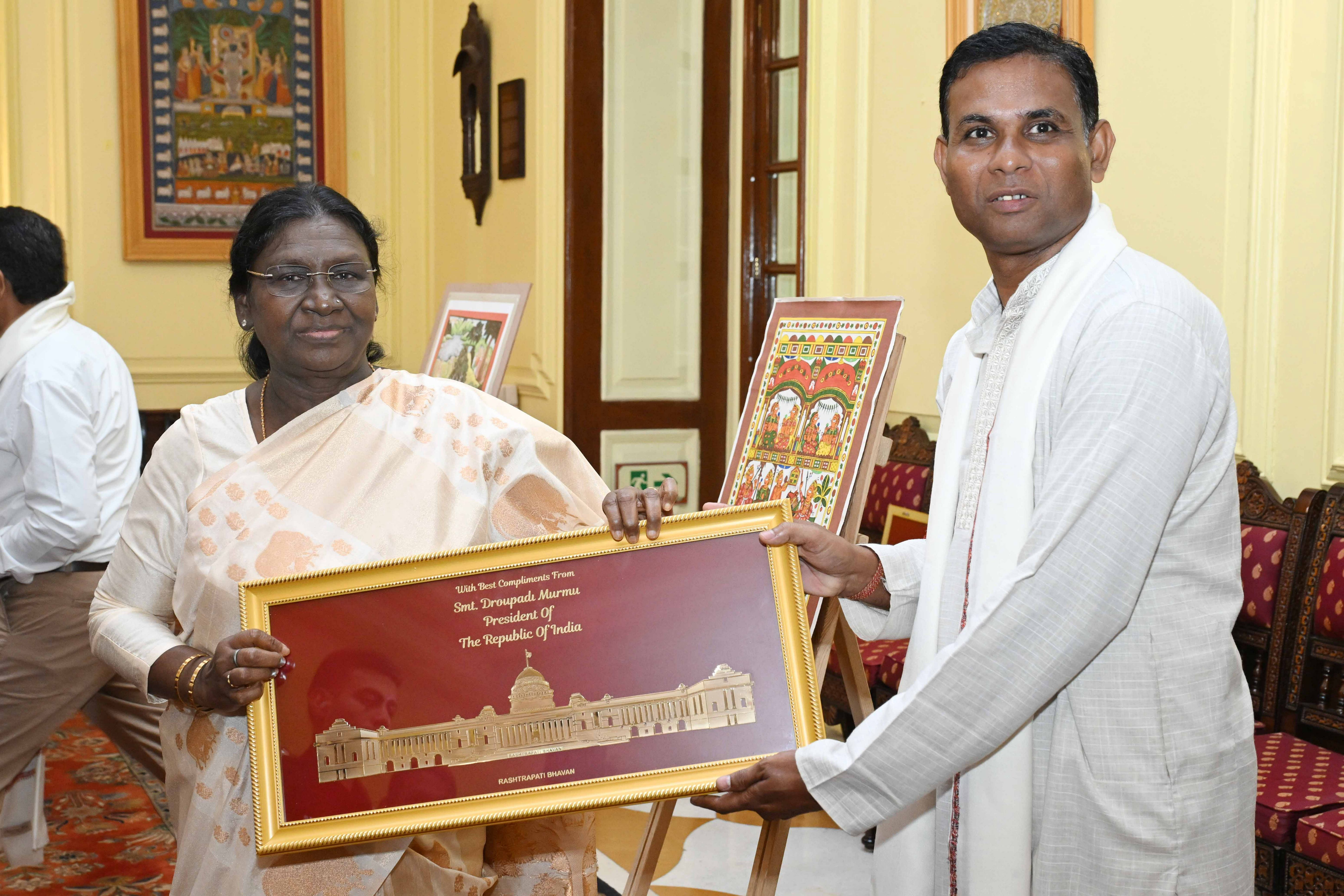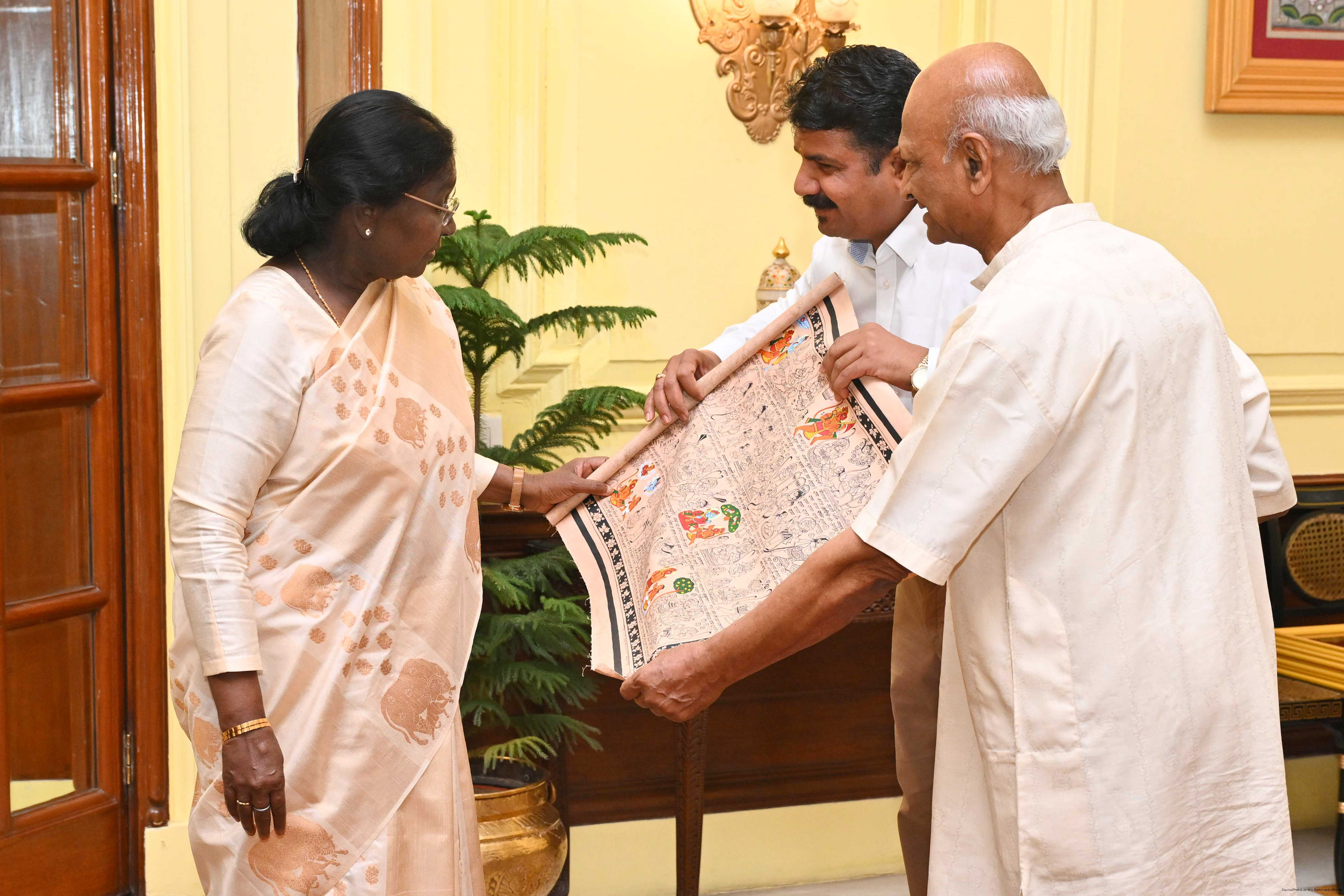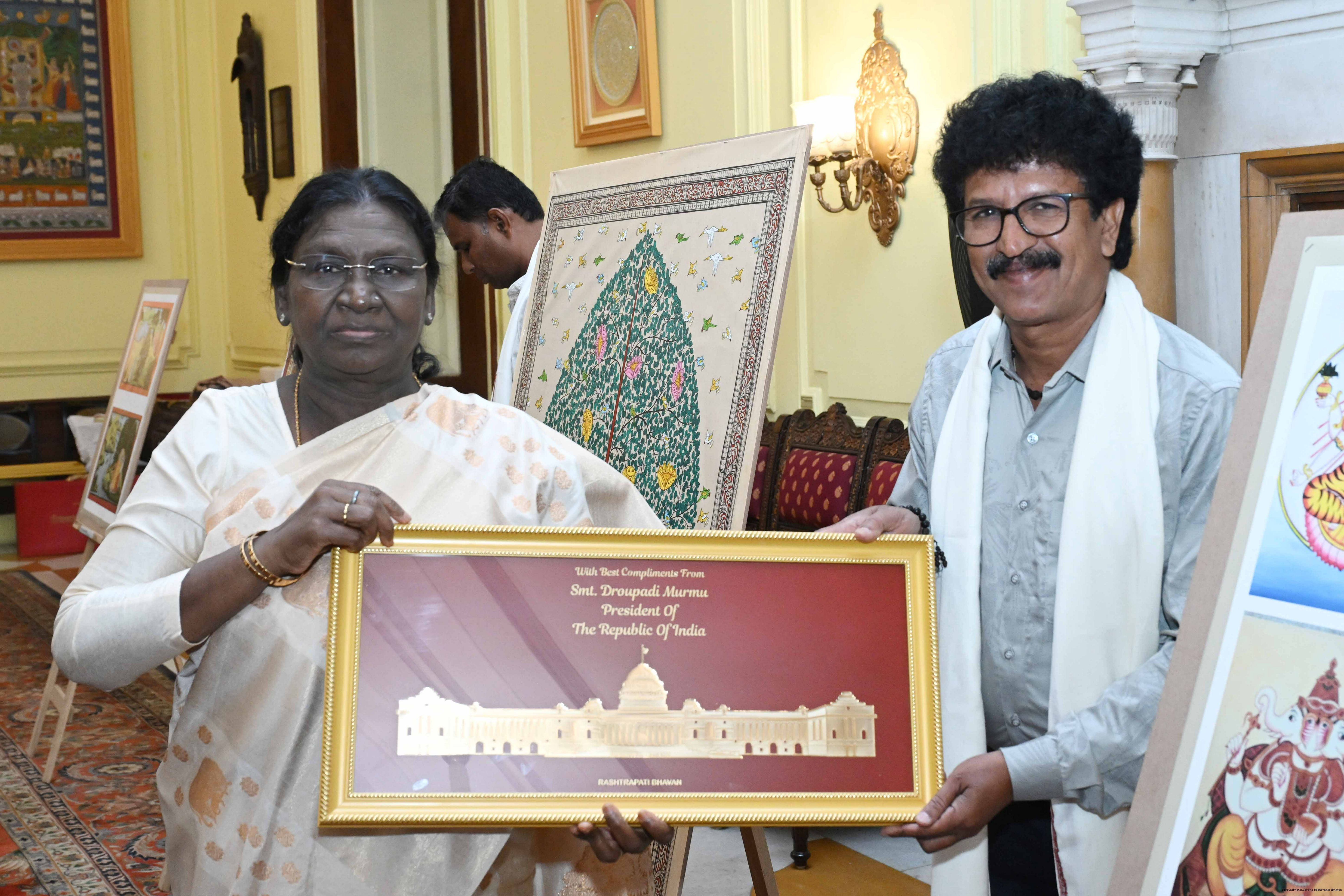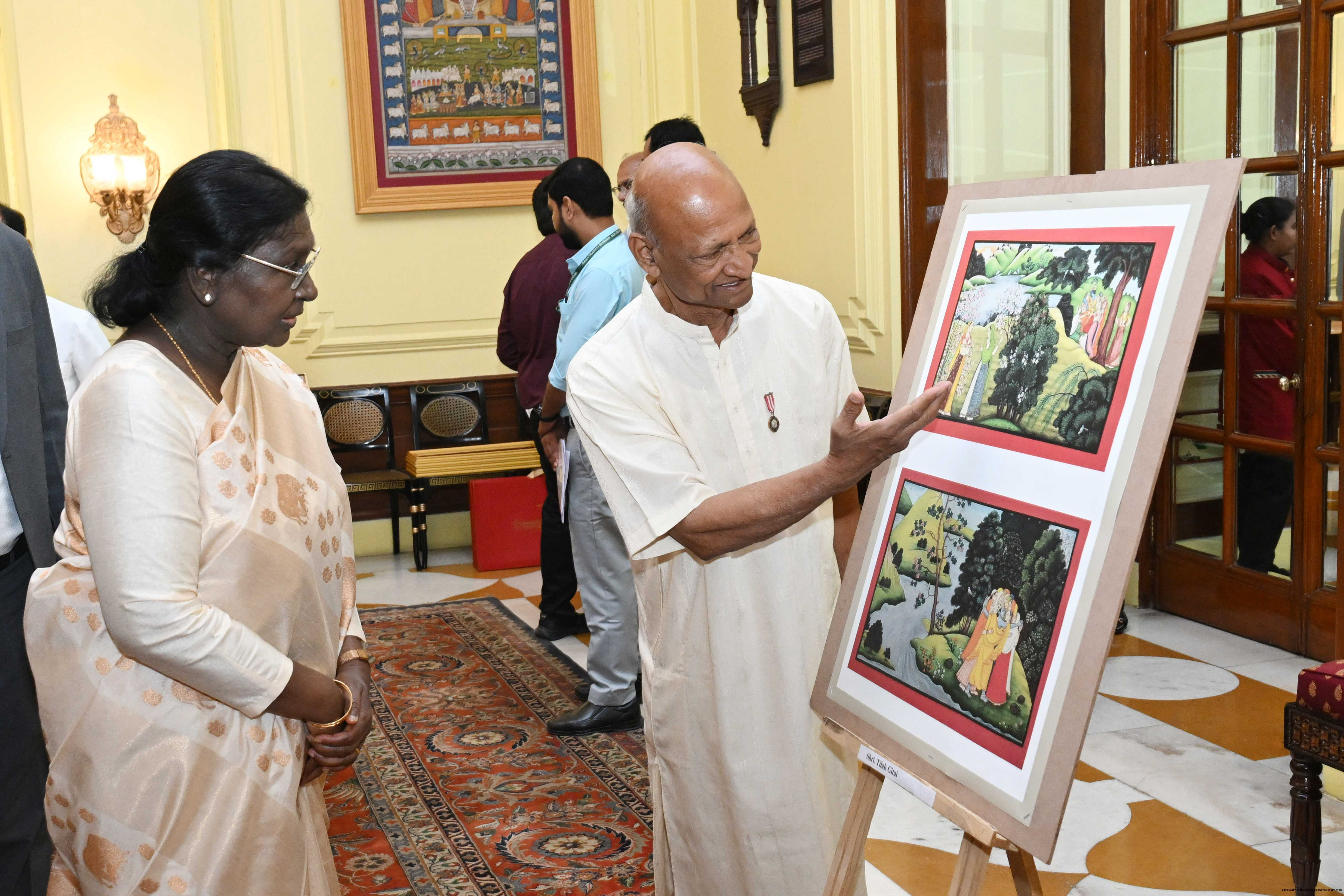 | Caption: | The President of India, Smt Droupadi Murmu met a group of artists of traditional paintings and mural art forms and witnessed their artworks at Rashtrapati Bhavan on March 24, 2026. |