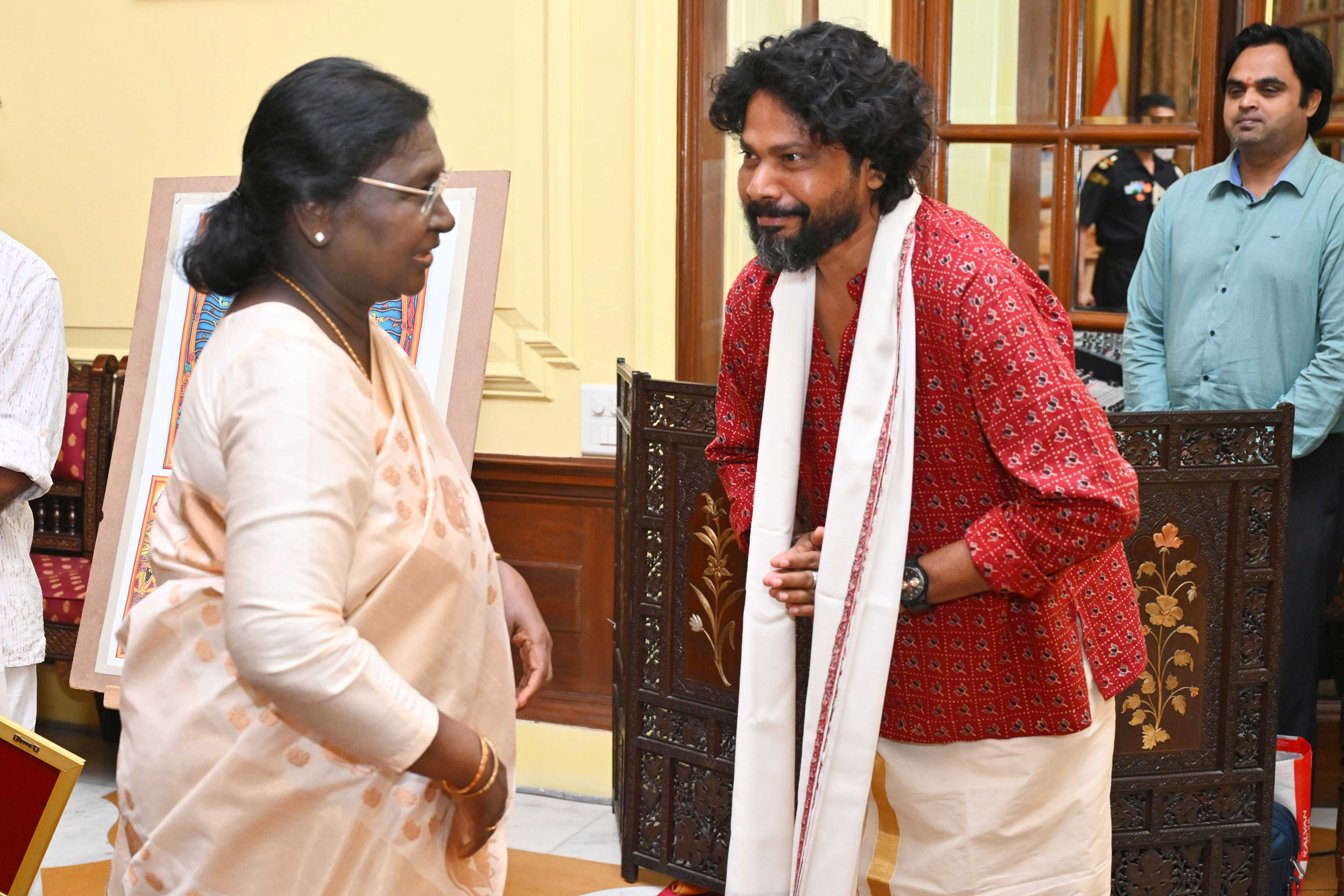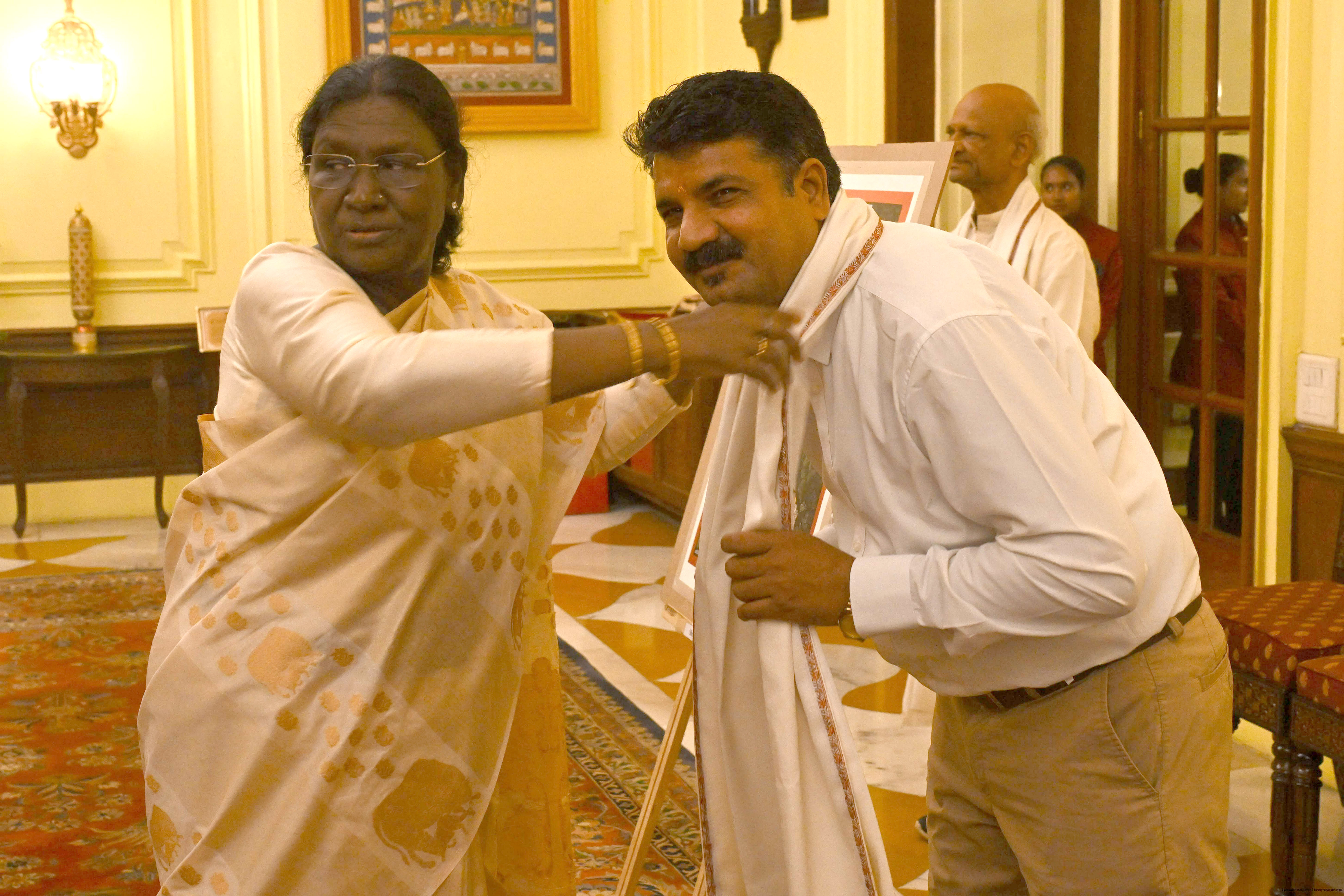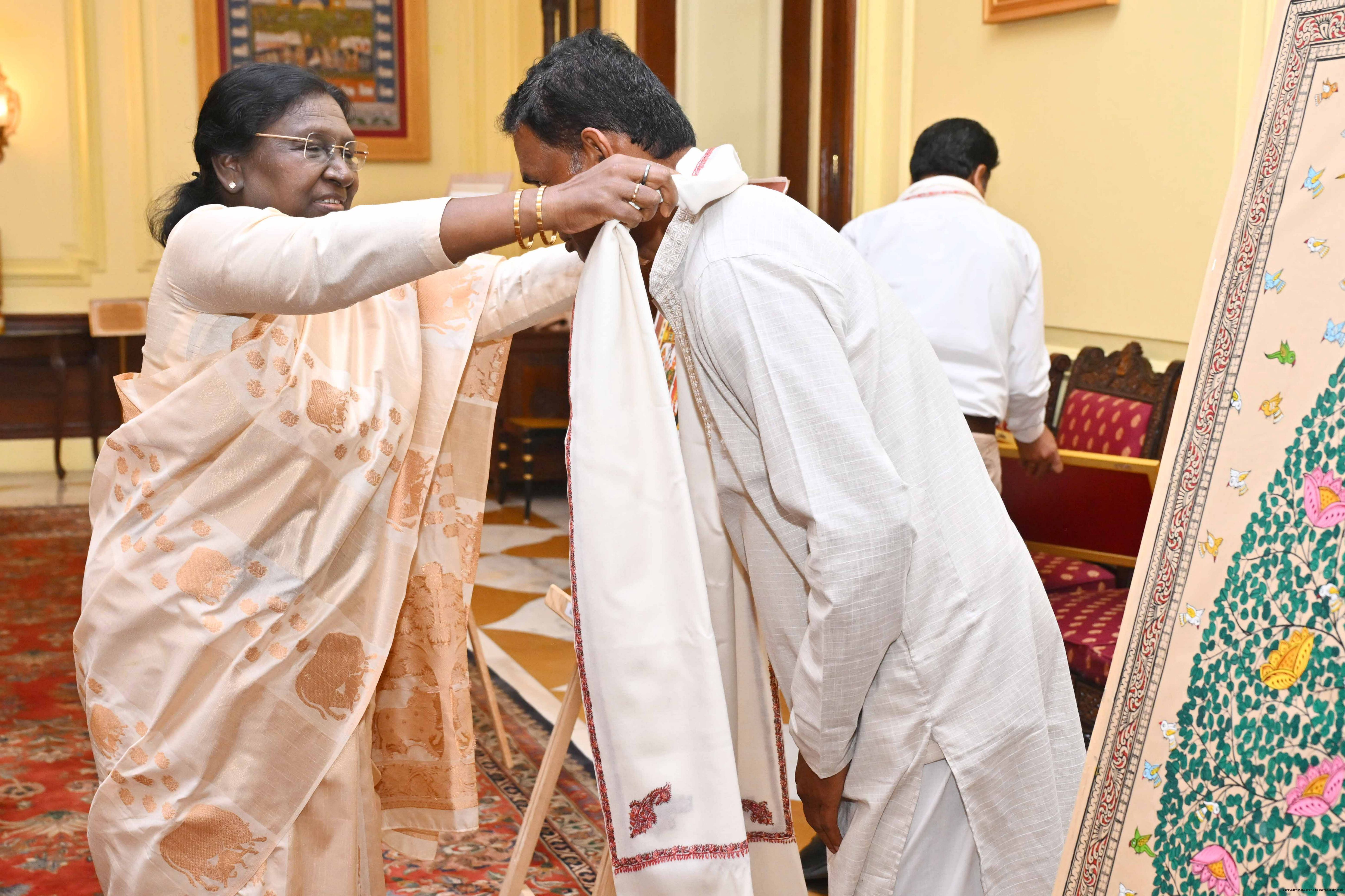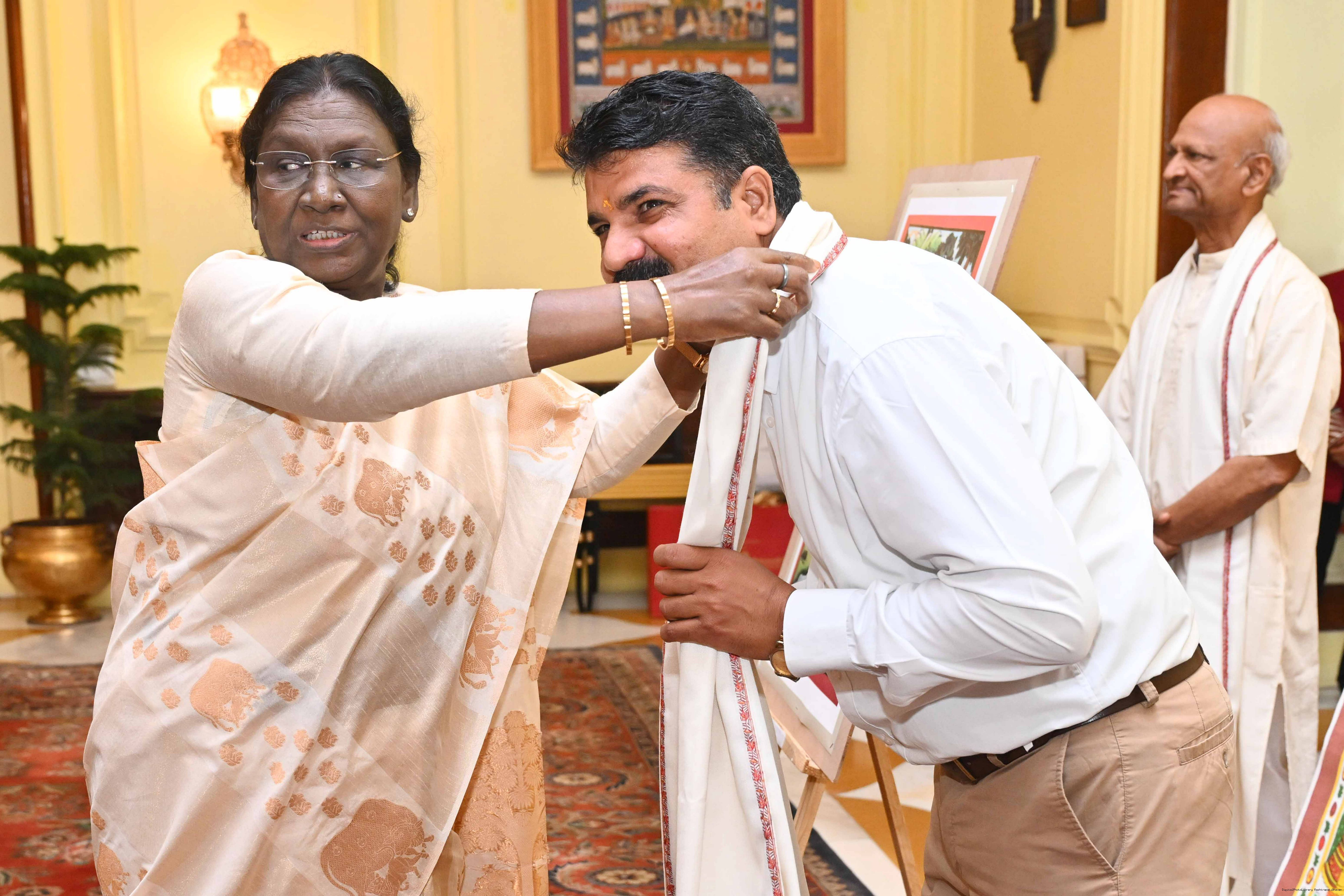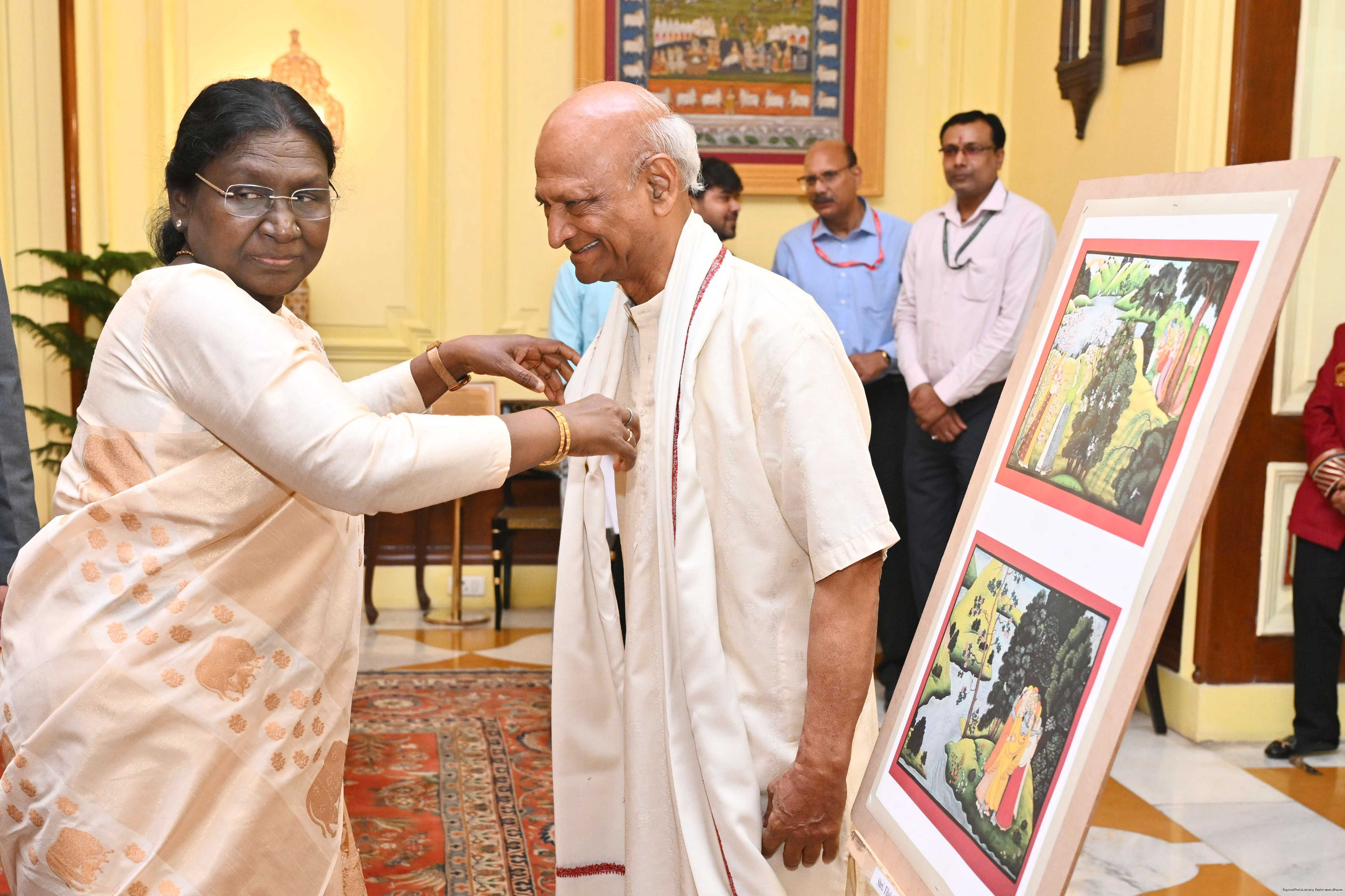 | Caption: | The President of India, Smt Droupadi Murmu met a group of artists of traditional paintings and mural art forms and witnessed their artworks at Rashtrapati Bhavan on March 24, 2026. |