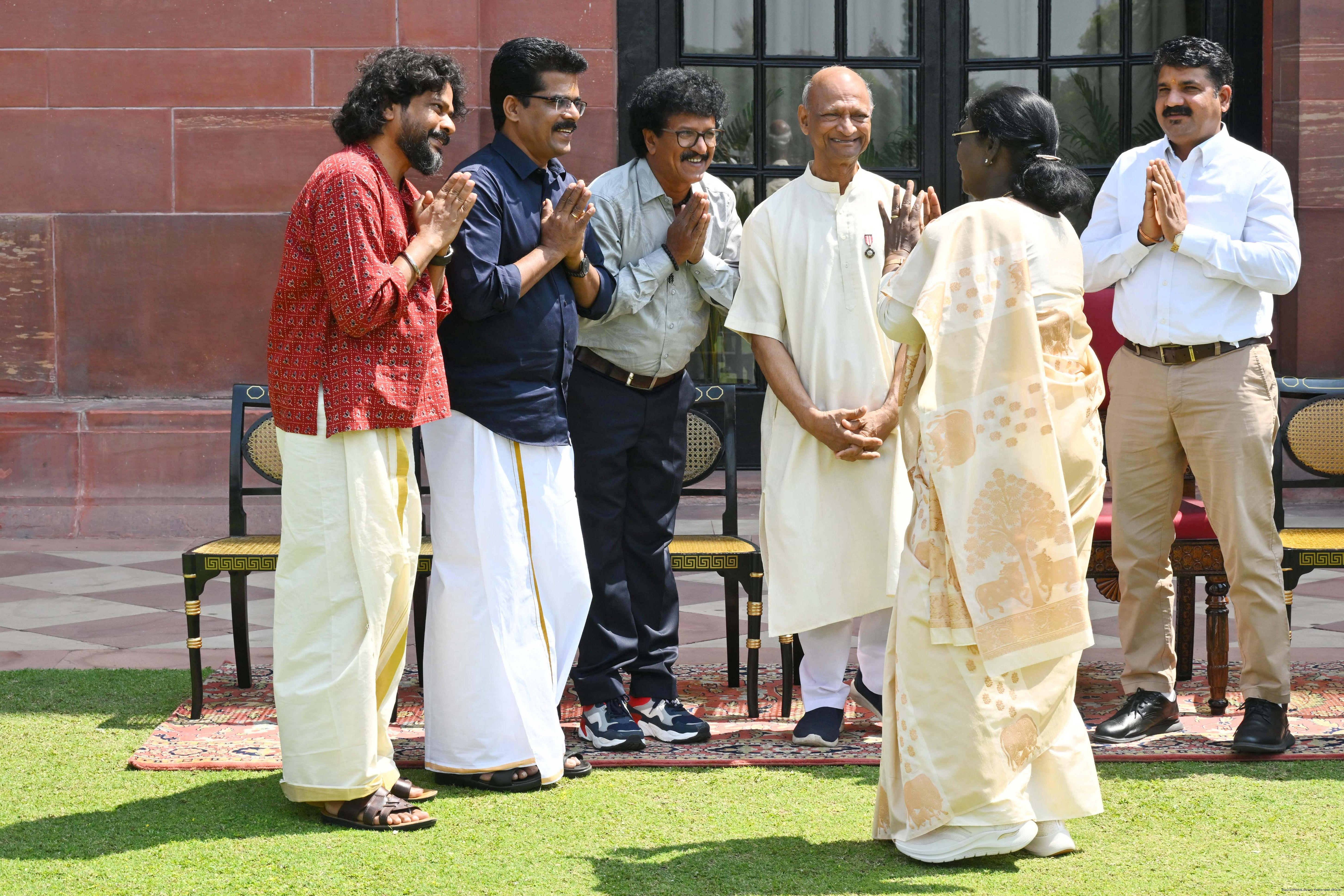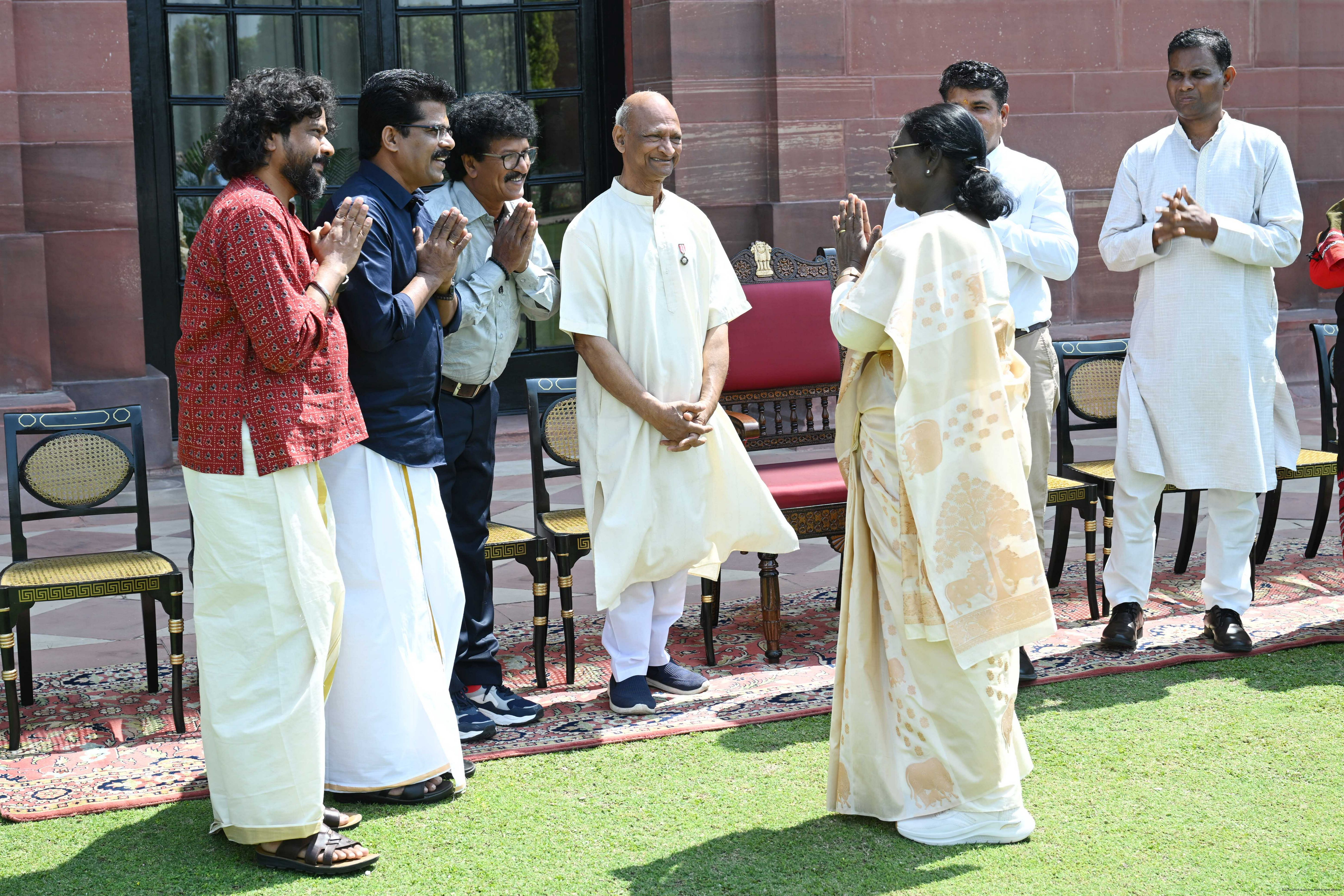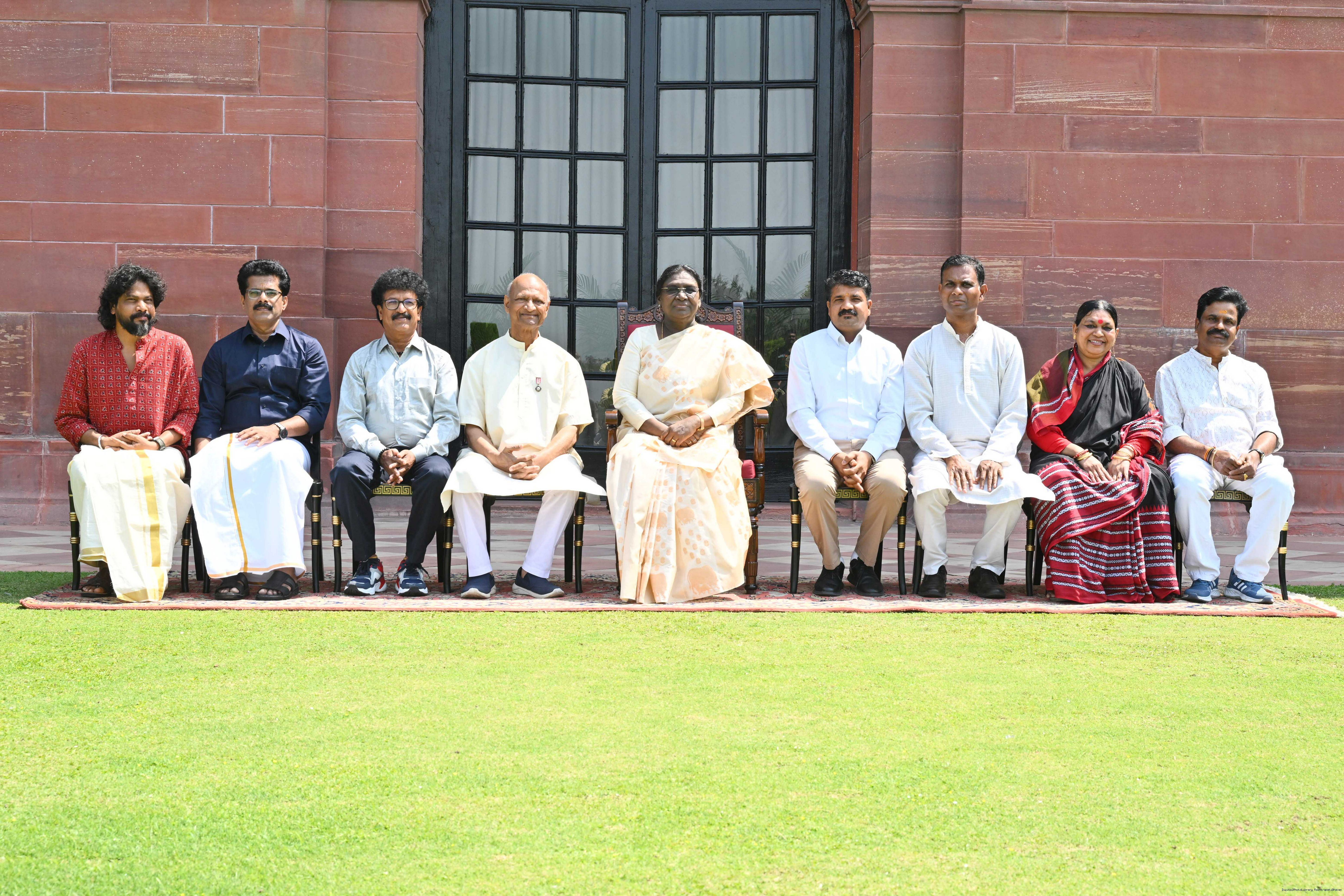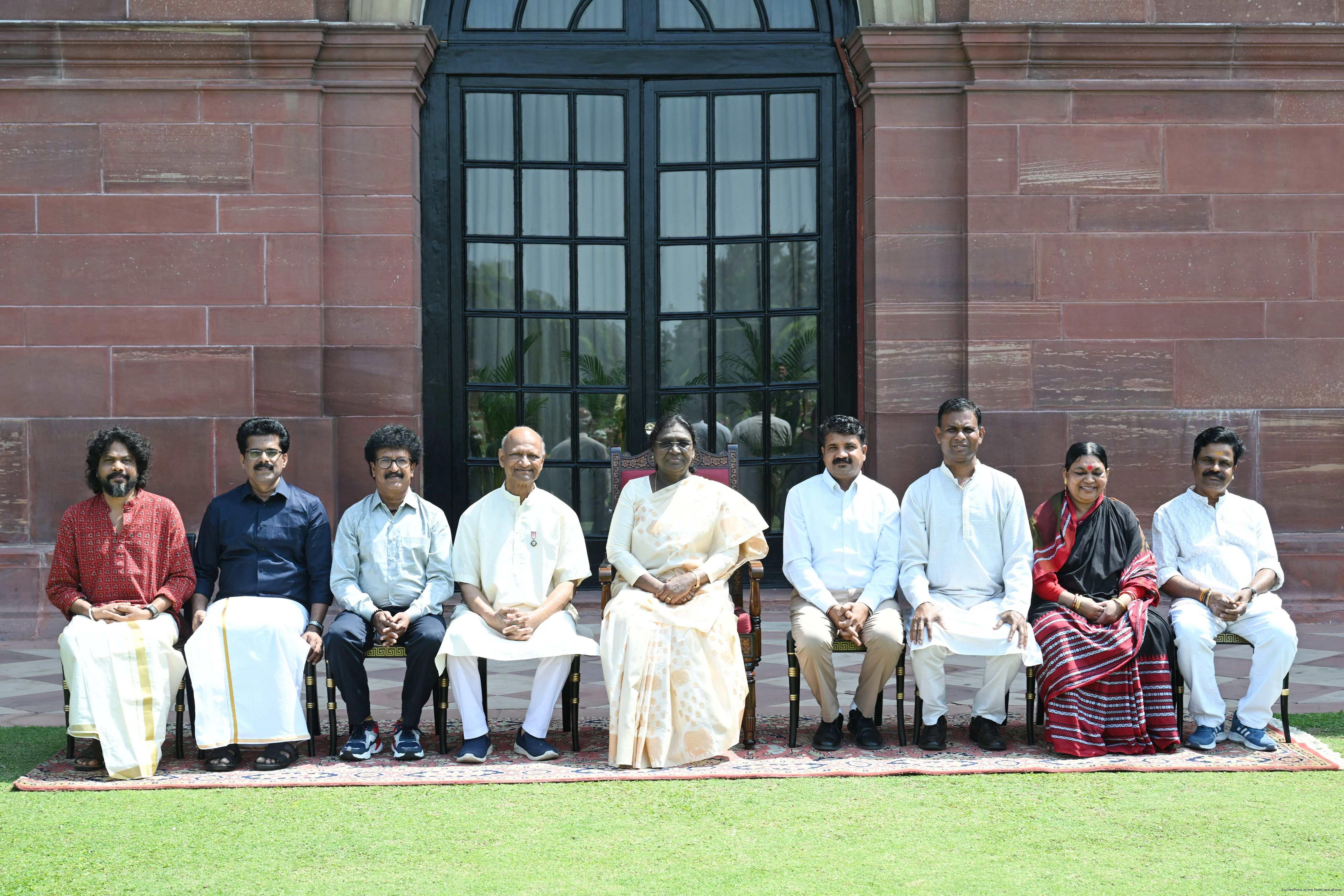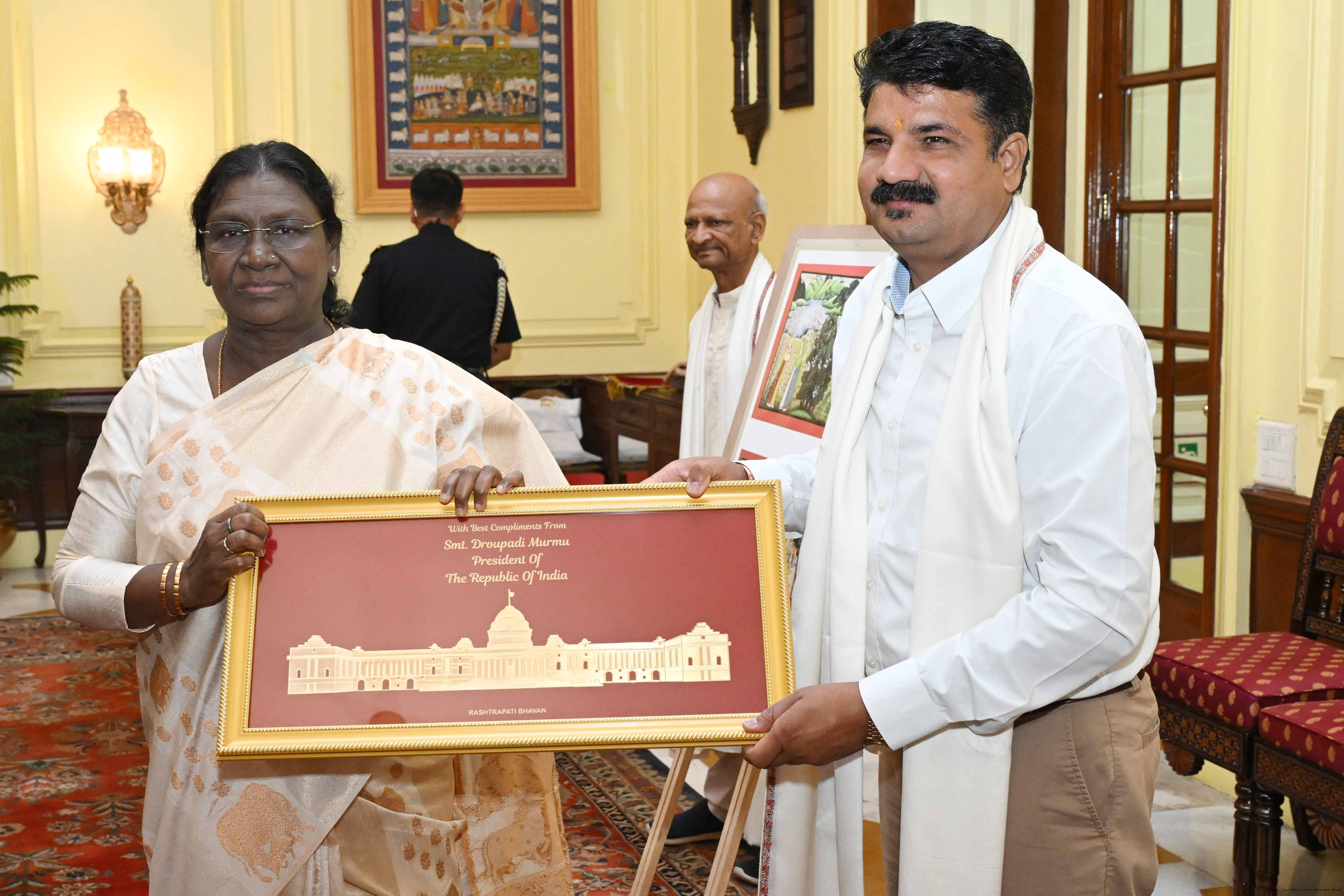| Caption: | The President of India, Smt Droupadi Murmu met a group of artists of traditional paintings and mural art forms and witnessed their artworks at Rashtrapati Bhavan on March 24, 2026. |