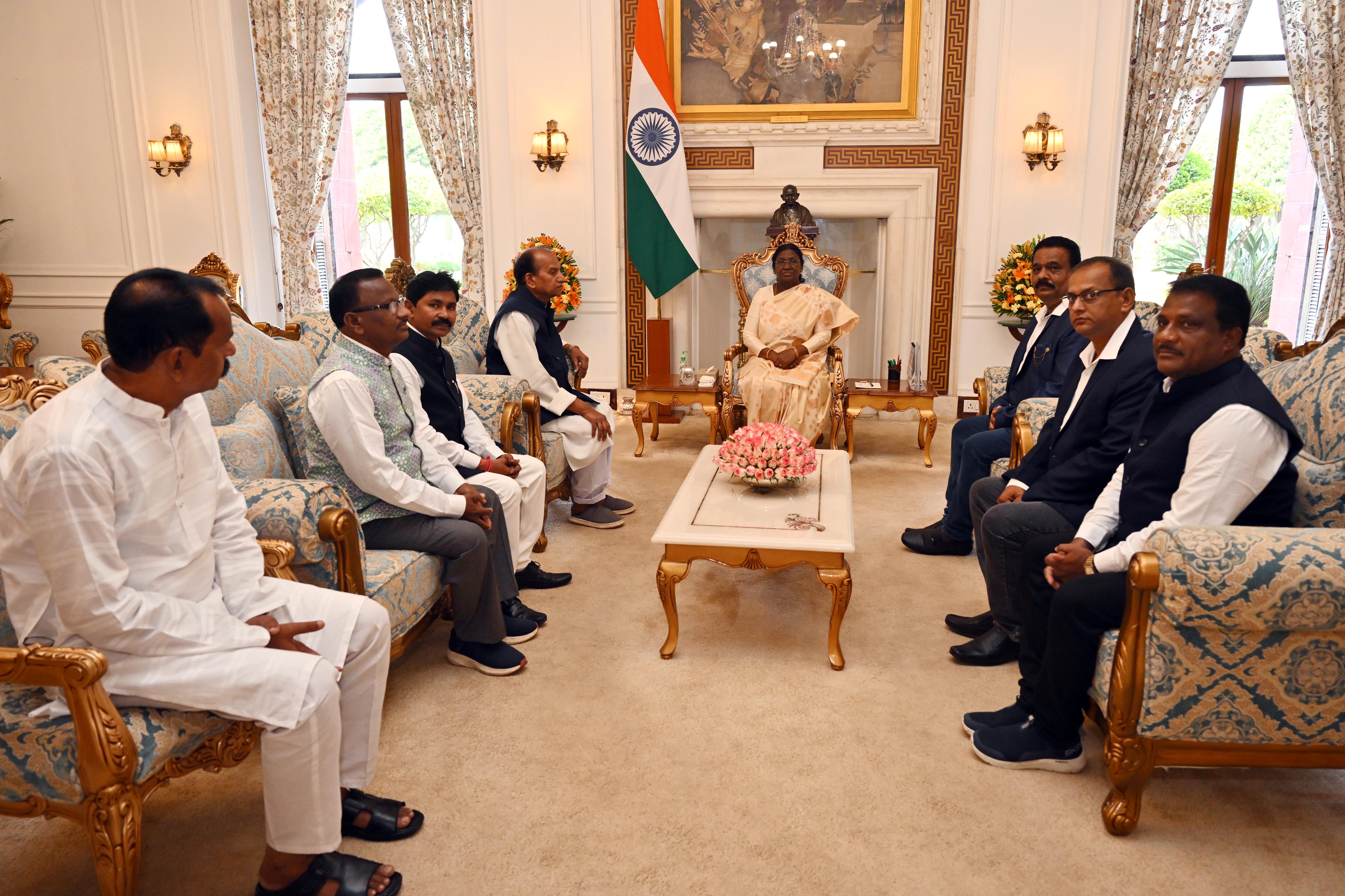 | Caption: | Shri Bimbadhar Kuanr, former Minister of Odisha along with others meeting with the President of India, Smt Droupadi Murmu at Rashtrapati Bhavan on March 24, 2026. |