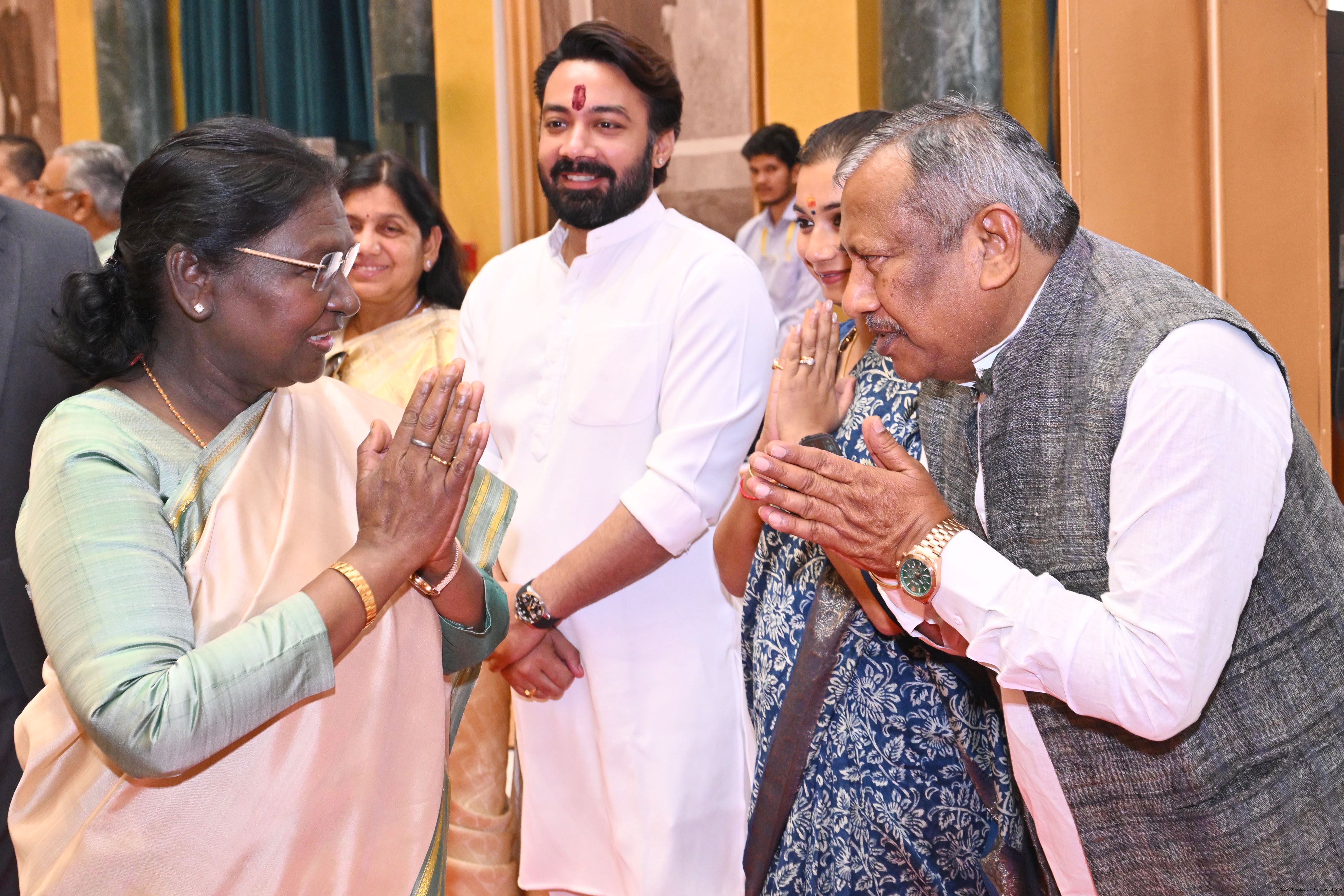 | Caption: | The President of India, Smt Droupadi Murmu hosted Members of Parliament from Bihar, Chhattisgarh, Himachal Pradesh, Jammu Kashmir, Assam, Arunachal Pradesh, Manipur and Meghalaya for breakfast at Rashtrapati Bhavan Cultural Centre on March 30, 2026. |