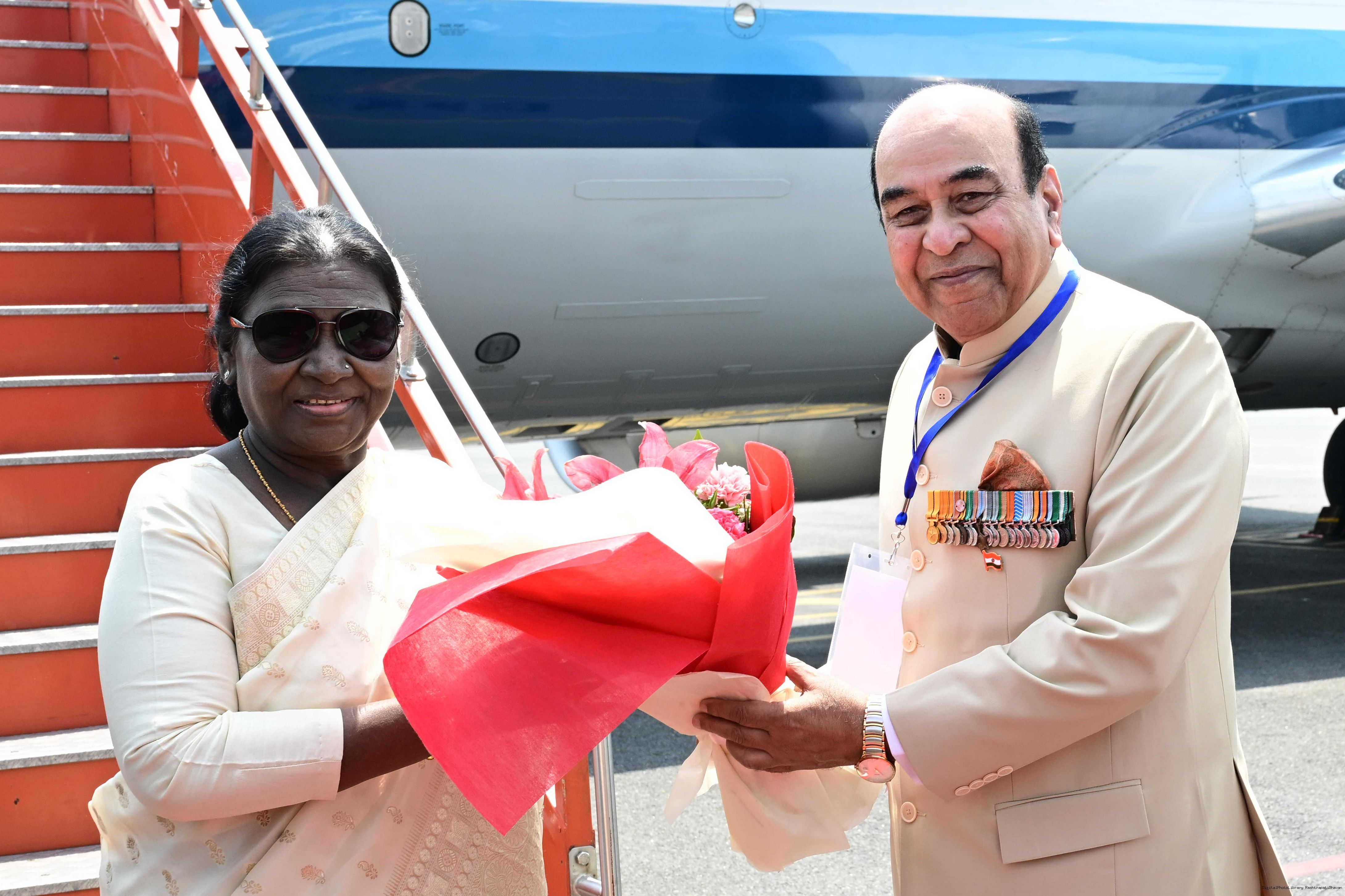 | Caption: | The Governor of Bihar, Lt Gen Syed Ata Hasnain (Retd.) received the President of India, Smt Droupadi Murmu on her arrival at Gaya, Bihar on March 31, 2026. |