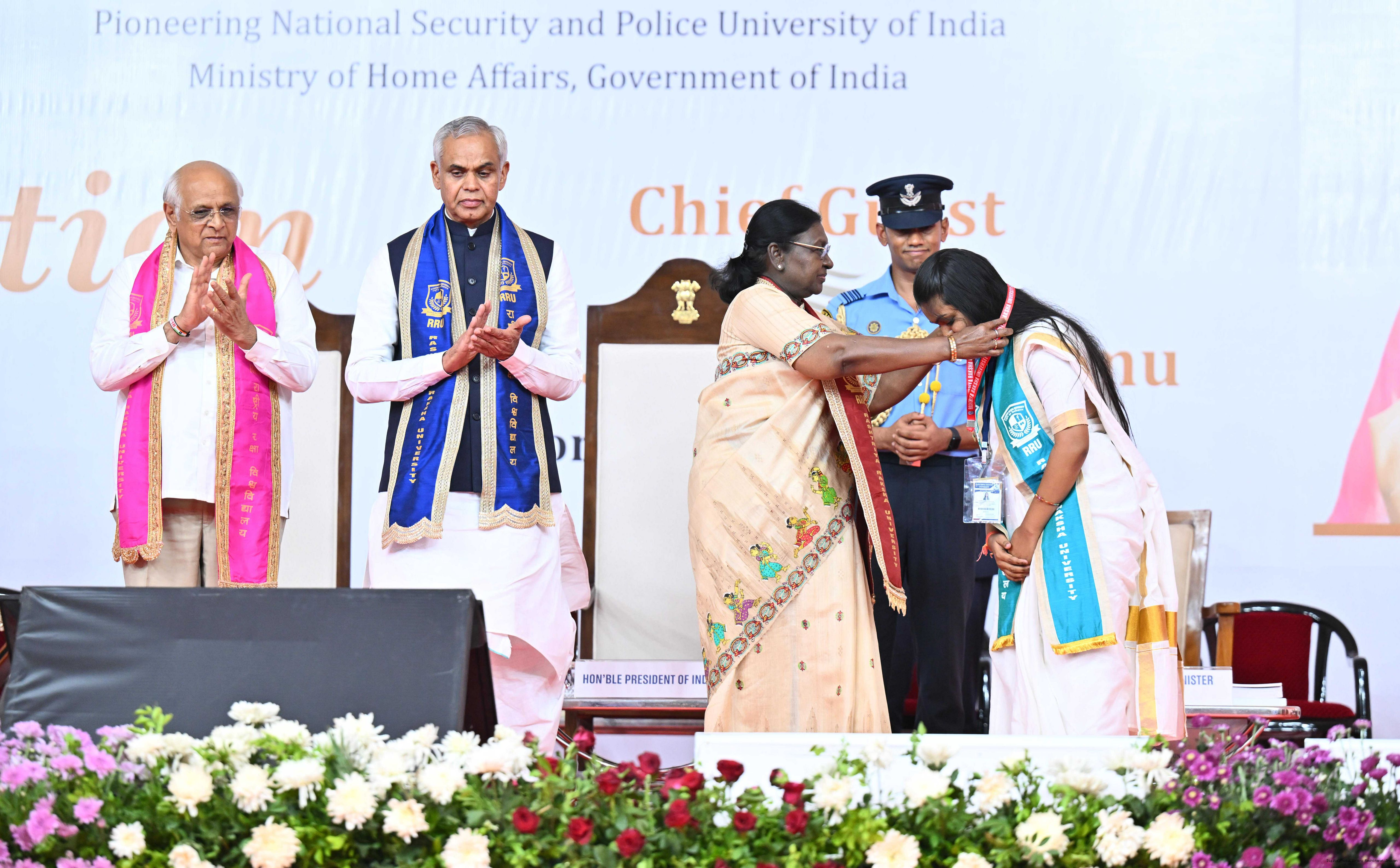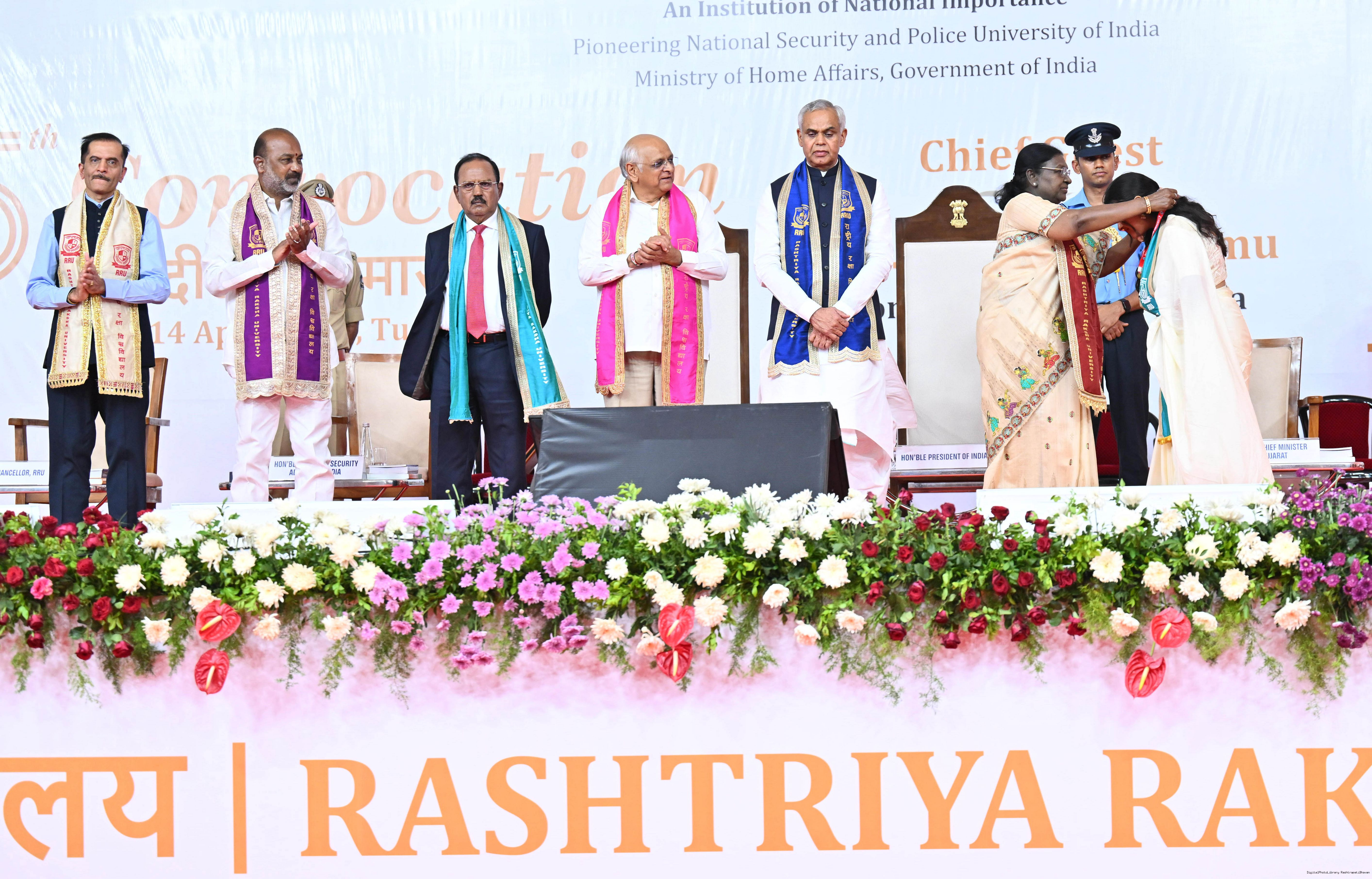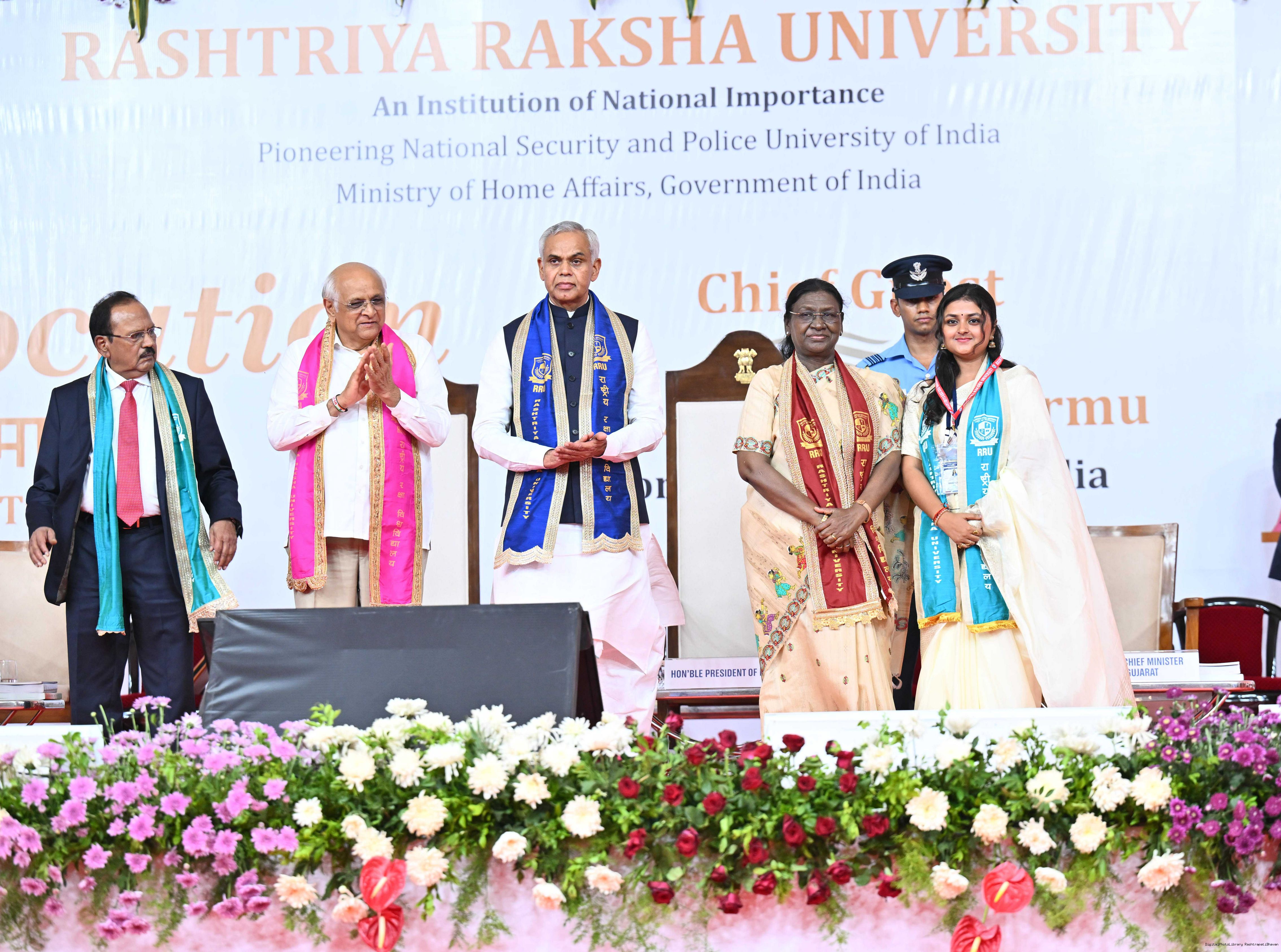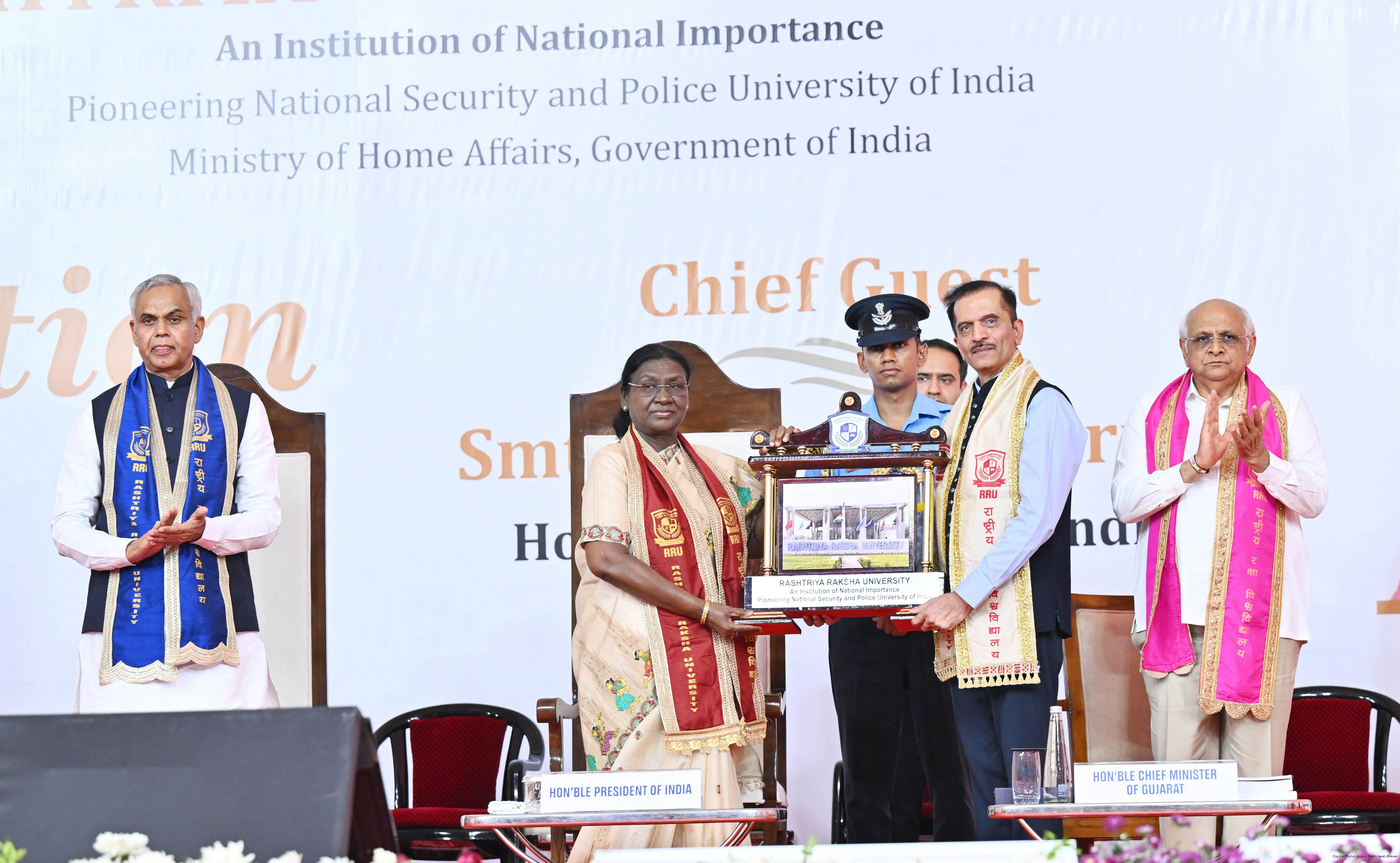Caption: The President of India, Smt Droupadi Murmu graced and addressed the convocation ceremony of Rashtriya Raksha University at Gandhinagar, Gujarat on April 14, 2026.