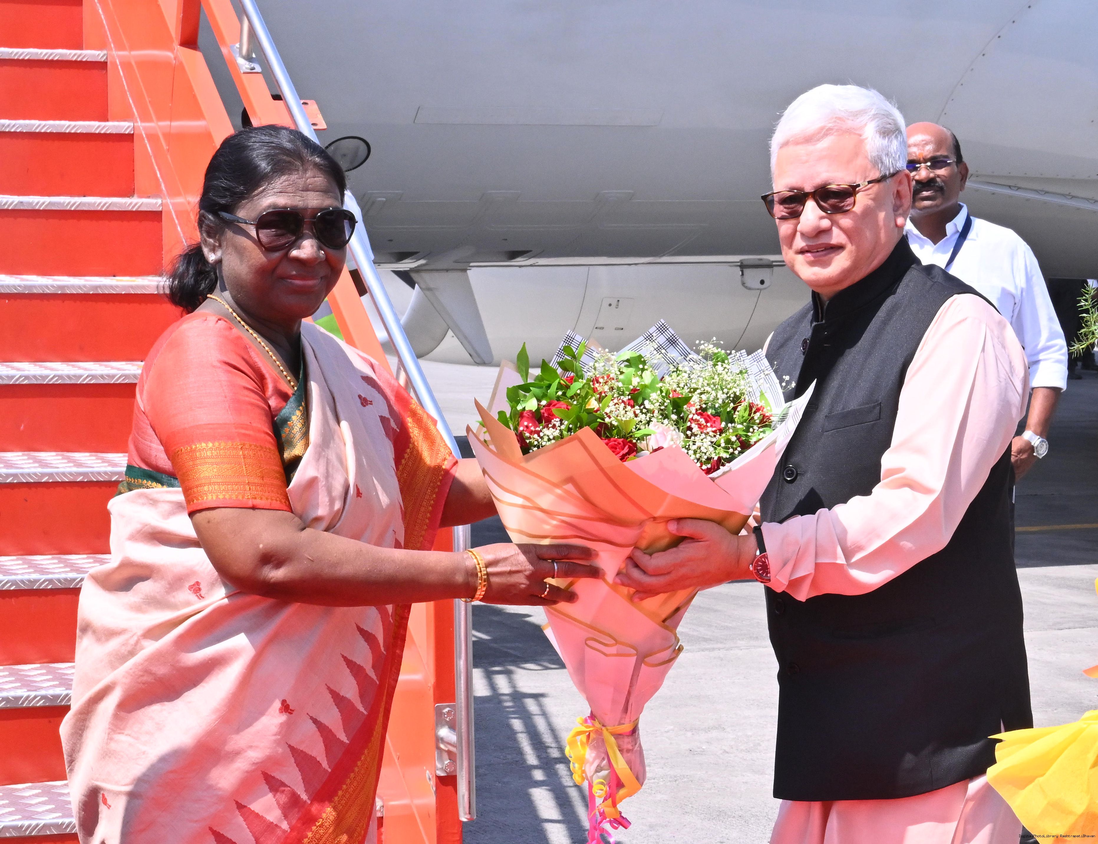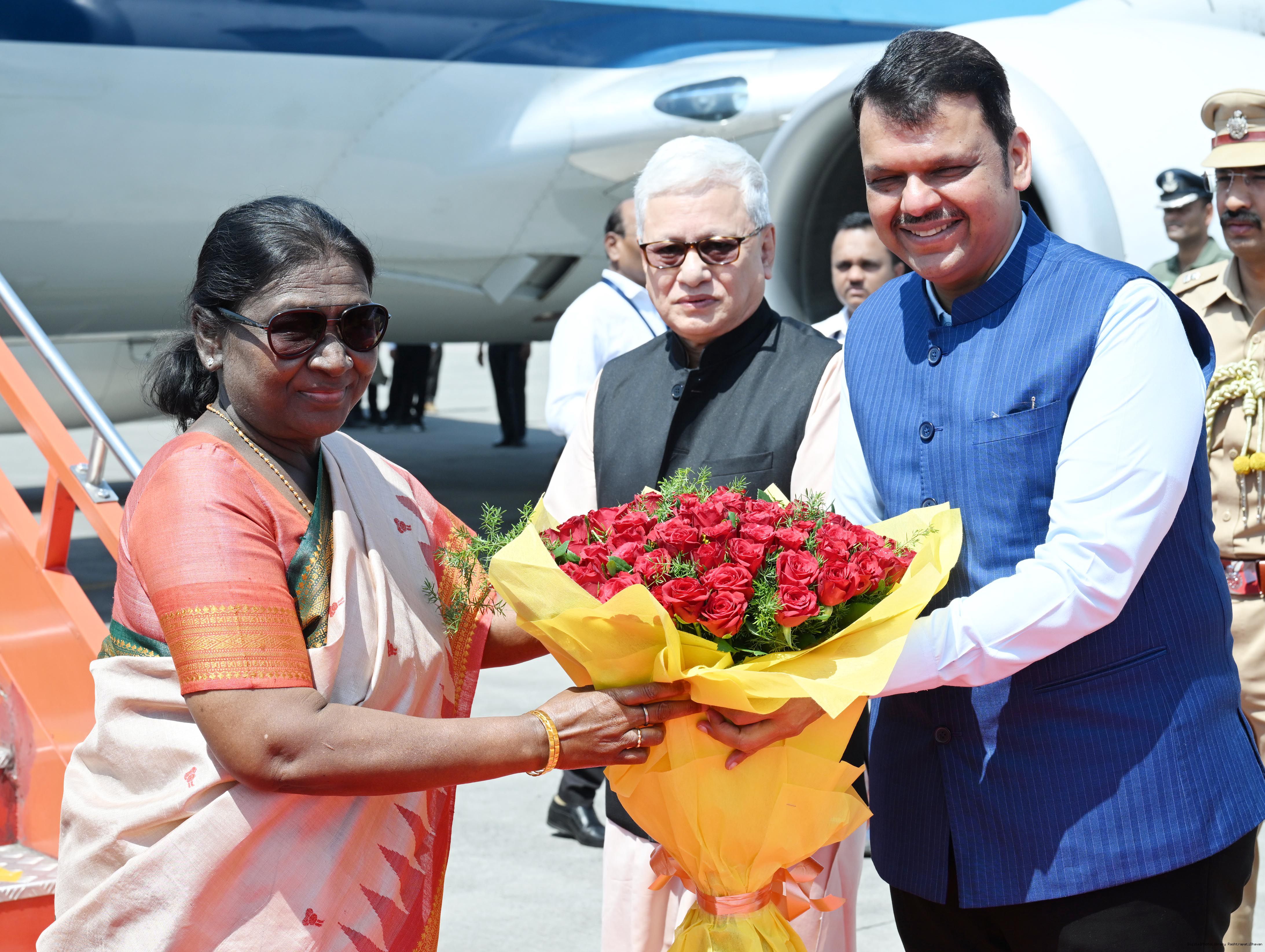 | Caption: | The Governor of Maharashtra, Shri Jishnu Dev Varma and Chief Minister Shri Devendra Fadnavis received the President of India, Smt Droupadi Murmu on her arrival at Nagpur, Maharashtra on April 15, 2026. |