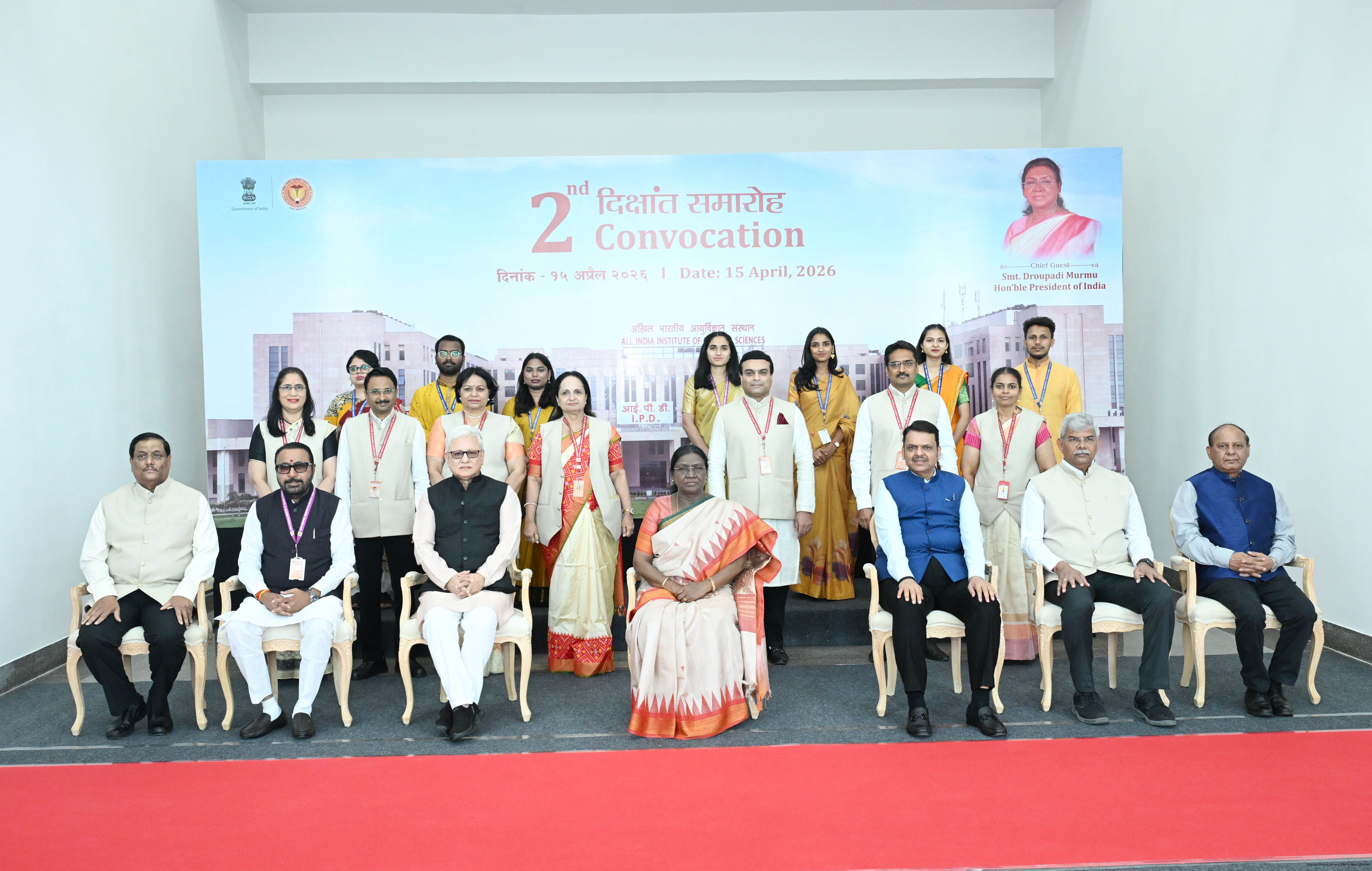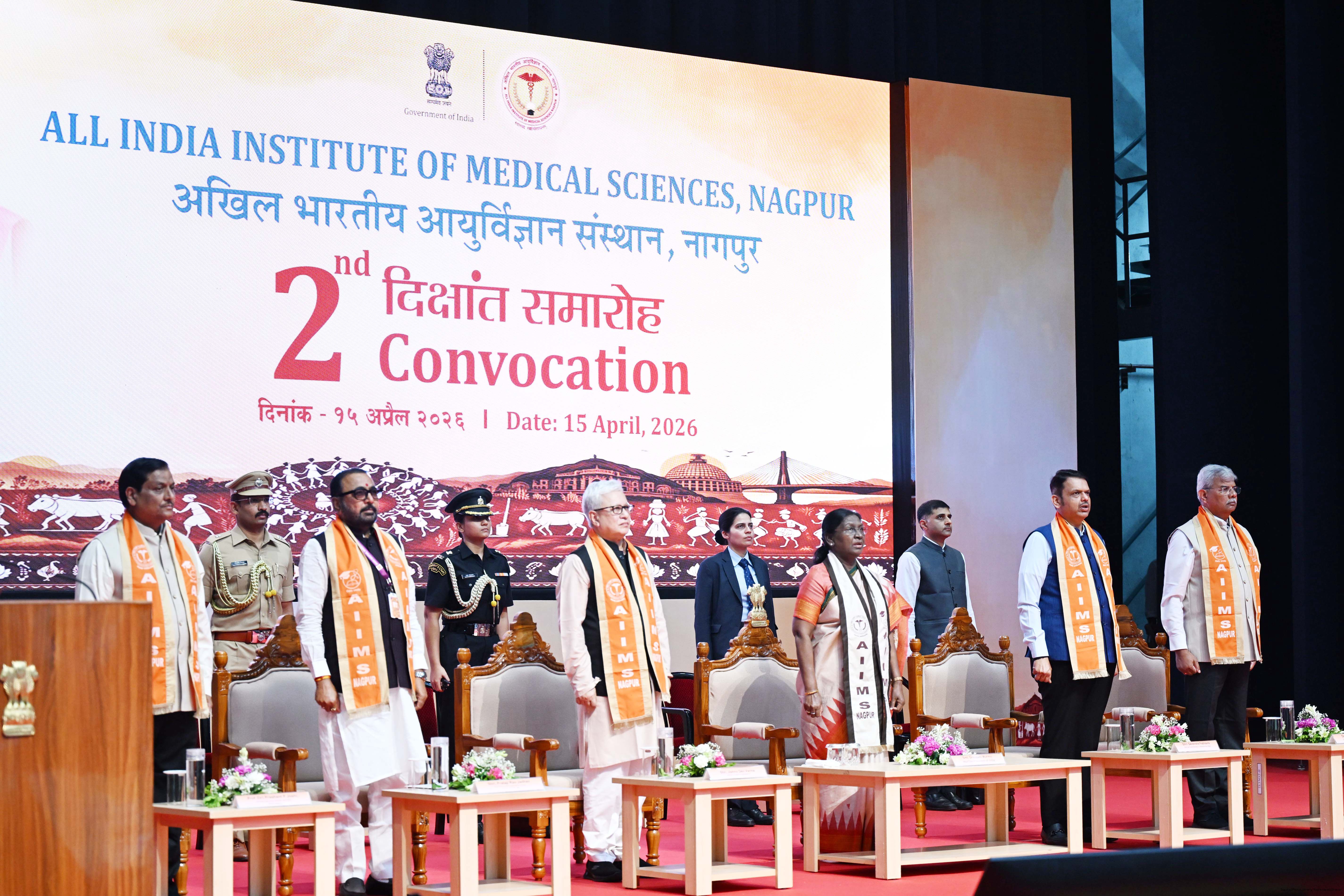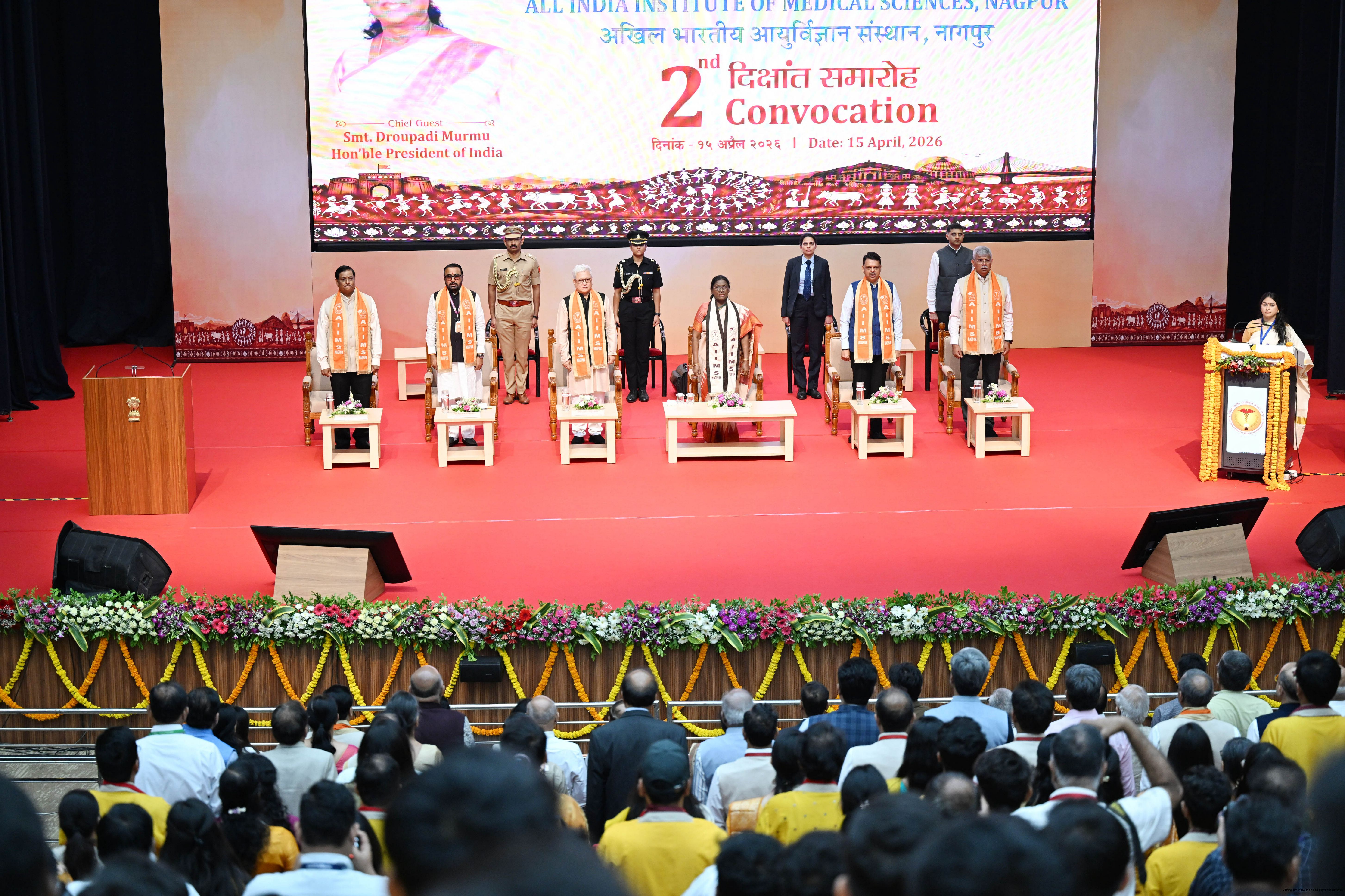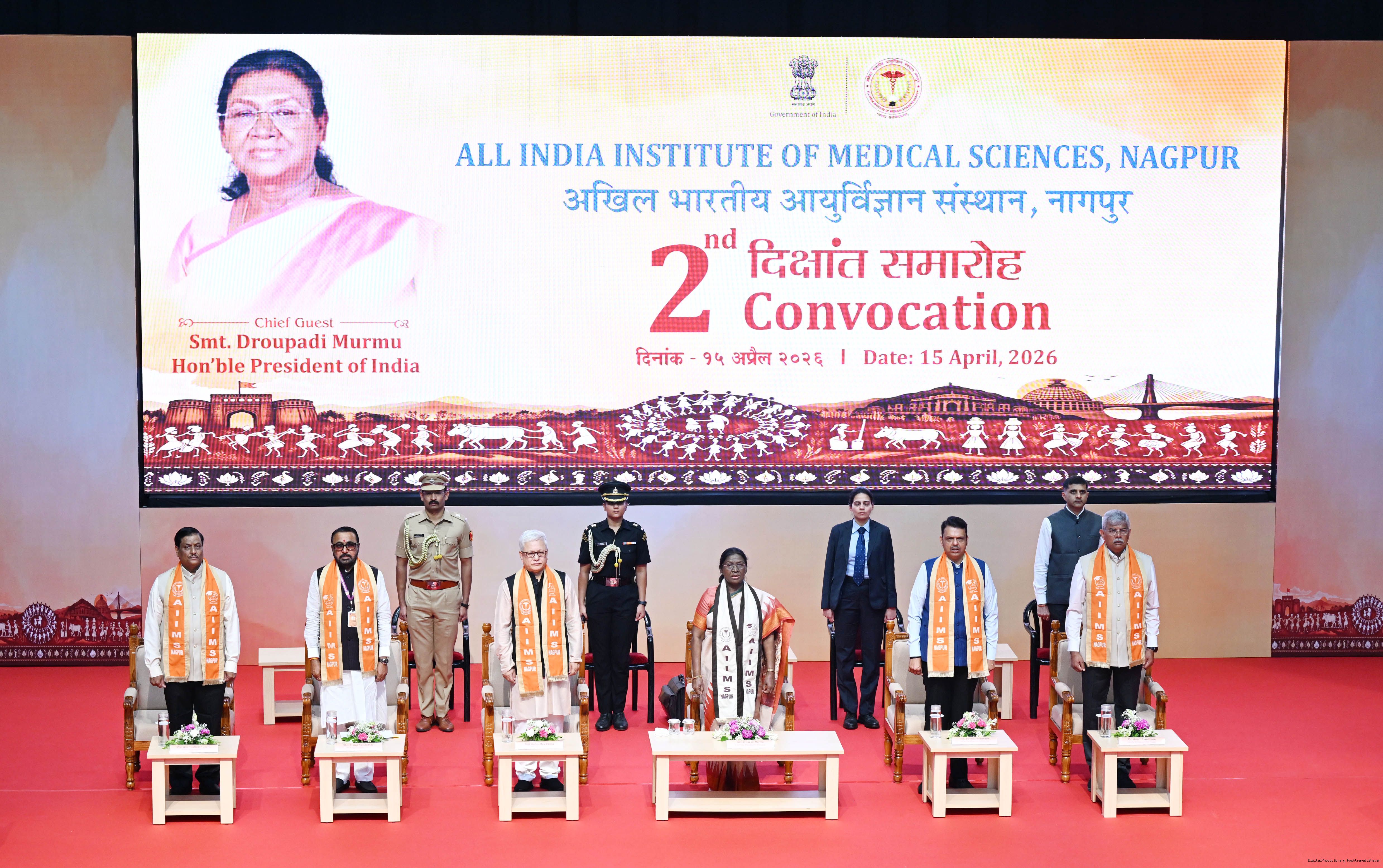 | Caption: | The President of India, Smt Droupadi Murmu graced and addressed the convocation ceremony of AIIMS Nagpur at Nagpur, Maharashtra on April 15, 2026. |