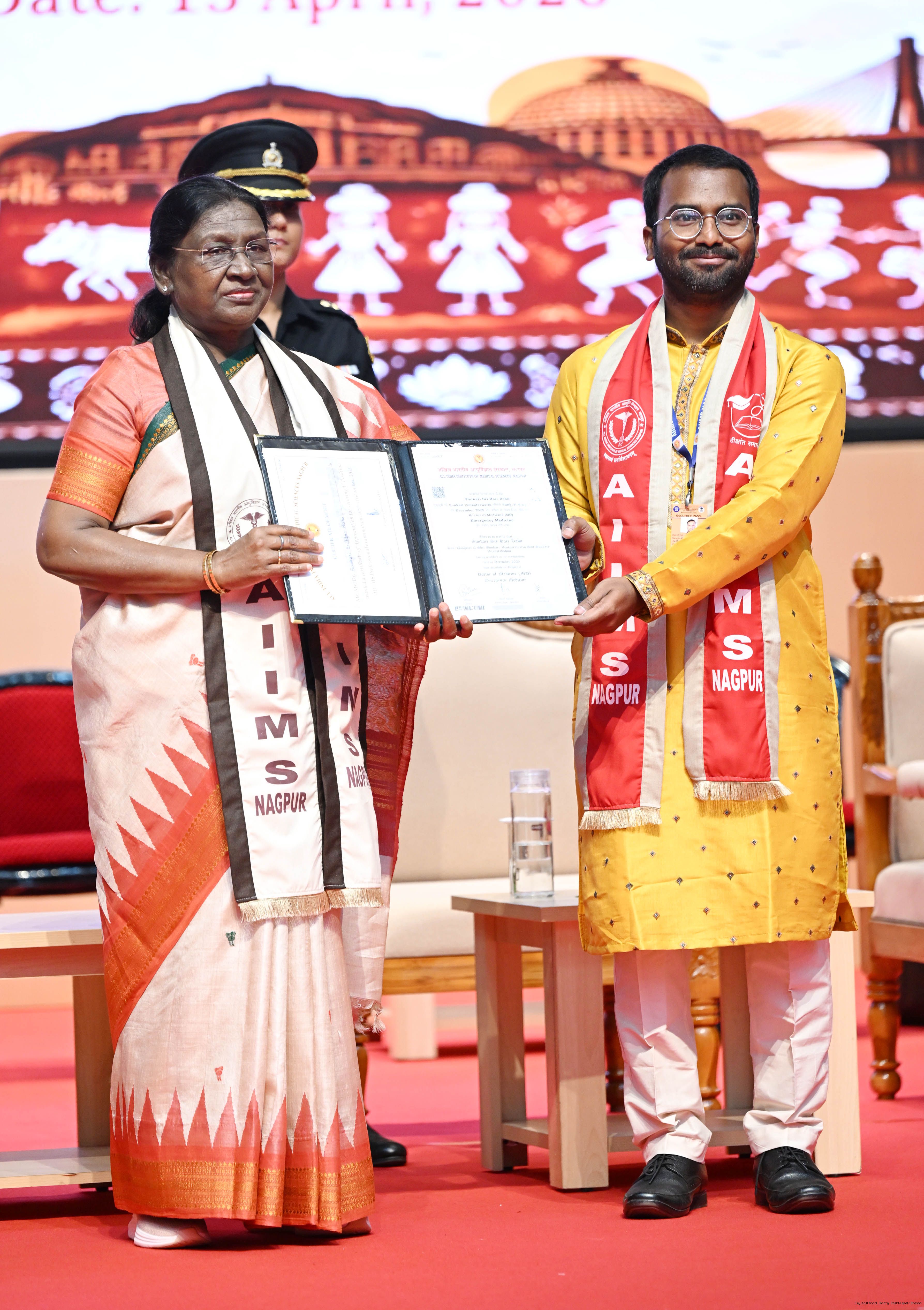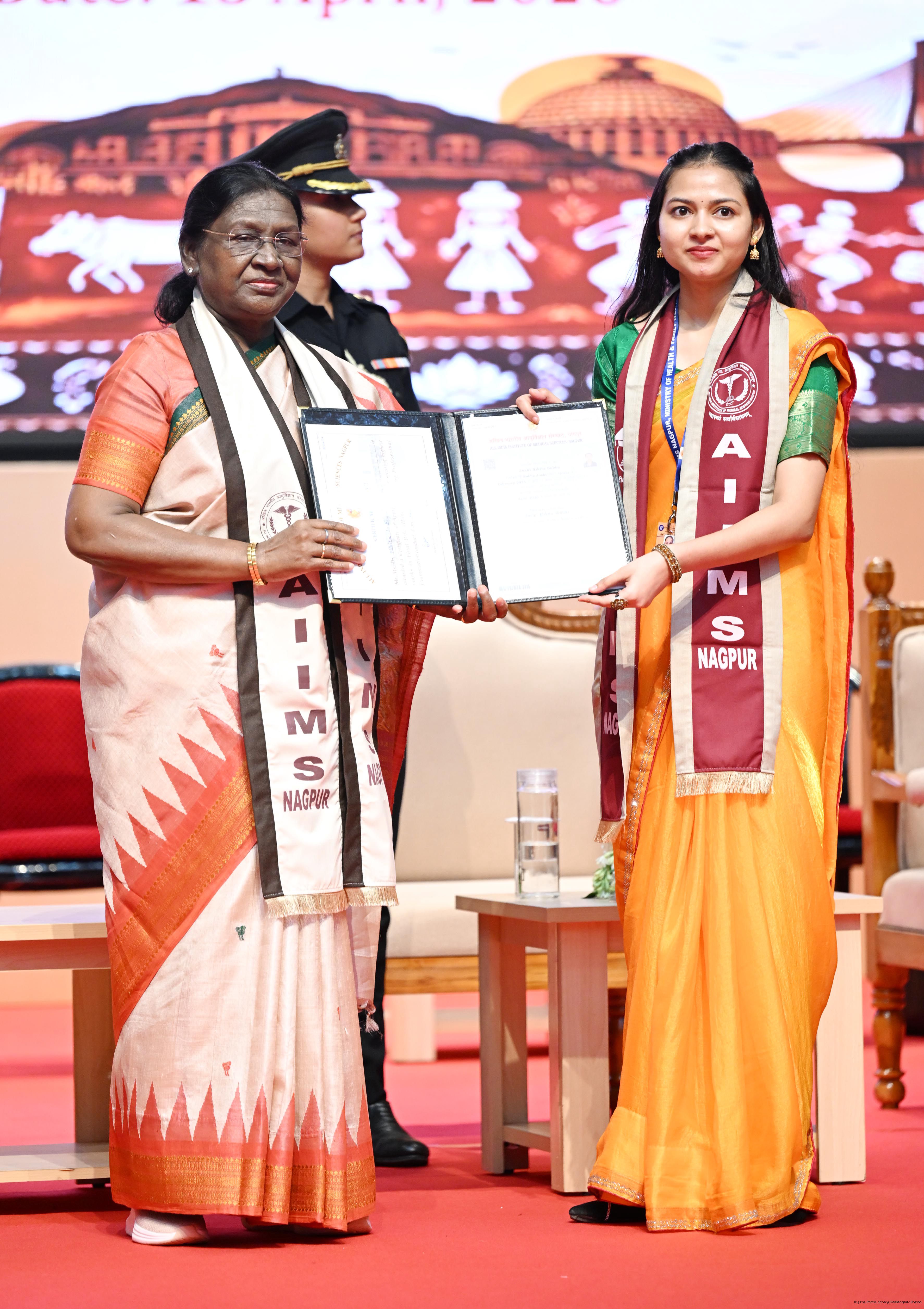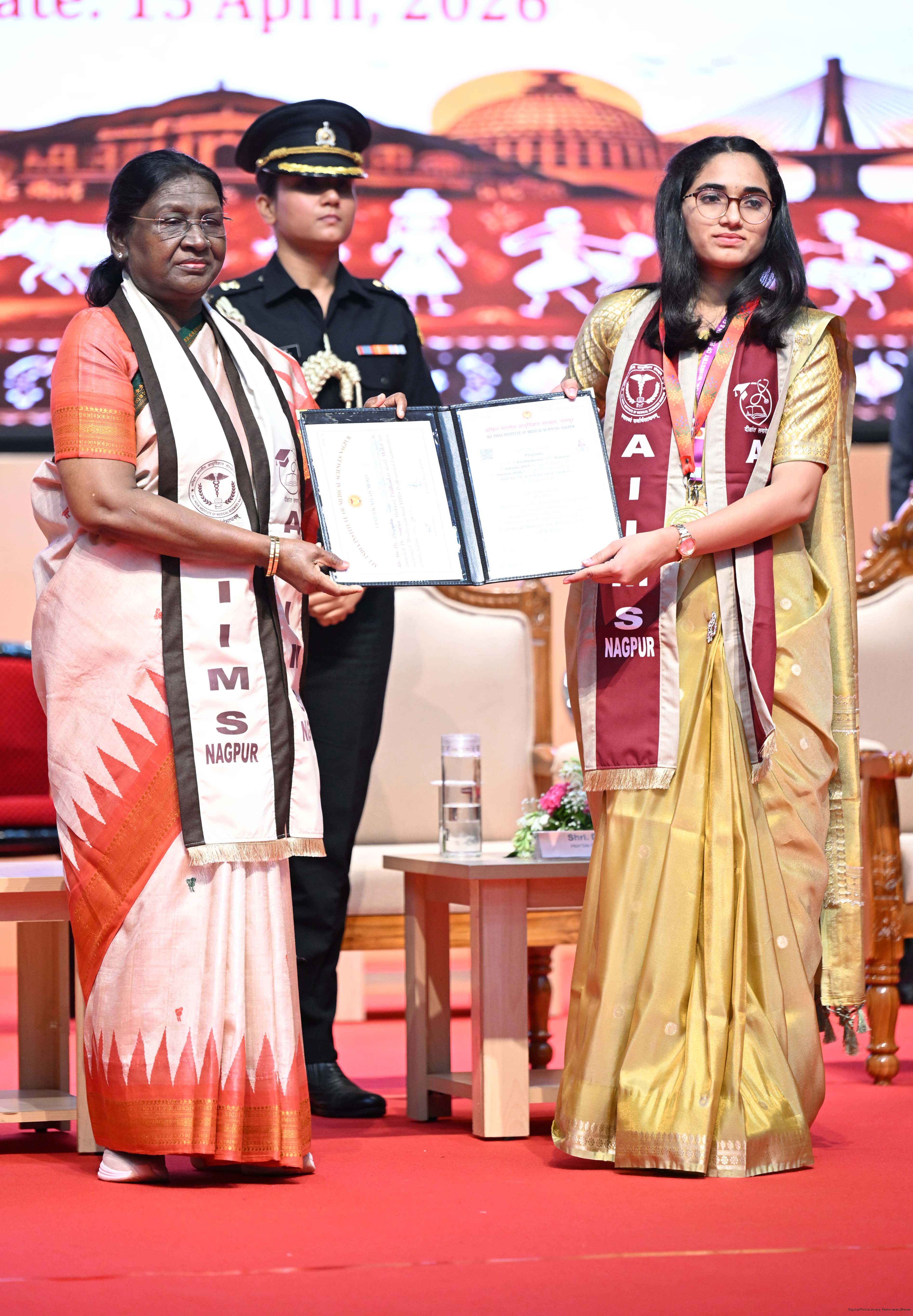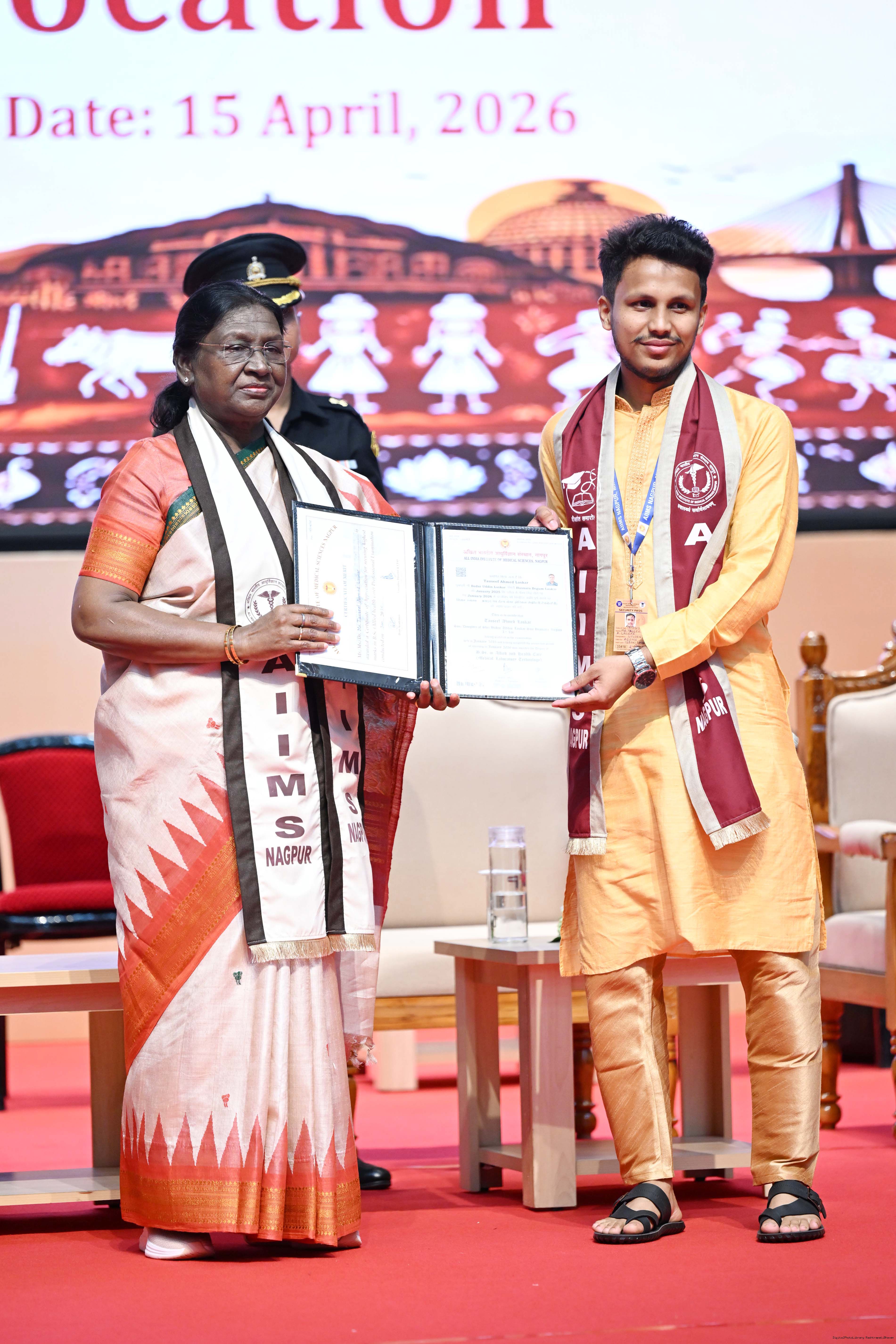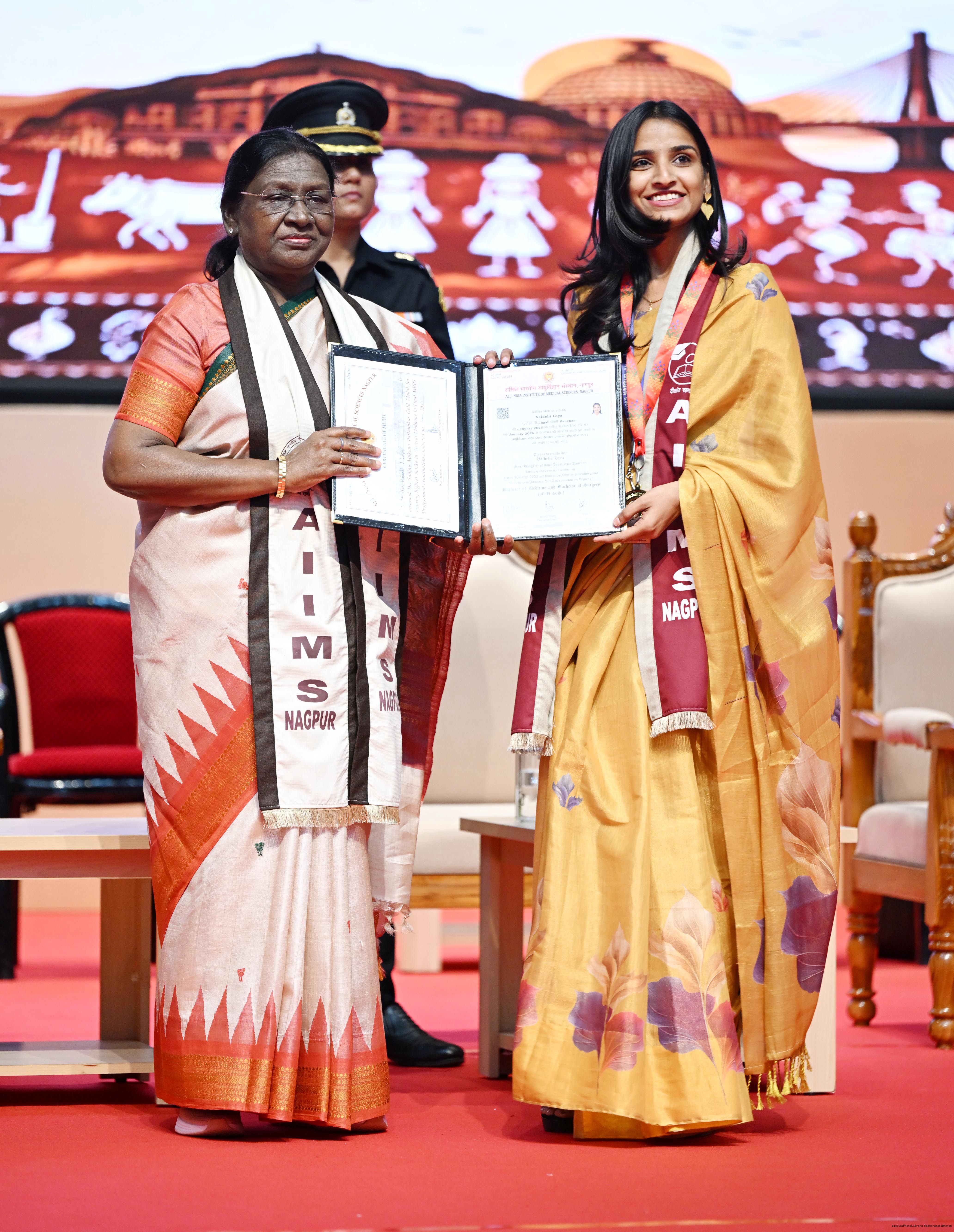 Caption: The President of India, Smt Droupadi Murmu graced and addressed the convocation ceremony of AIIMS Nagpur at Nagpur, Maharashtra on April 15, 2026.