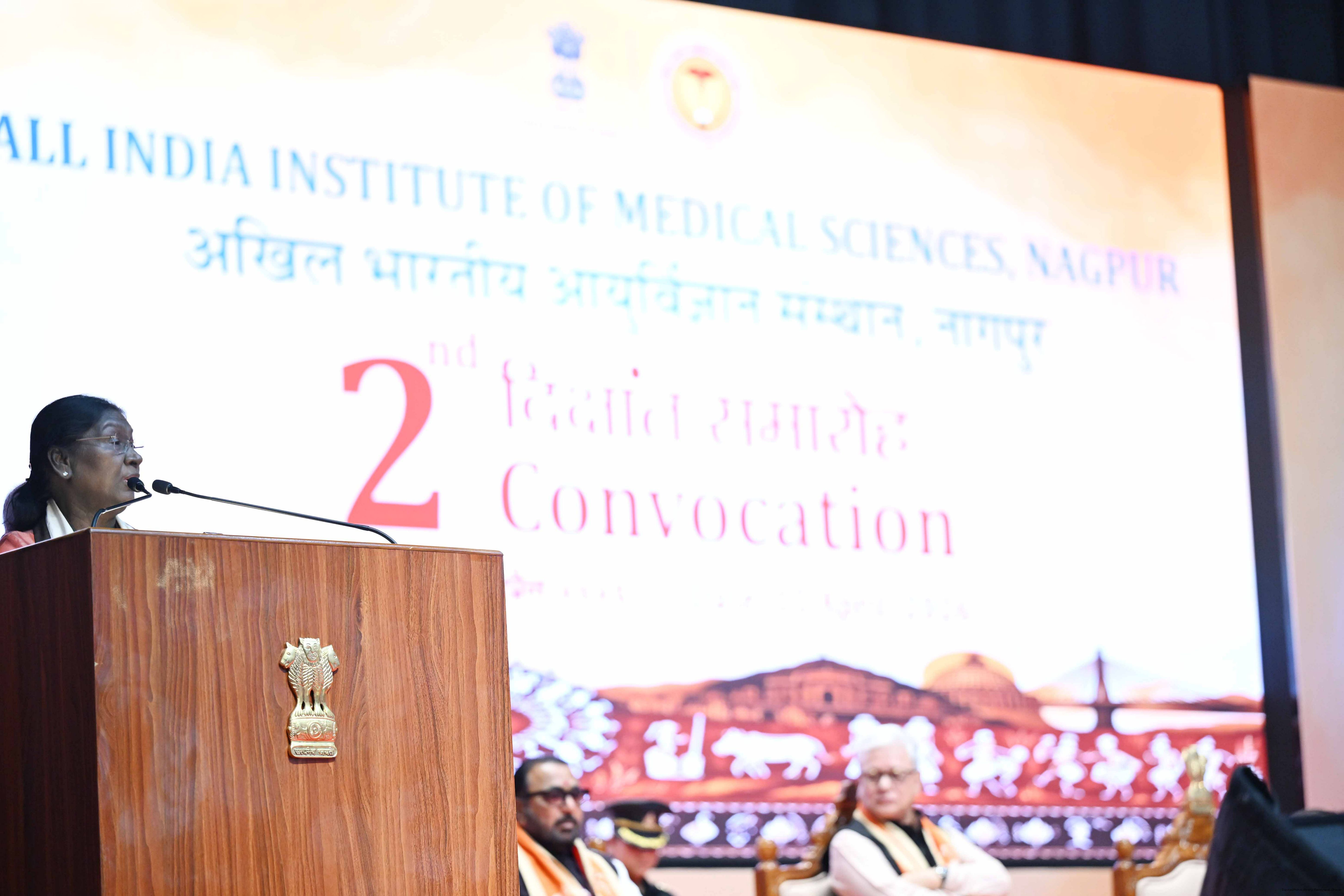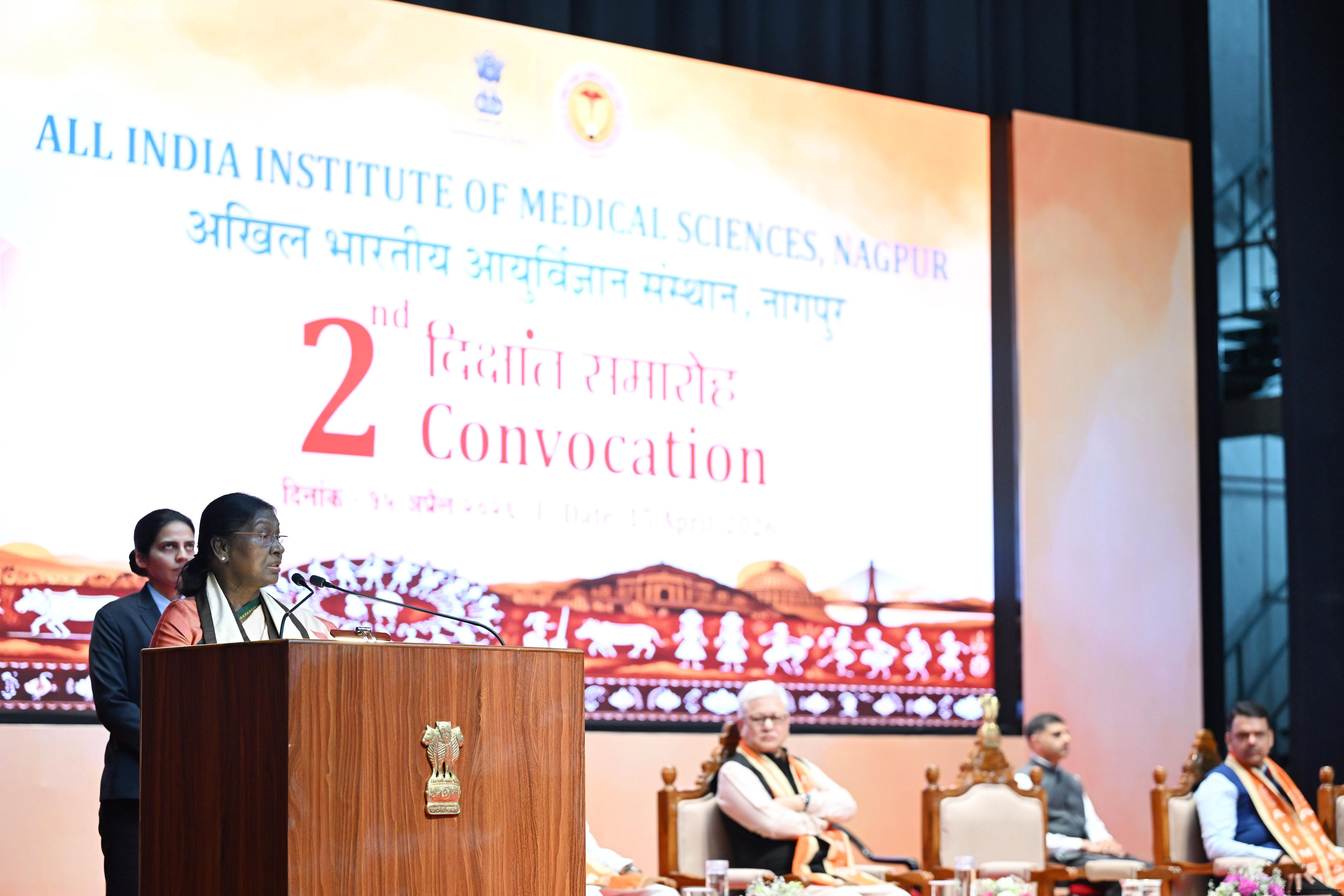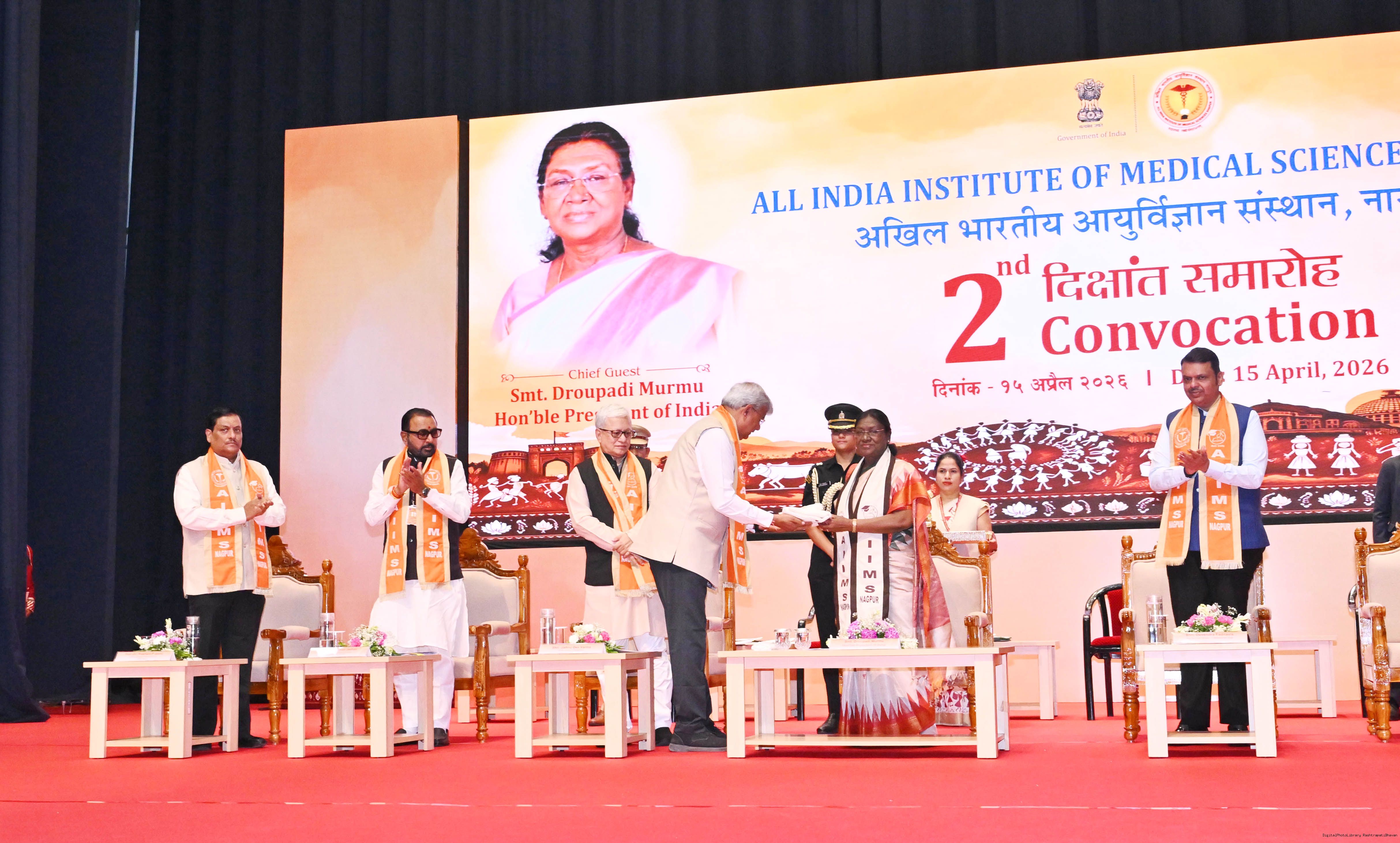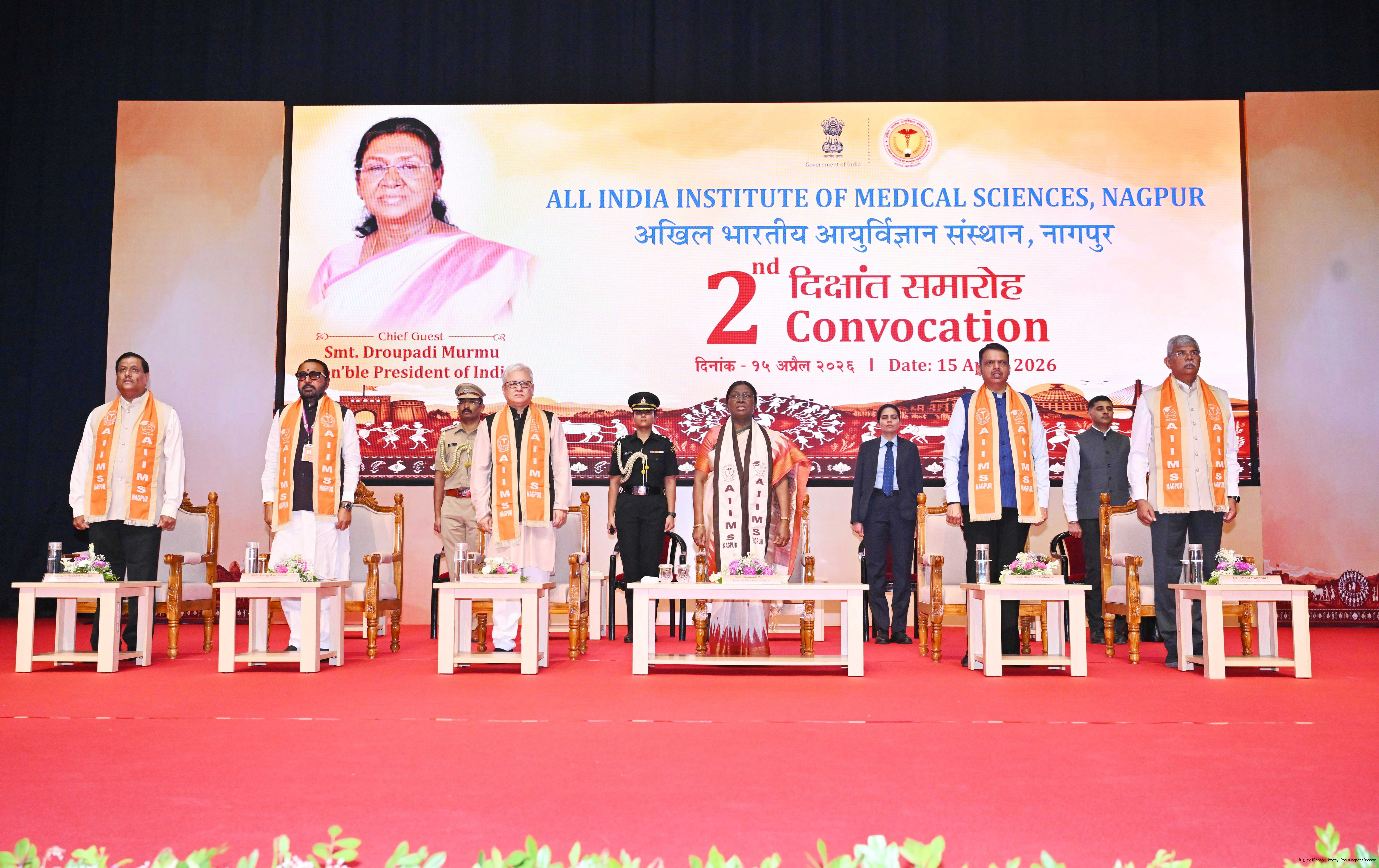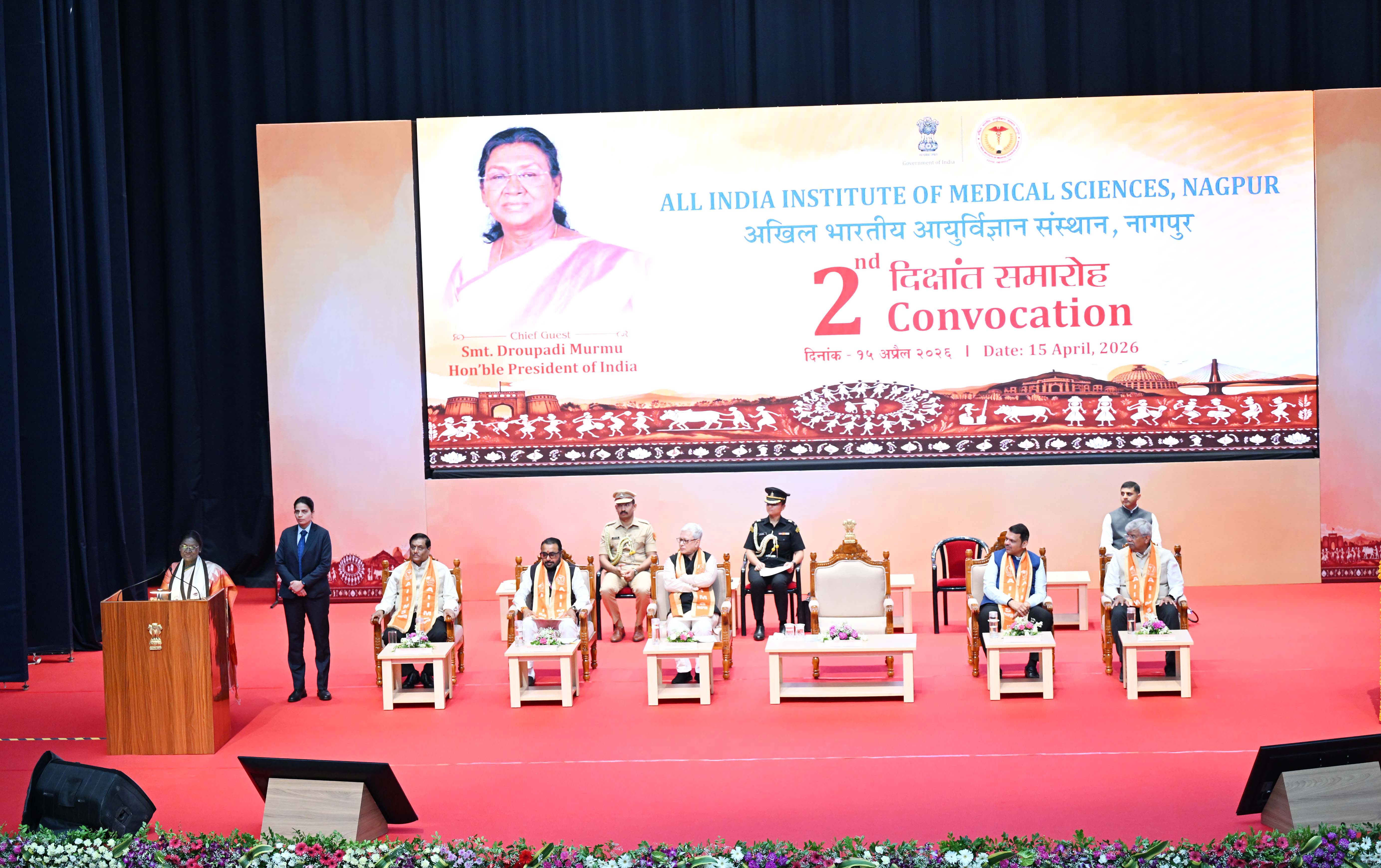 | Caption: | The President of India, Smt Droupadi Murmu graced and addressed the convocation ceremony of AIIMS Nagpur at Nagpur, Maharashtra on April 15, 2026. |