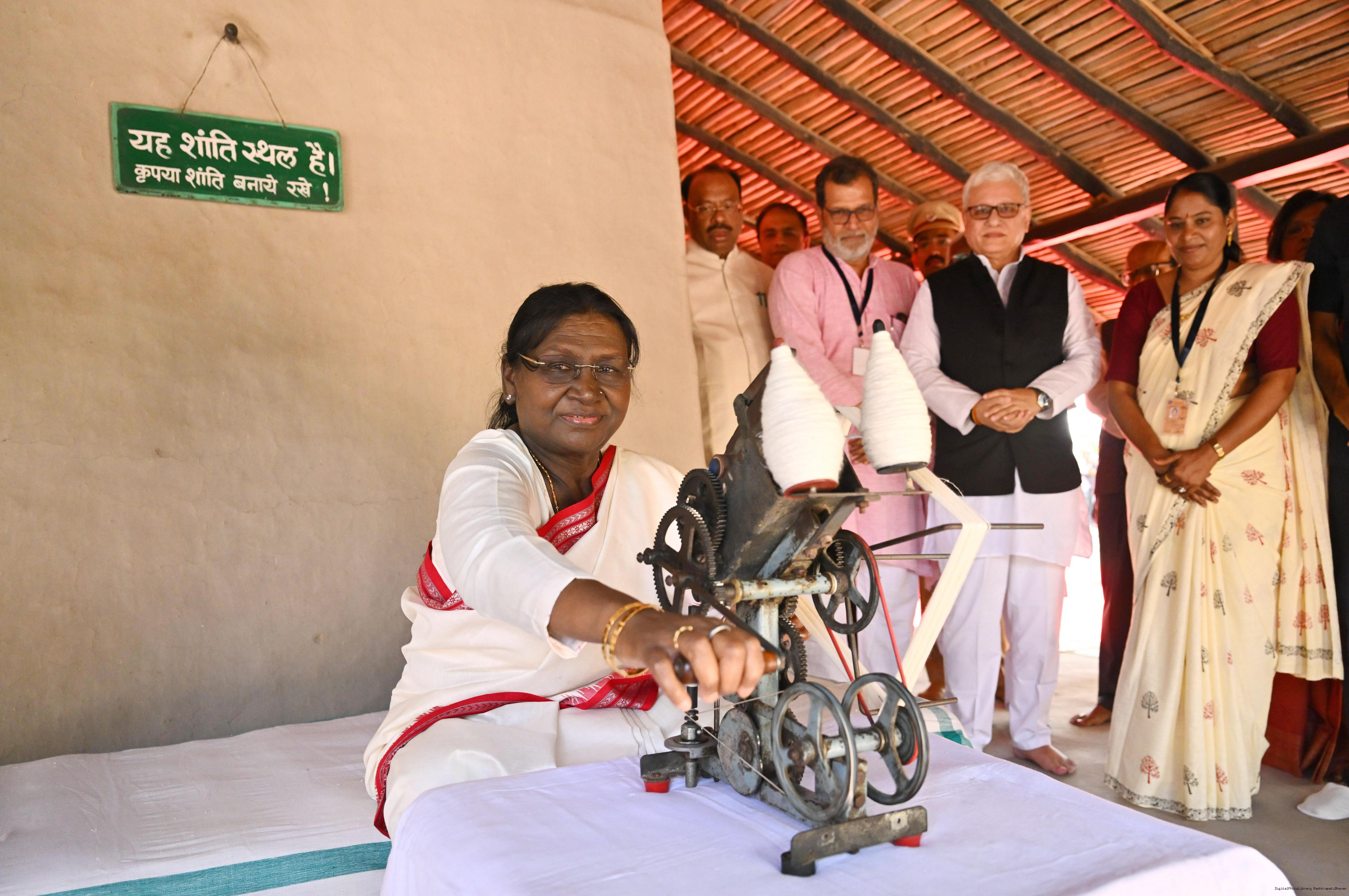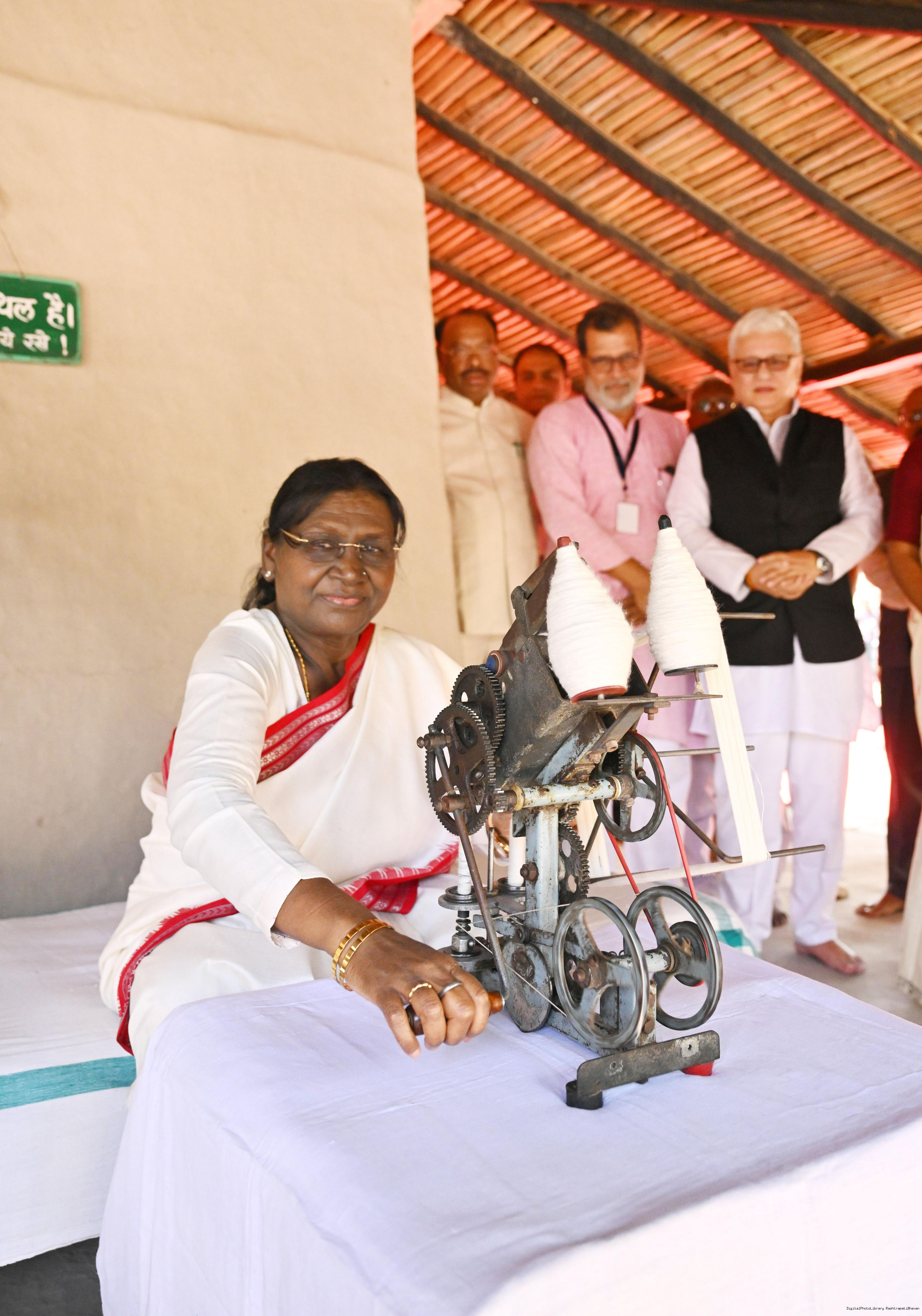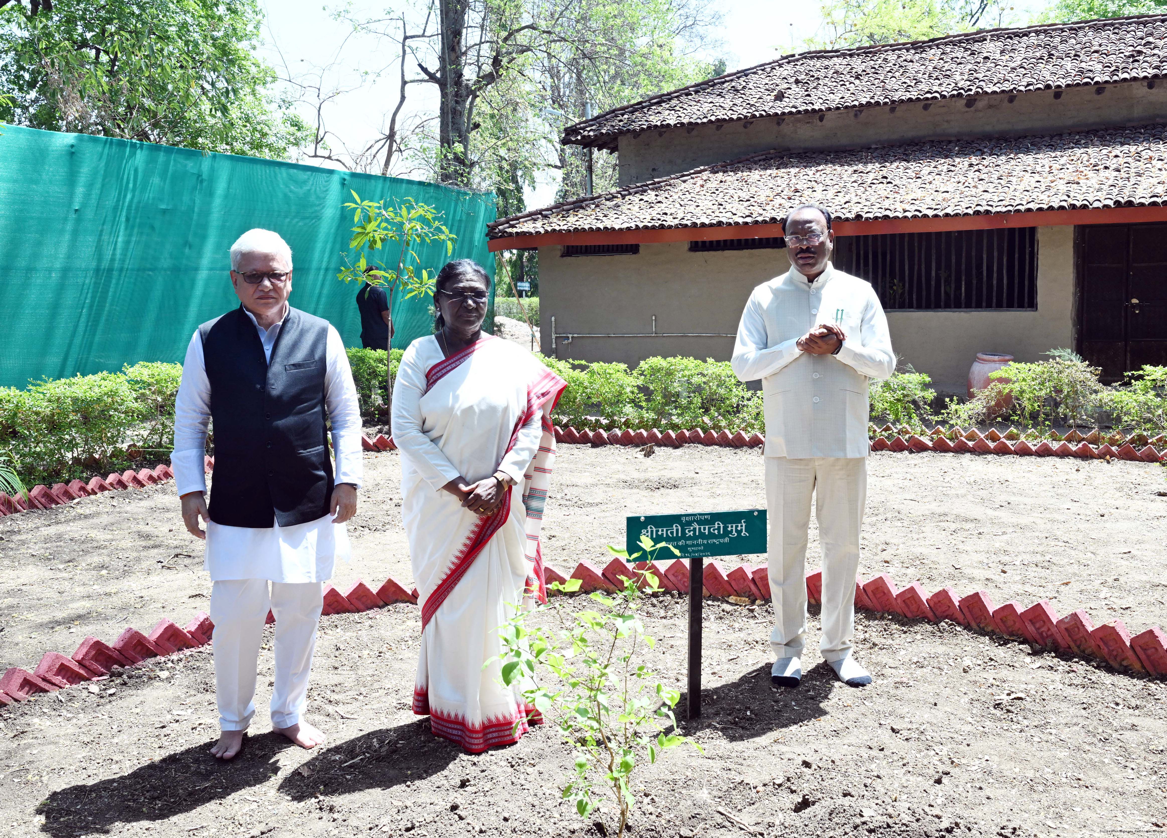 Caption: The President of India, Smt Droupadi Murmu visited Sevagram Ashram Bapu Kuti at Wardha, Maharashtra on April 16, 2026.
