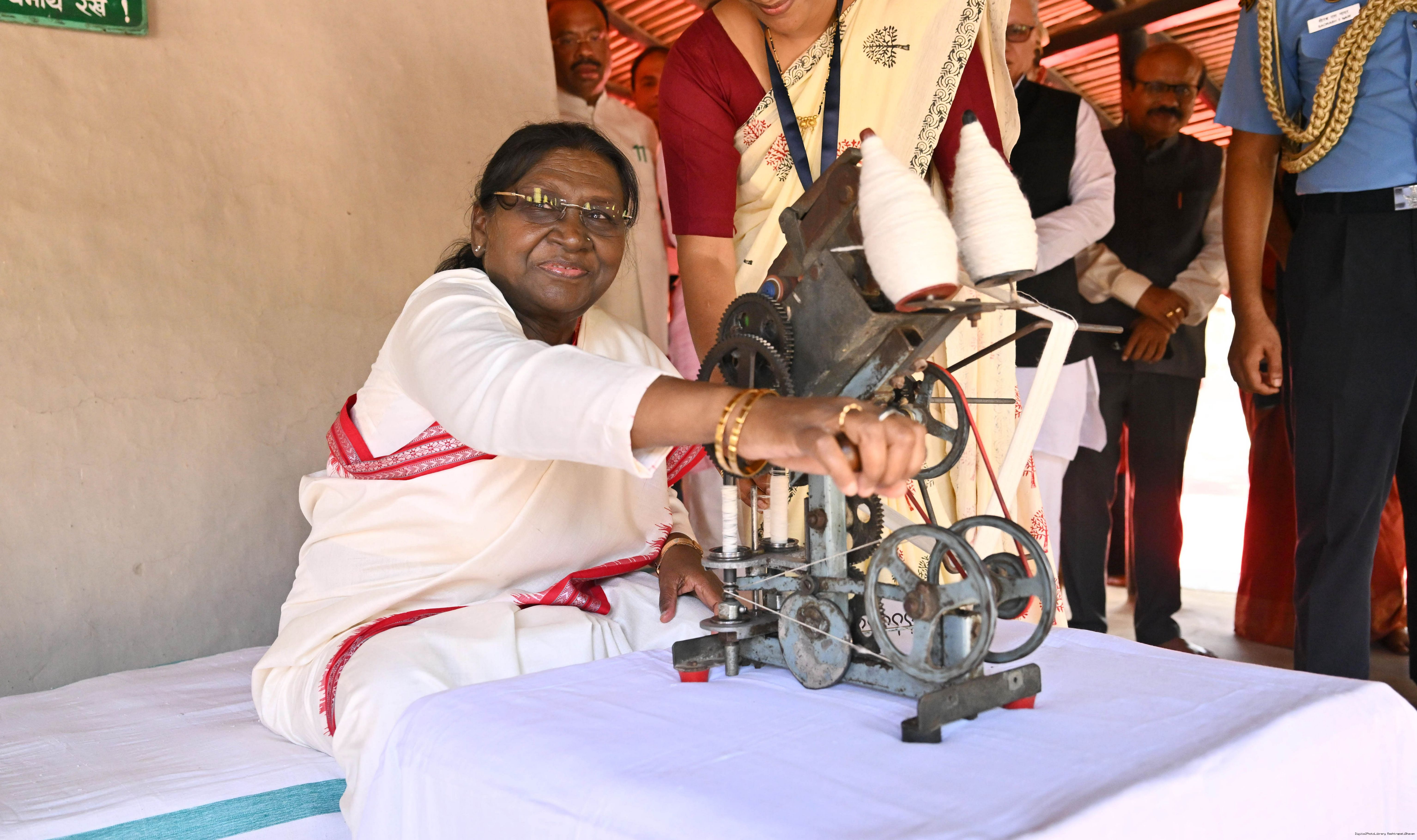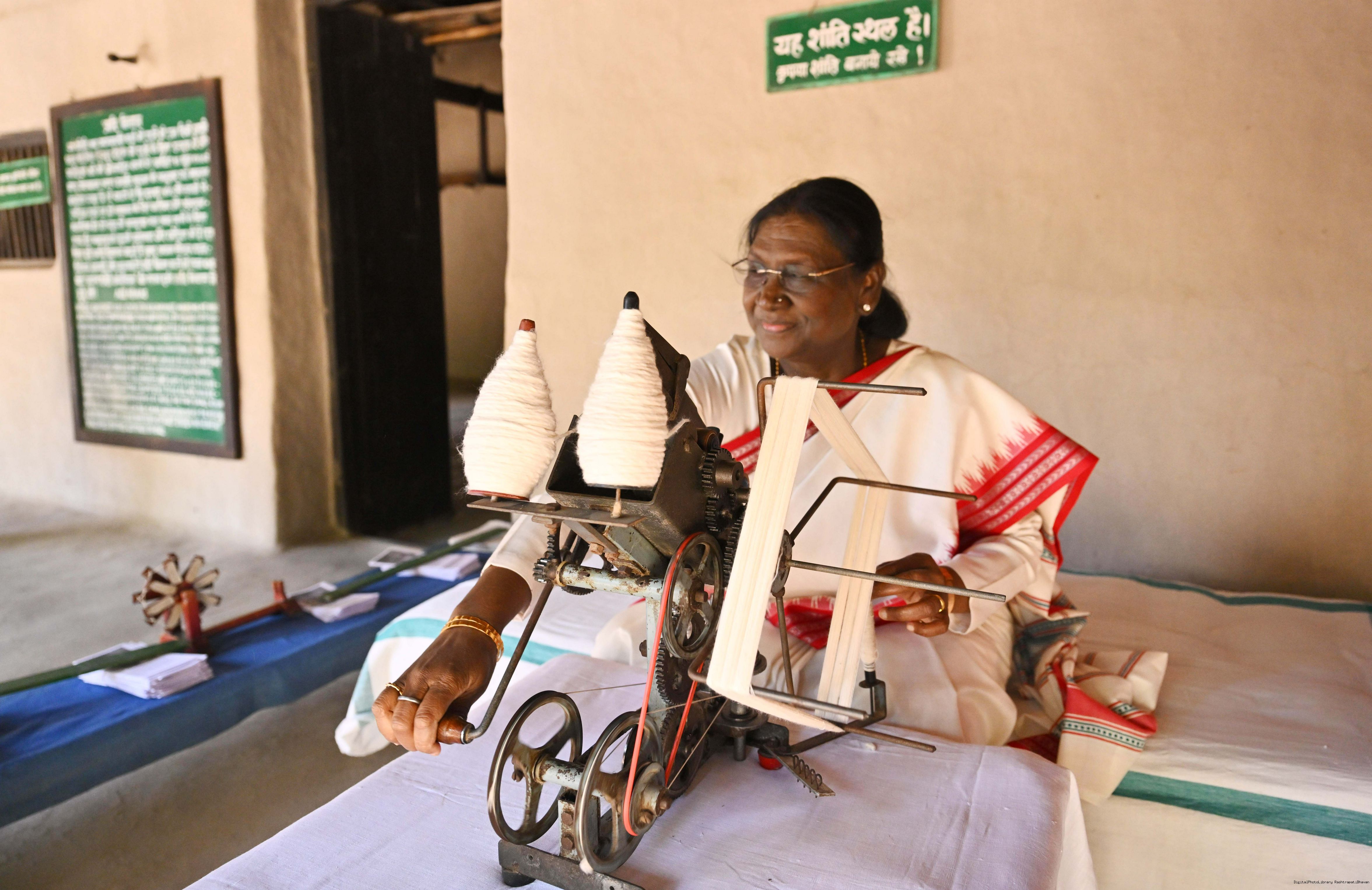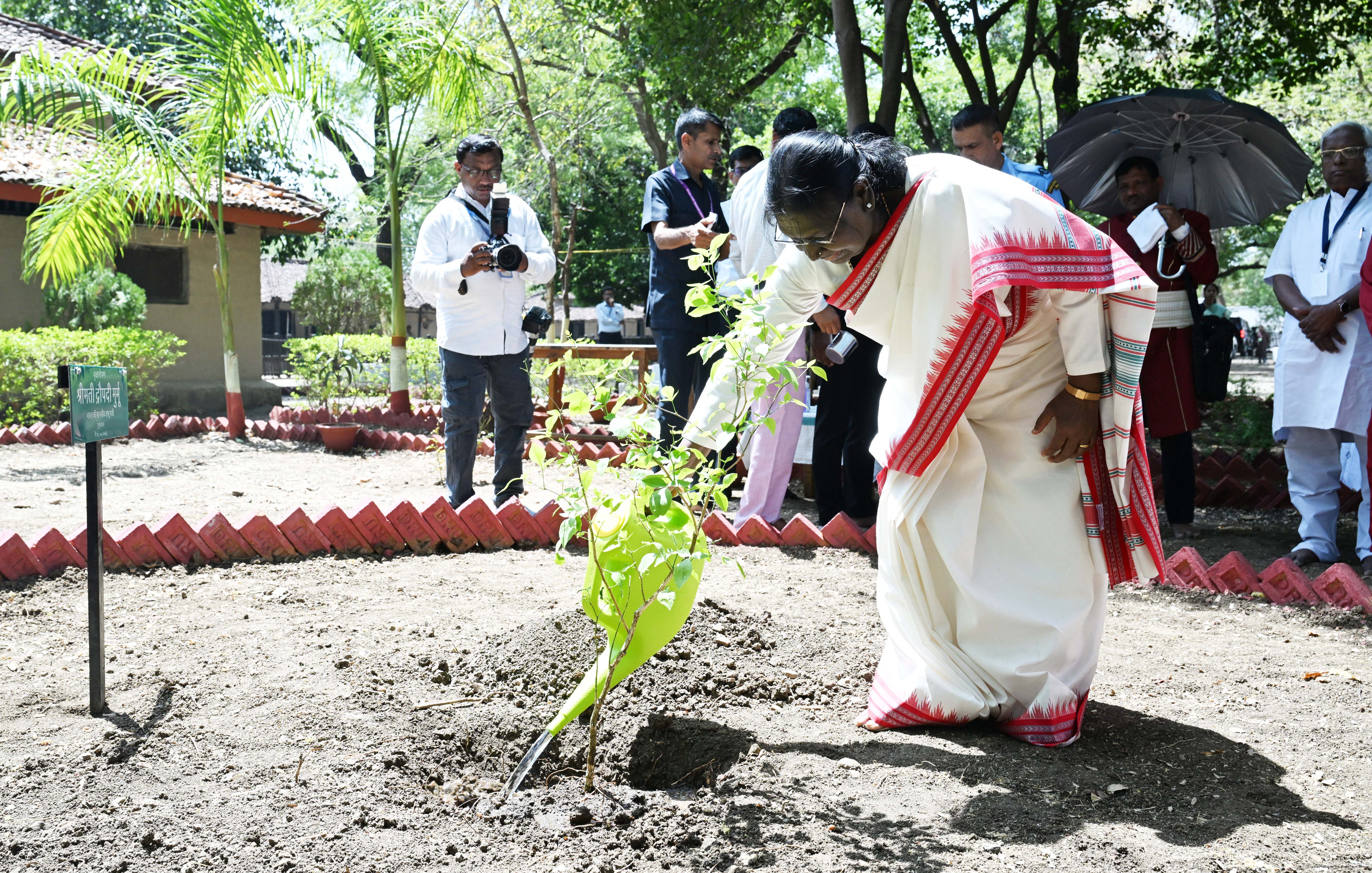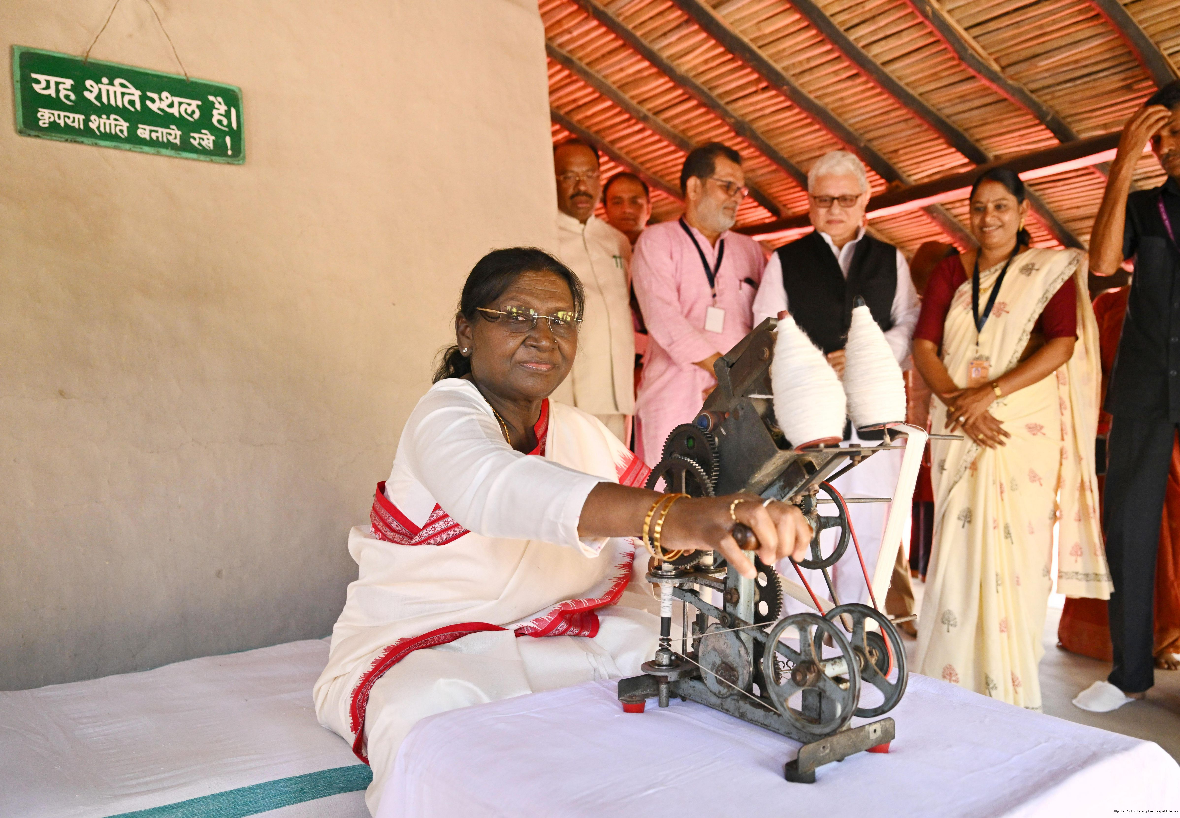 Caption: The President of India, Smt Droupadi Murmu visited Sevagram Ashram Bapu Kuti at Wardha, Maharashtra on April 16, 2026.