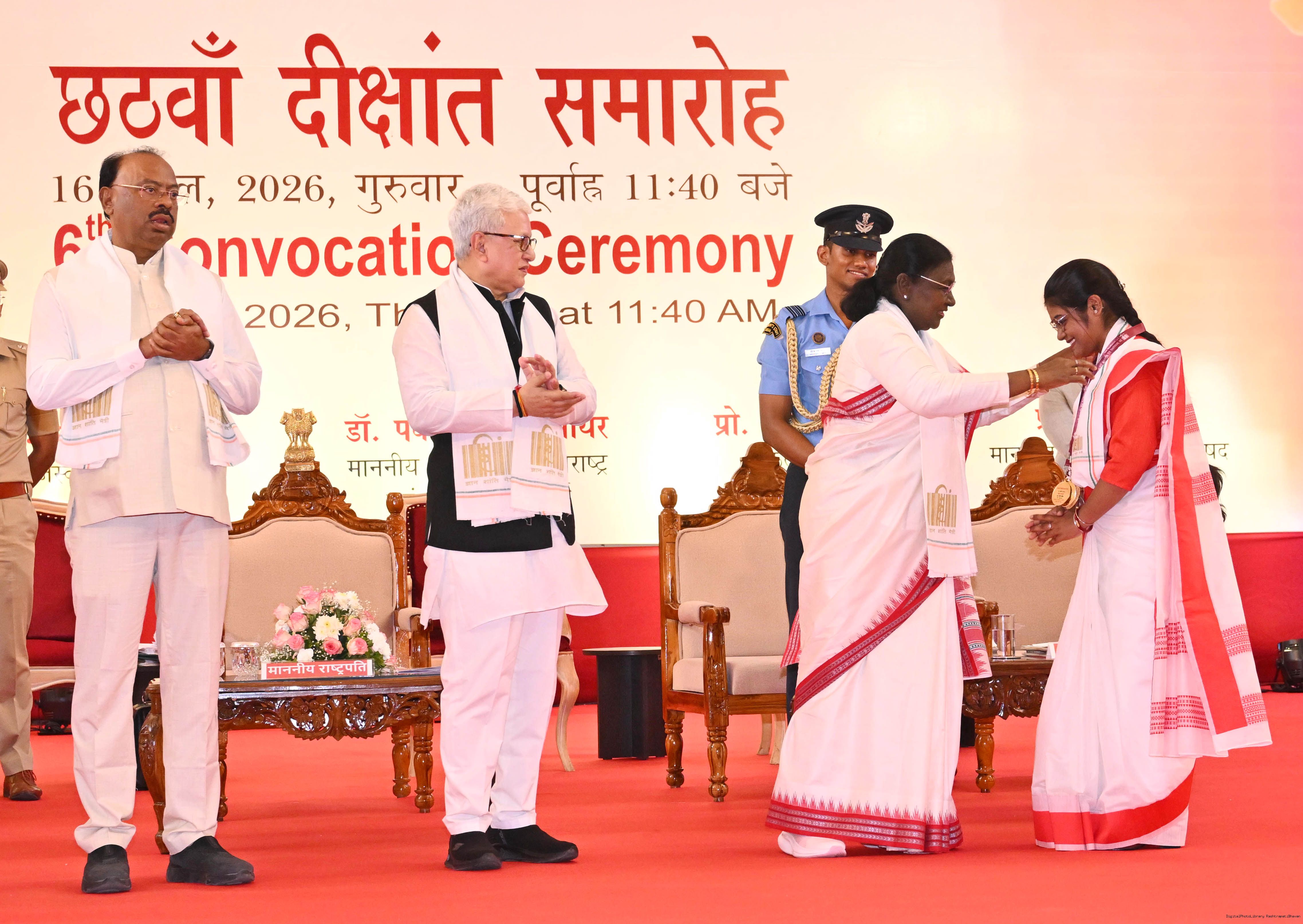 | Caption: | The President of India, Smt Droupadi Murmu graced the sixth convocation ceremony of Mahatma Gandhi Antarrashtriya Hindi Vishwavidyalaya at Wardha, Maharashtra on April 16, 2026. |