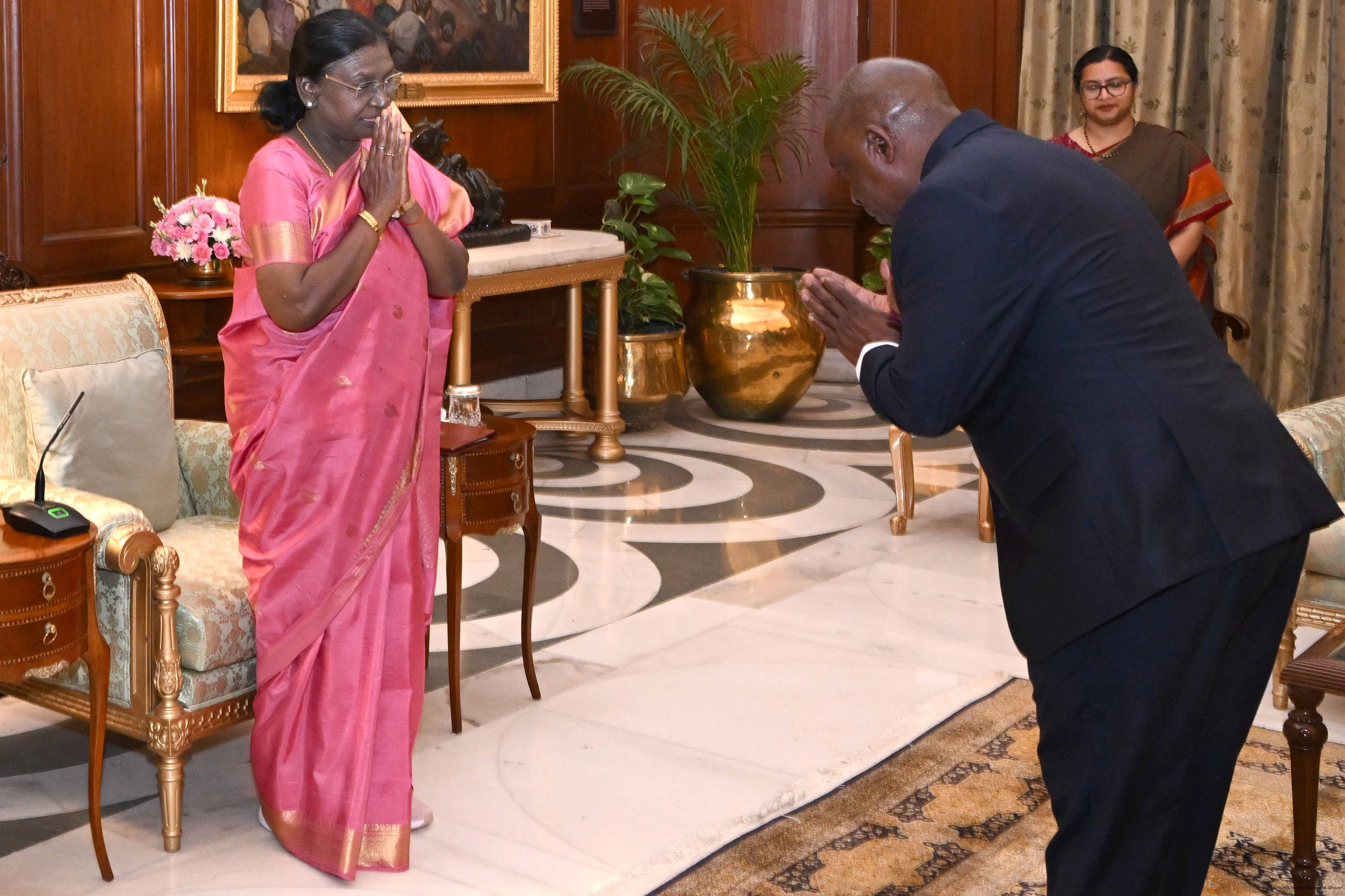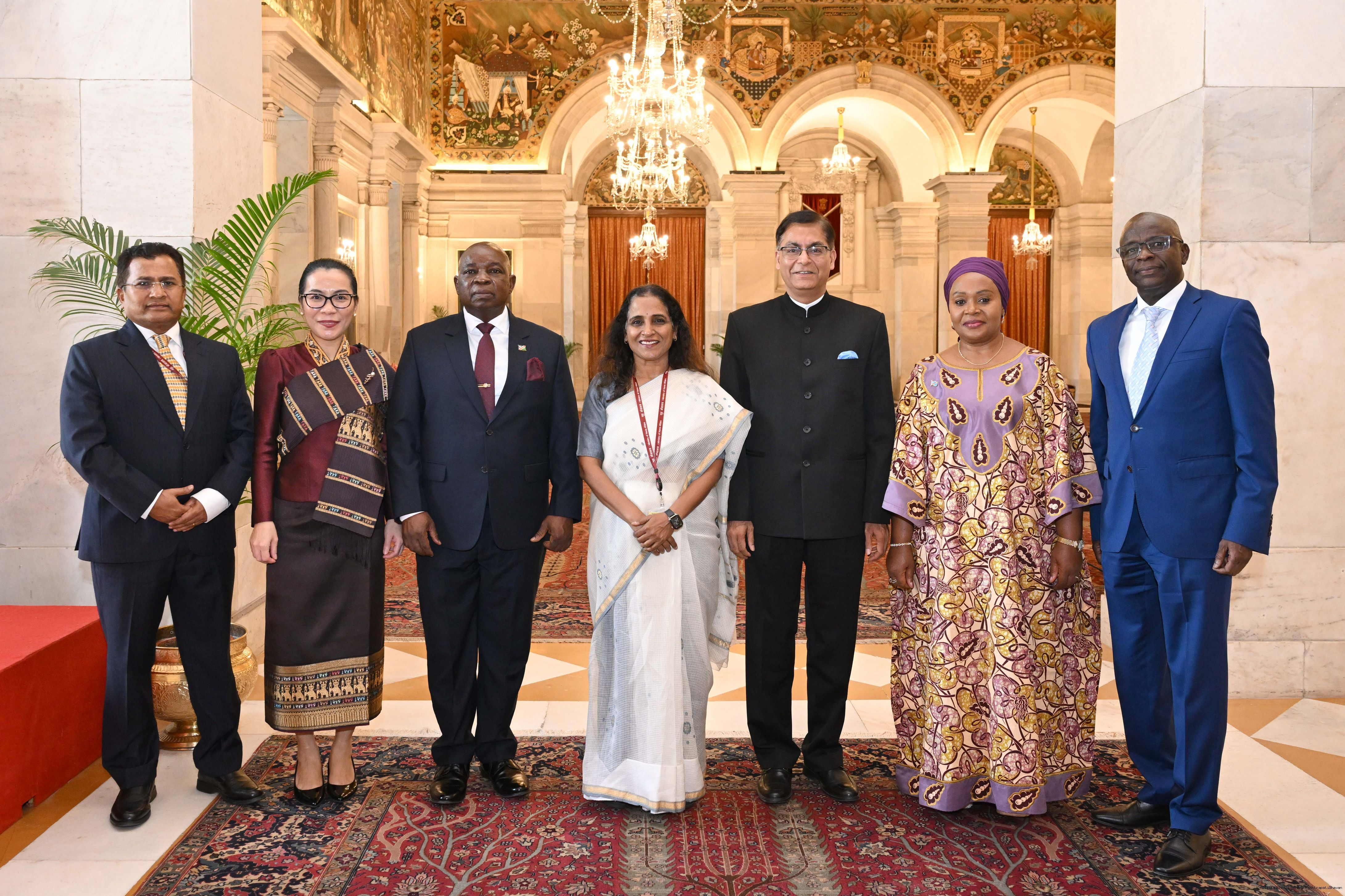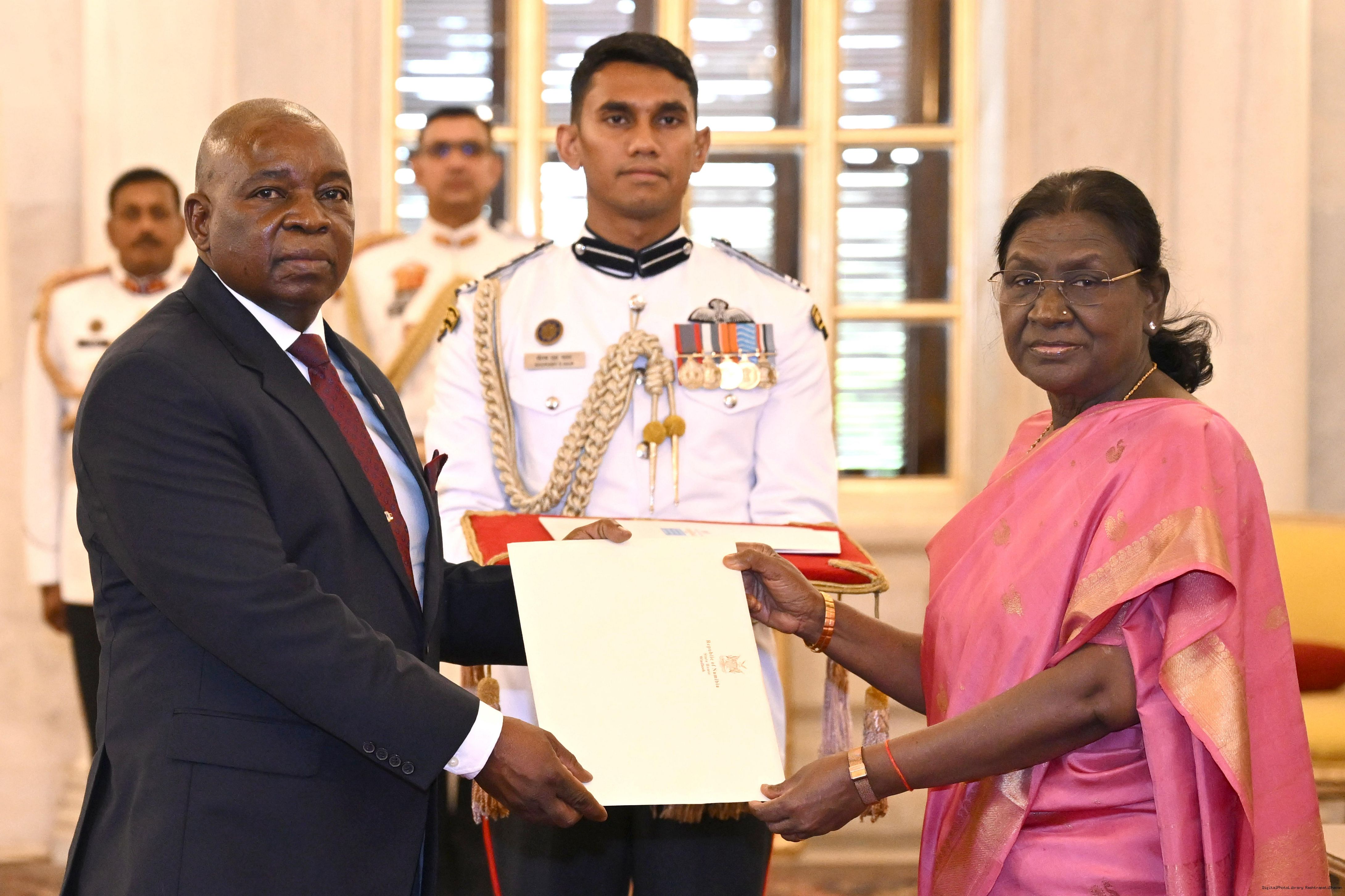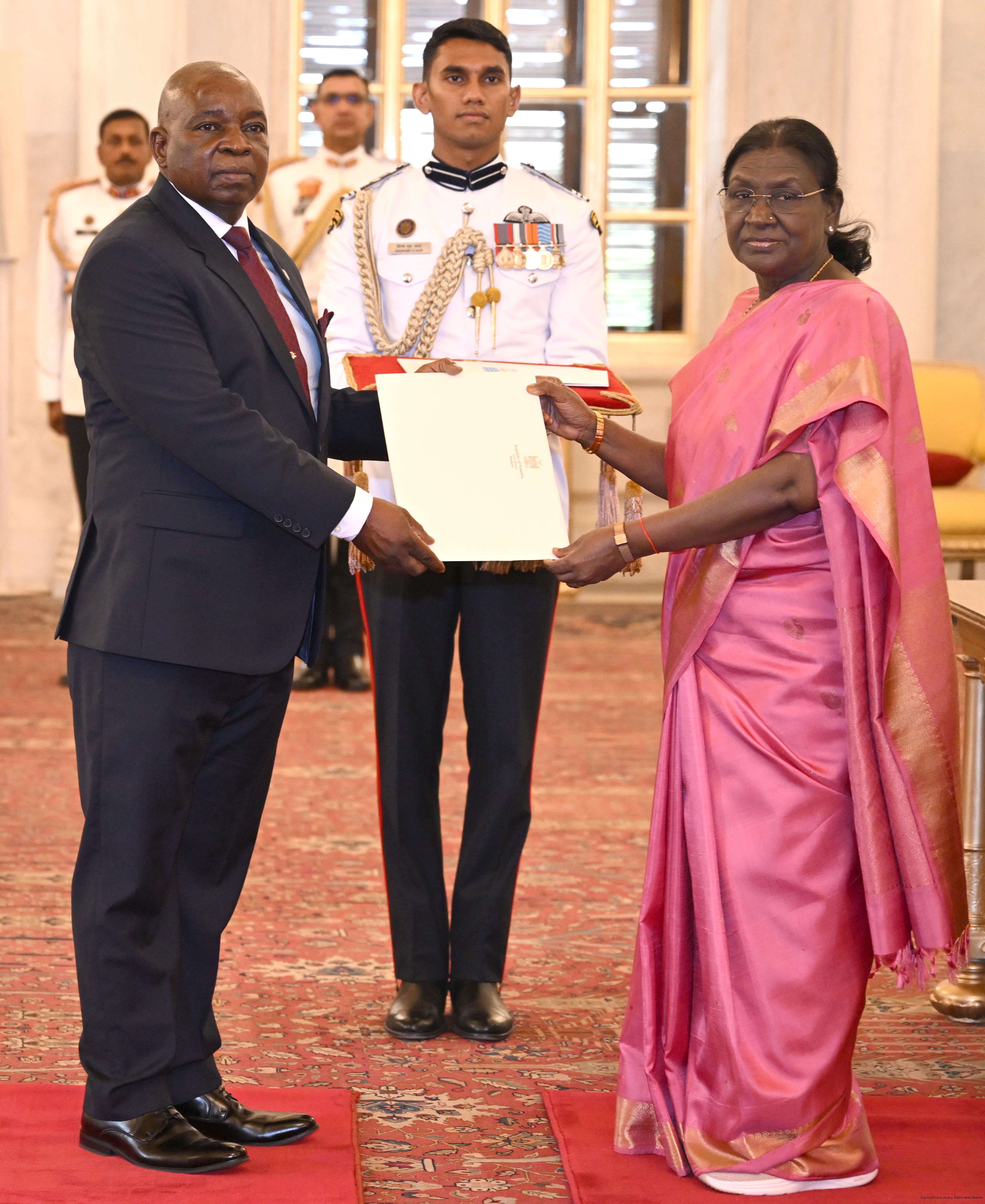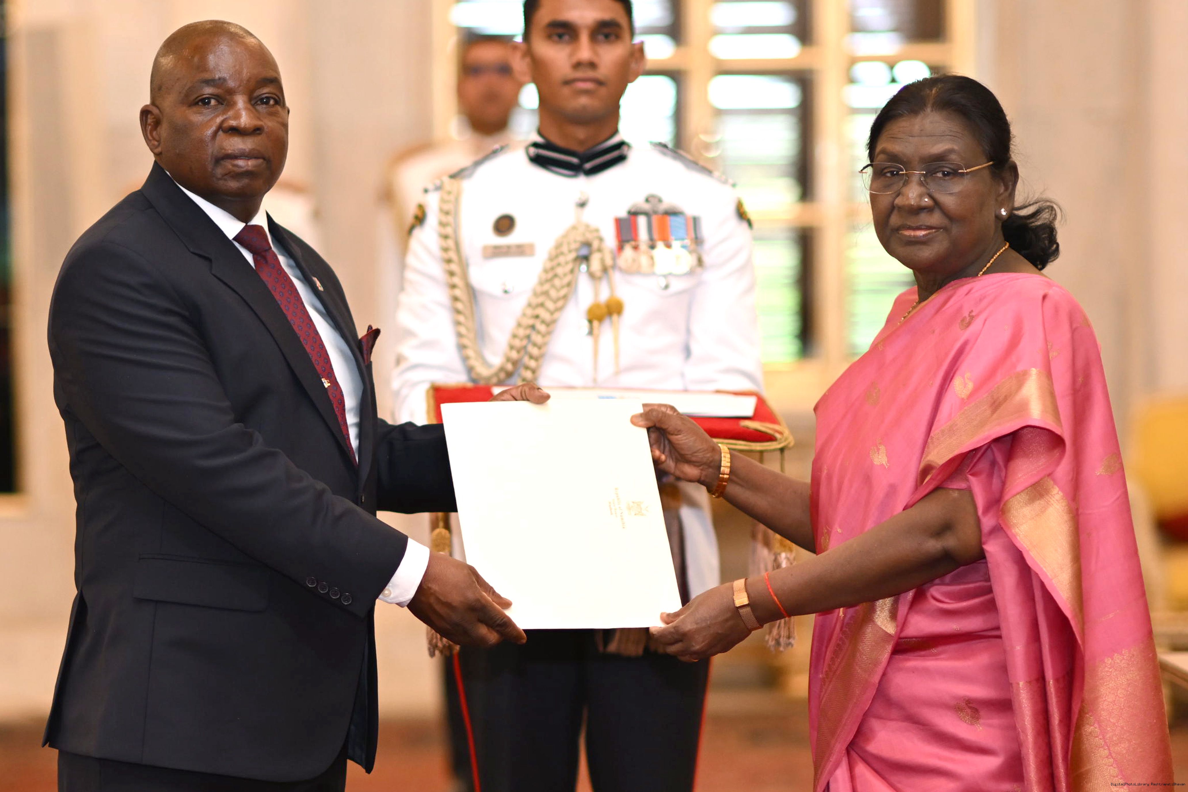 | Caption: | The High Commissioner-designate of the Republic of Namibia, H.E. Wing Commander Alex Lunyazo Tukuhupwele (Retd) his credentials to the President of India, Smt Droupadi Murmu at Ashok Hall of Rashtrapati Bhavan in New Delhi on April 23, 2026. |