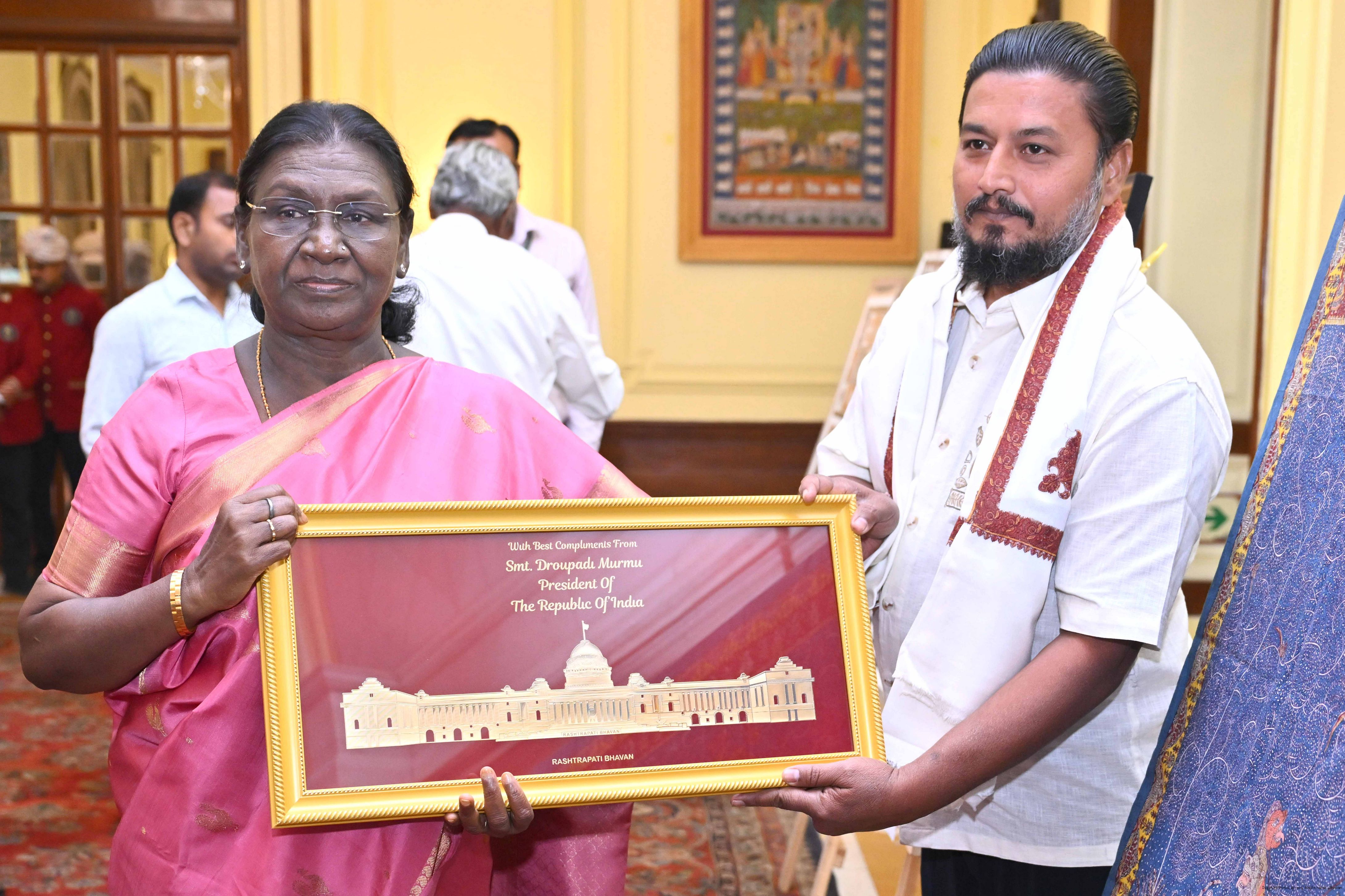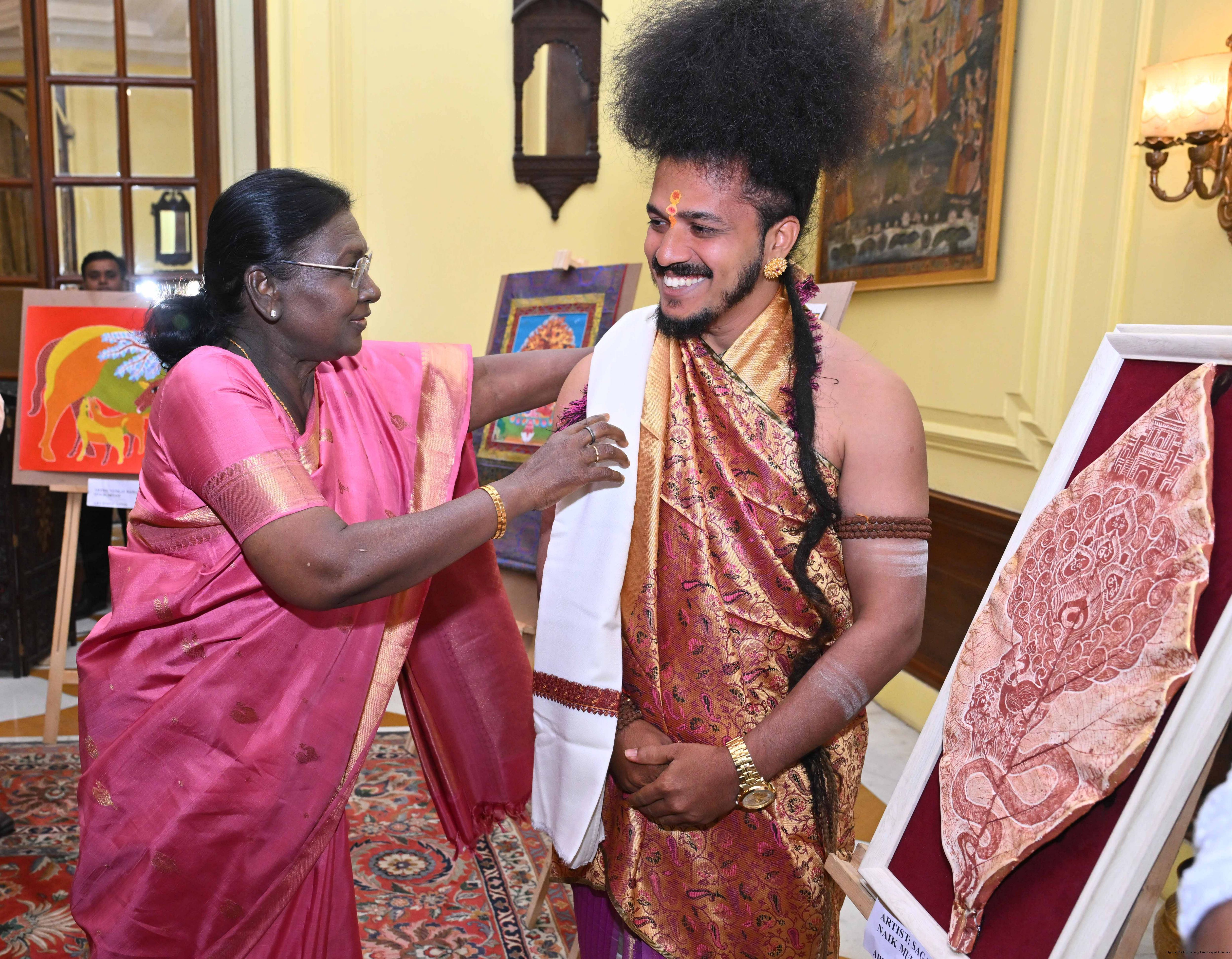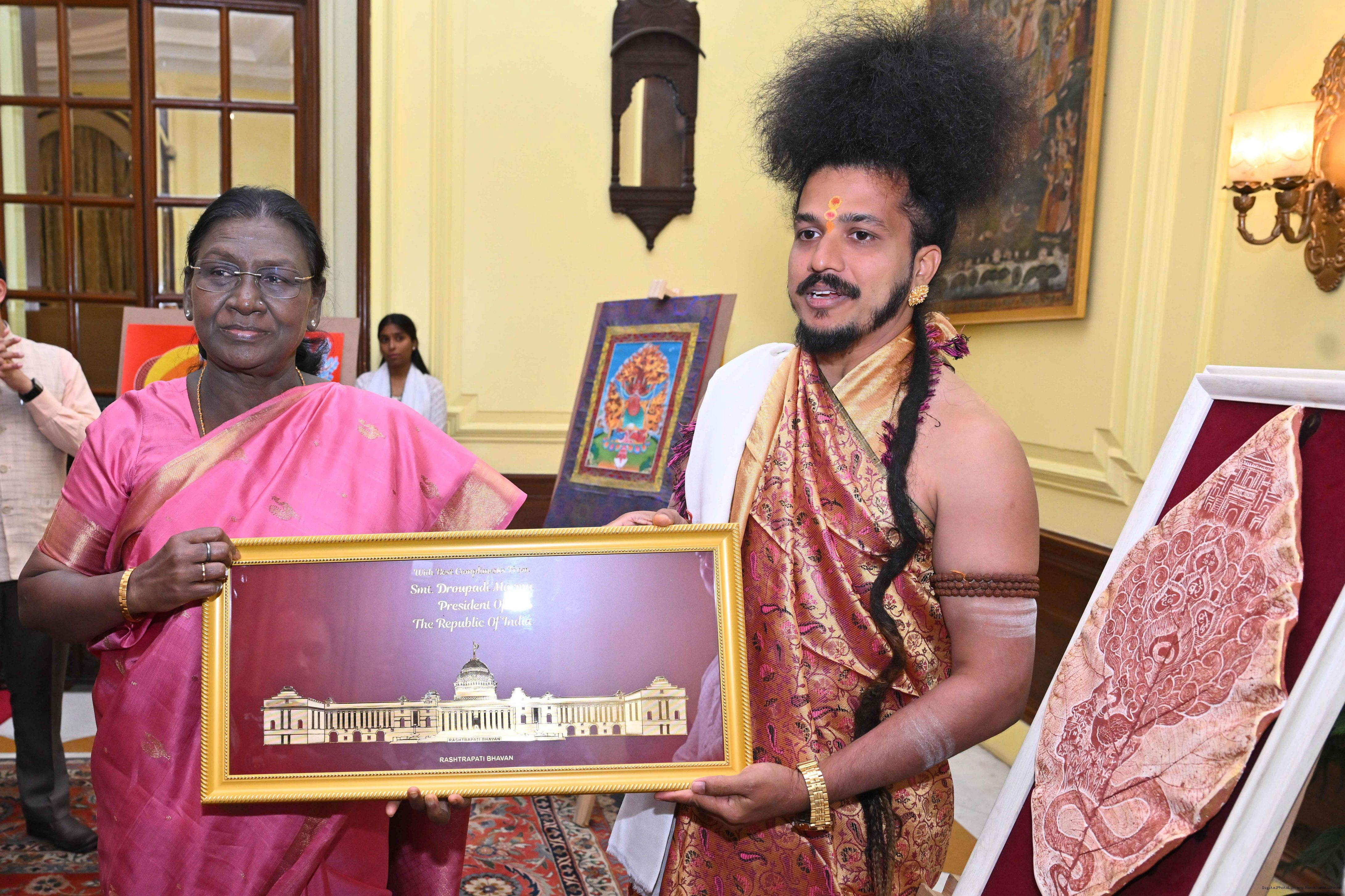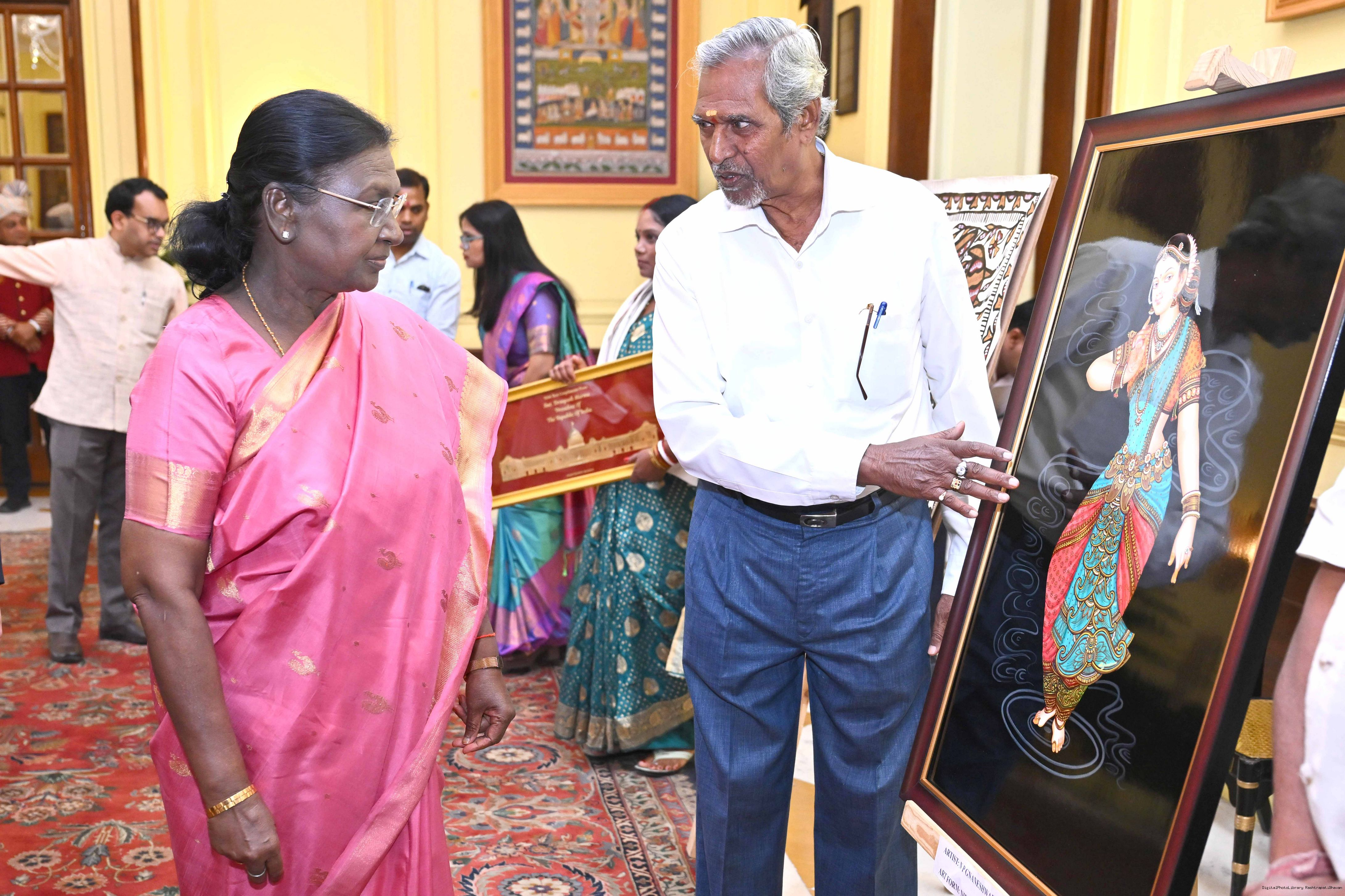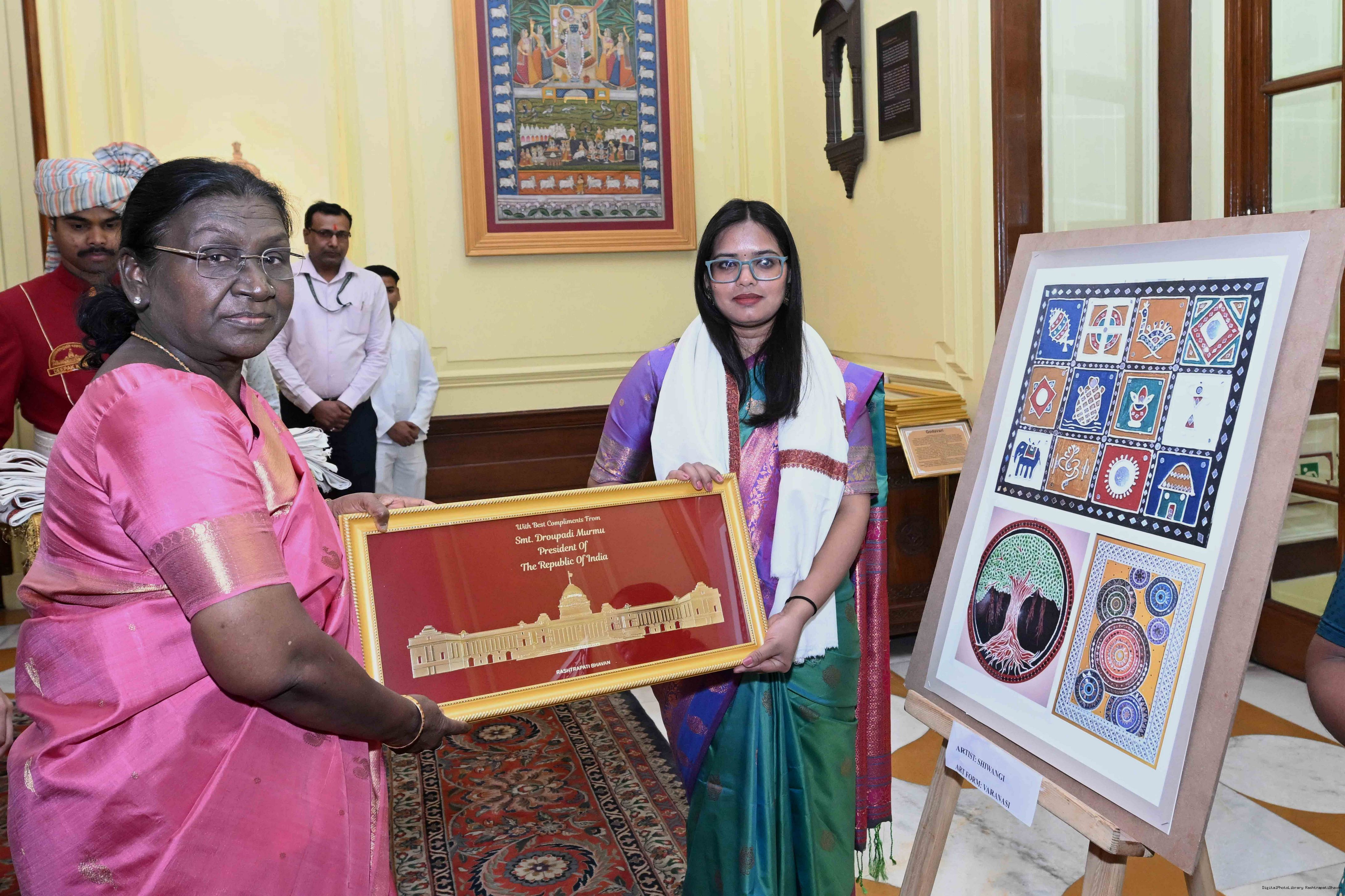 Caption: The President of India, Smt Droupadi Murmu met a group of artists of traditional art forms at Rashtrapati Bhavan on April 23, 2026.