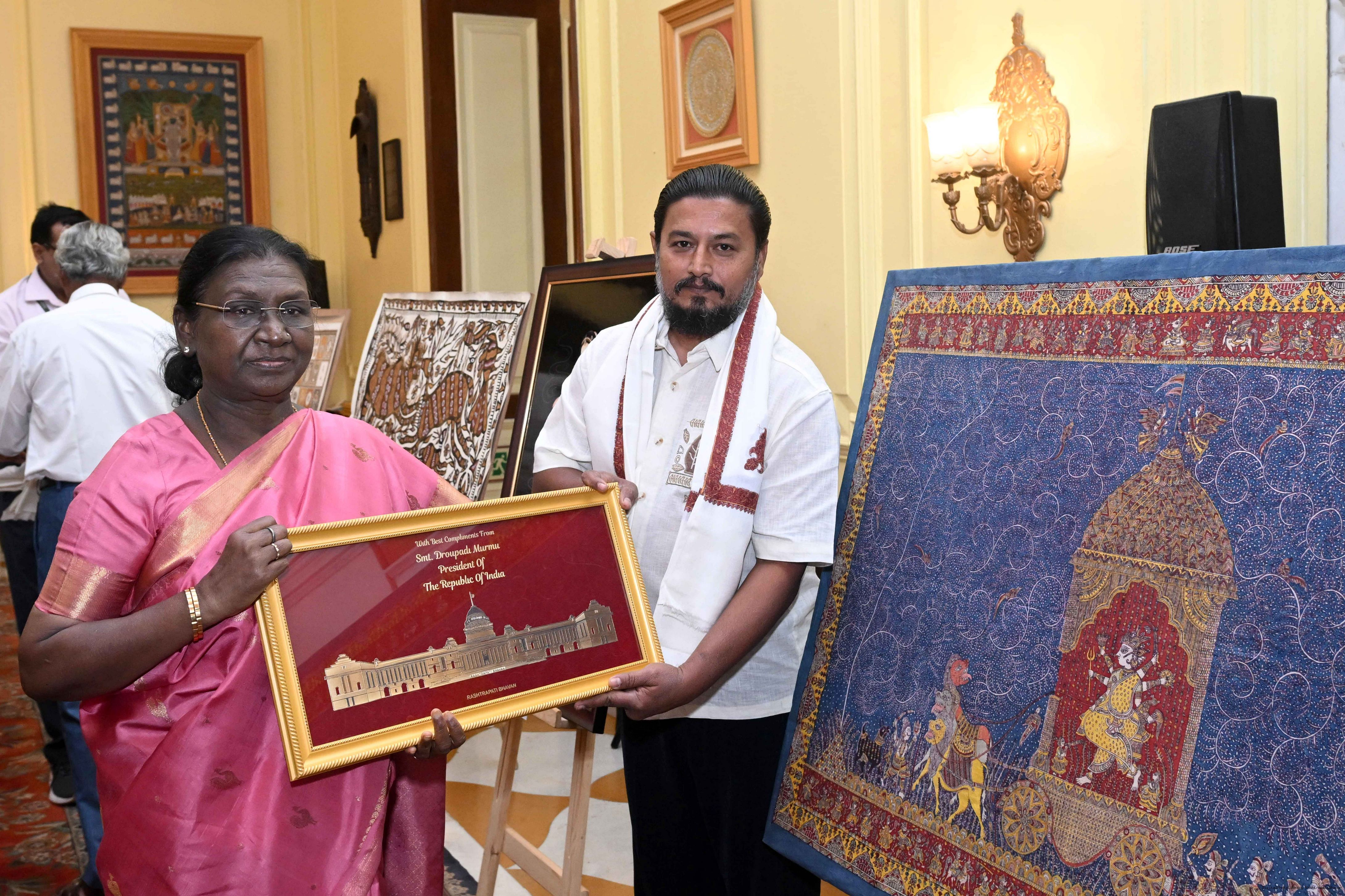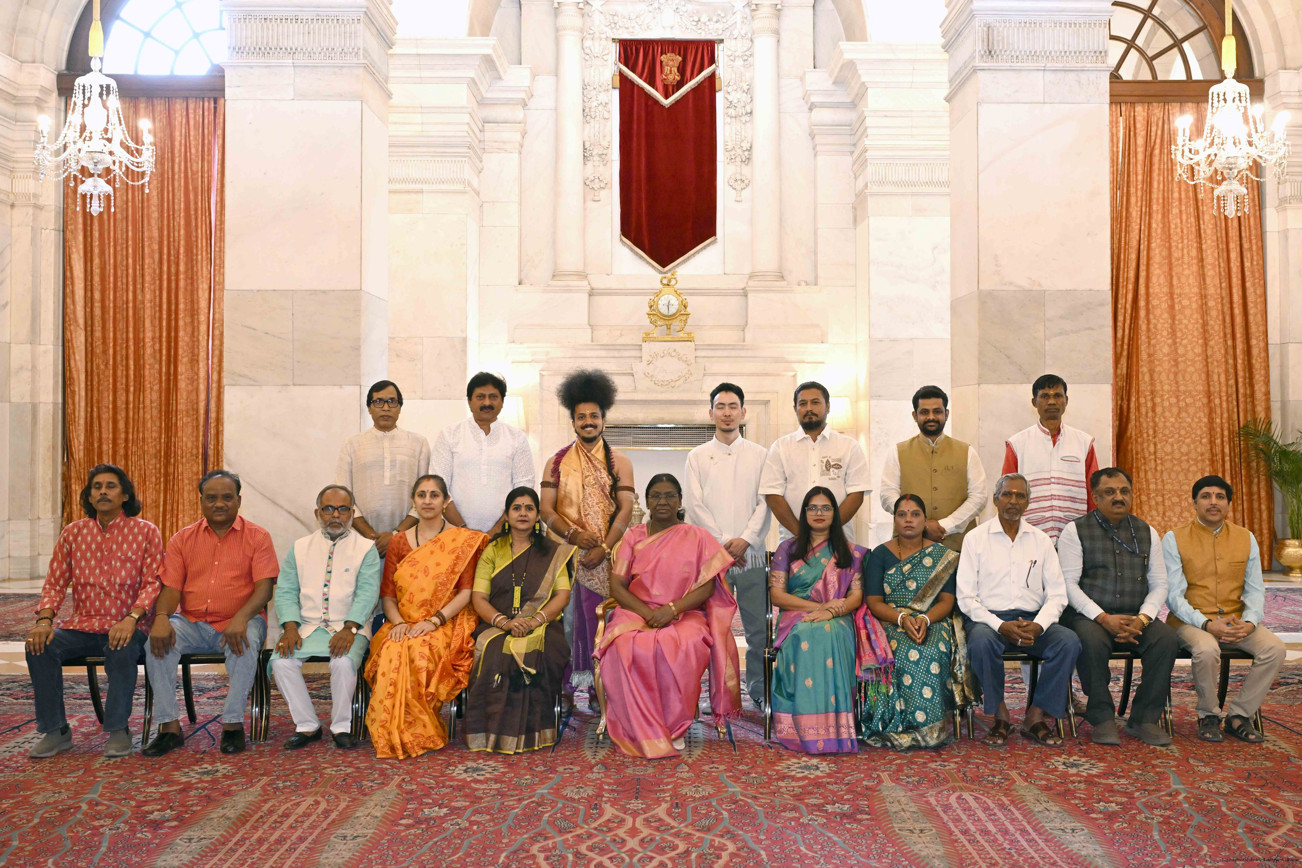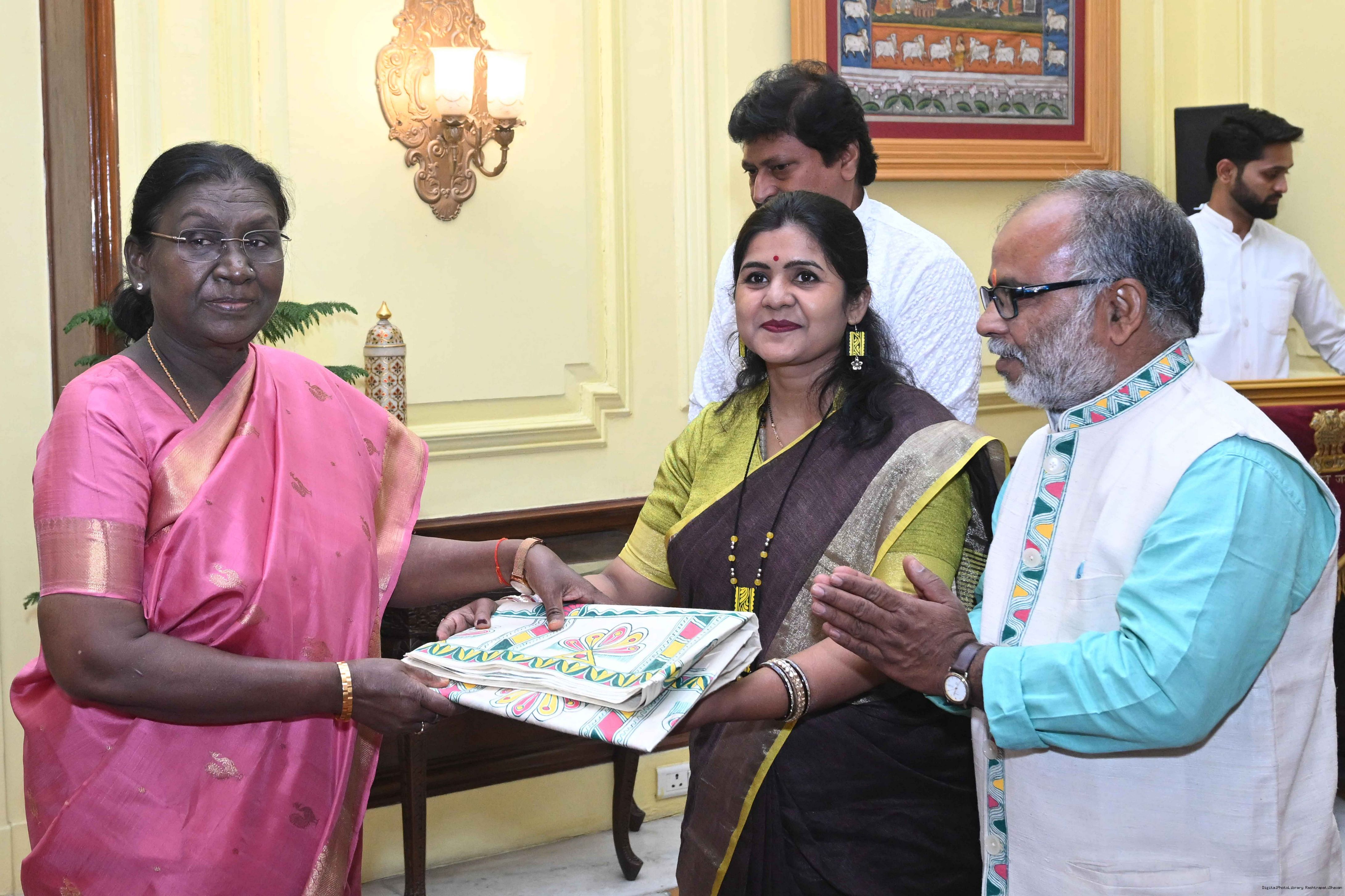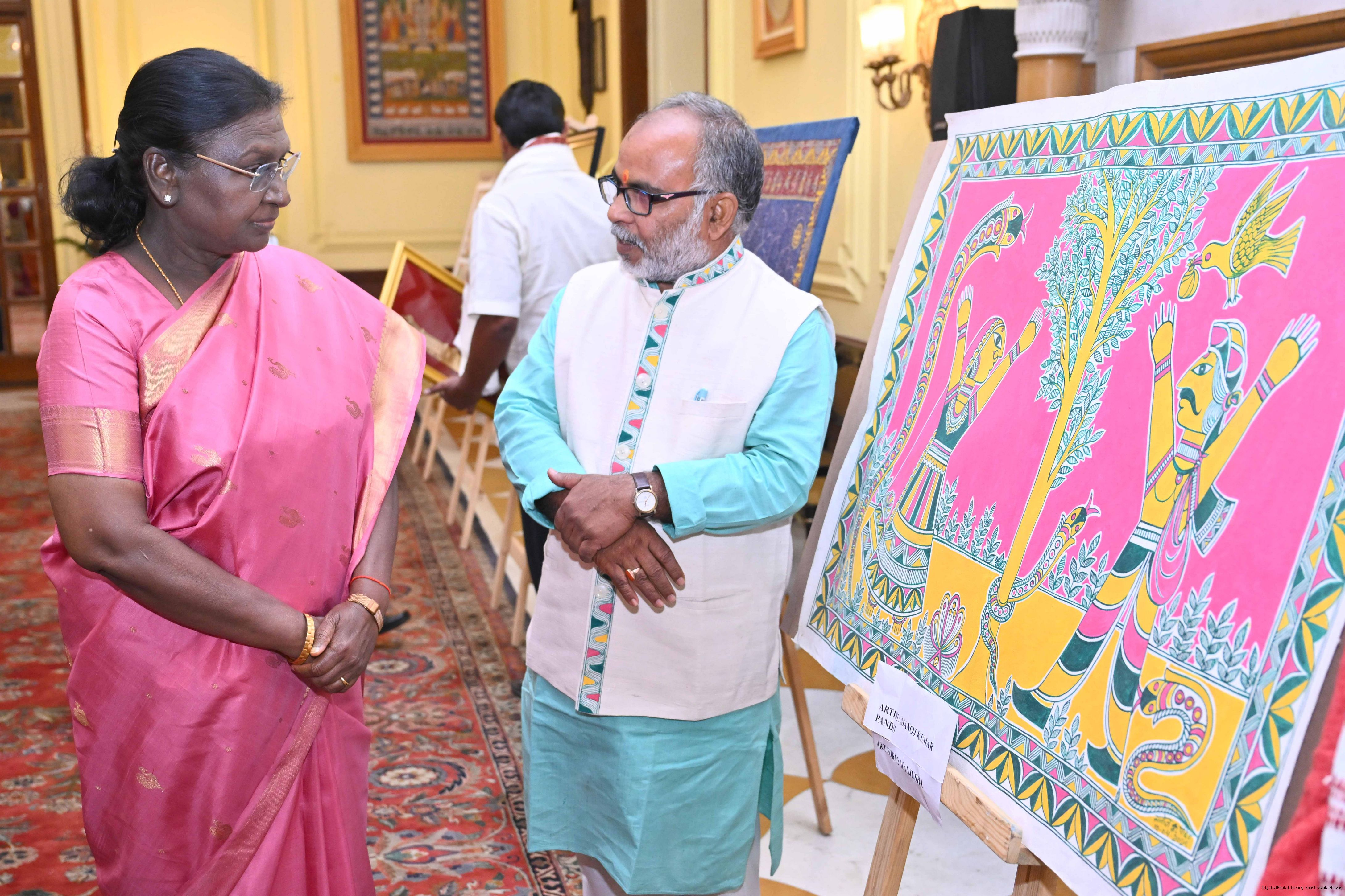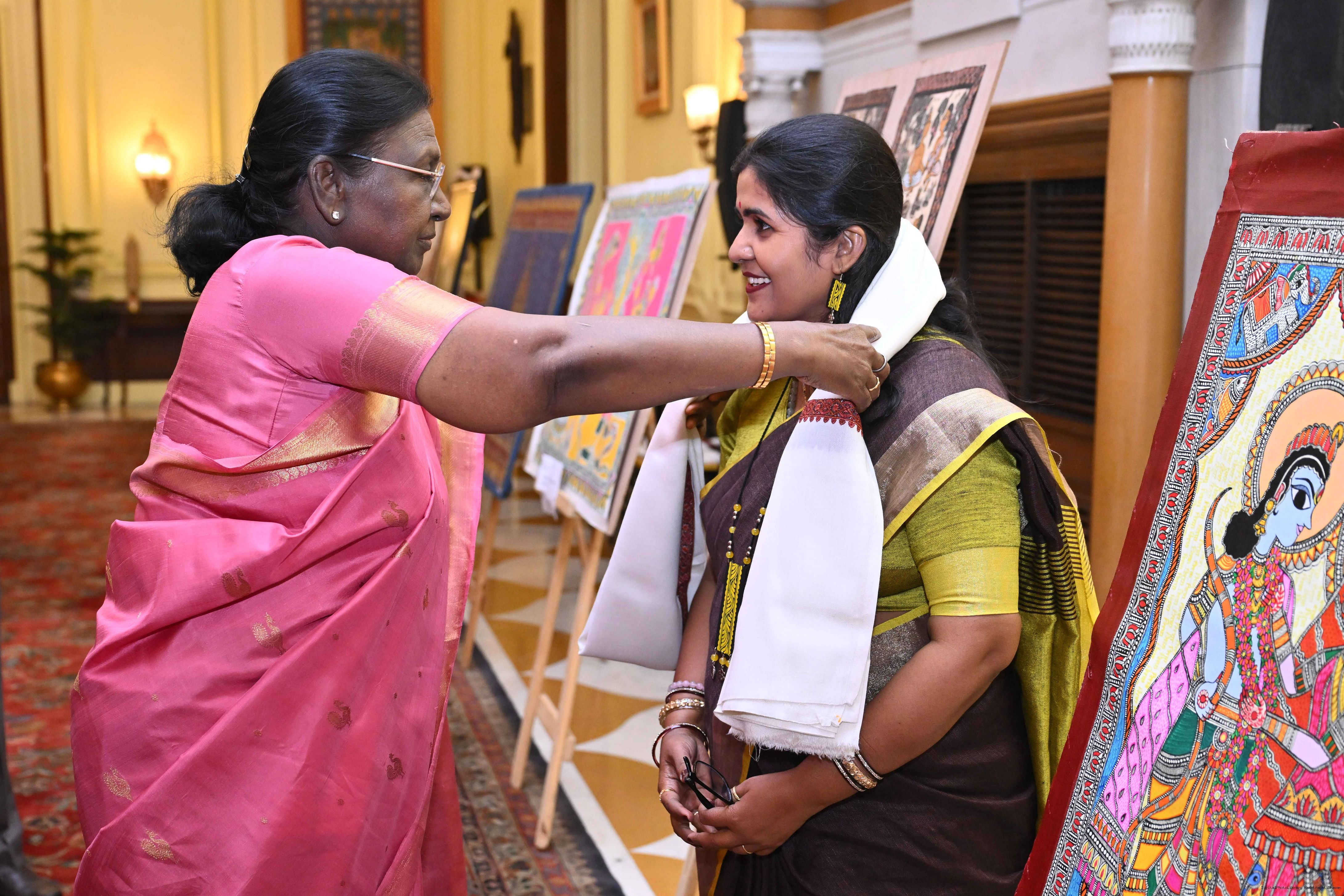 Caption: The President of India, Smt Droupadi Murmu met a group of artists of traditional art forms at Rashtrapati Bhavan on April 23, 2026.