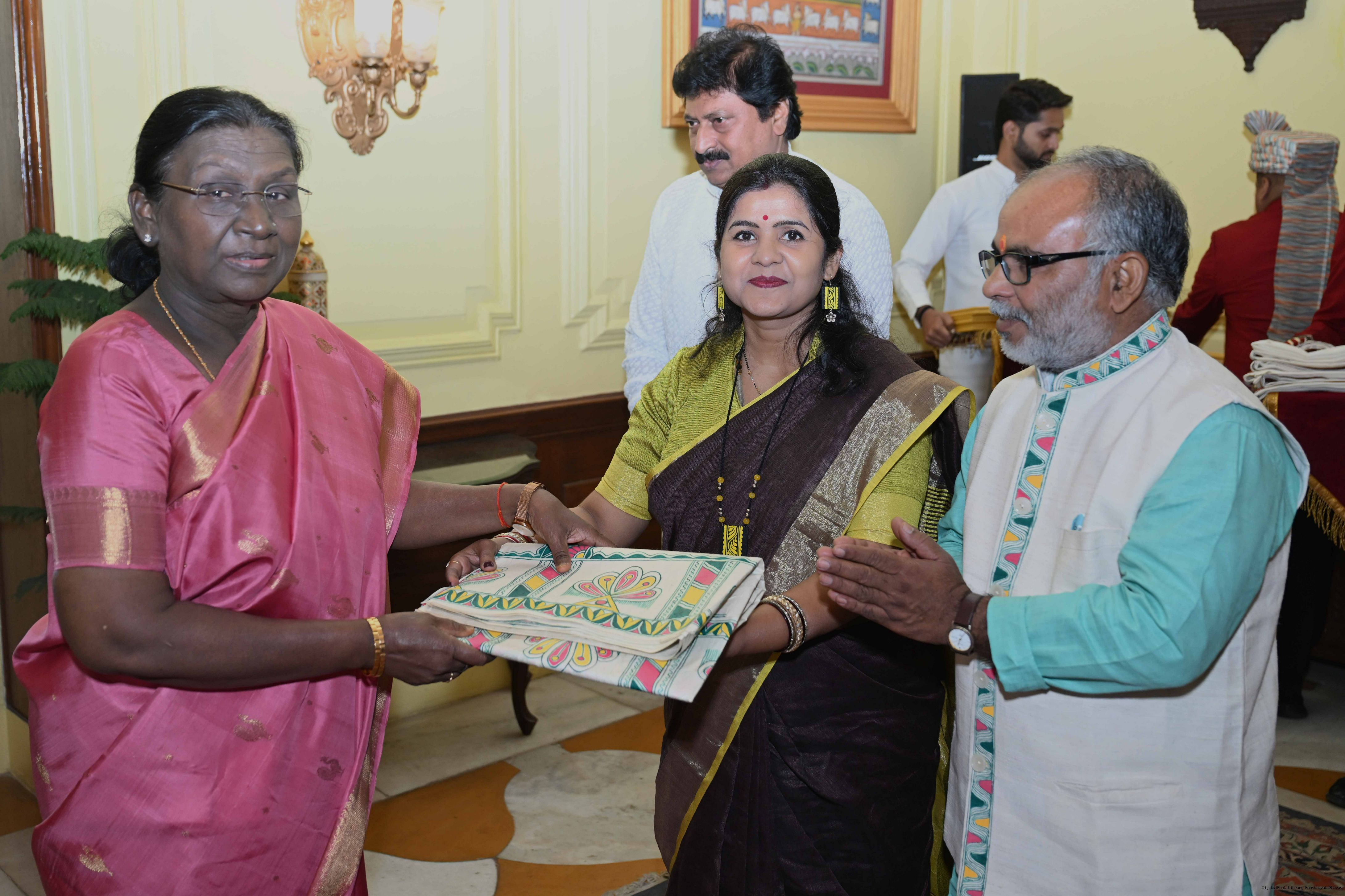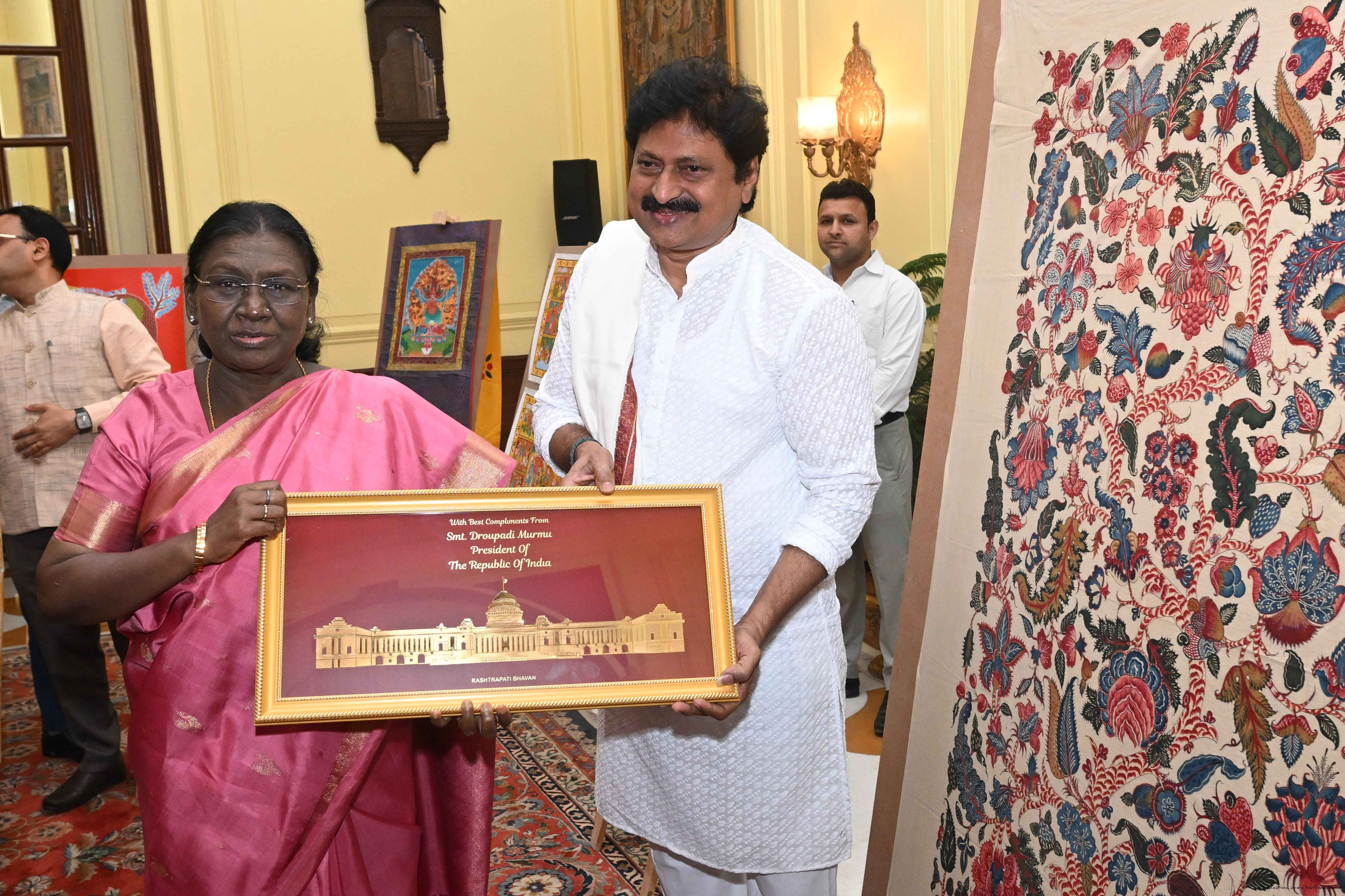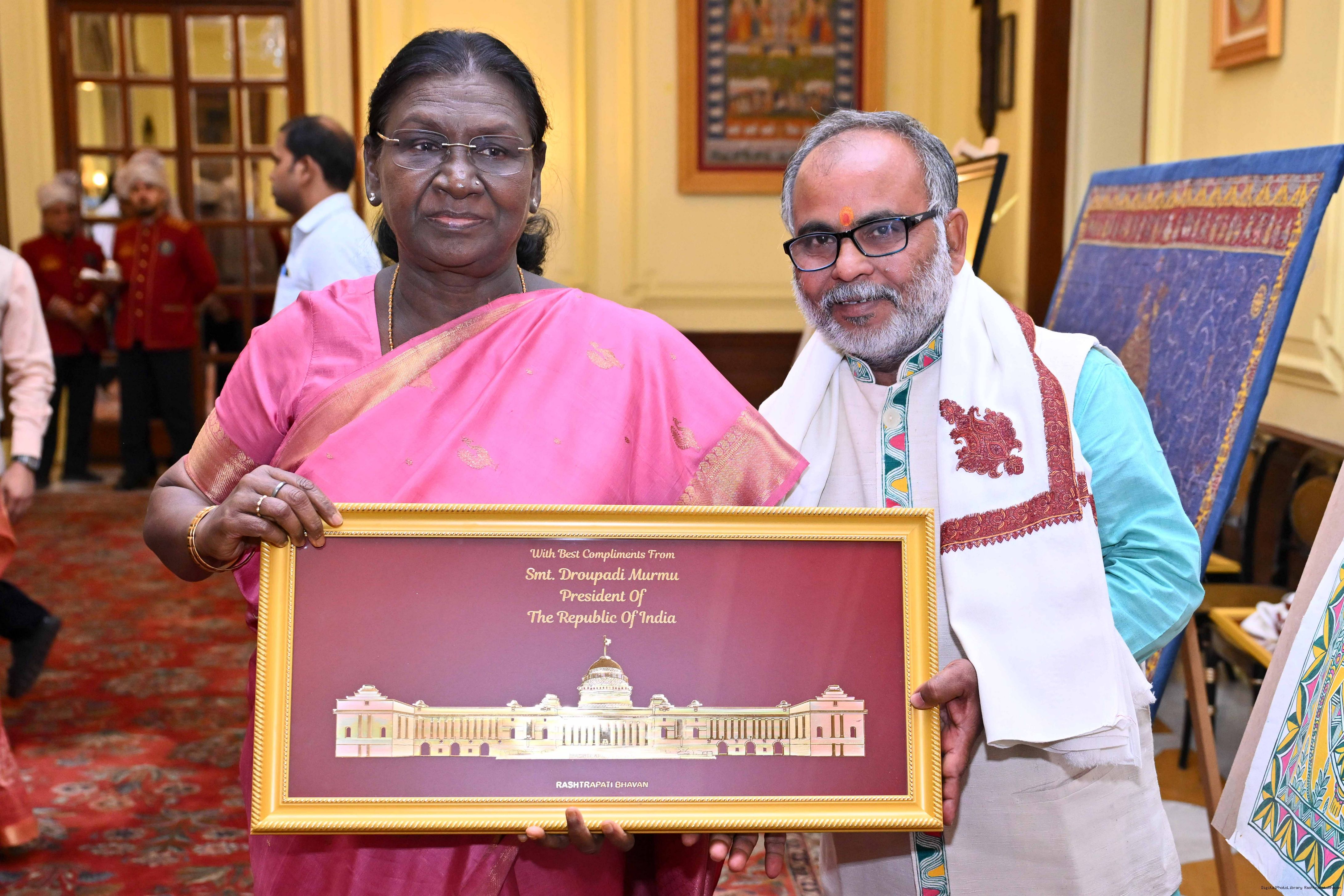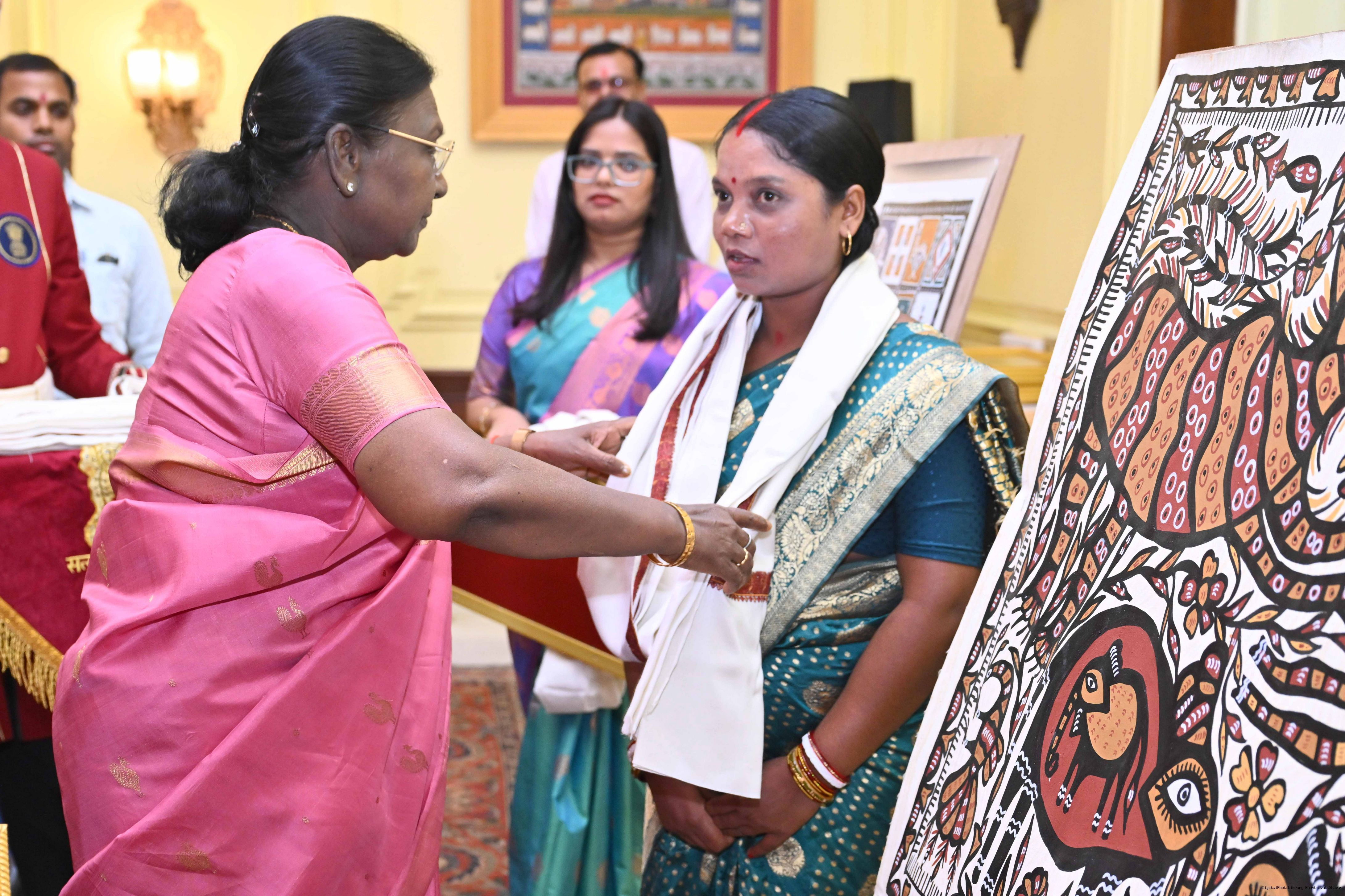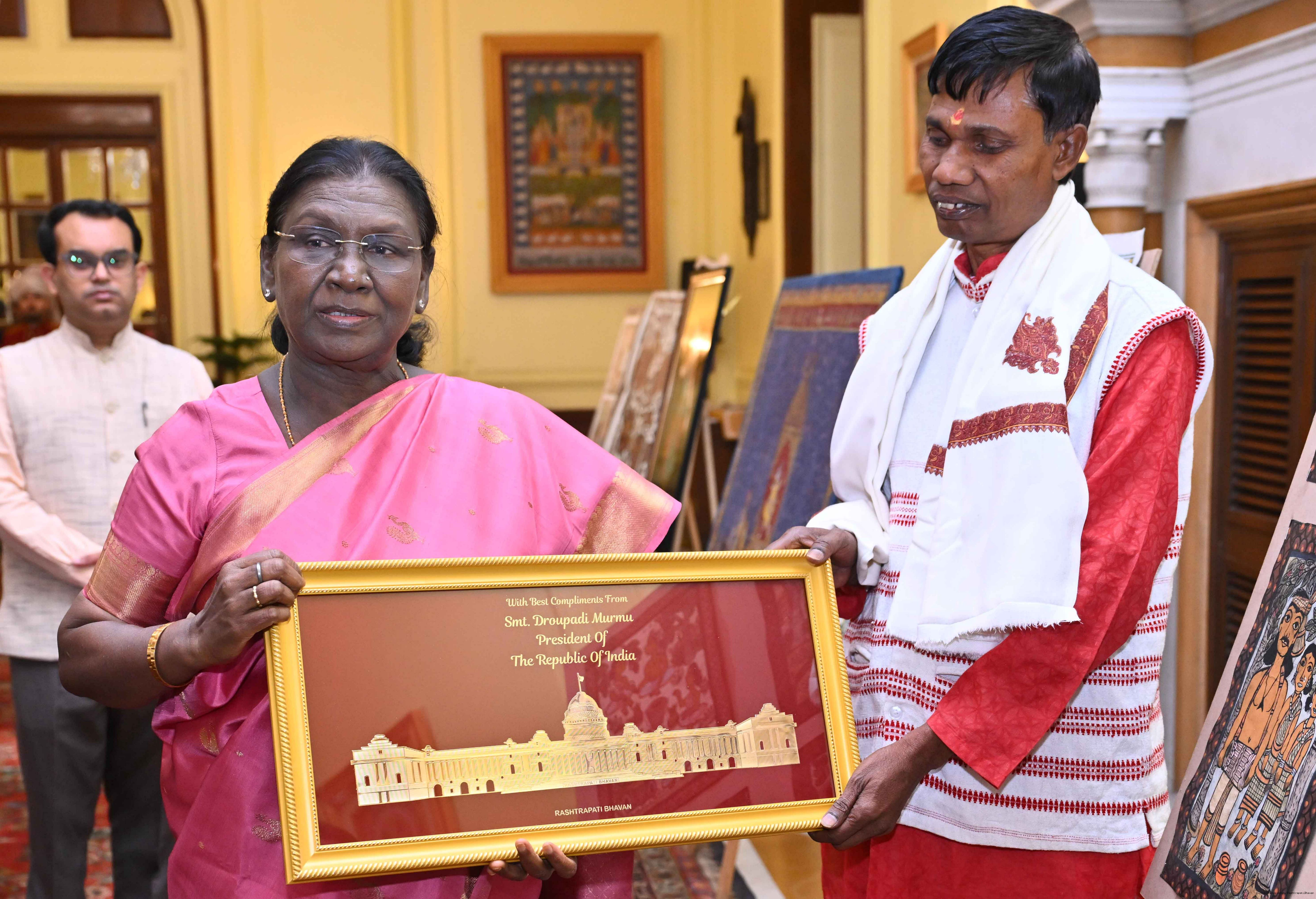Caption: The President of India, Smt Droupadi Murmu met a group of artists of traditional art forms at Rashtrapati Bhavan on April 23, 2026.