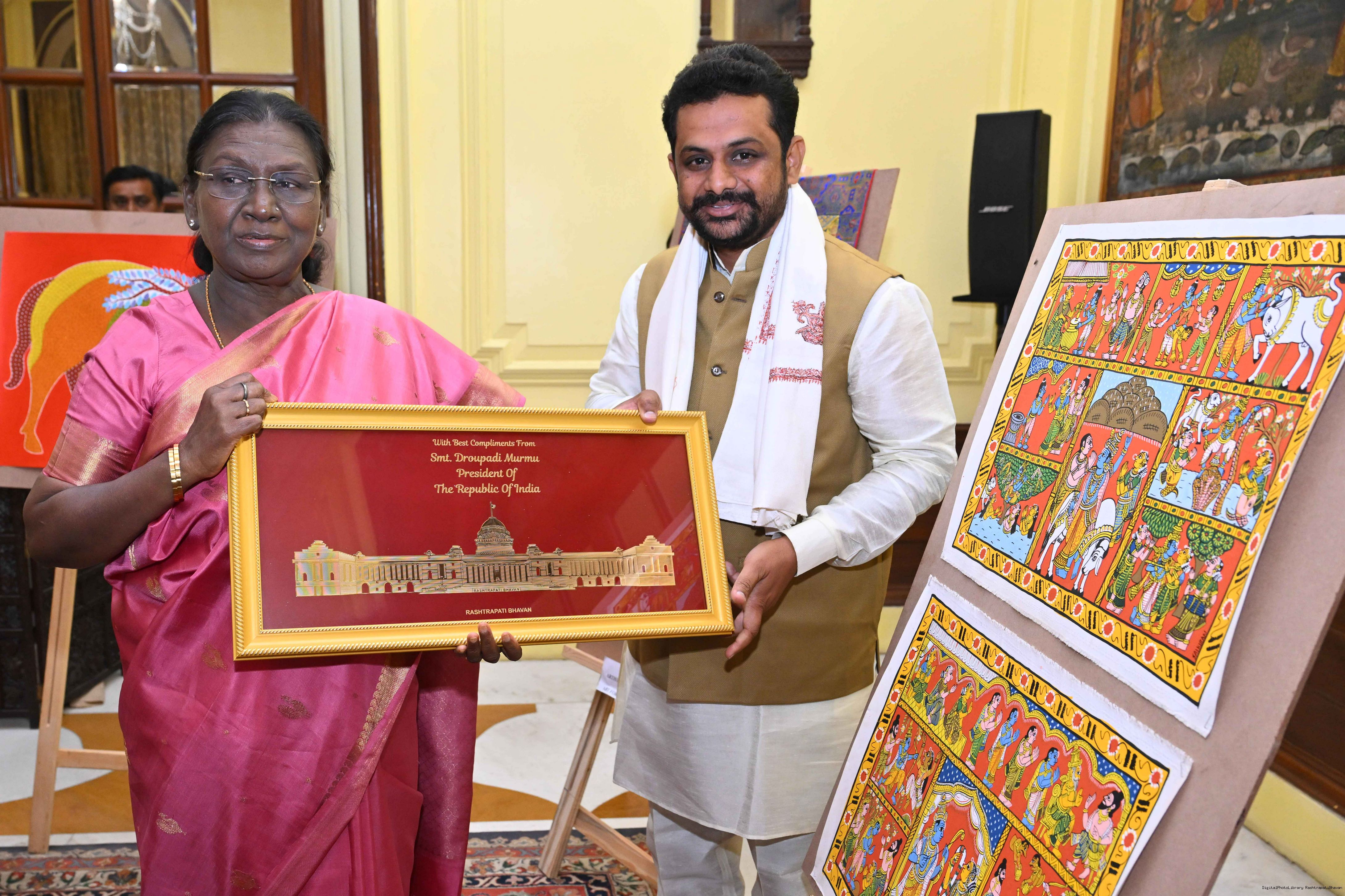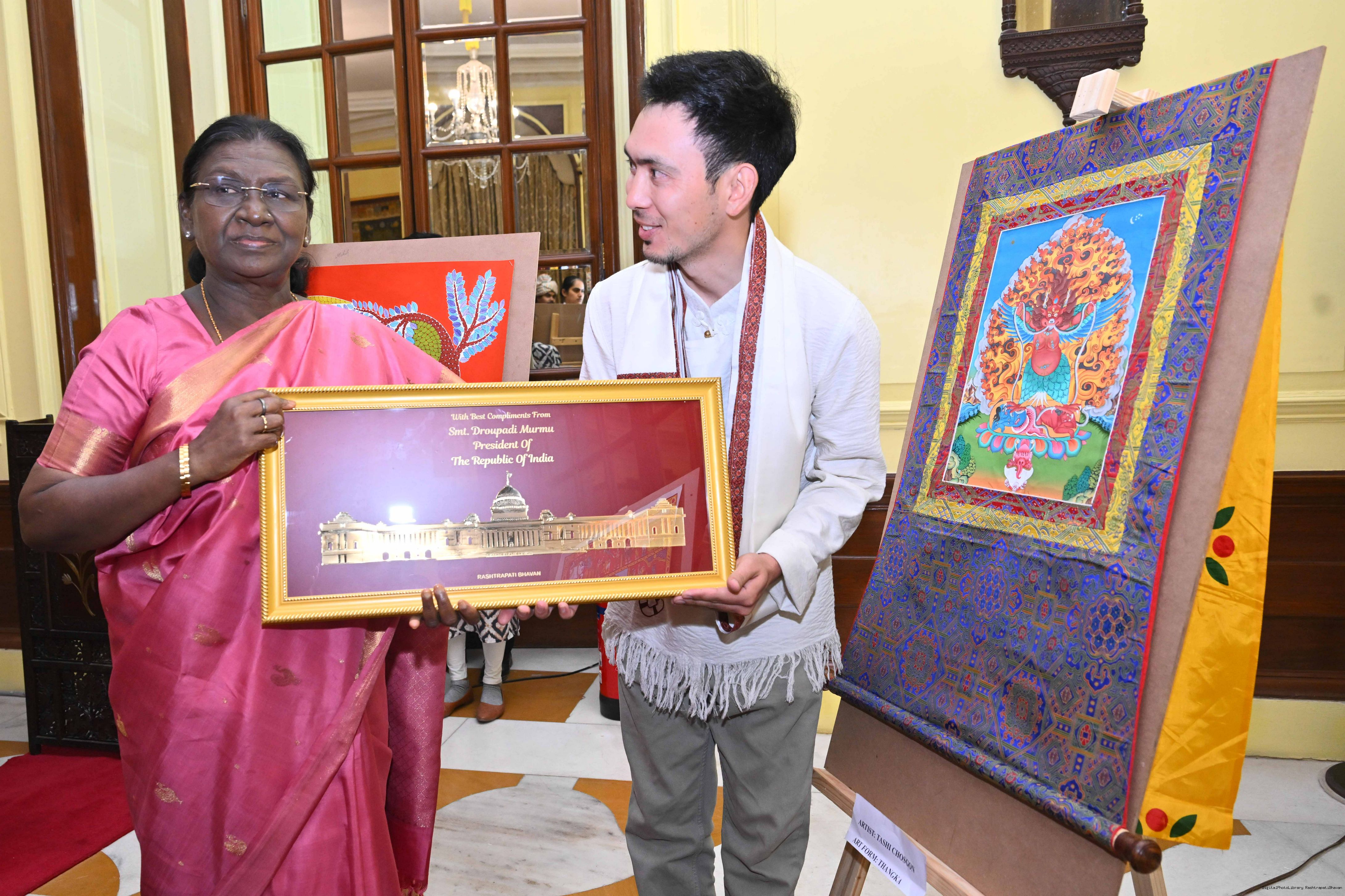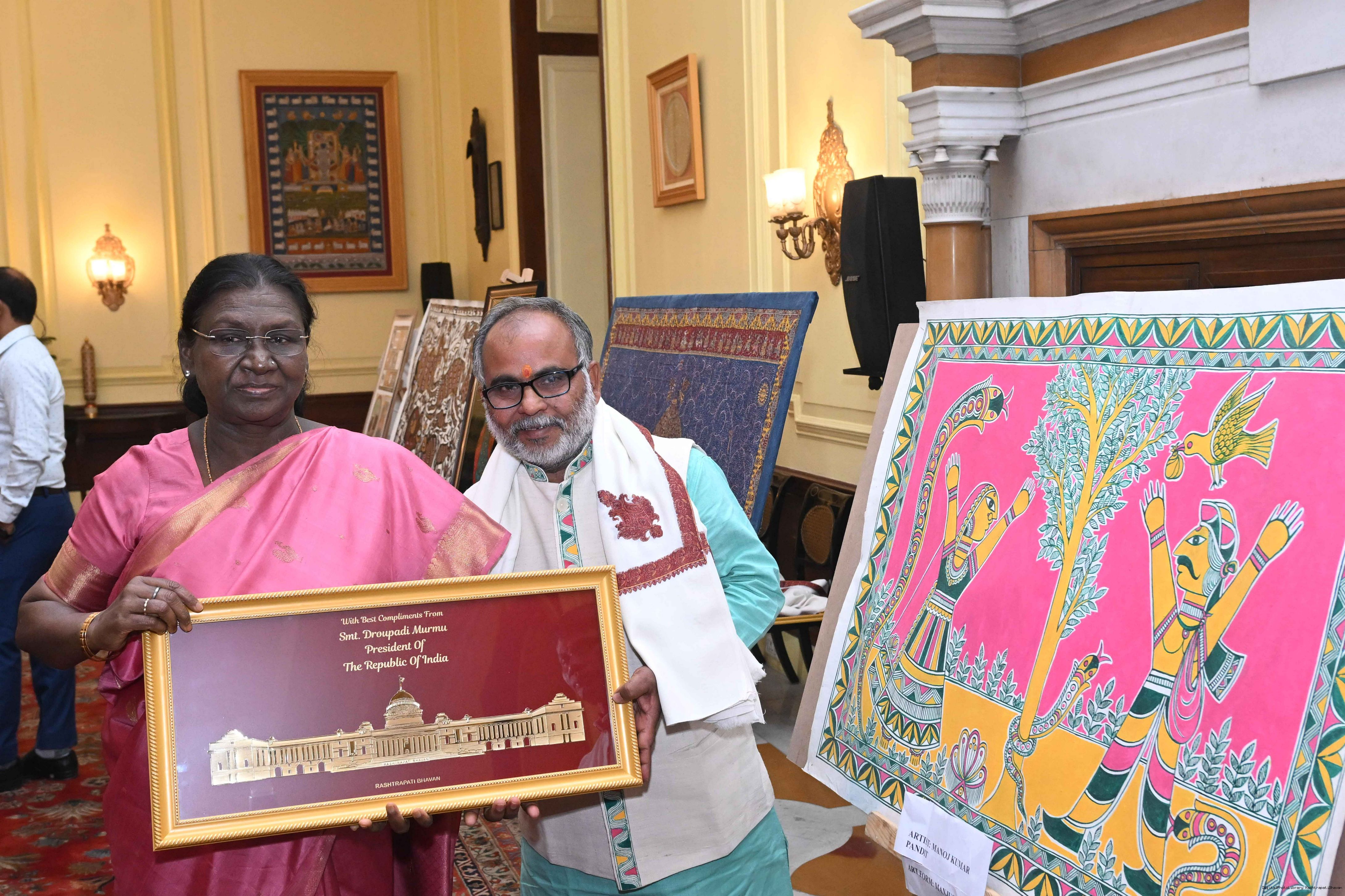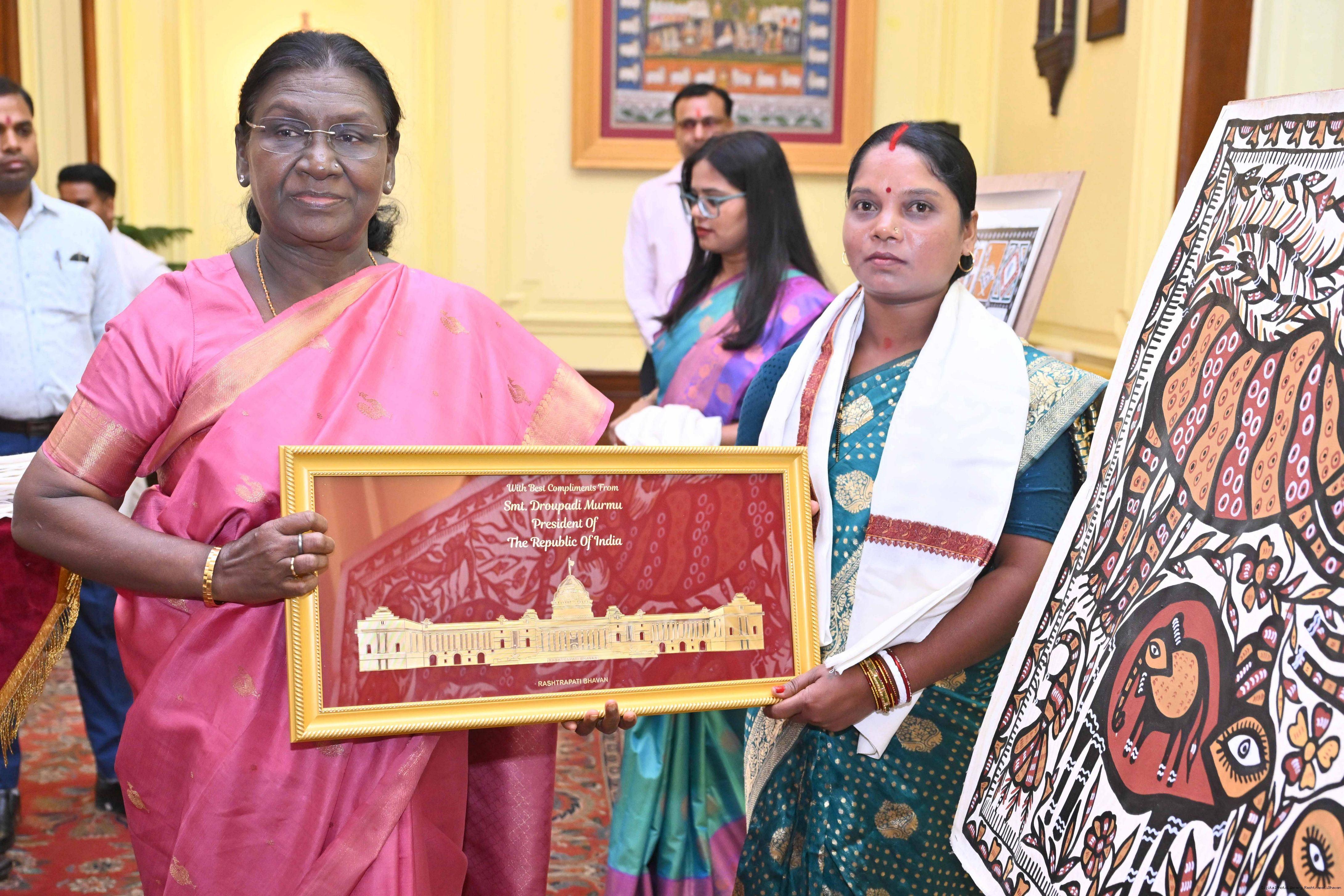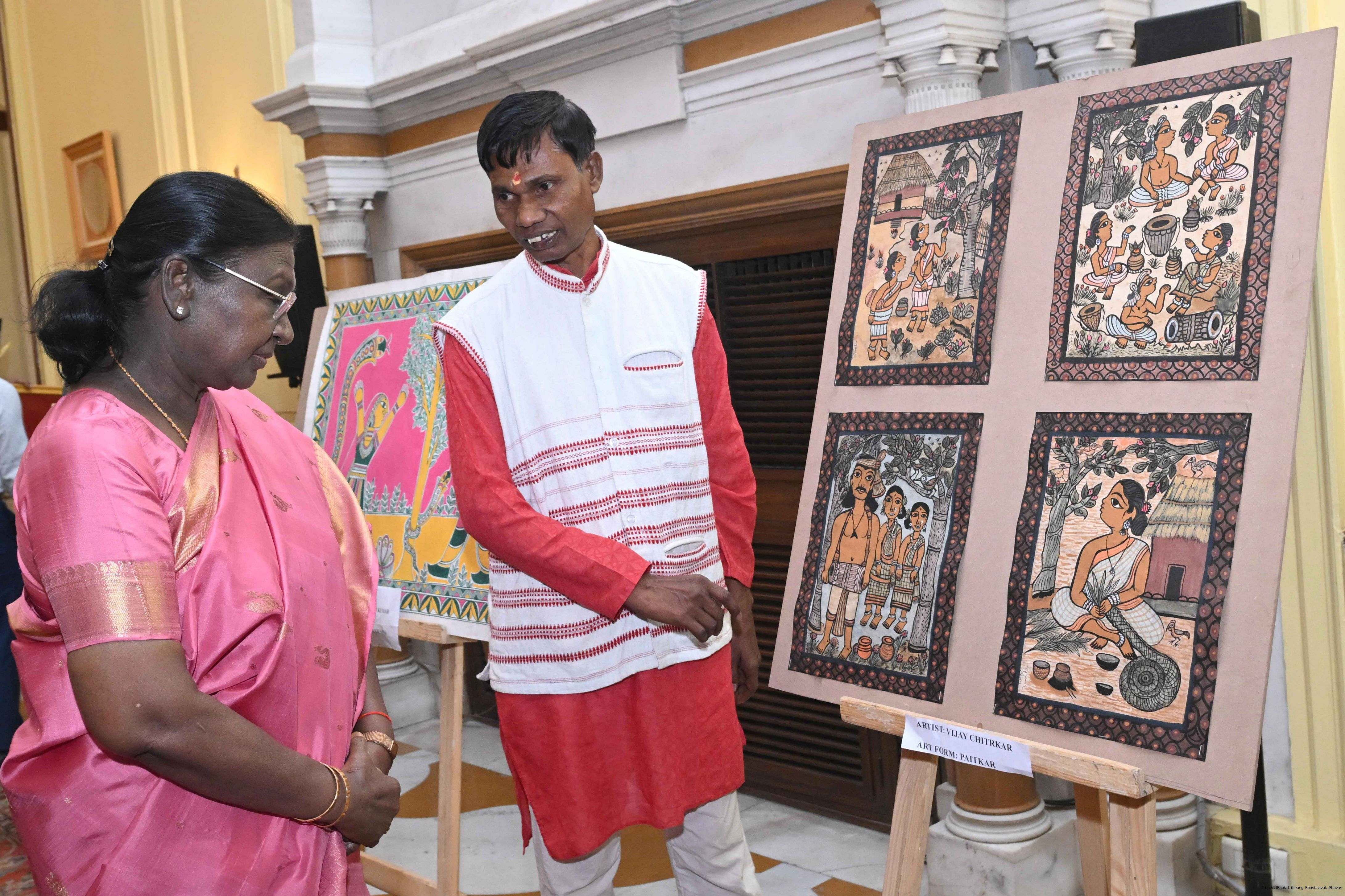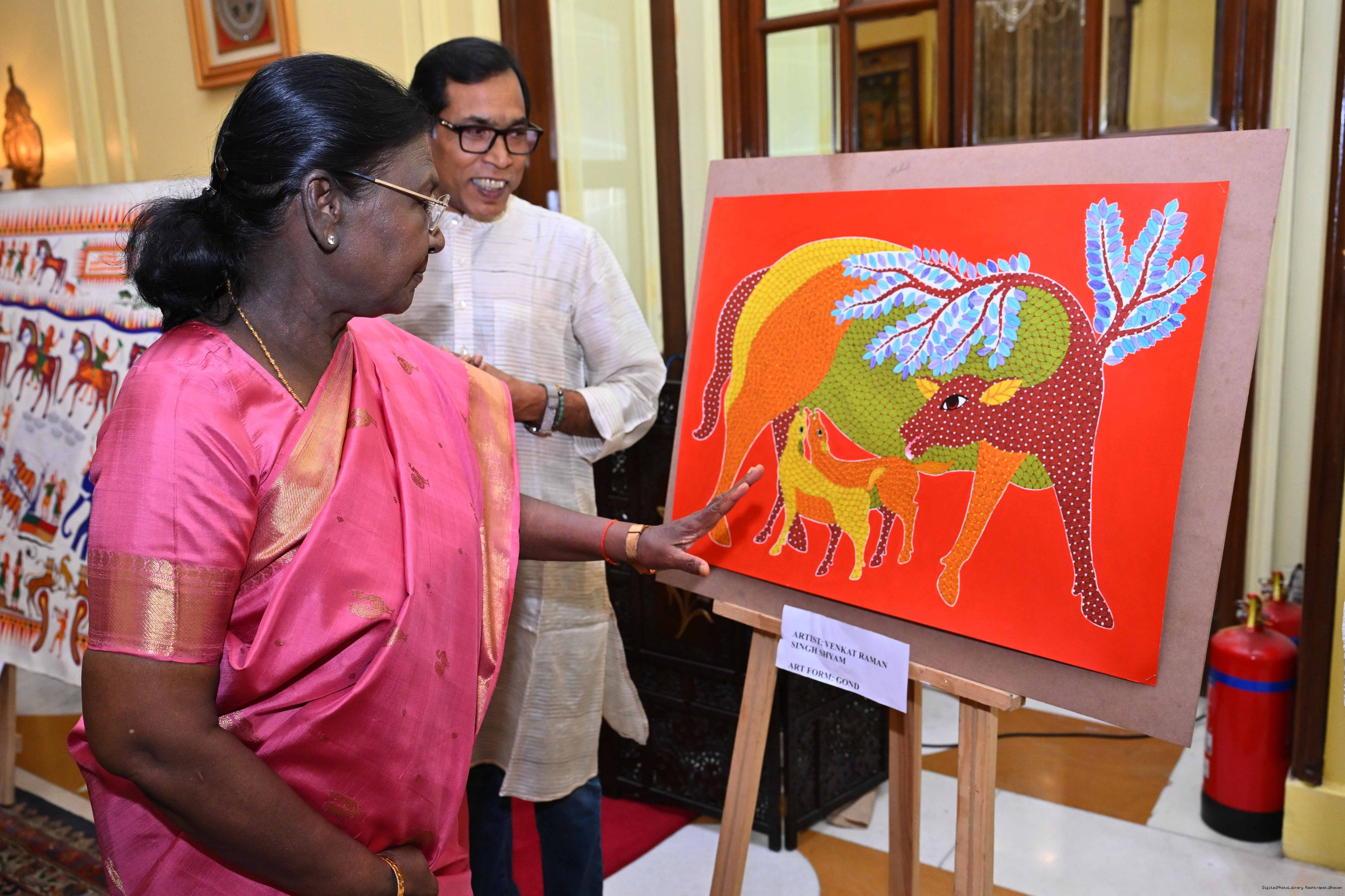 Caption: The President of India, Smt Droupadi Murmu met a group of artists of traditional art forms at Rashtrapati Bhavan on April 23, 2026.