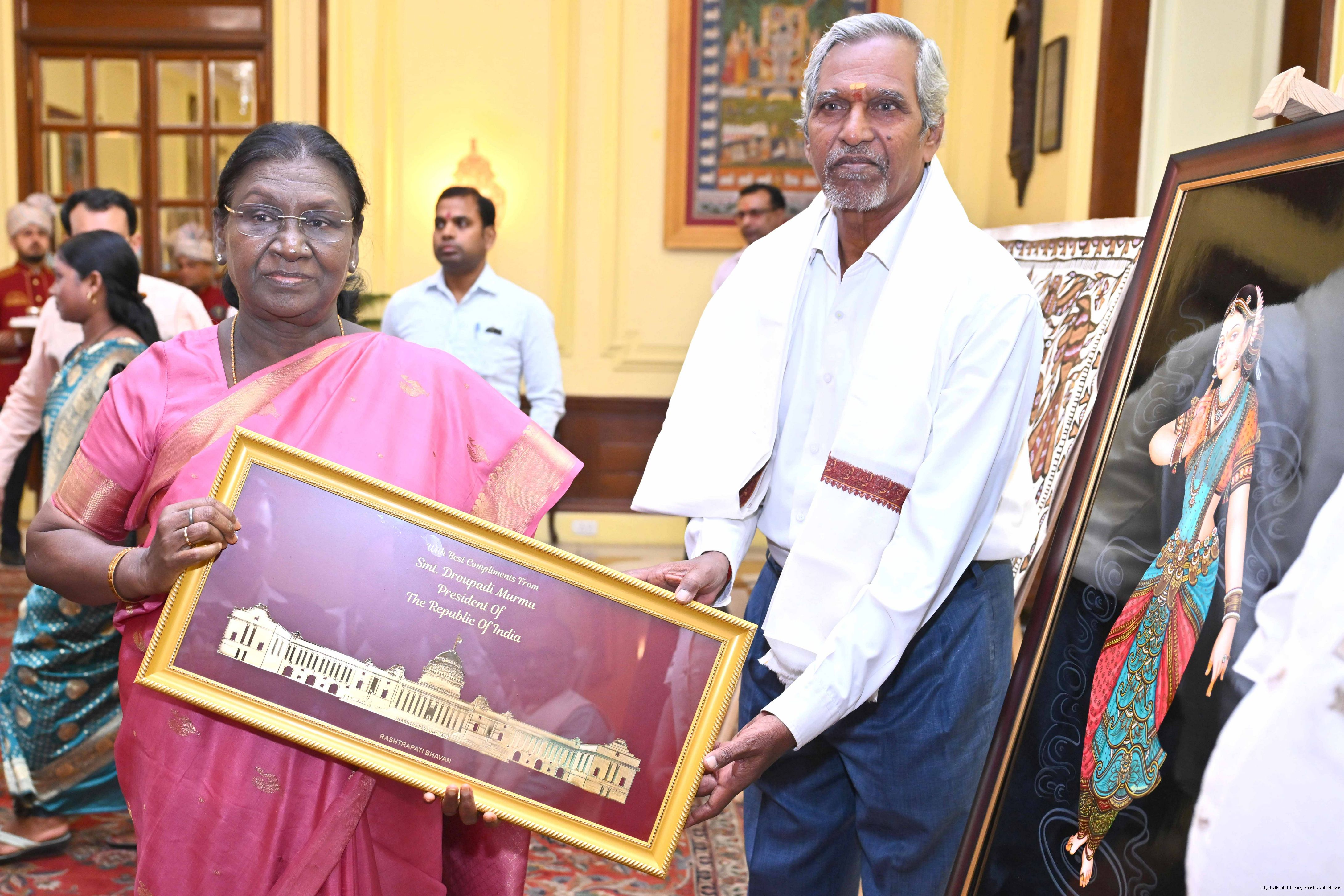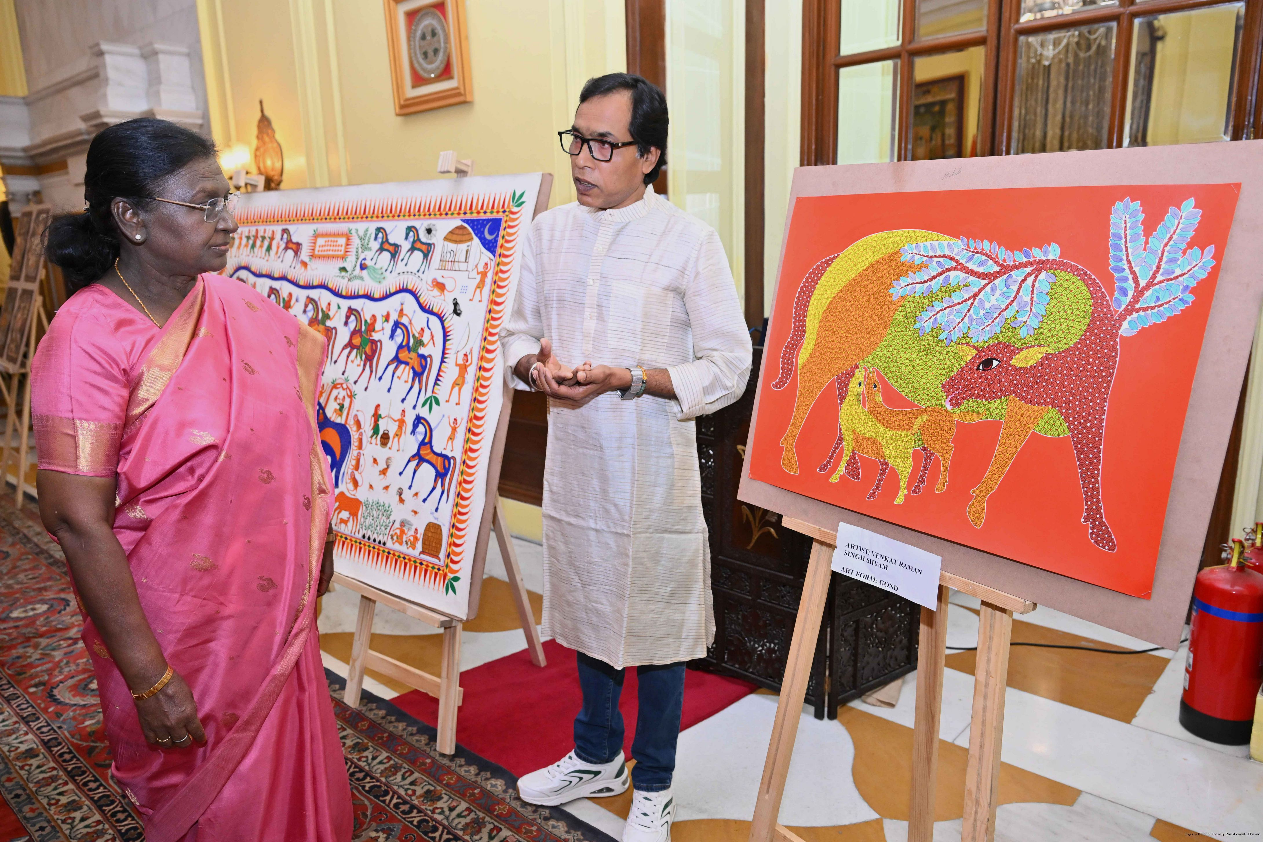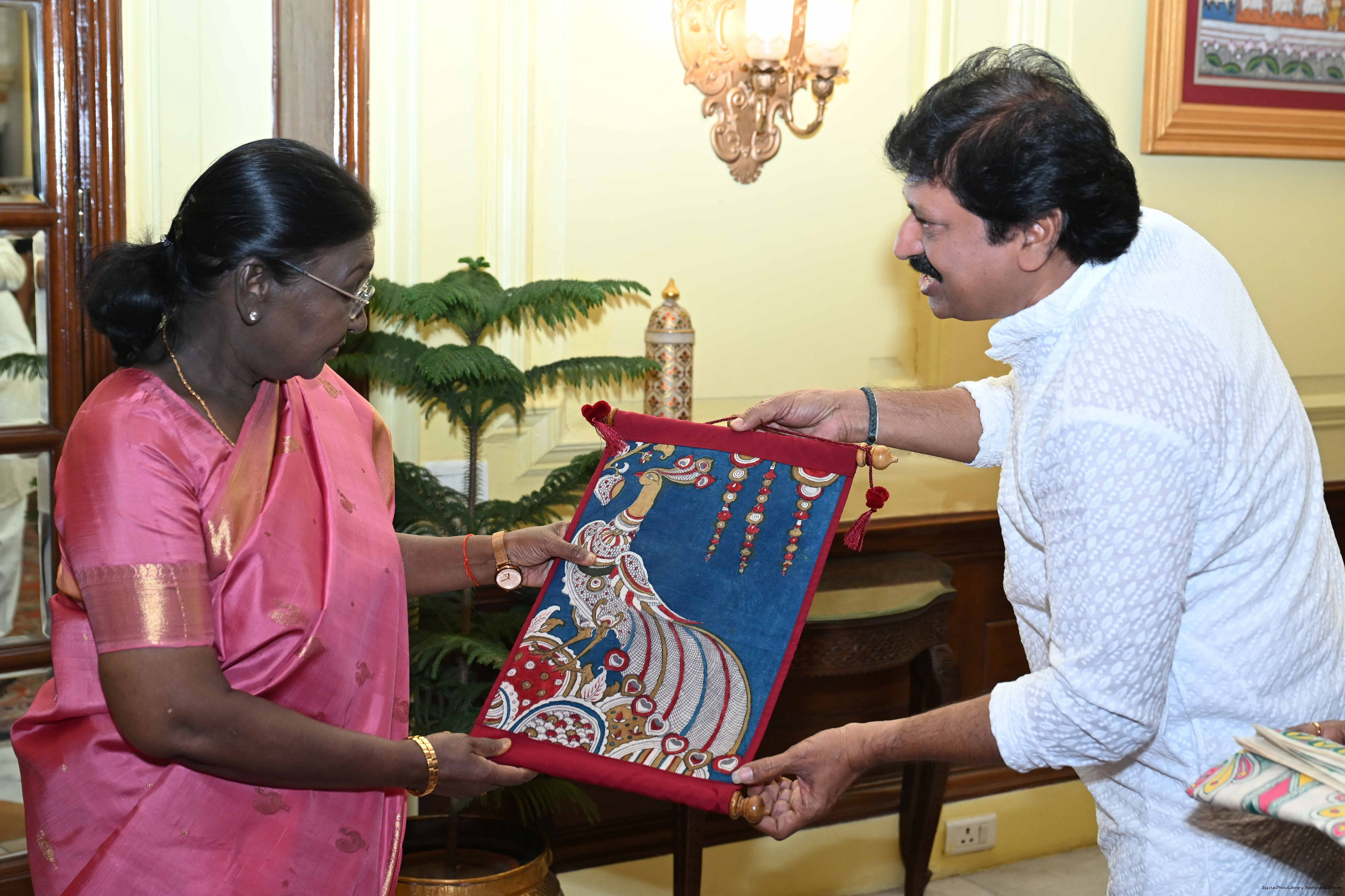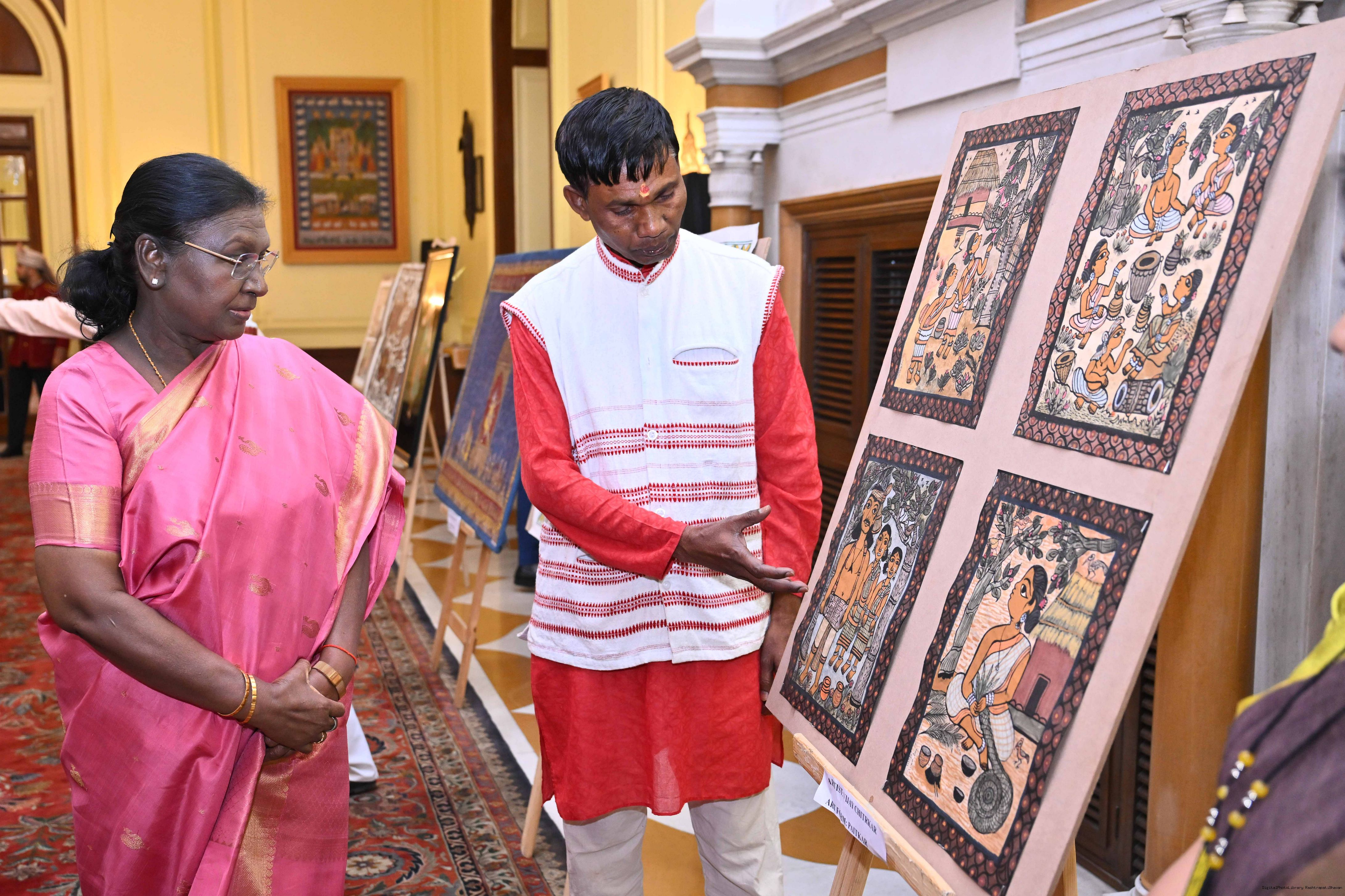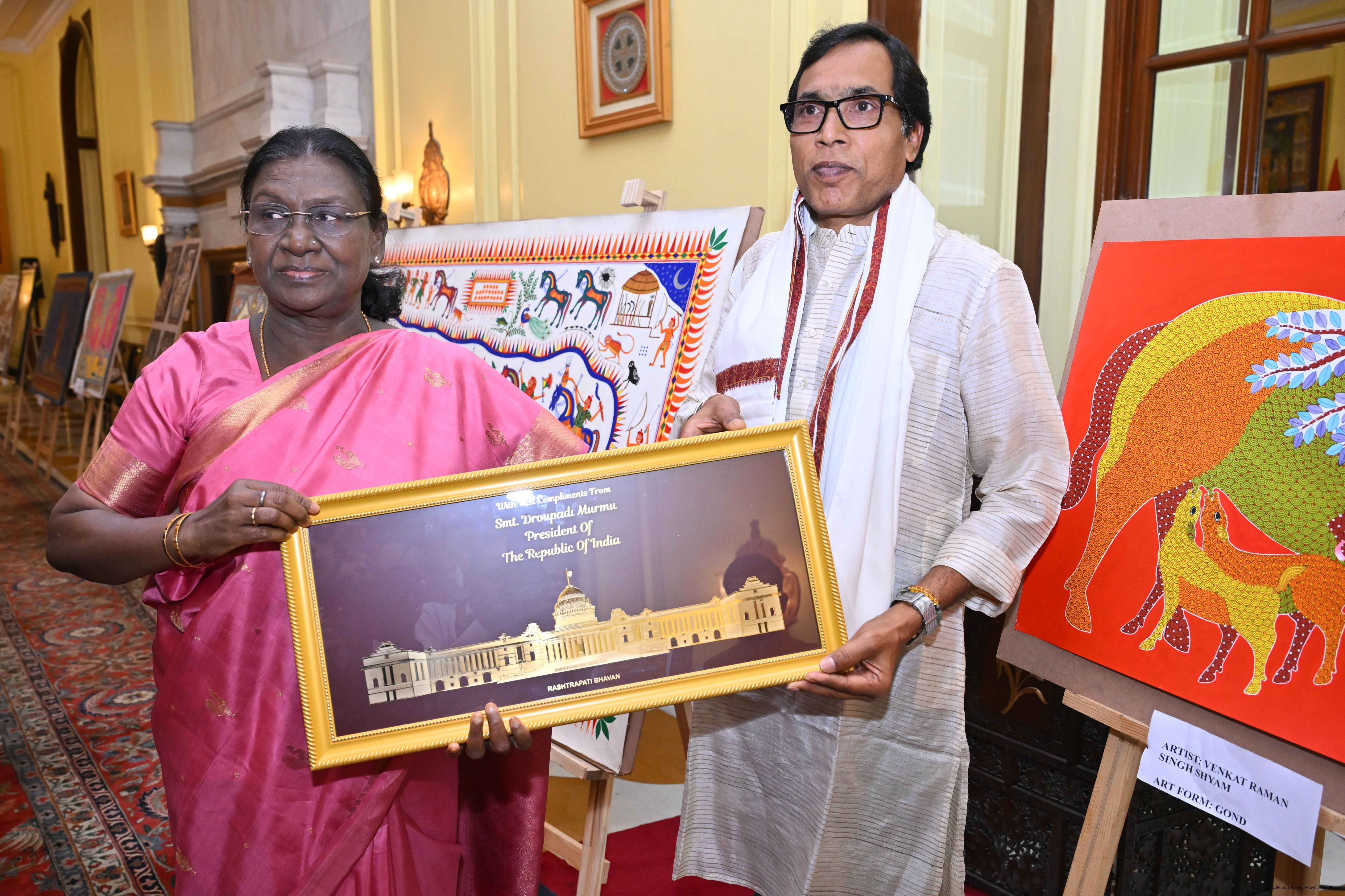 Caption: The President of India, Smt Droupadi Murmu met a group of artists of traditional art forms at Rashtrapati Bhavan on April 23, 2026.