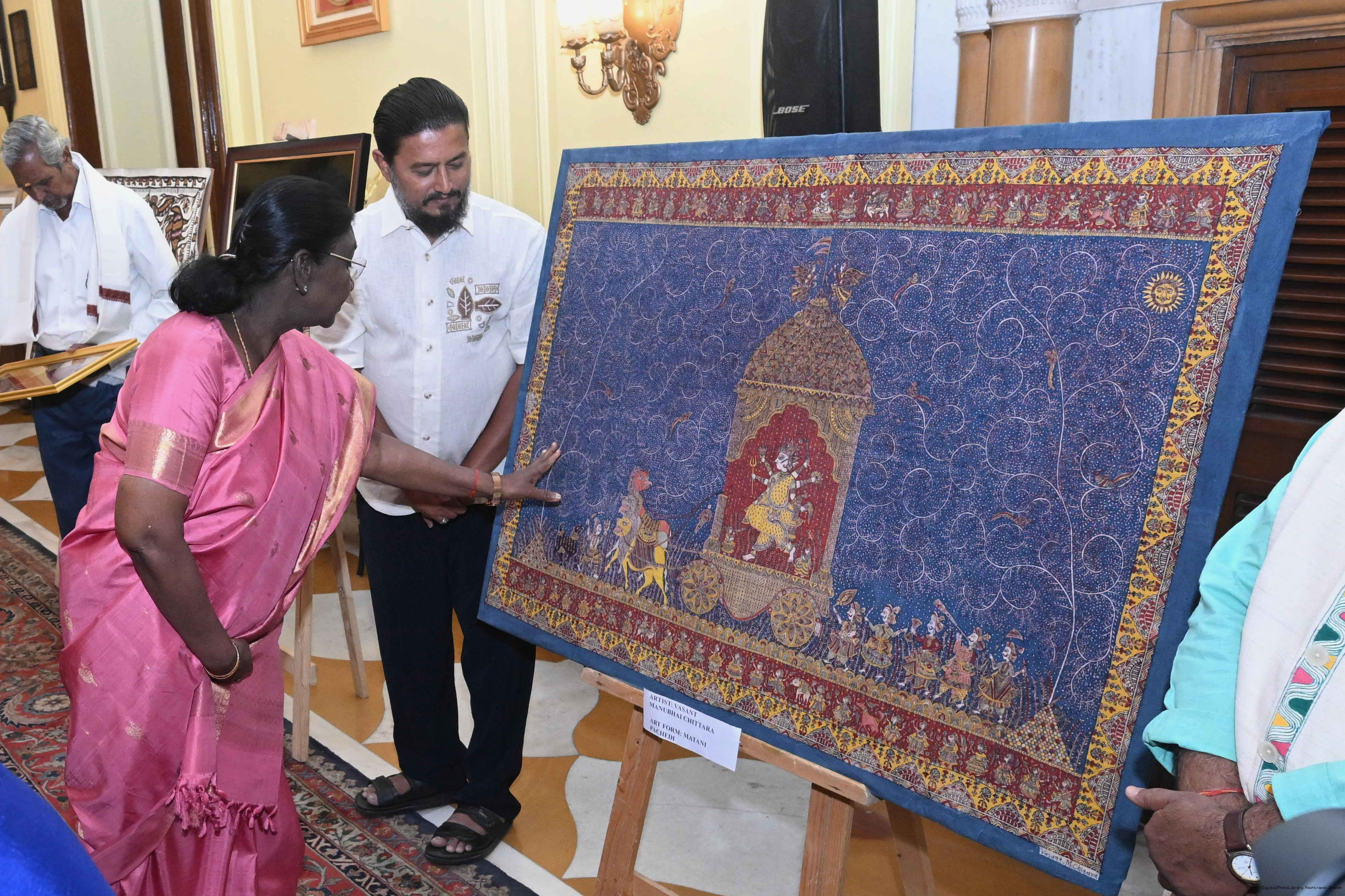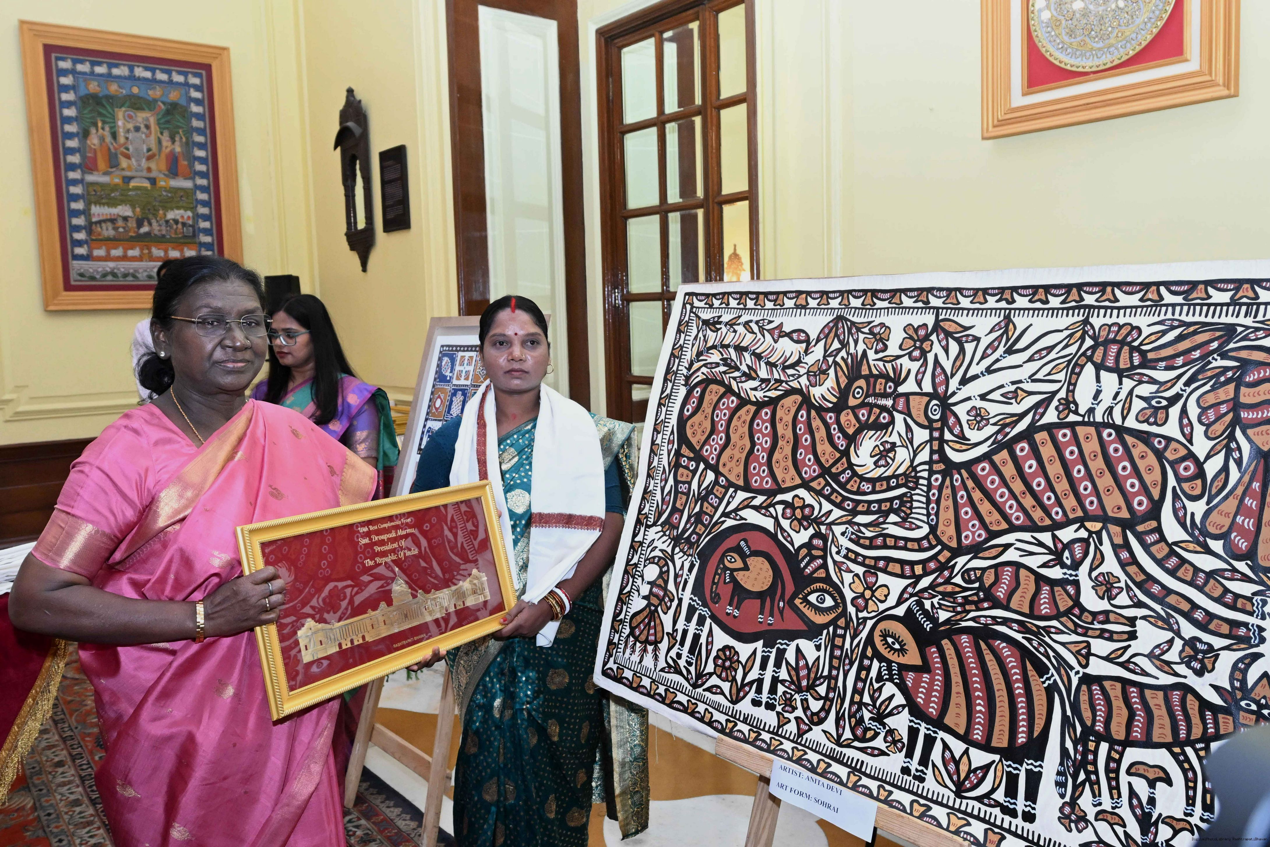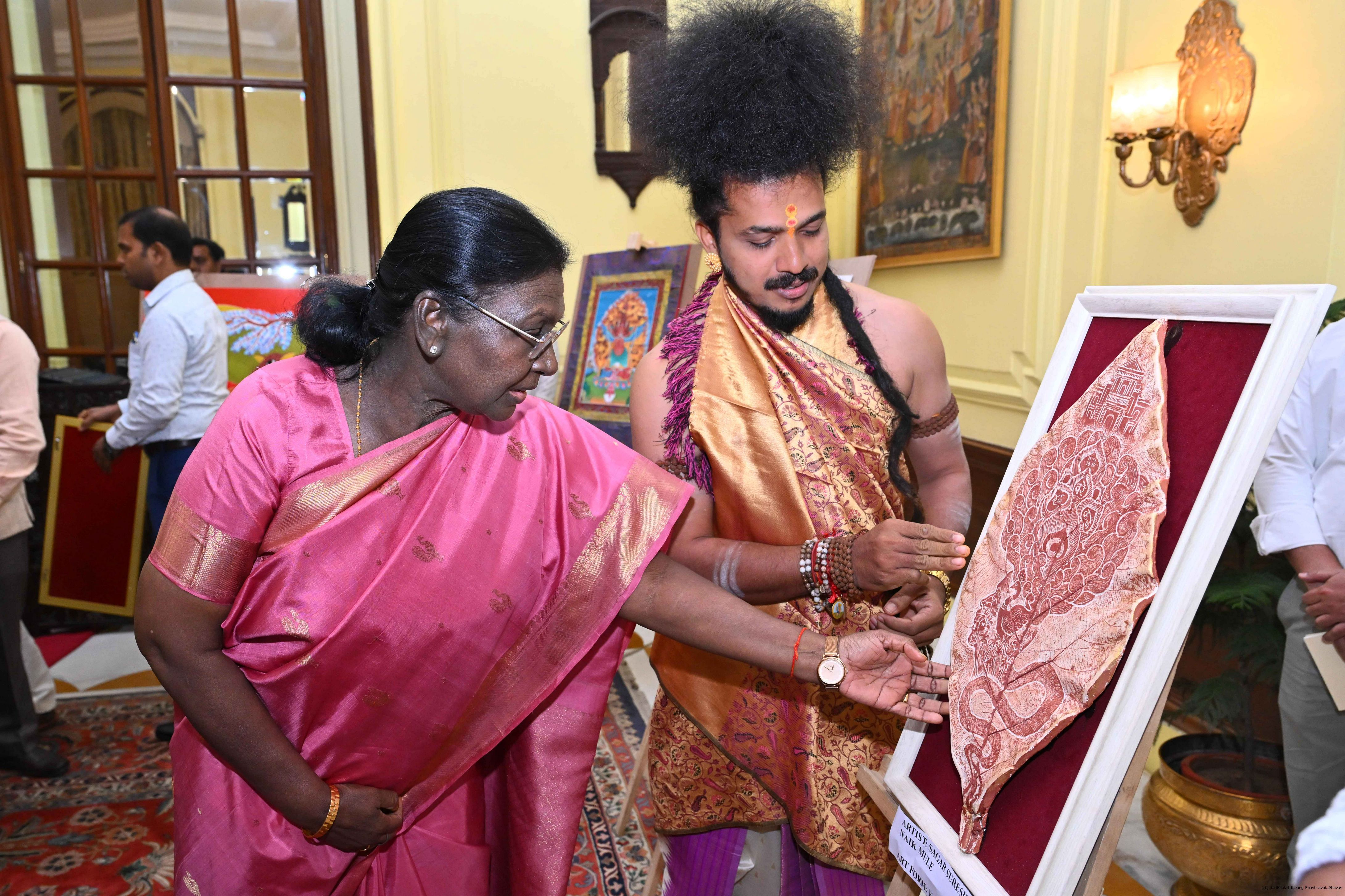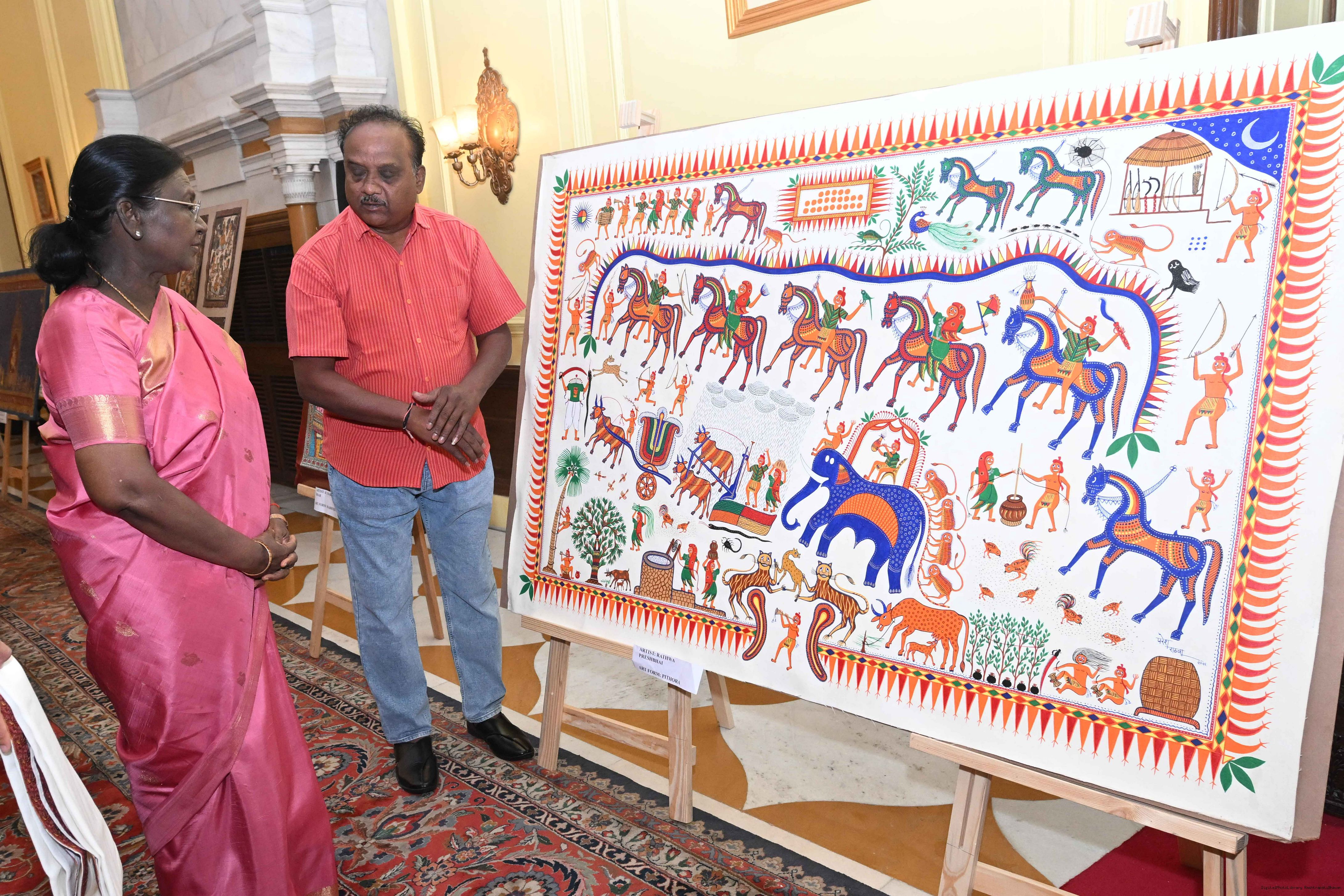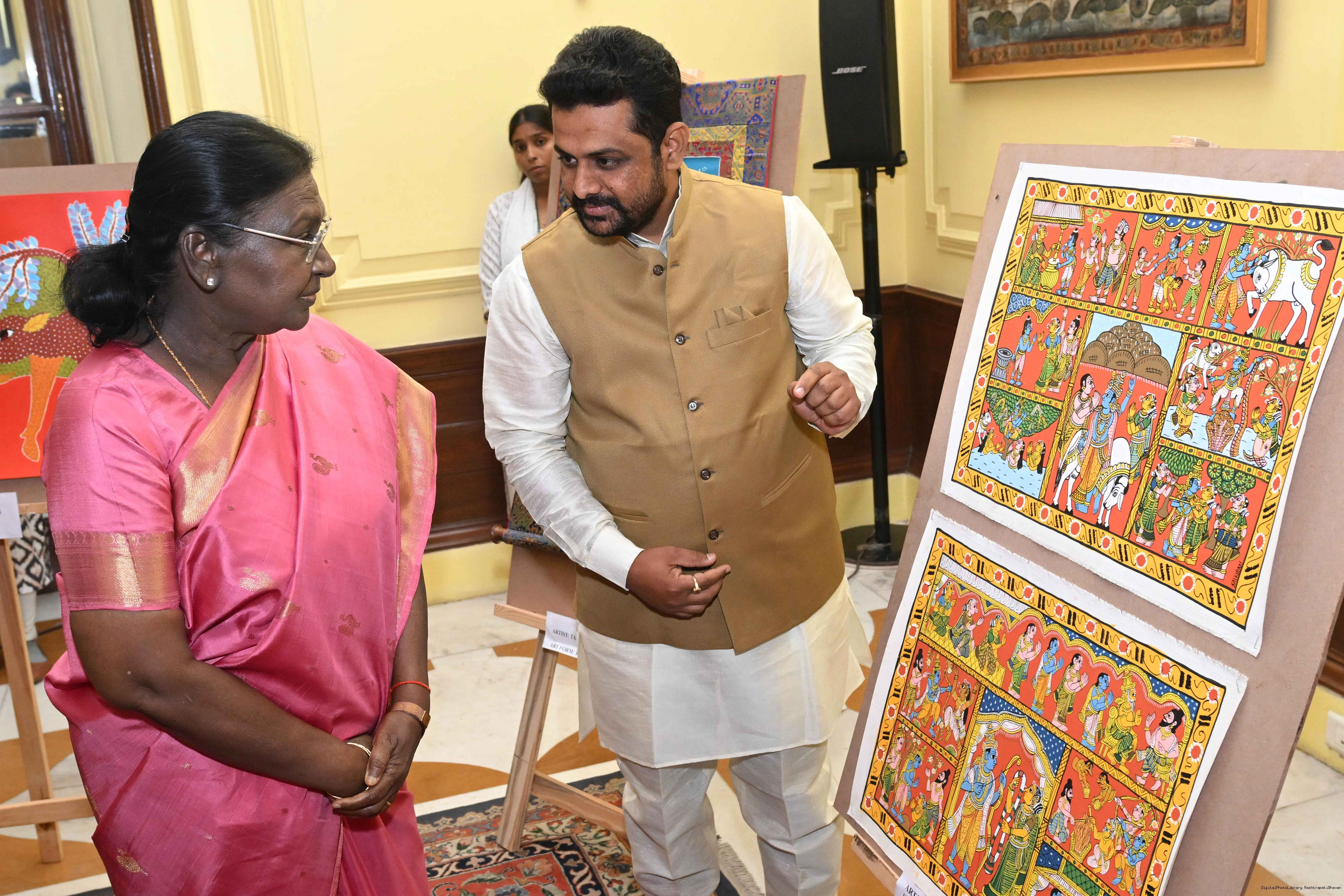 Caption: The President of India, Smt Droupadi Murmu met a group of artists of traditional art forms at Rashtrapati Bhavan on April 23, 2026.