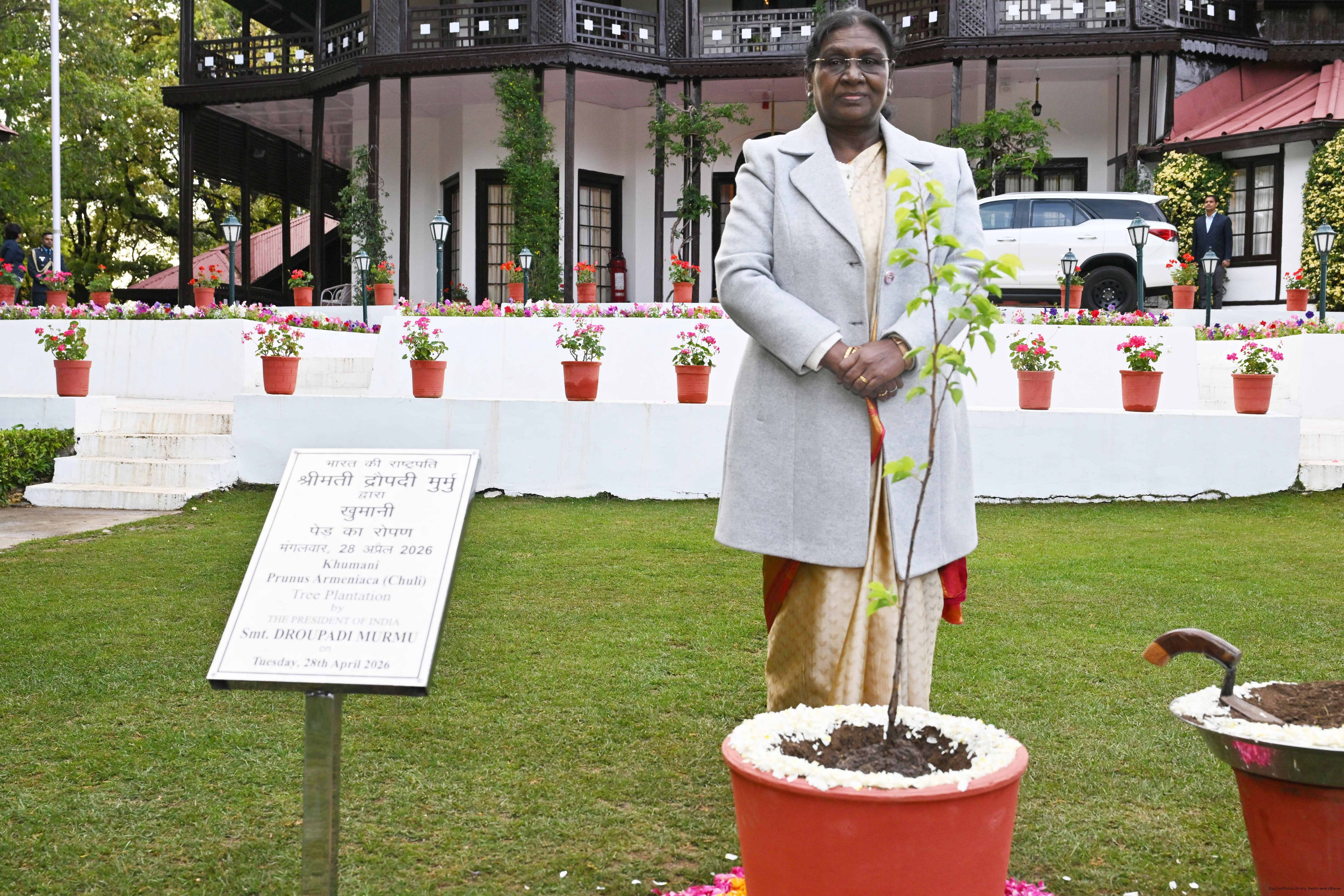 | Caption: | The President of India, Smt Droupadi Murmu took a round of various areas in Rashtrapati Niwas, Mashobra, Himachal Pradesh on April 28, 2026. |