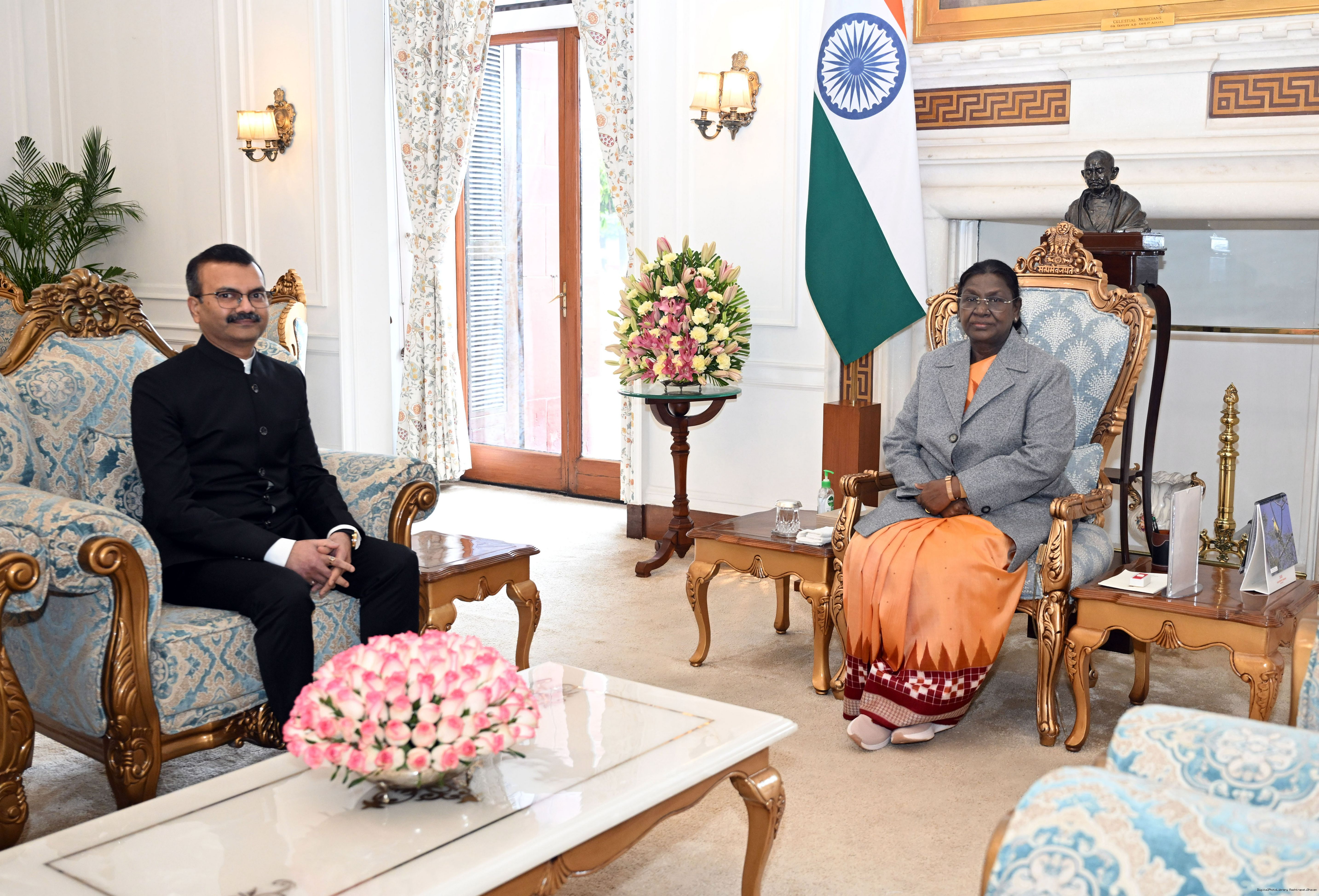 | Caption: | The Ambassador-designate to the state of Eritrea, Shri Raj Kamal meeting with the President of India, Smt Droupadi Murmu at Rashtrapati Bhavan on January 2, 2025. |