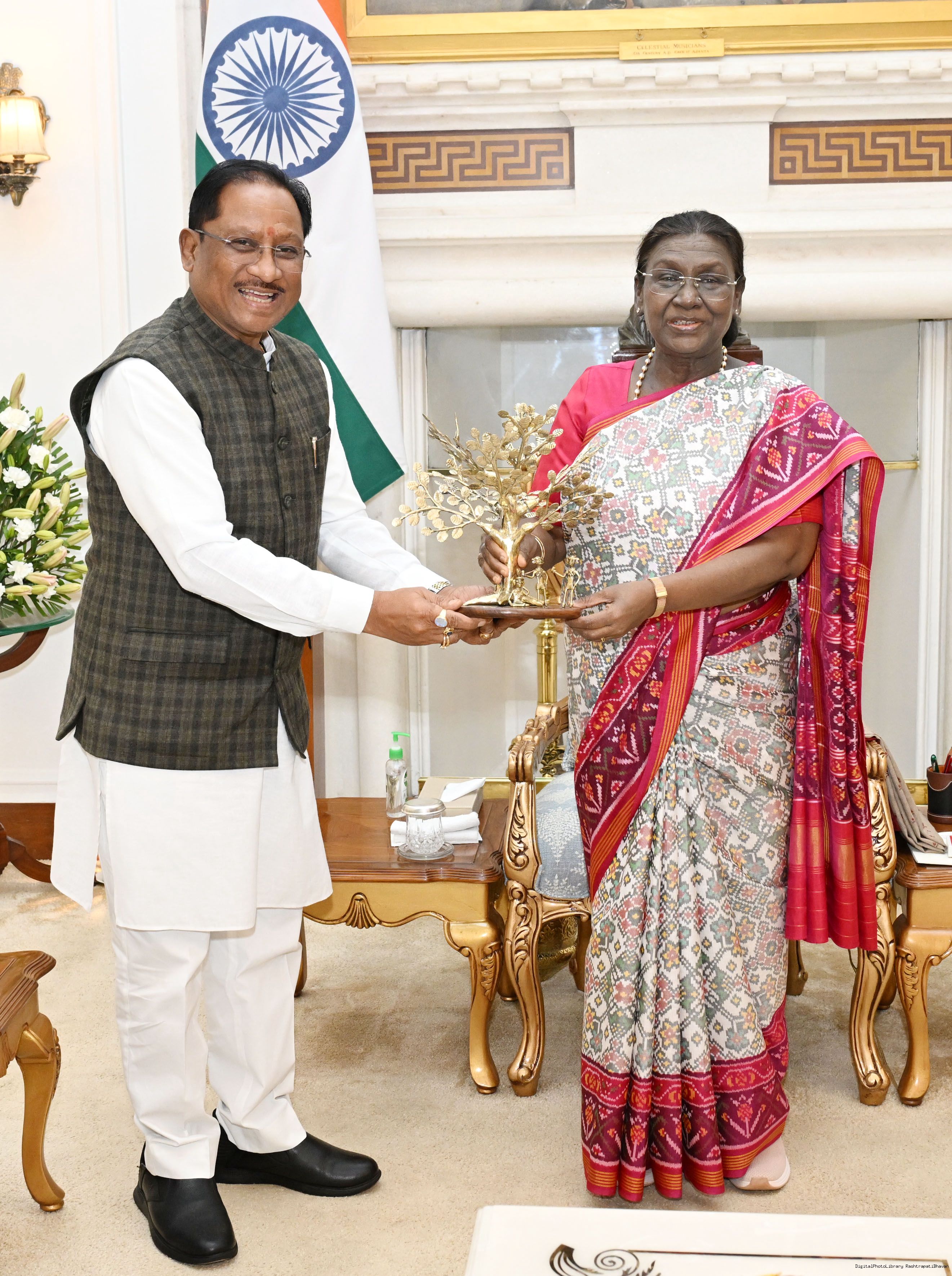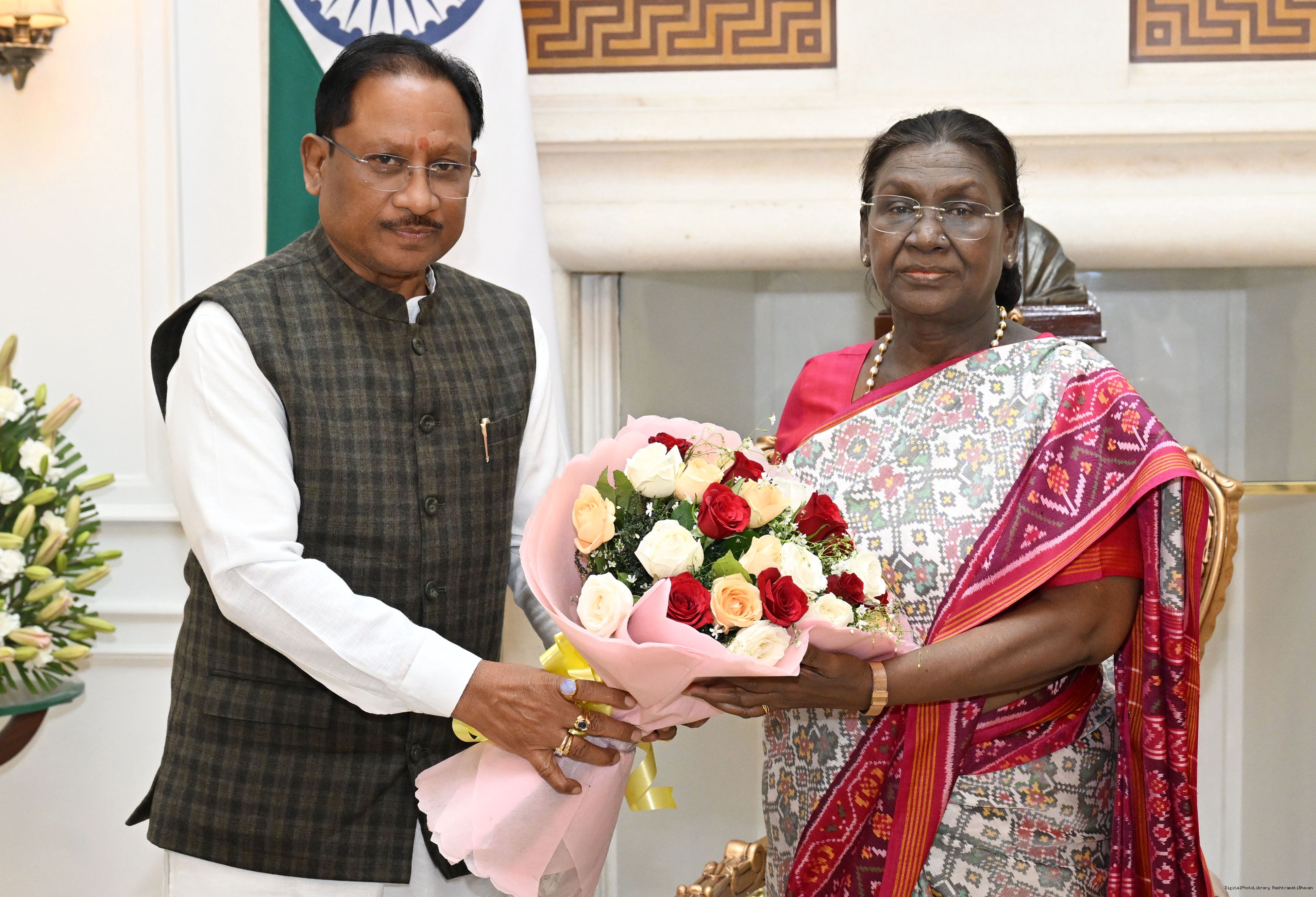 | Caption: | The Chief Minister of Chhattisgarh, Shri Vishnu Deo Sai called on the President of India, Smt Droupadi Murmu at Rashtrapati Bhavan on January 3, 2025. |